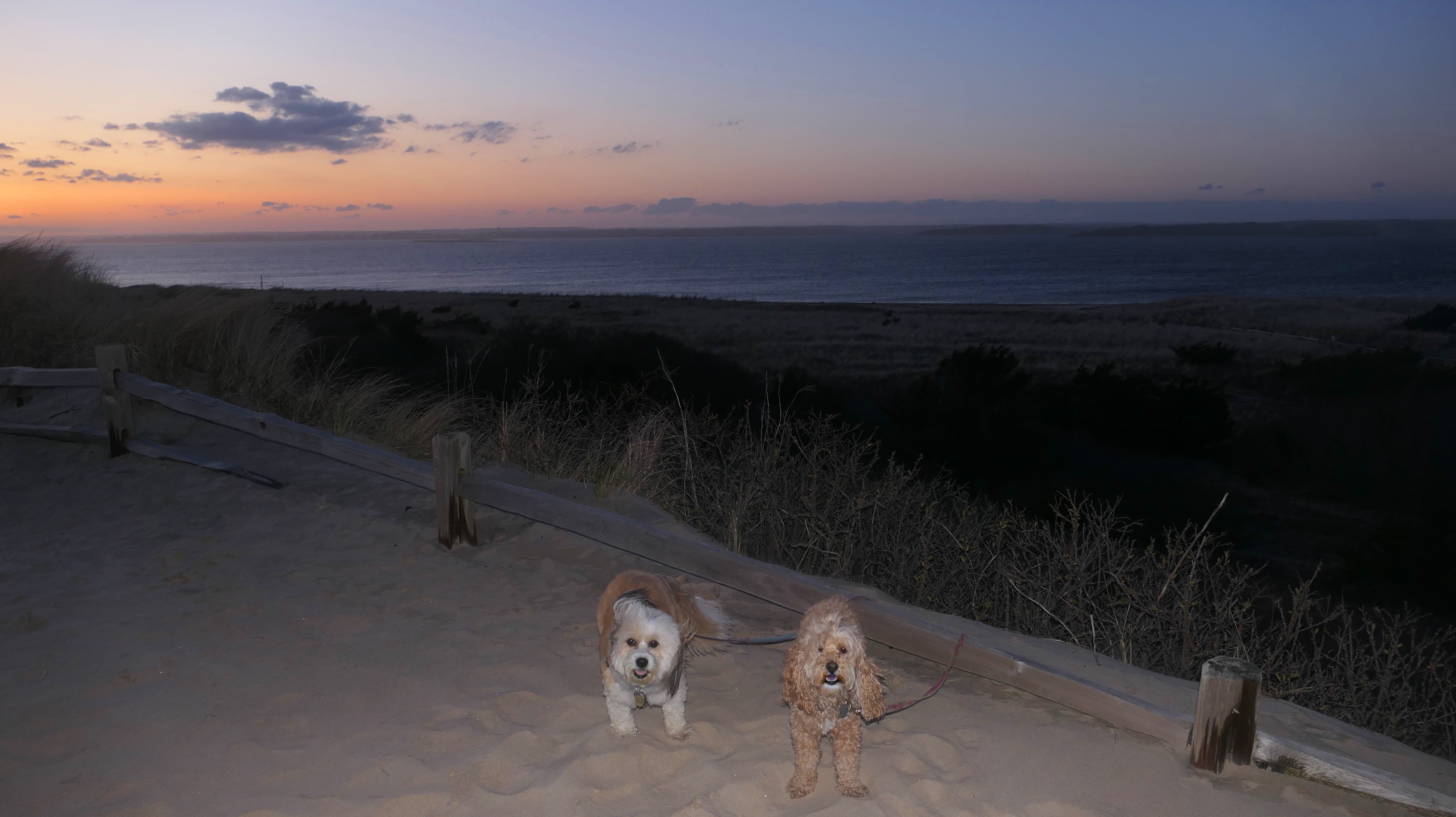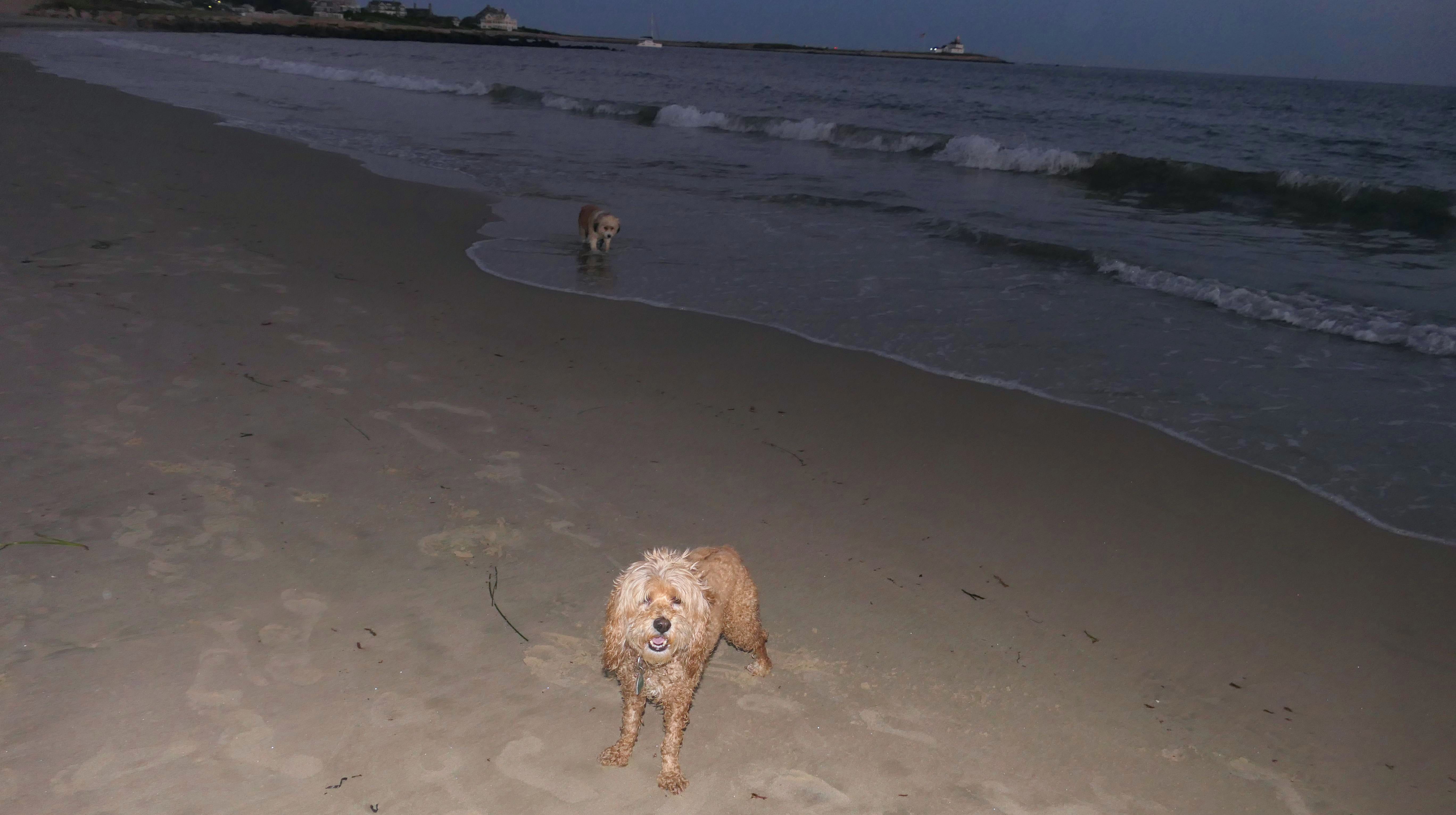 After our sunset walk at neighboring Watch Hill Beach, we started our twilight walk along the beach here. It was a beautiful evening, and Mandy and Lexi were happy to run around and play for a bit. Taking action photos with this lighting was challenging, but I was pleasantly surprised that many of them actually came out well. It was completely dark out by the time we finished our three mile walk along these beautiful beaches.