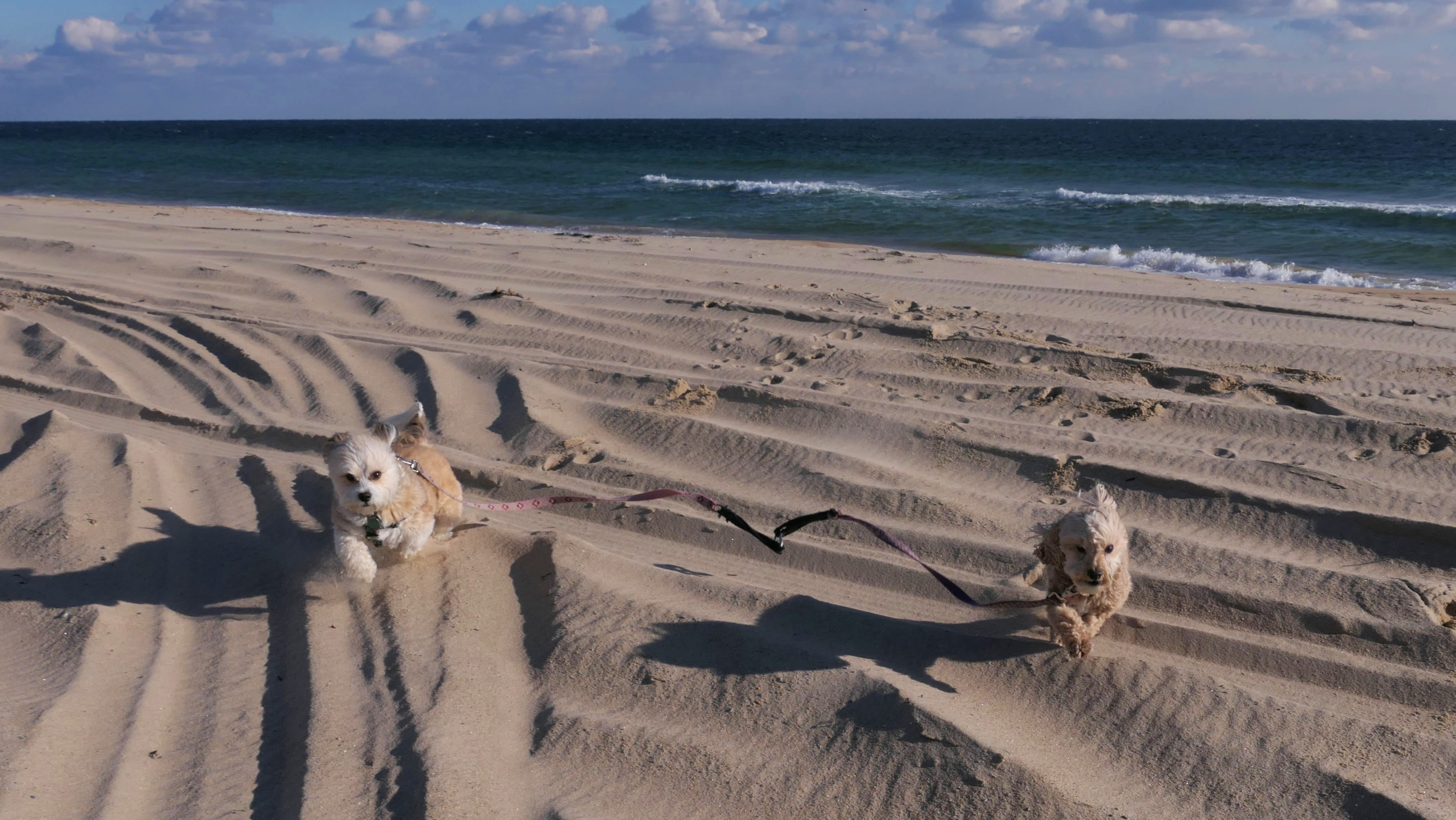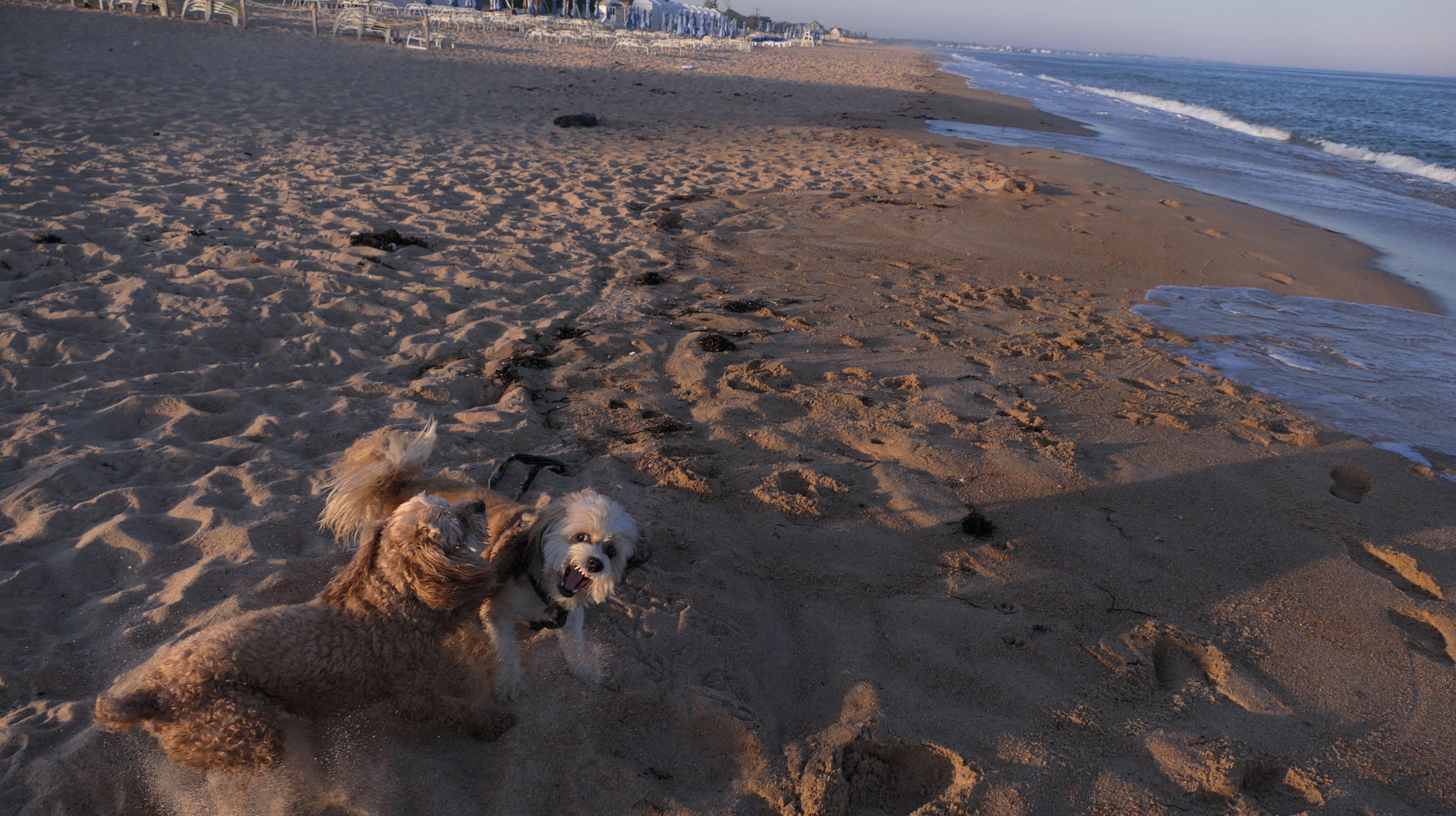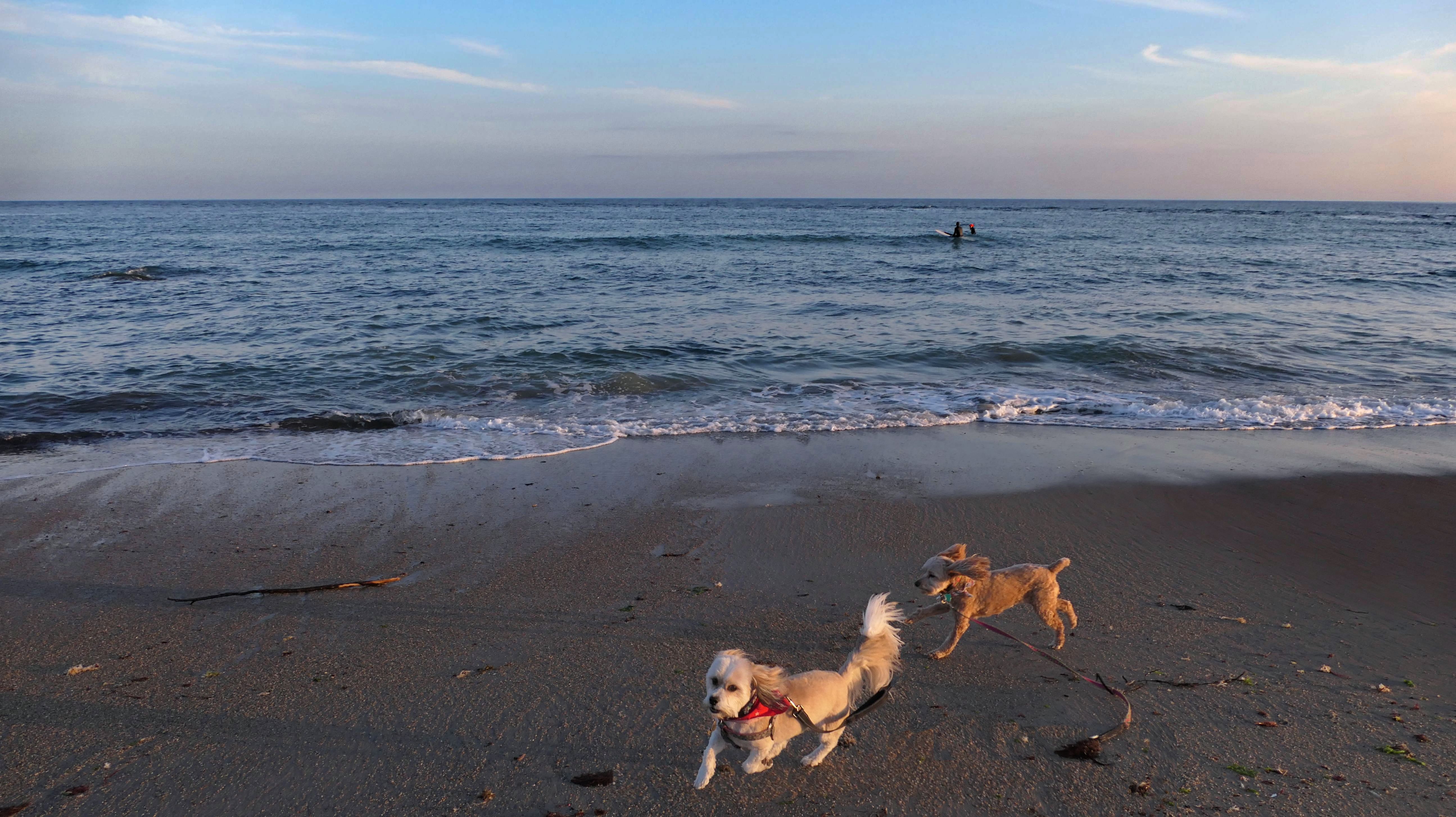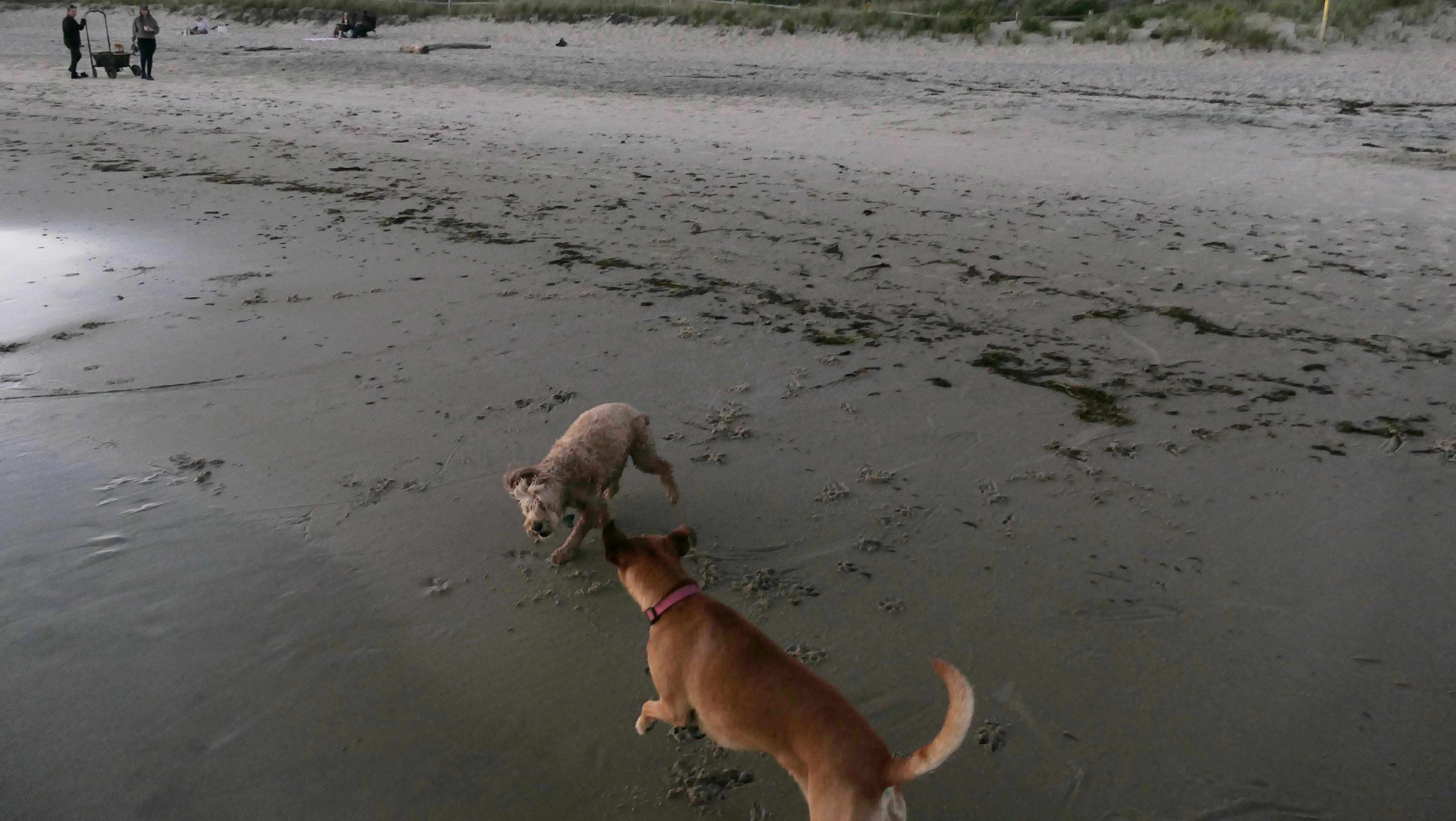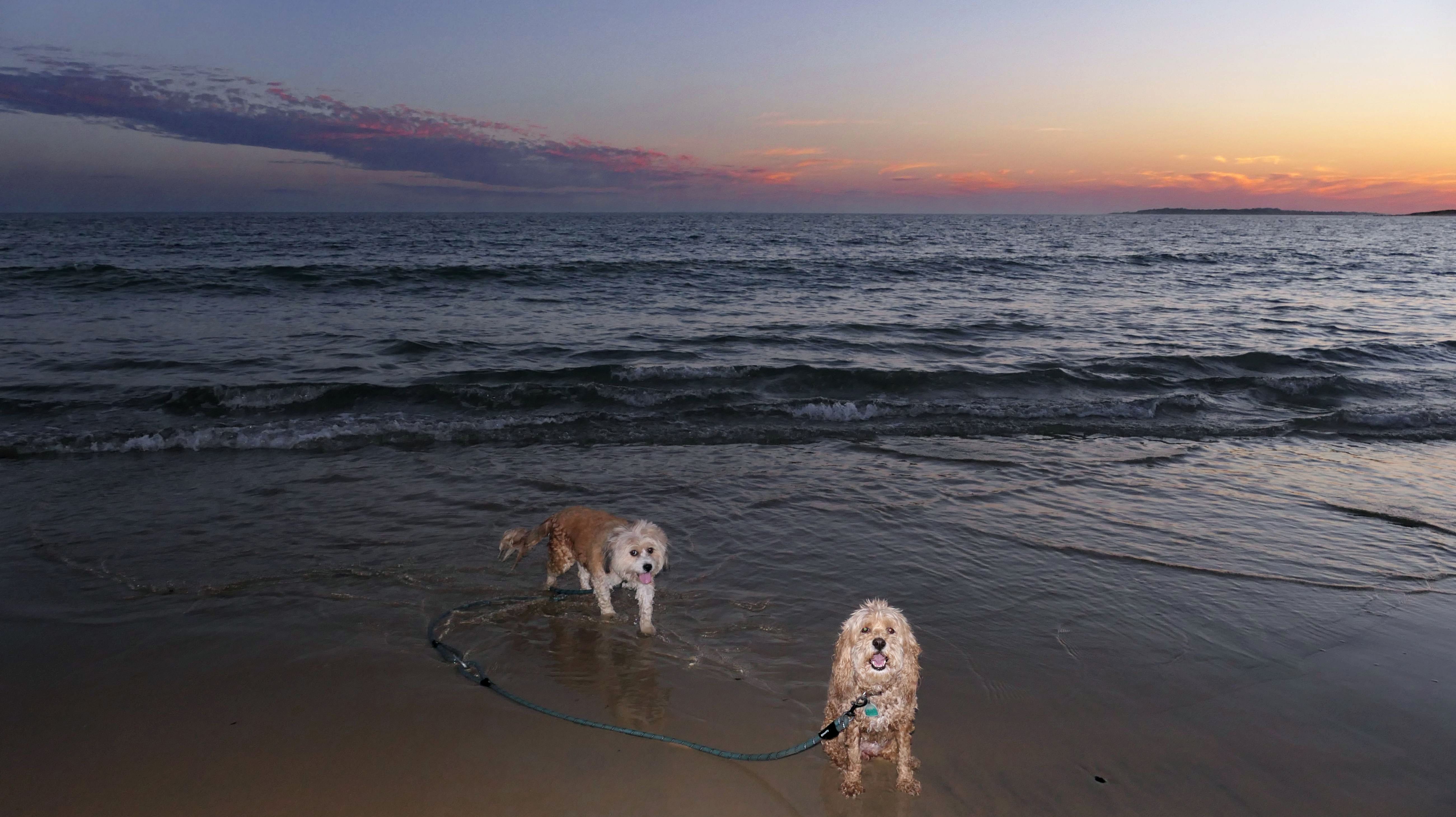 We were in the area, so we came back to this great beach again. This is the first time we were here "in season". Dogs are allowed on the beach here after 6PM in the summer time, but we didn't get here until well after 7PM. Mandy and Lexi decided to run and play on this beach this time around, which is always fun to see.