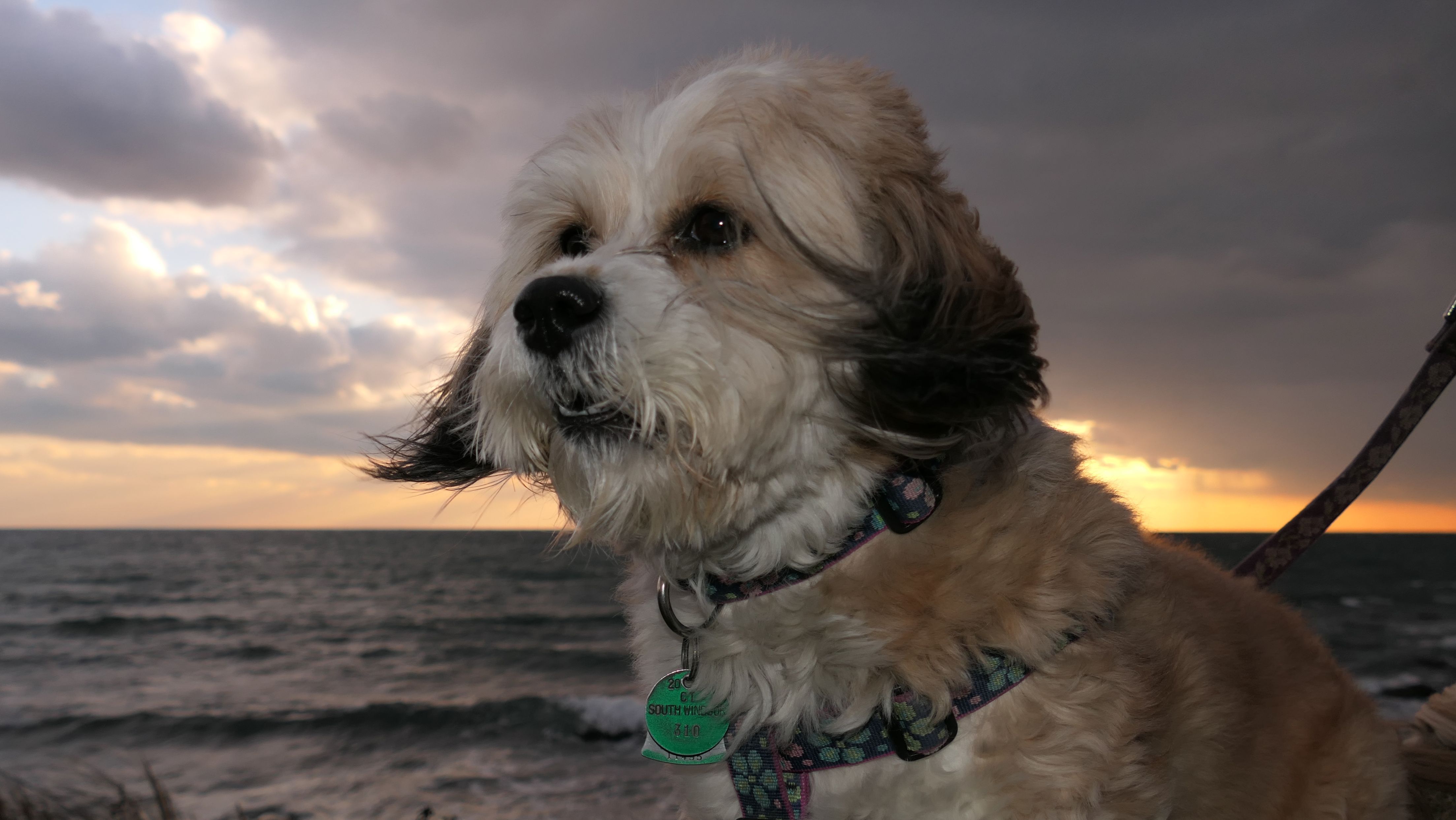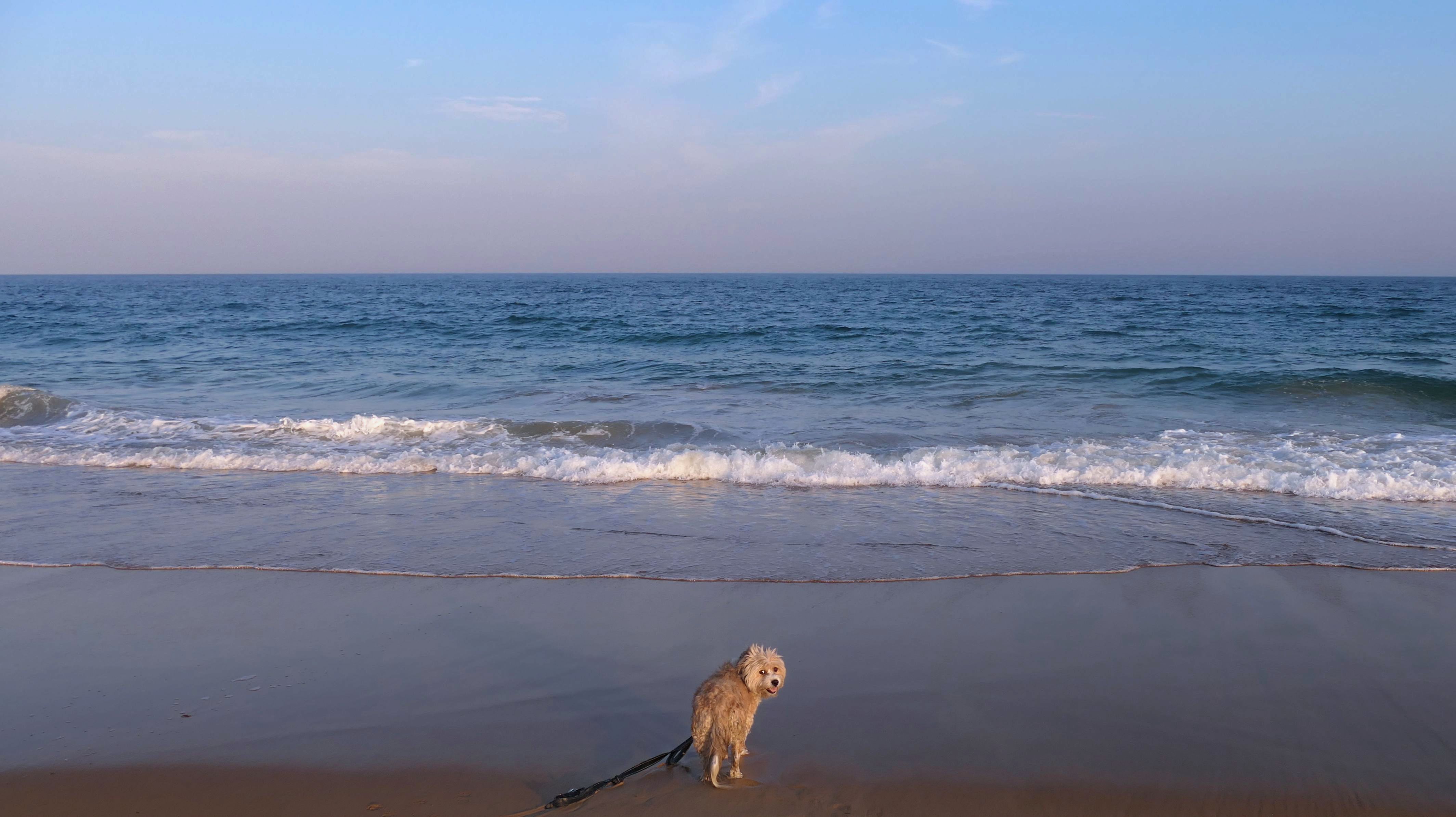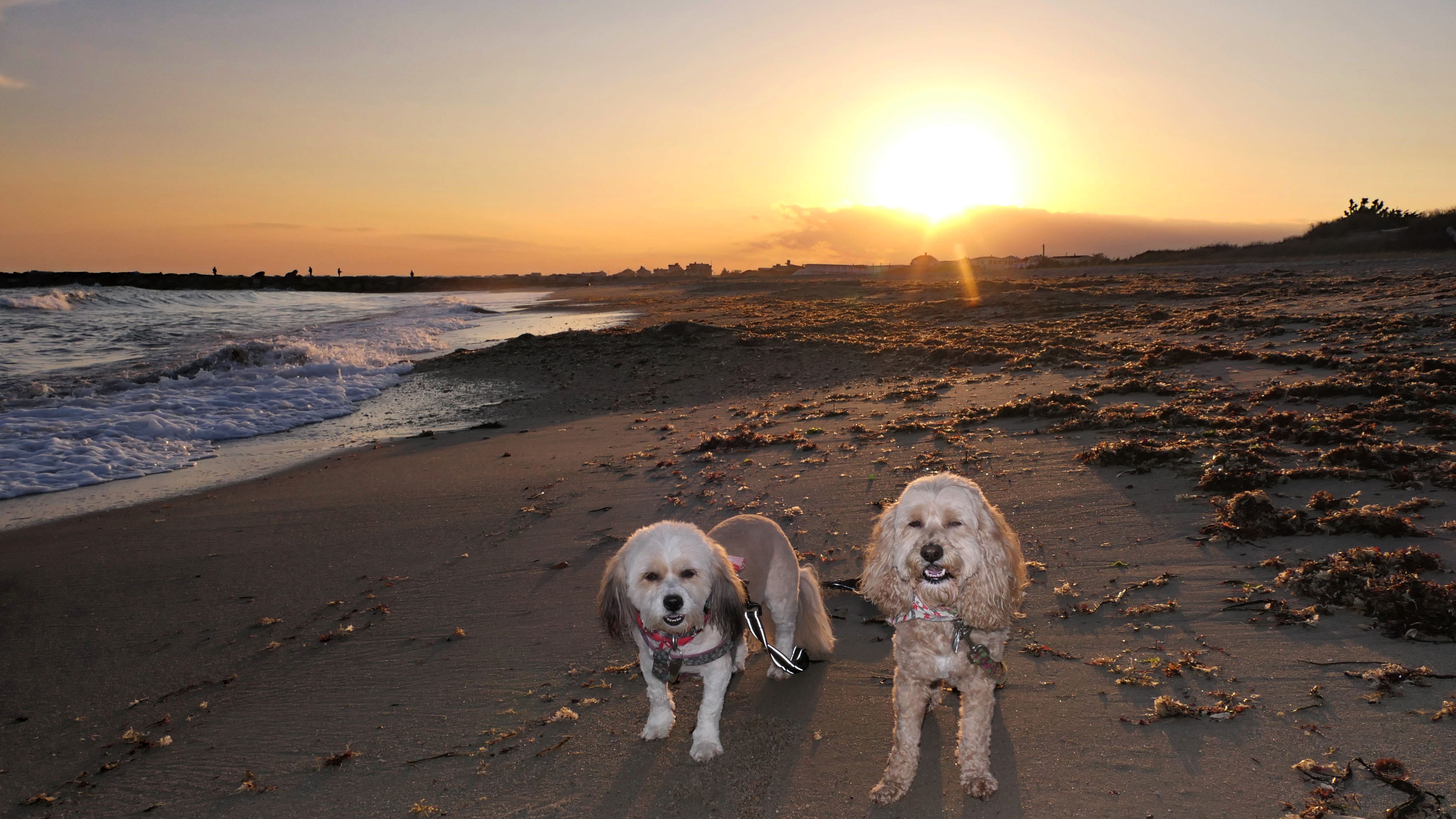 It was much warmer for our second visit, 20 months later. We came after our trip to Avondale Farm Preserve. During the summer months, dogs are only allowed after 6PM and before 8AM. We arrived just before sunset. We didn't walk the entire loop this time, we only walked about a mile up the beach. It was nice watching the sunset on the beach.