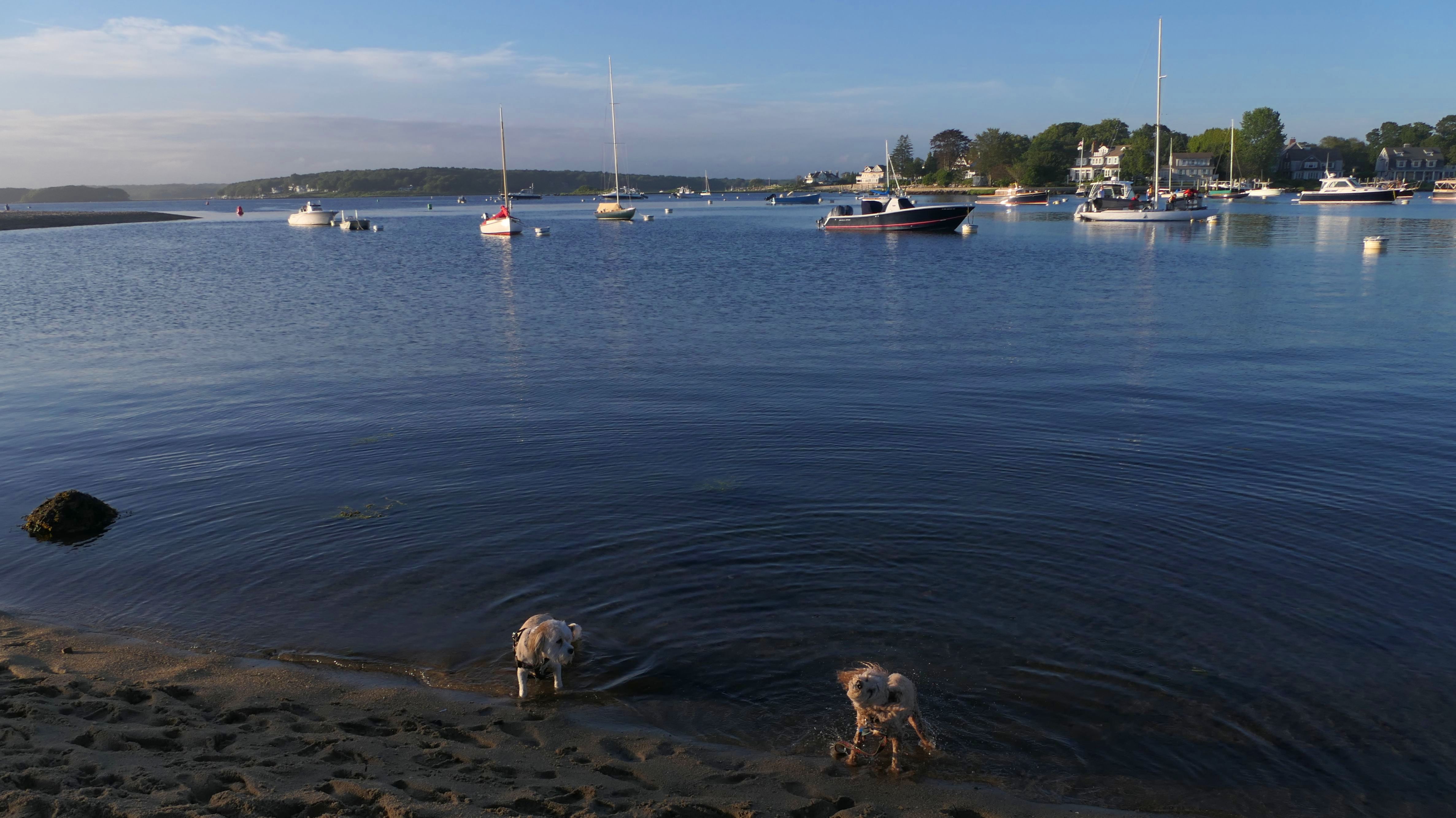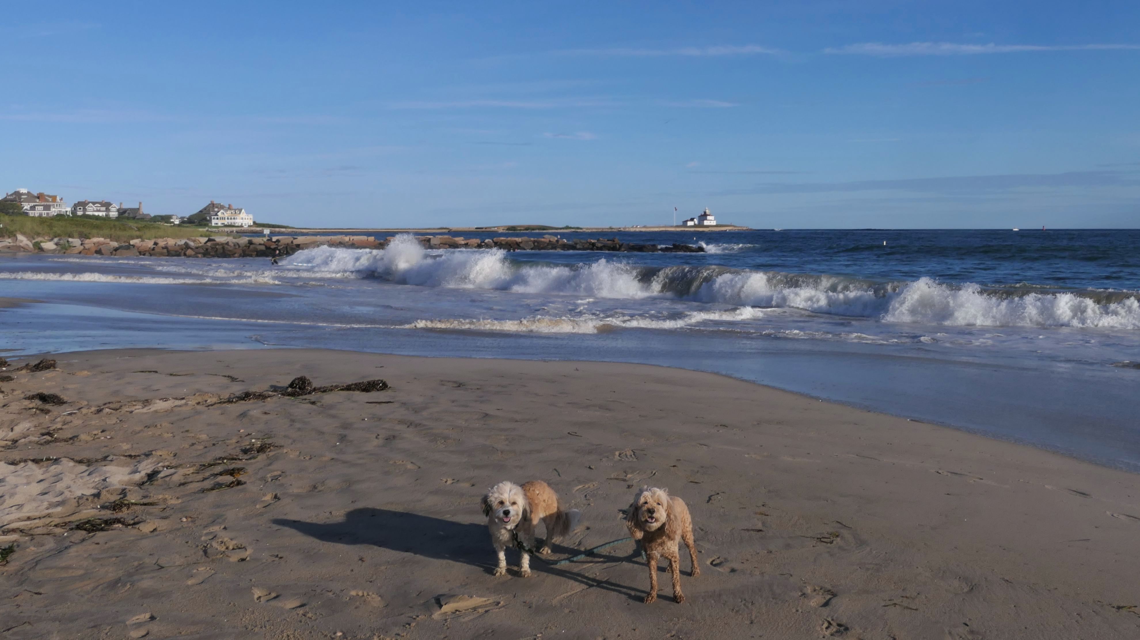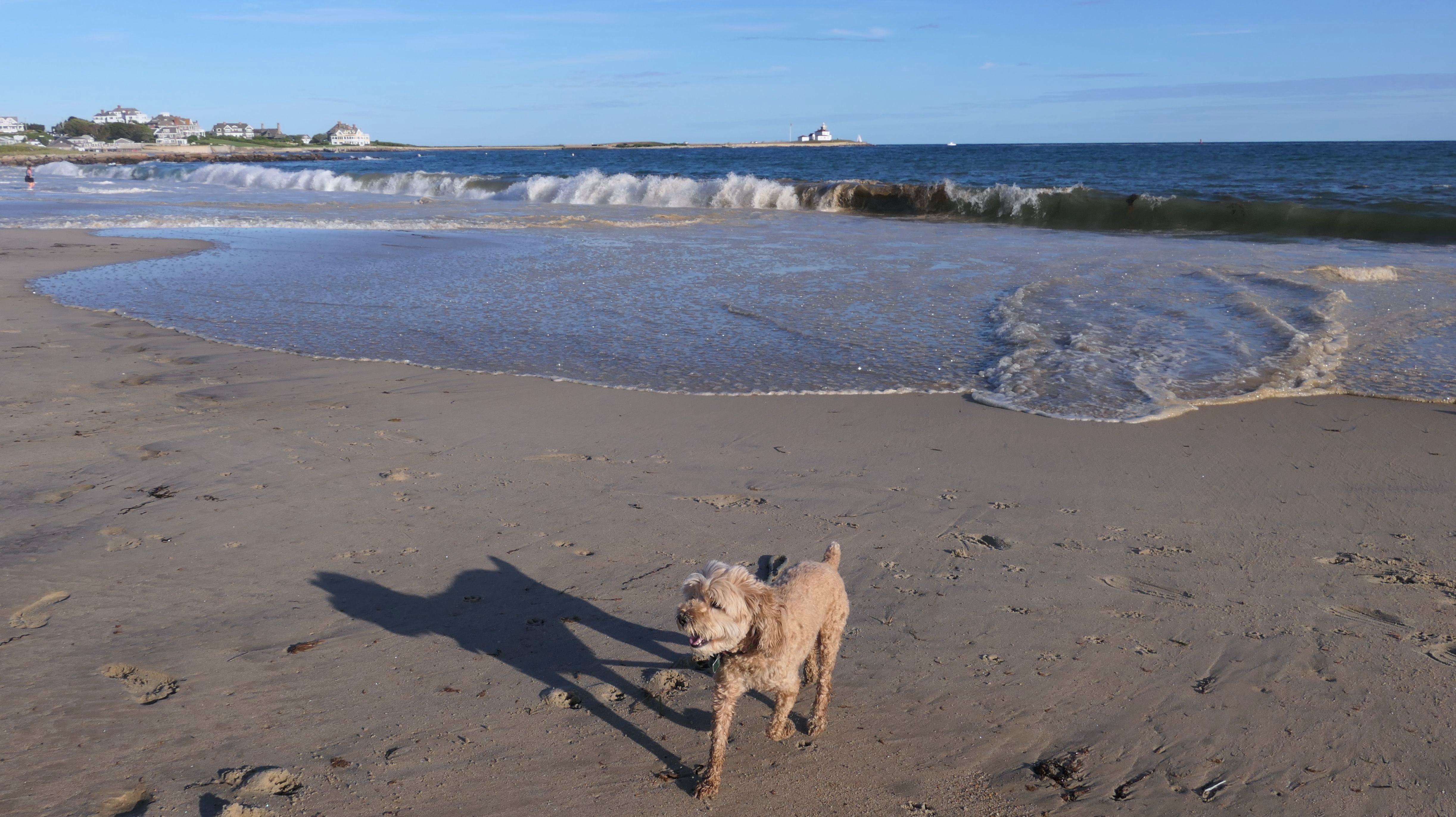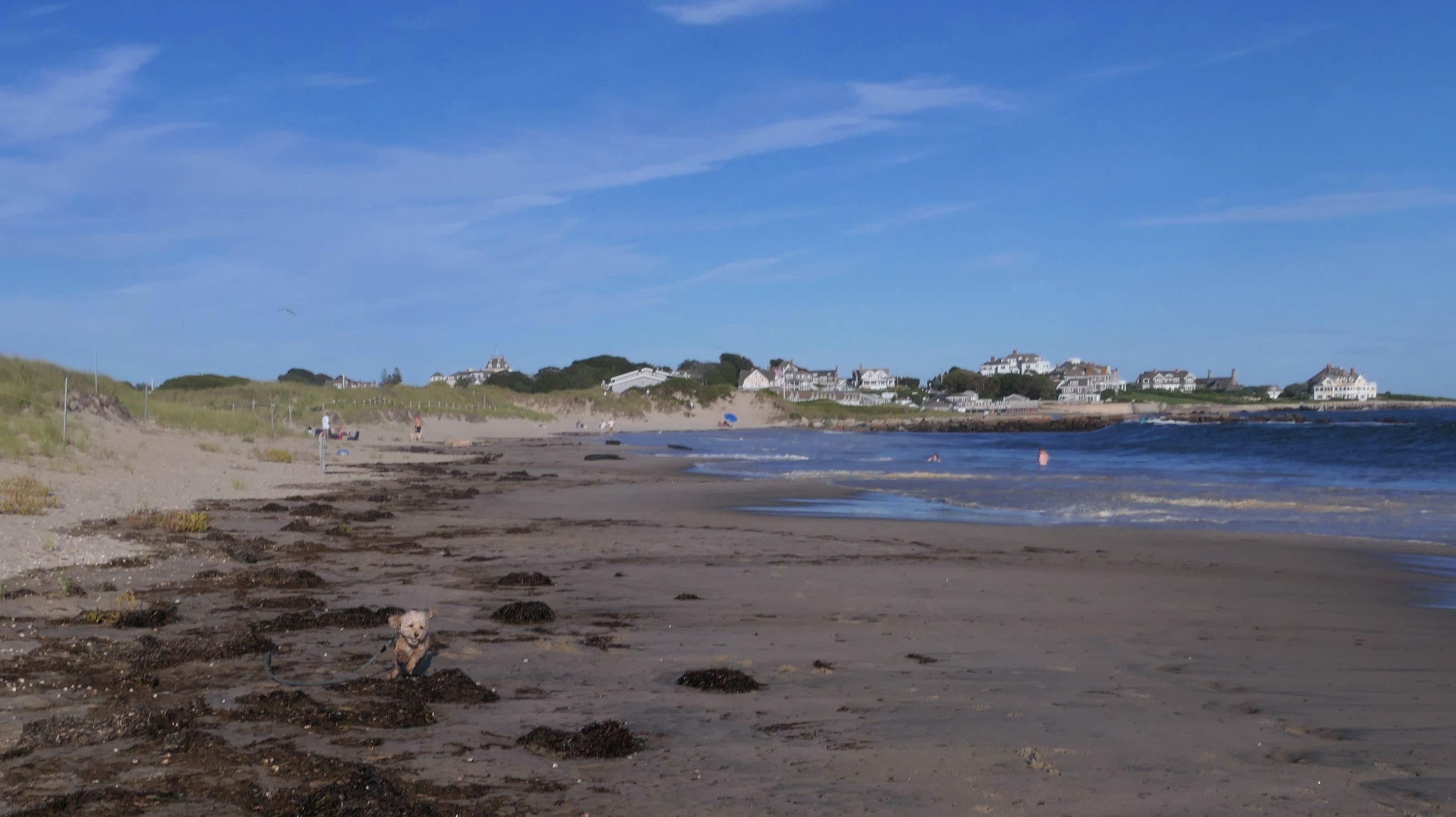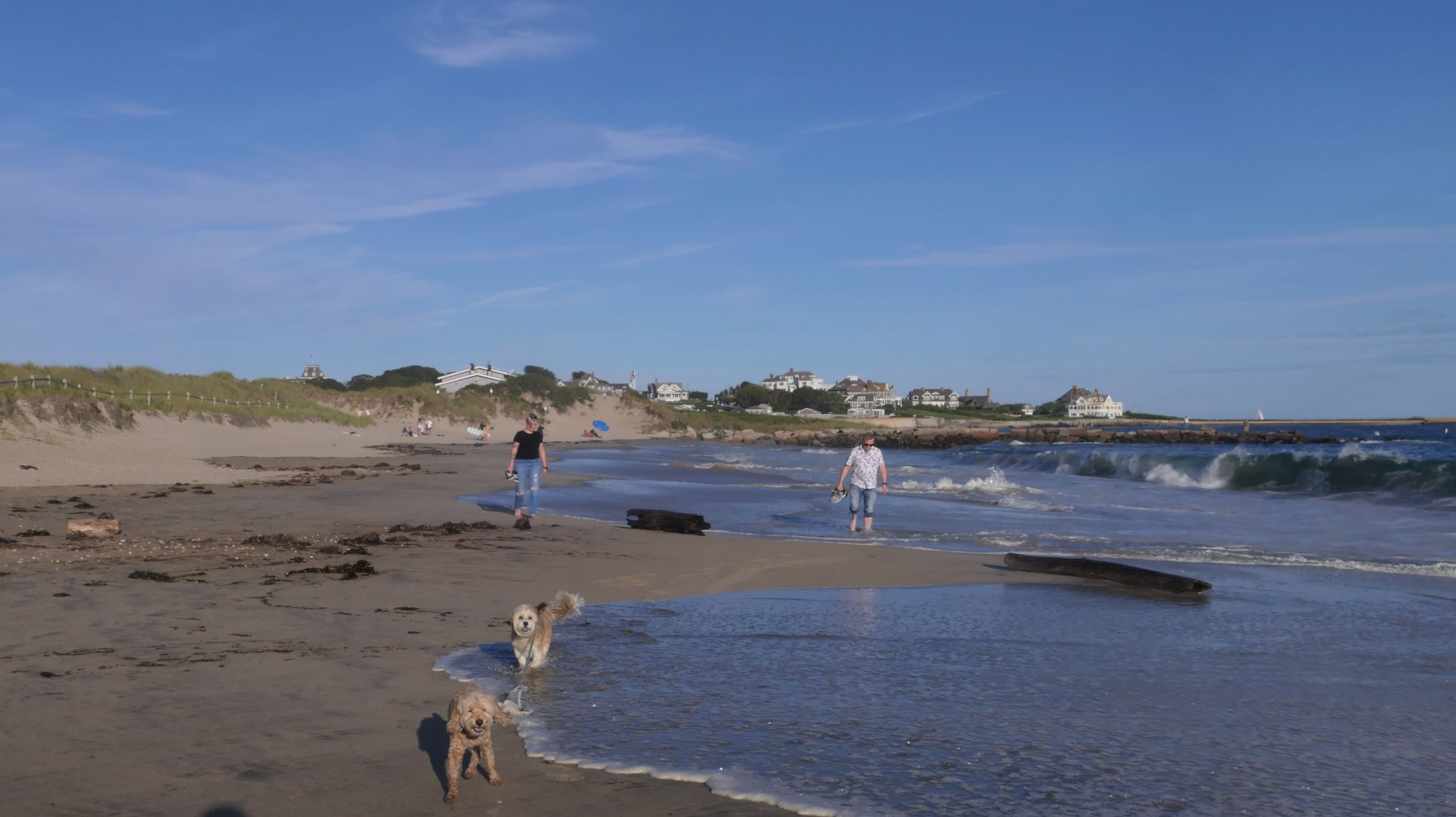 It was the hottest day of the year, and this was our final stop. We waded through the edge of the waves, walking about a half mile up the beach before turing around and heading back to Watch Hill. We've been here a bunch of times before. It's one of our favorite places, and dogs are allowed after 6PM during the summer months. This was a nice way to wrap up a very busy day that started in Narragansett and ended here.