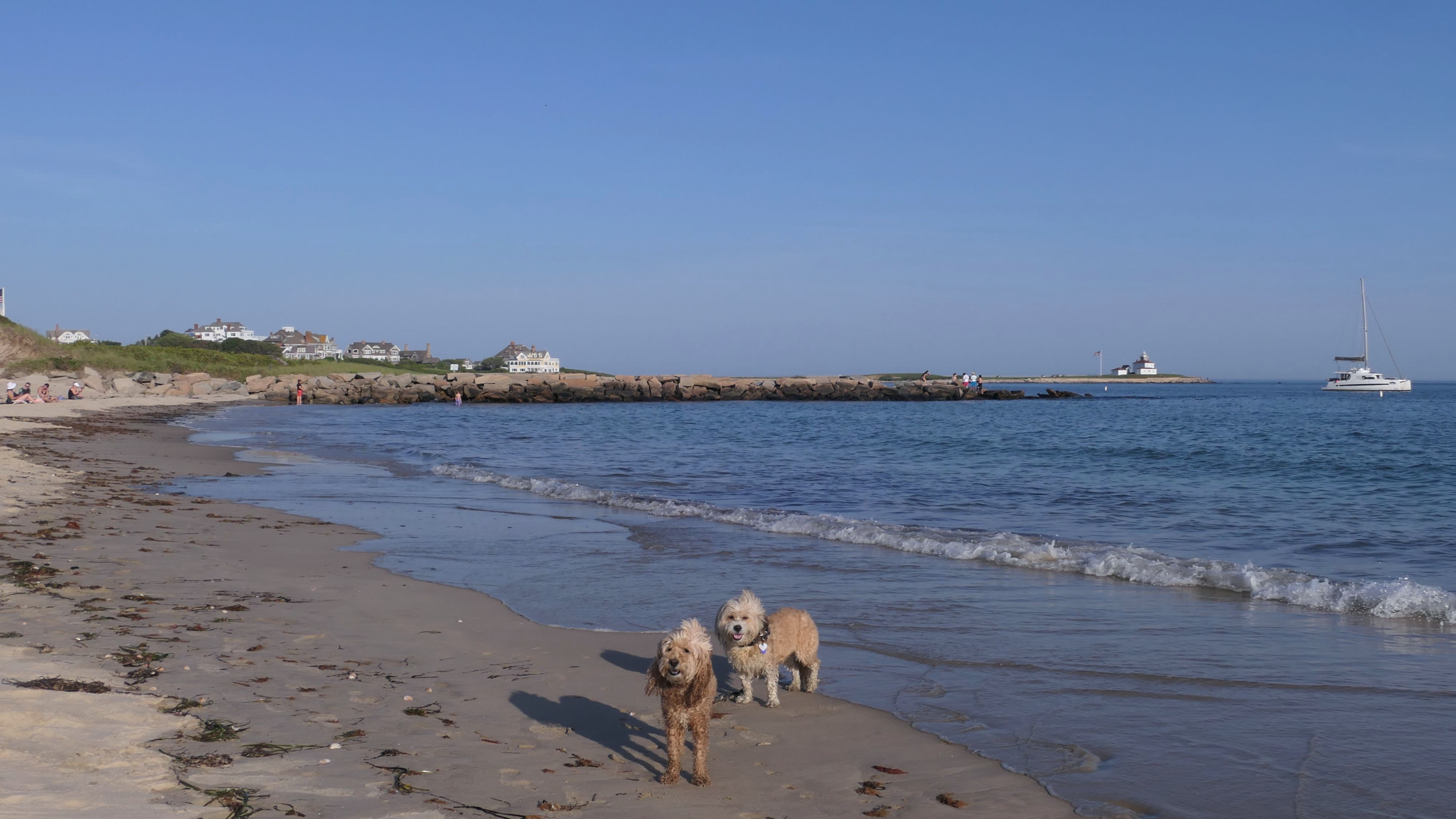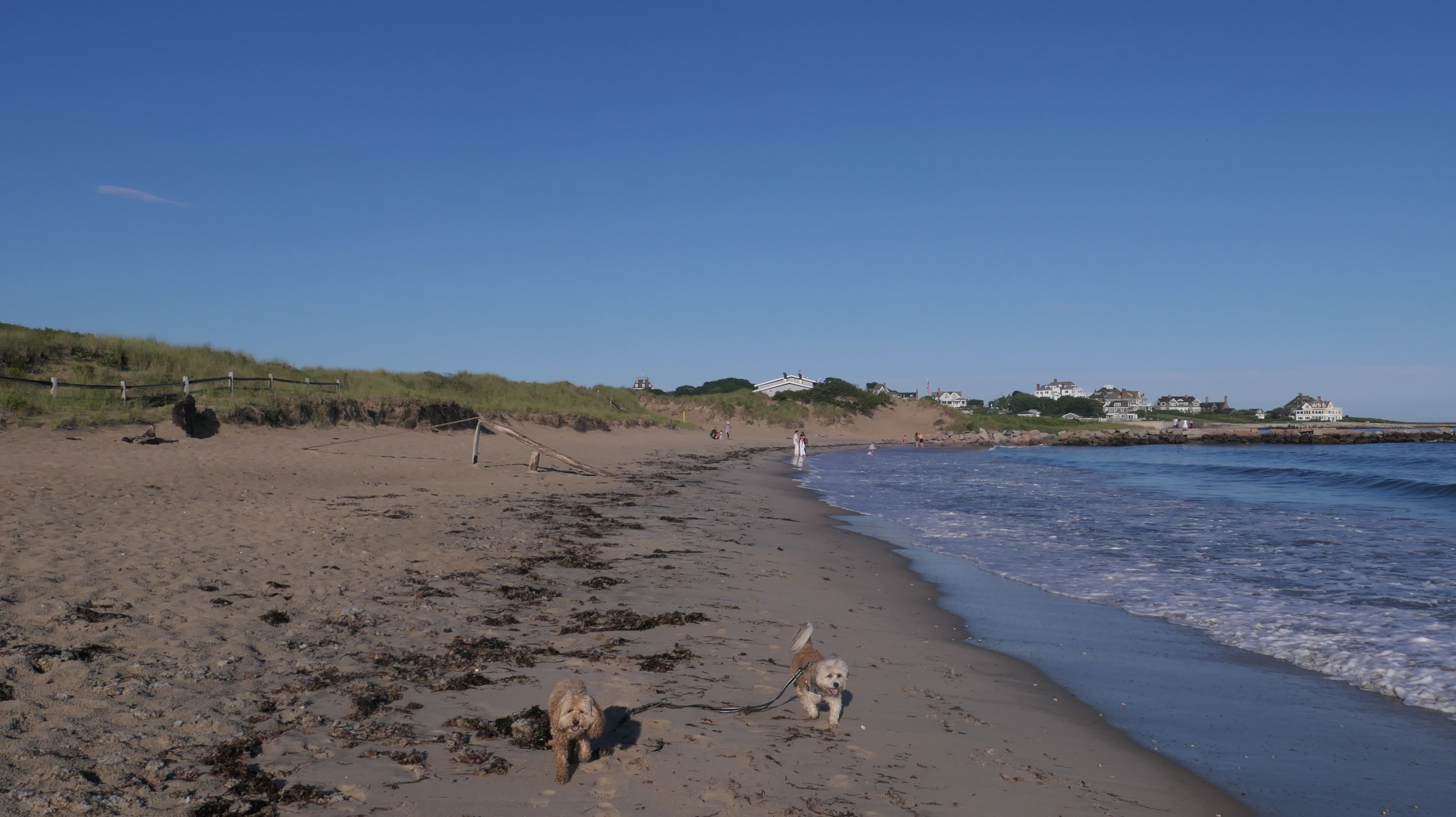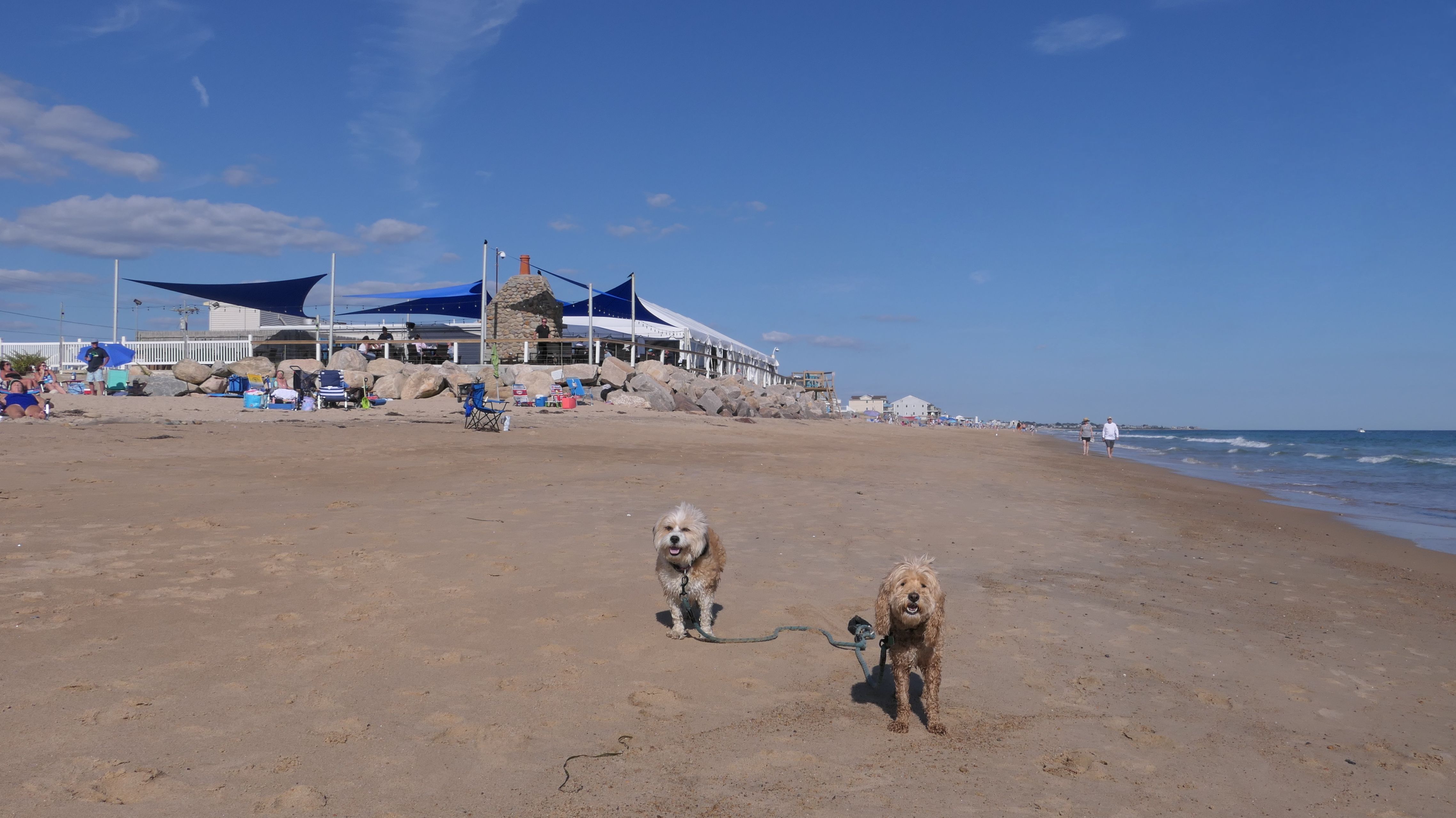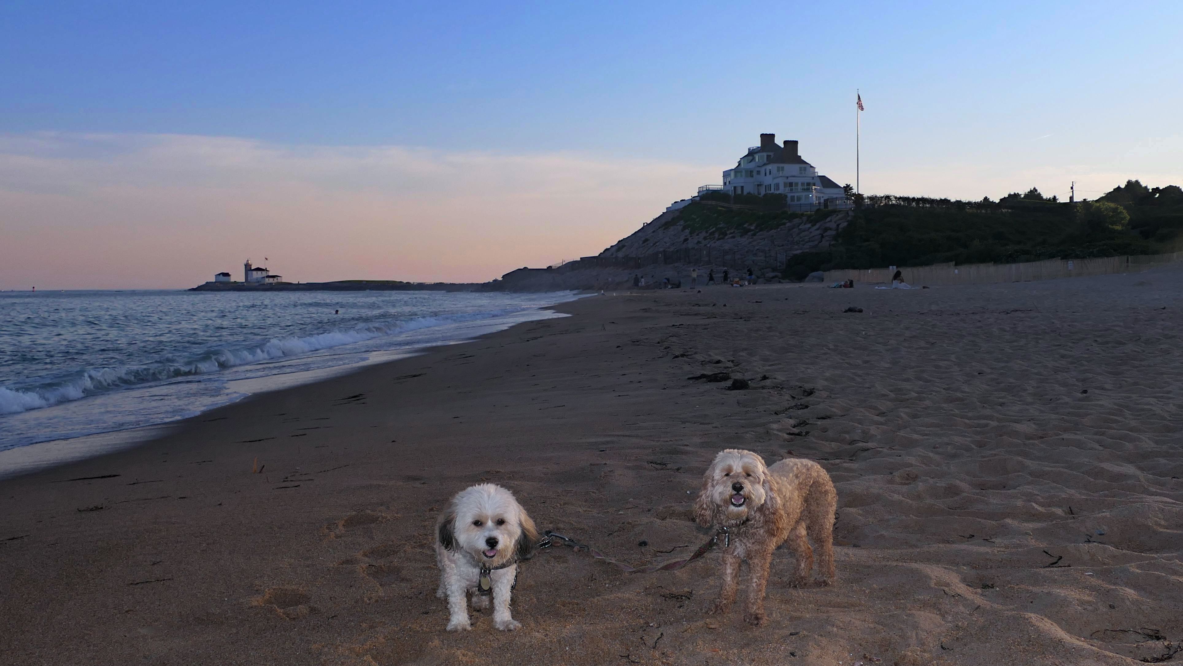 It was the hottest day of the year, and this was our final stop. We waded through the edge of the waves, walking about a half mile up the beach before turing around and heading back to Watch Hill. We've been here a bunch of times before. It's one of our favorite places, and dogs are allowed after 6PM during the summer months. This was a nice way to wrap up a very busy day that started in Narragansett and ended here.