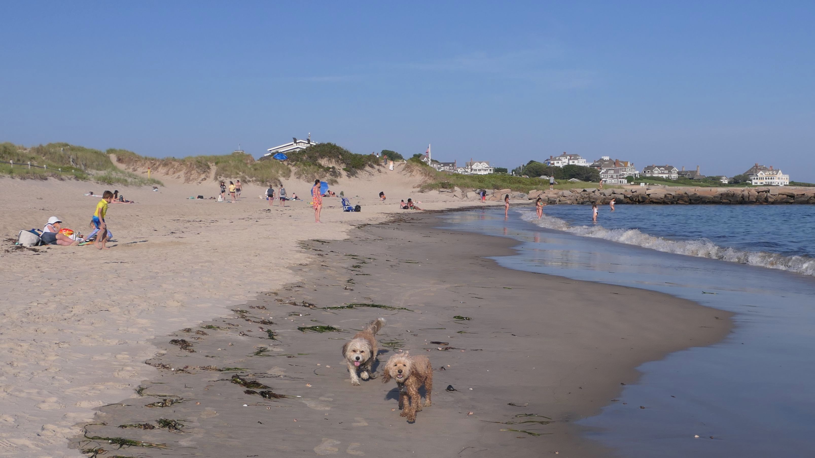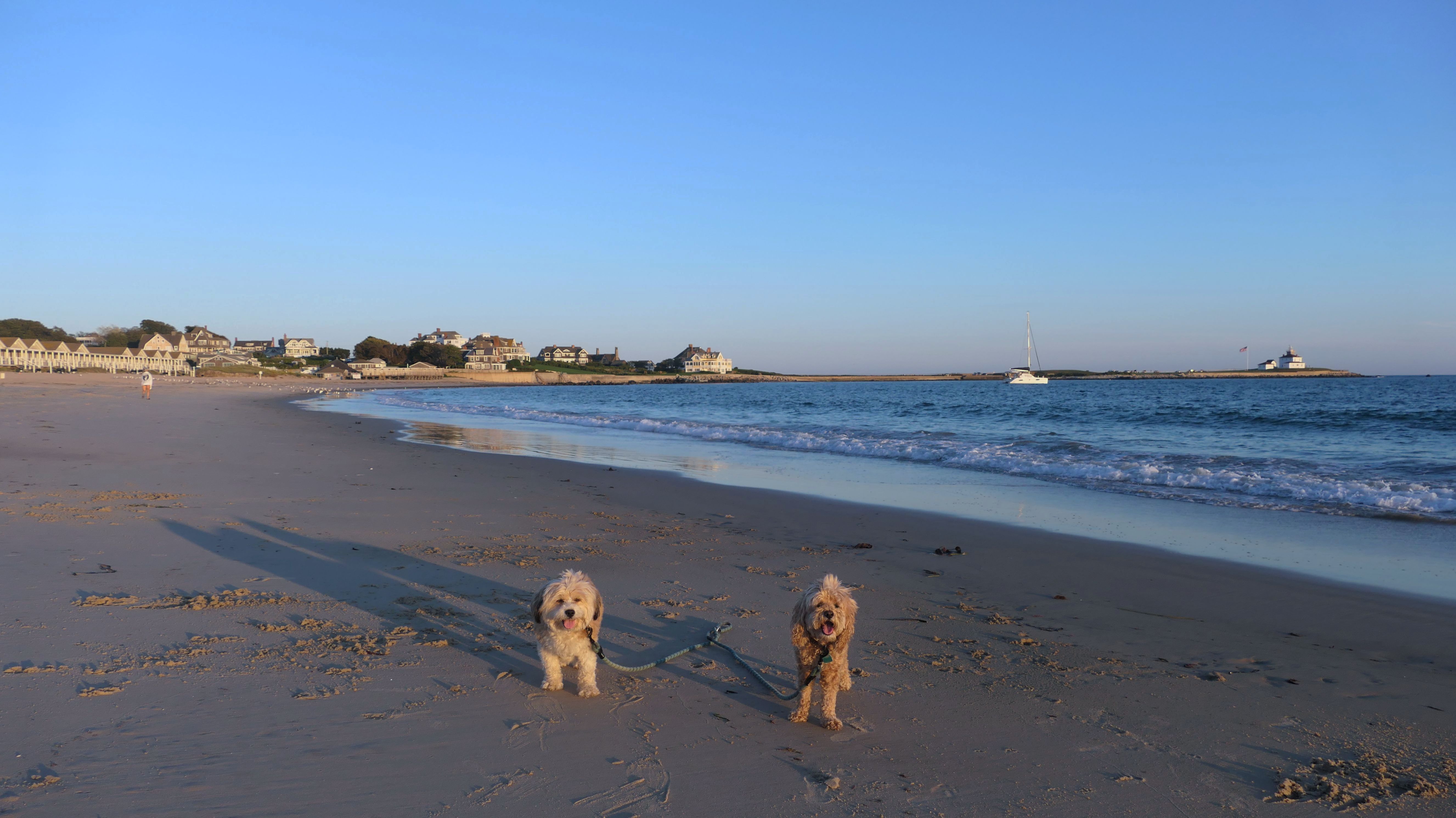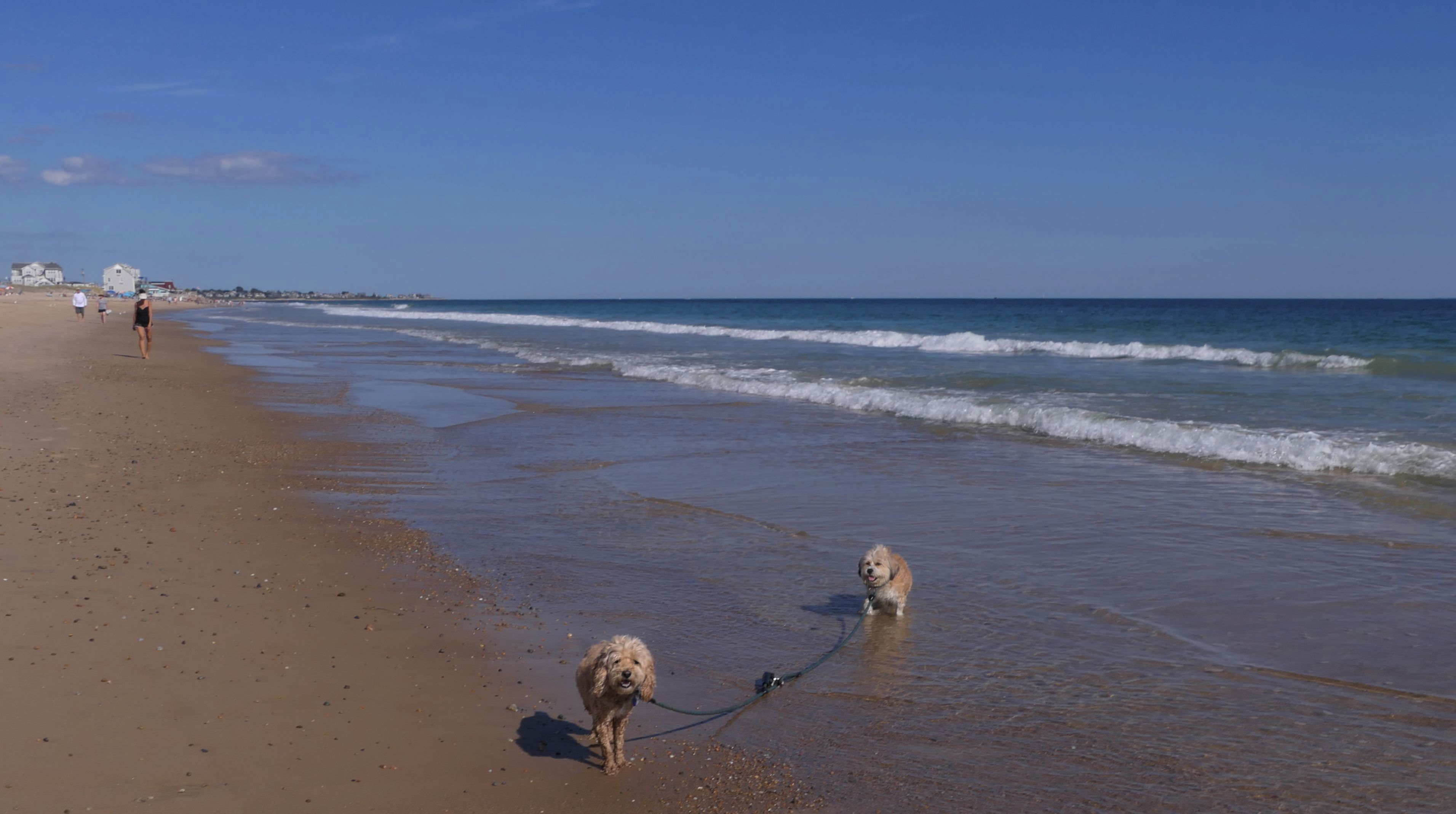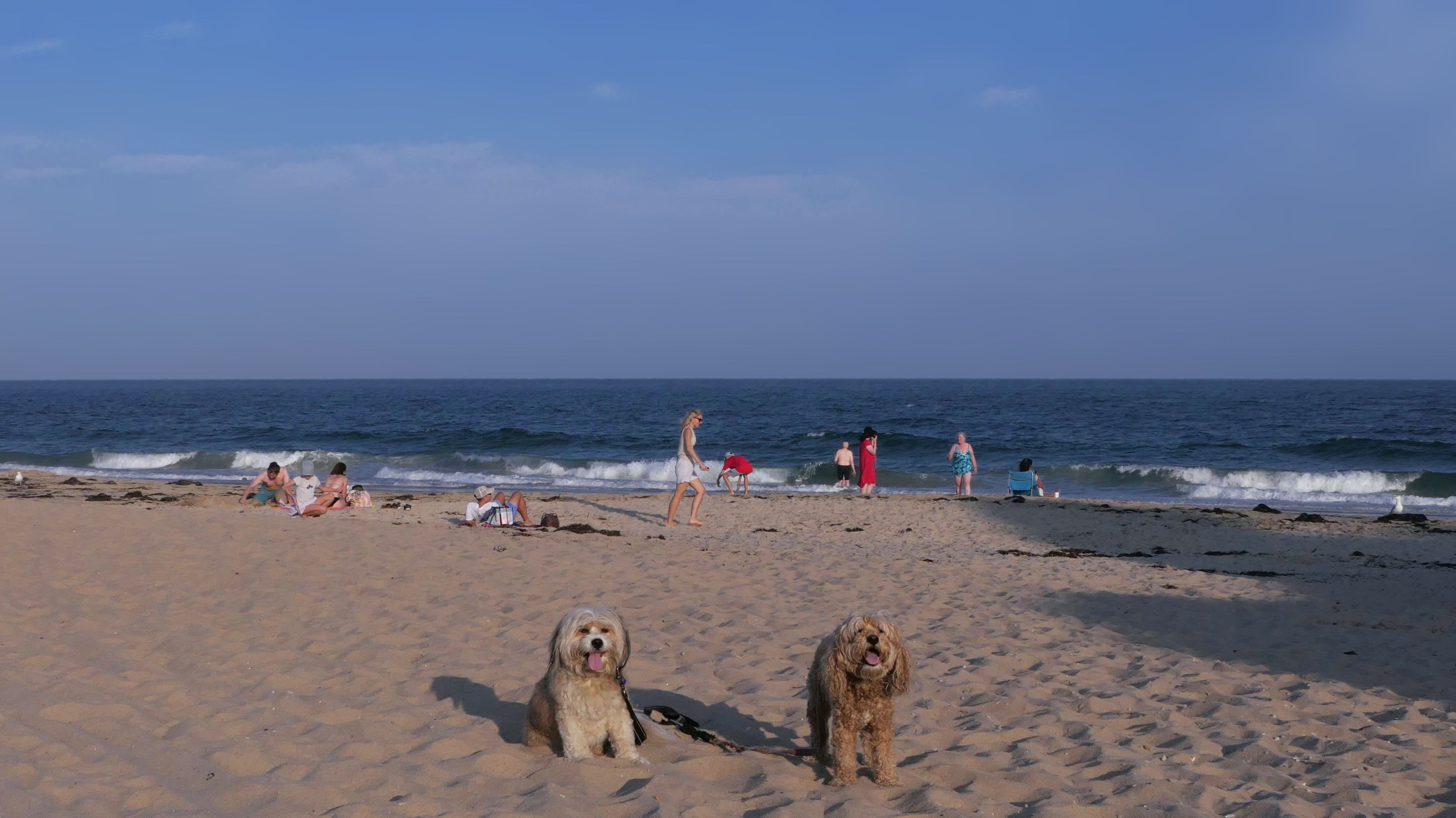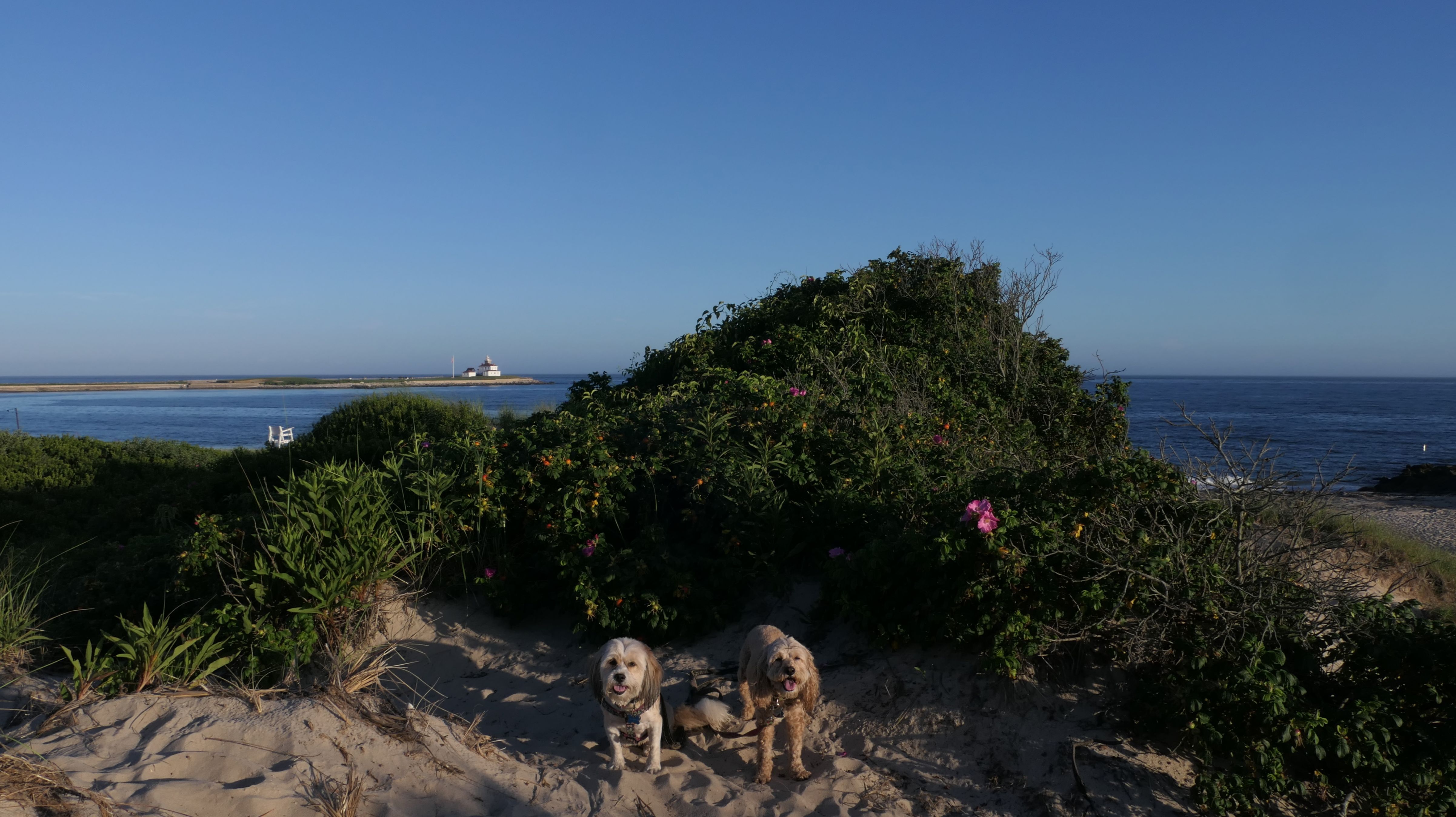 It was the hottest day of the year, and this was our final stop. We waded through the edge of the waves, walking about a half mile up the beach before turing around and heading back to Watch Hill. We've been here a bunch of times before. It's one of our favorite places, and dogs are allowed after 6PM during the summer months. This was a nice way to wrap up a very busy day that started in Narragansett and ended here.