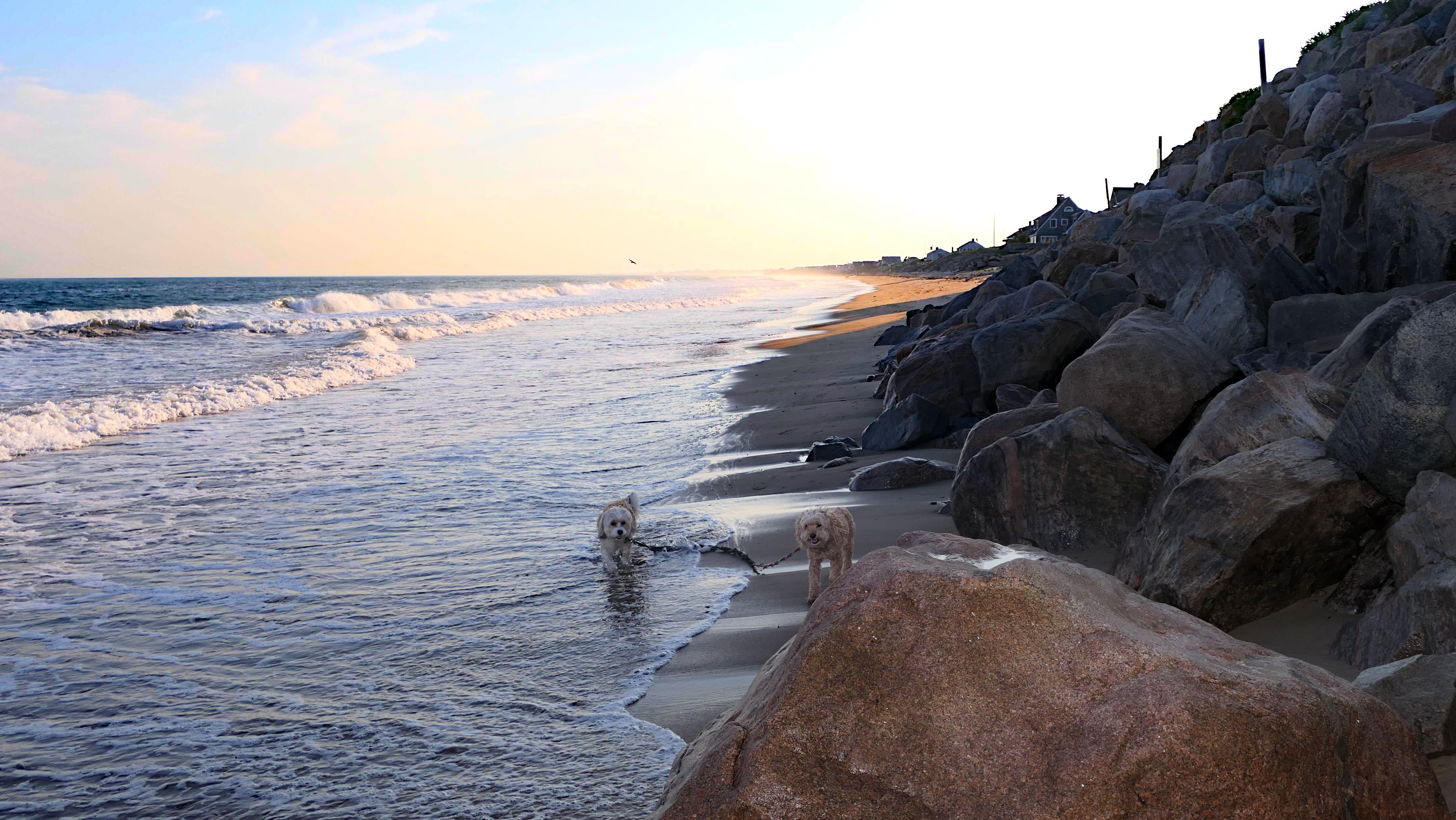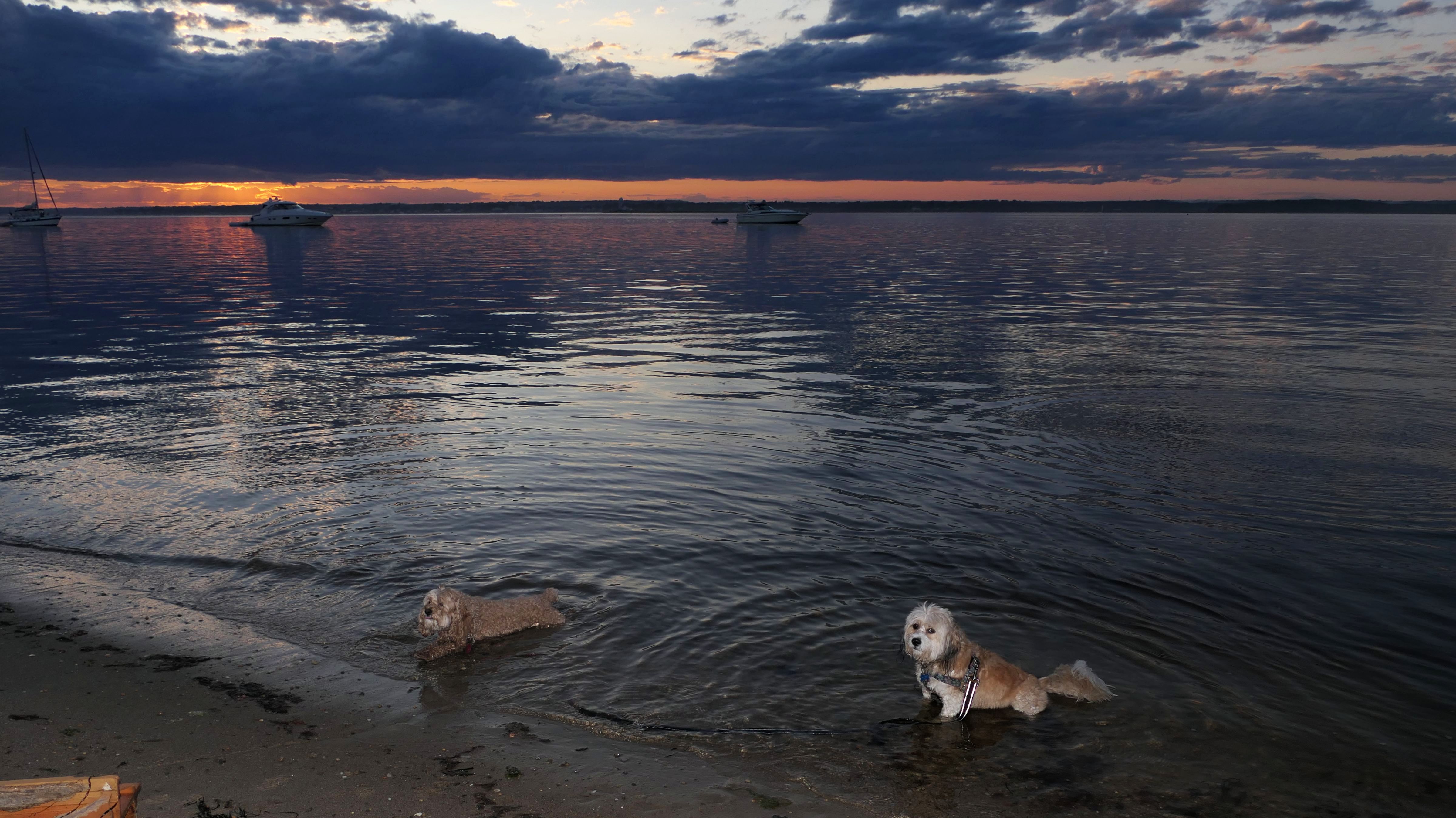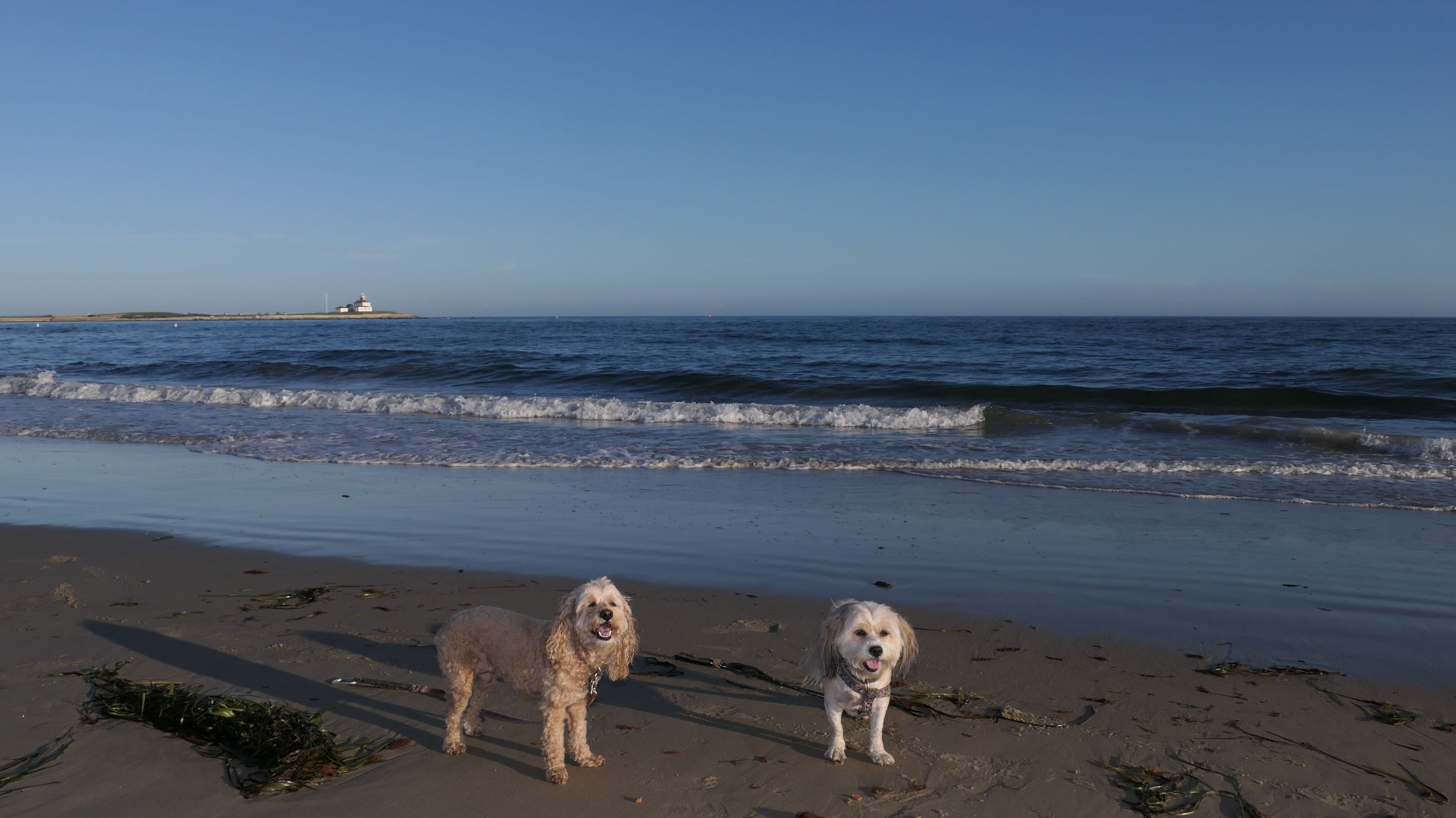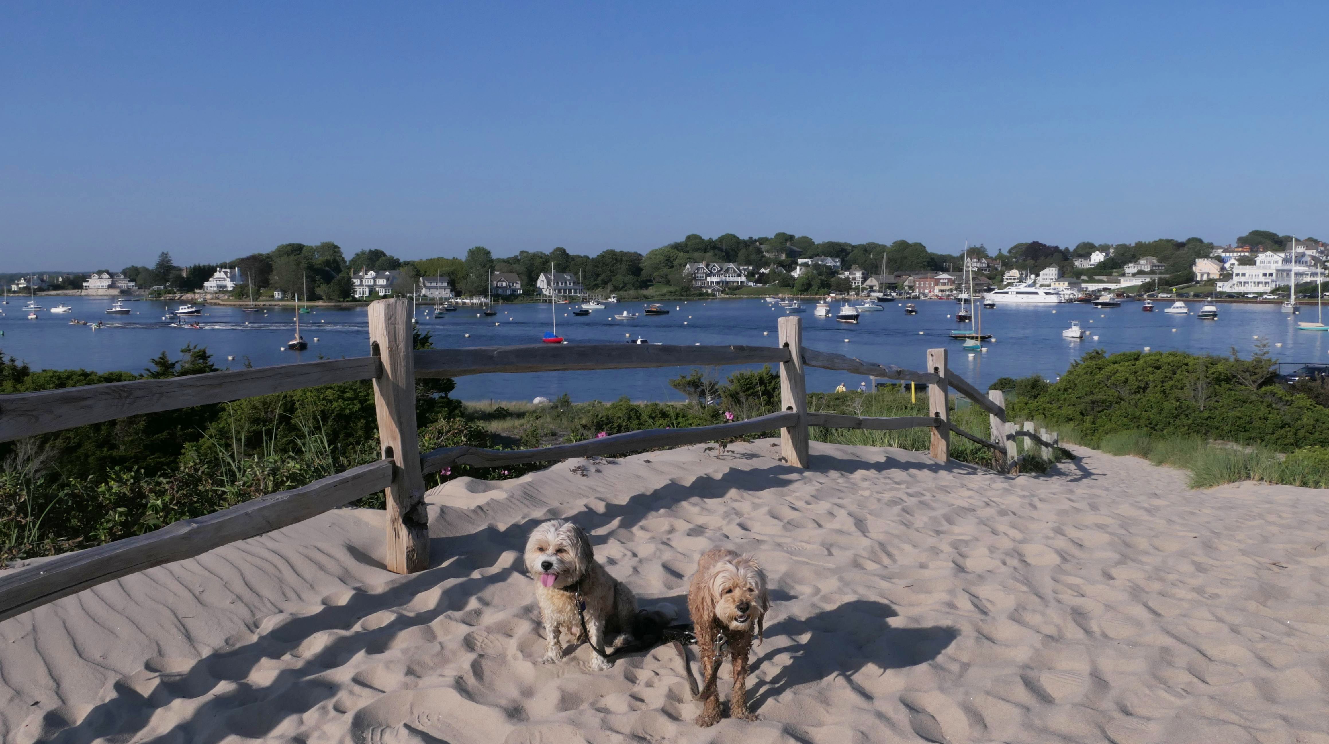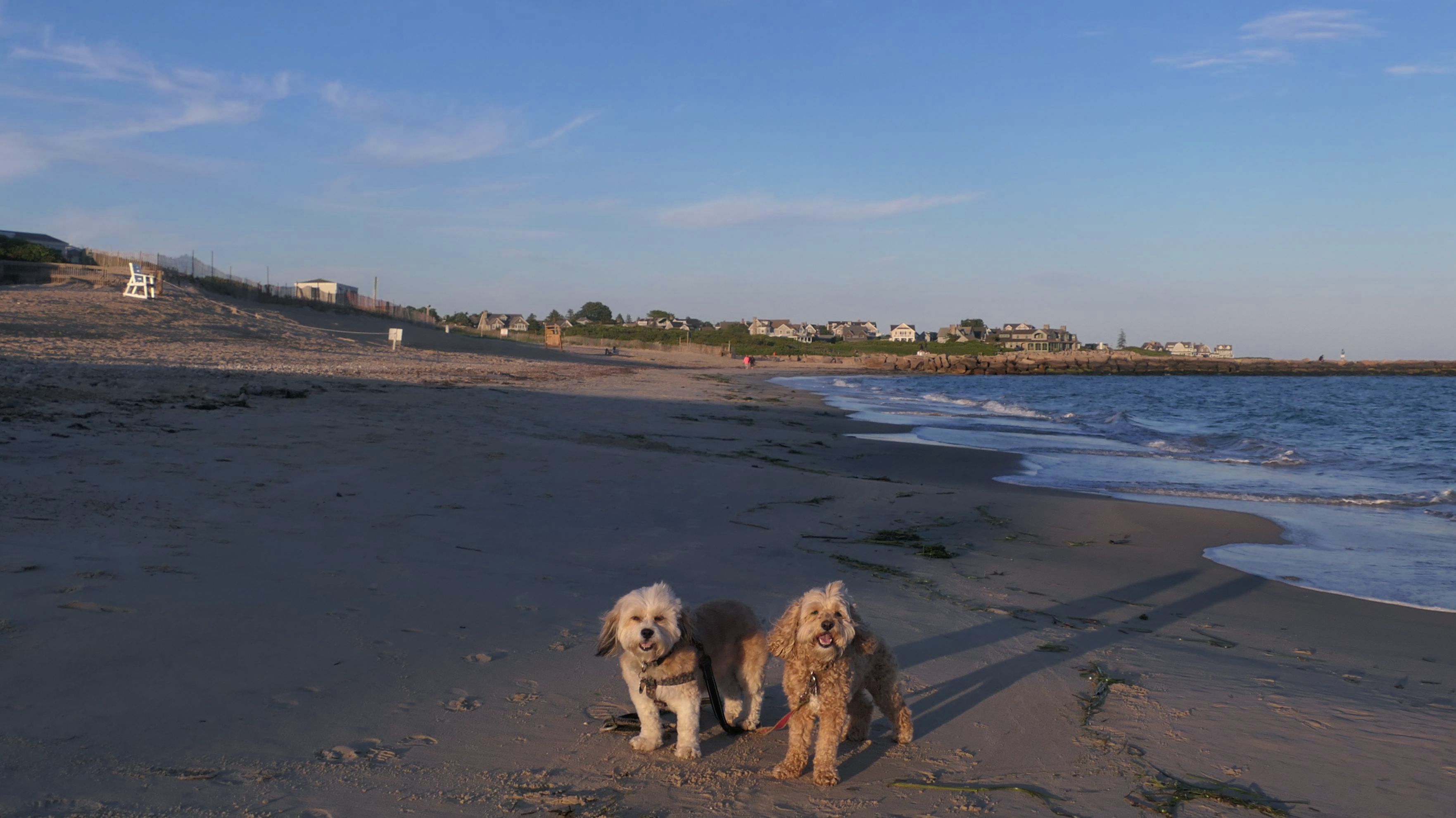 It was the hottest day of the year, and this was our final stop. We waded through the edge of the waves, walking about a half mile up the beach before turing around and heading back to Watch Hill. We've been here a bunch of times before. It's one of our favorite places, and dogs are allowed after 6PM during the summer months. This was a nice way to wrap up a very busy day that started in Narragansett and ended here.