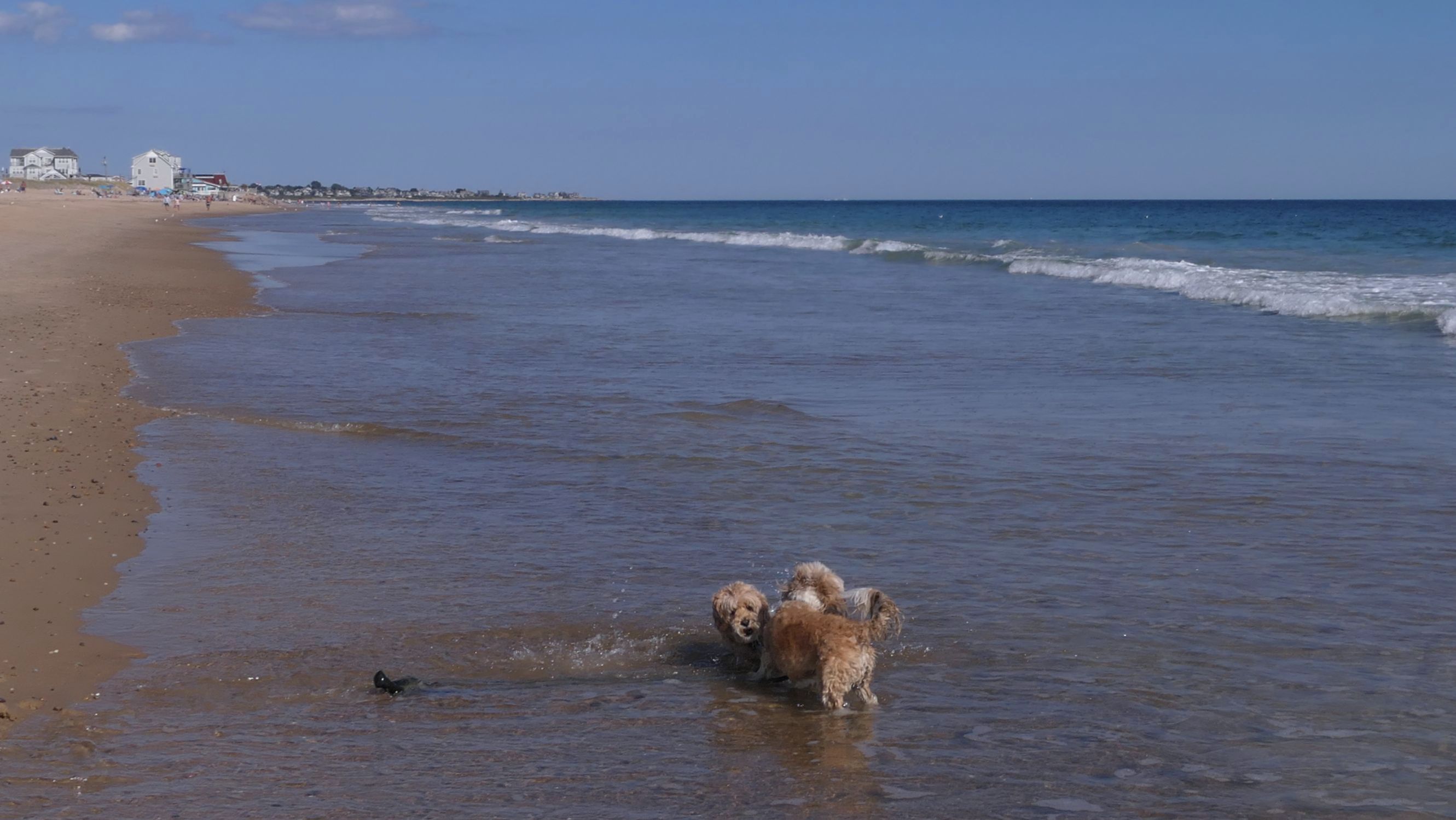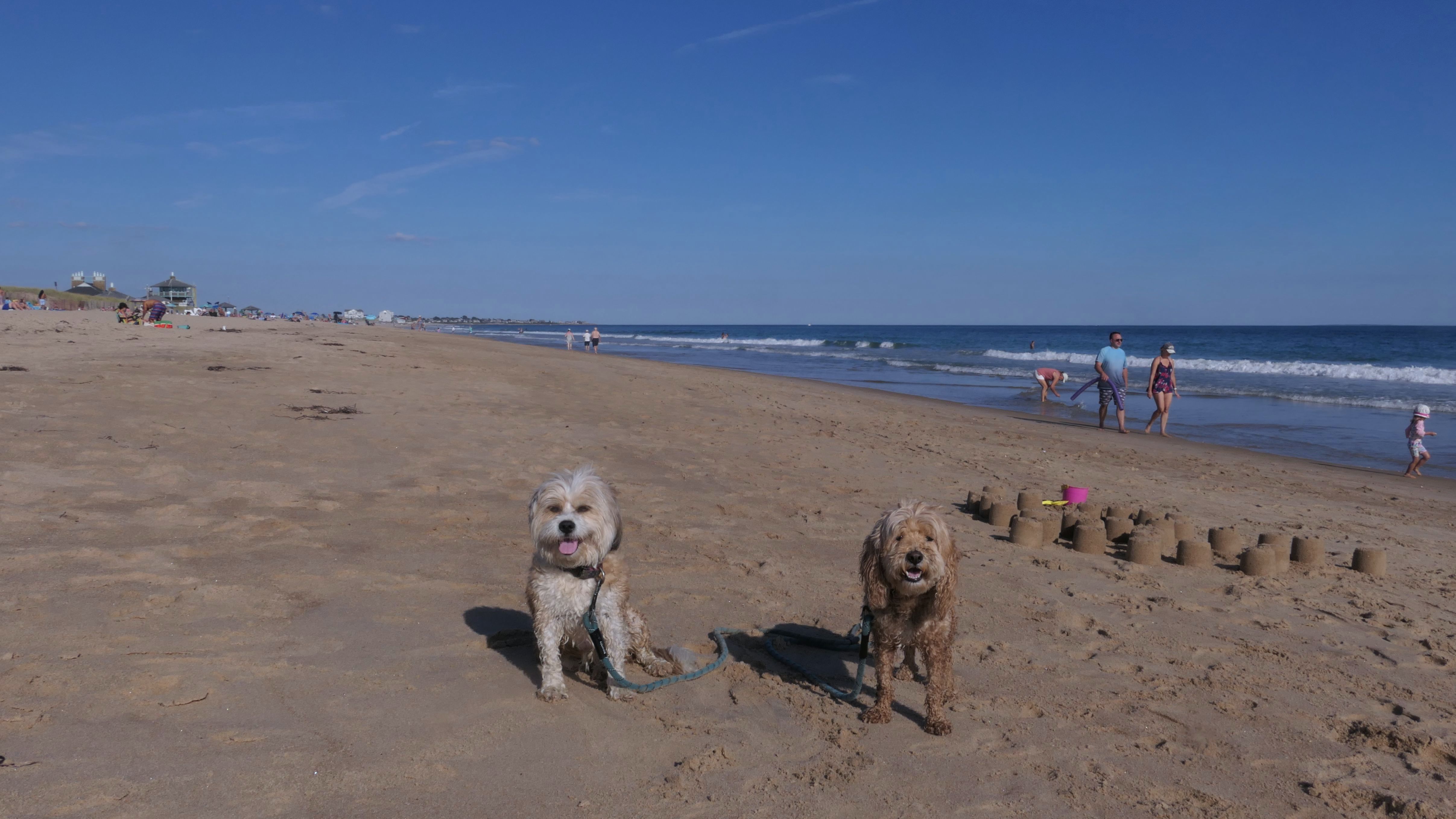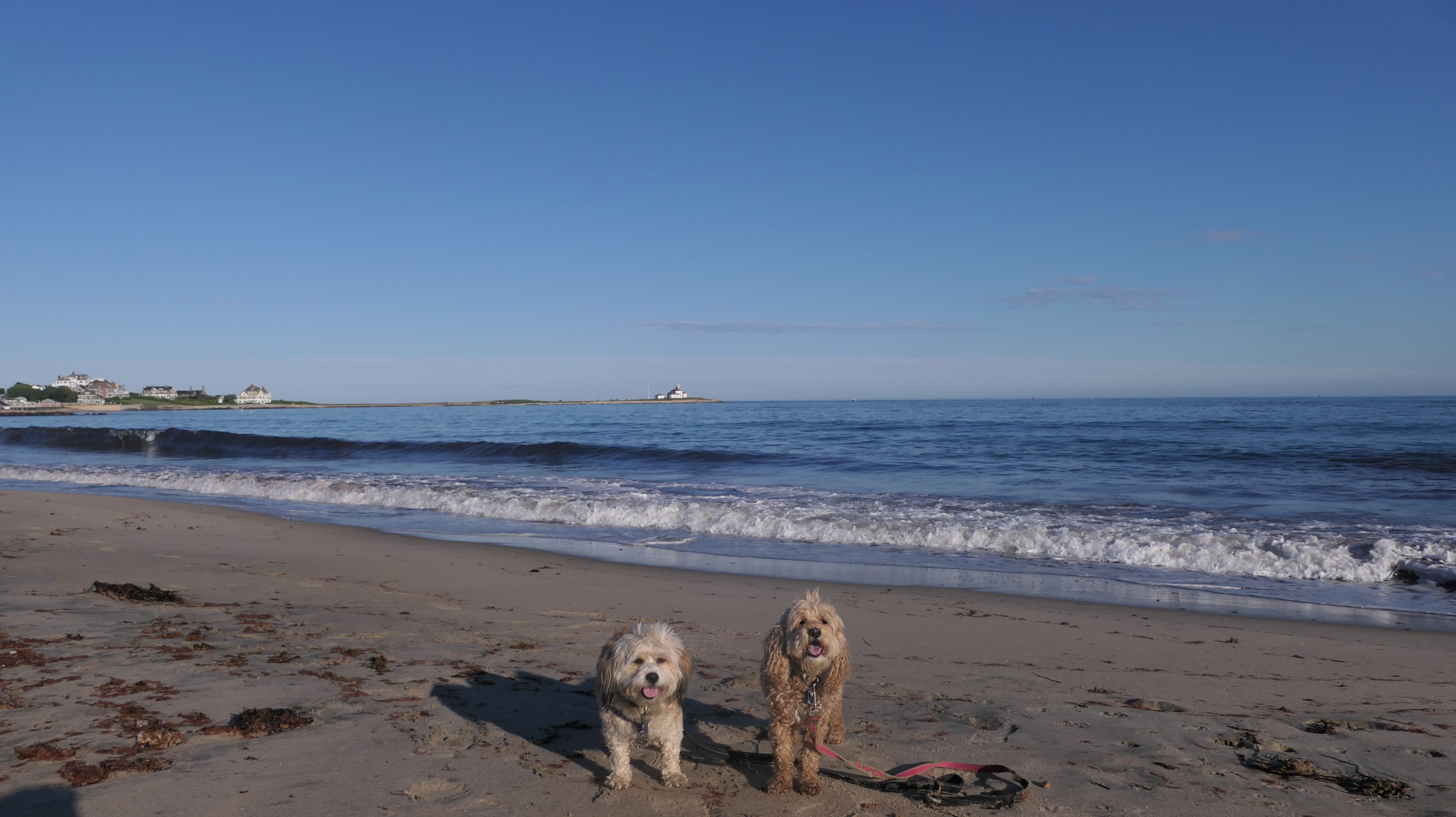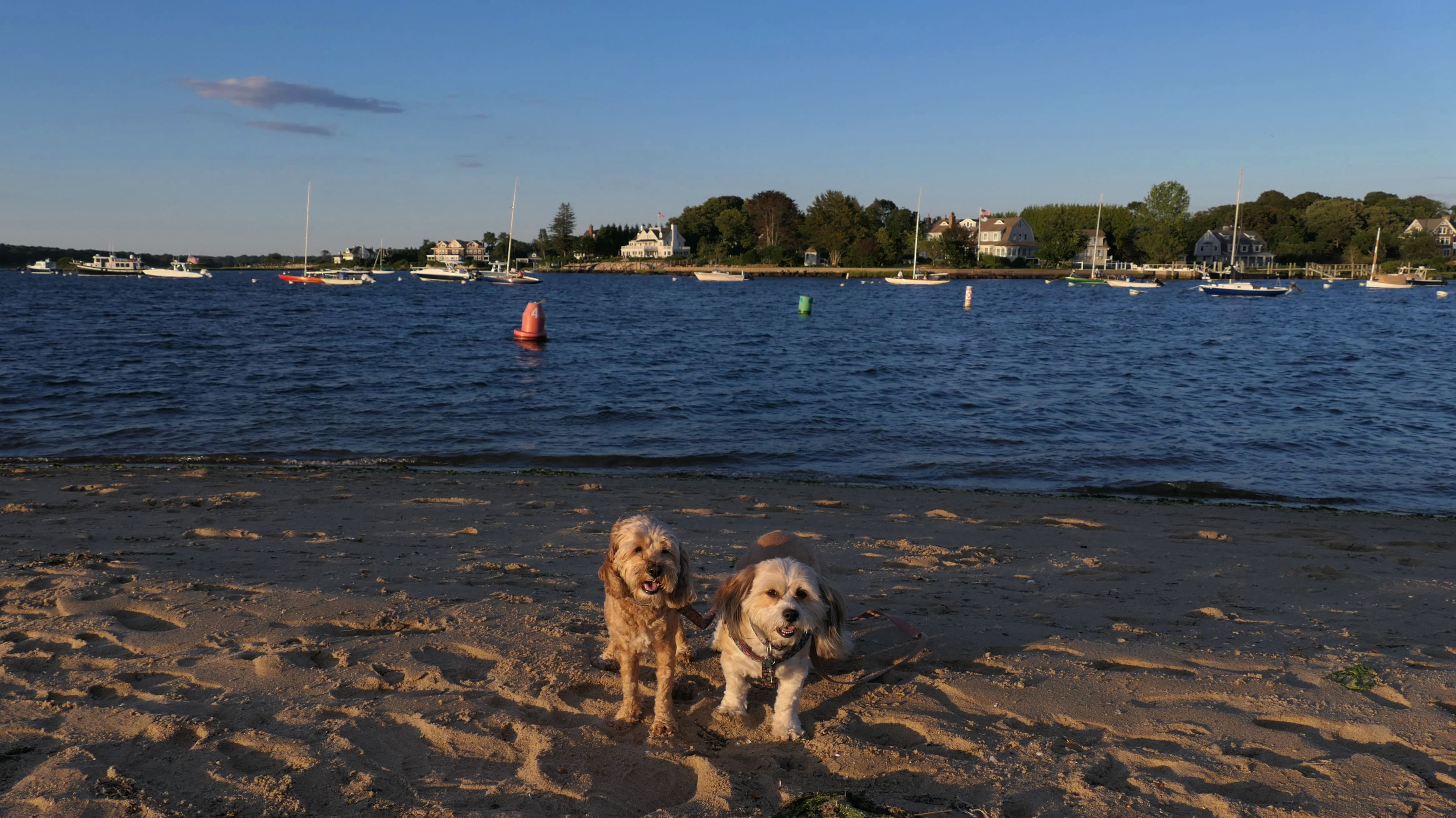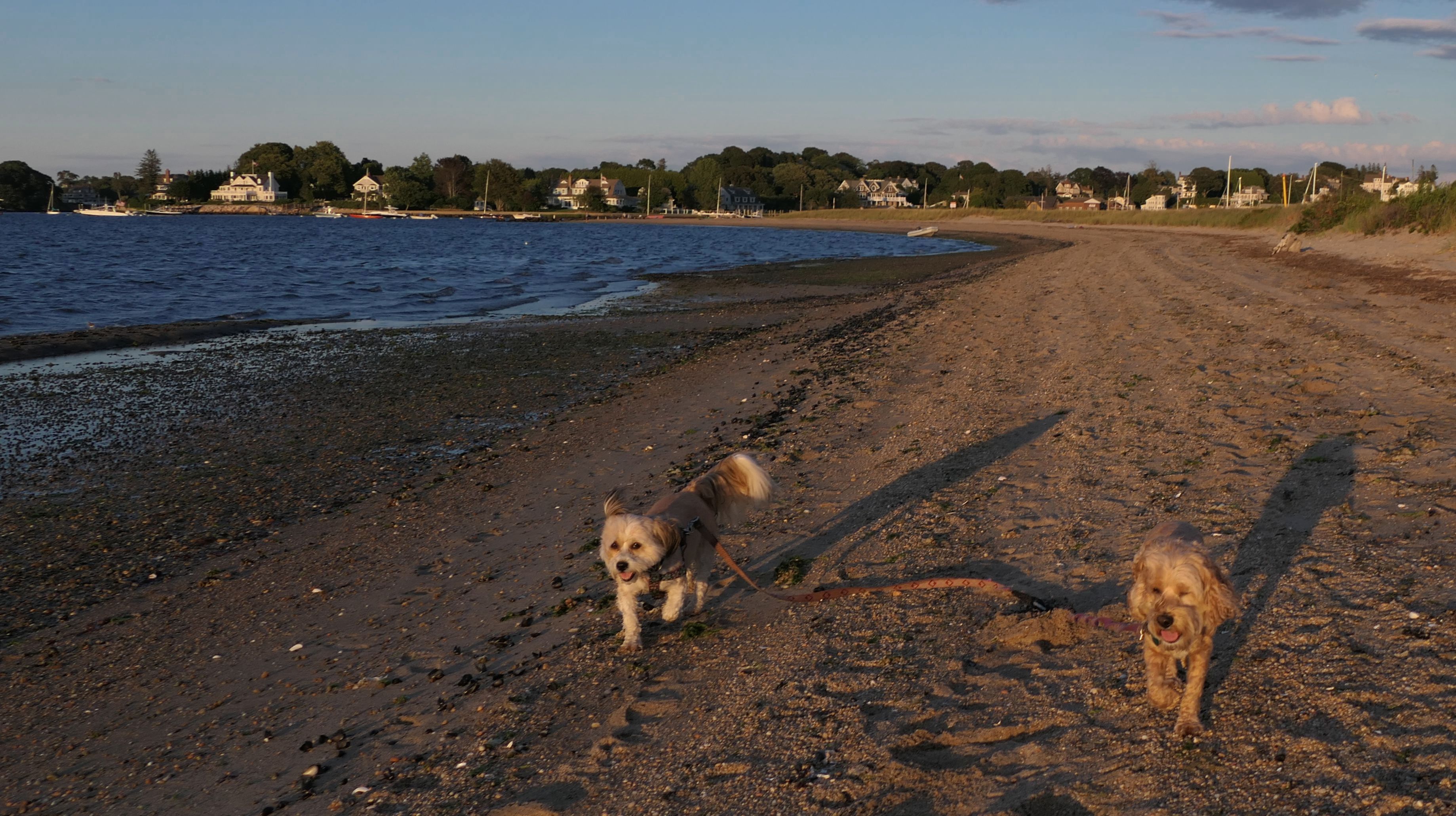 It was the hottest day of the year, and this was our final stop. We waded through the edge of the waves, walking about a half mile up the beach before turing around and heading back to Watch Hill. We've been here a bunch of times before. It's one of our favorite places, and dogs are allowed after 6PM during the summer months. This was a nice way to wrap up a very busy day that started in Narragansett and ended here.