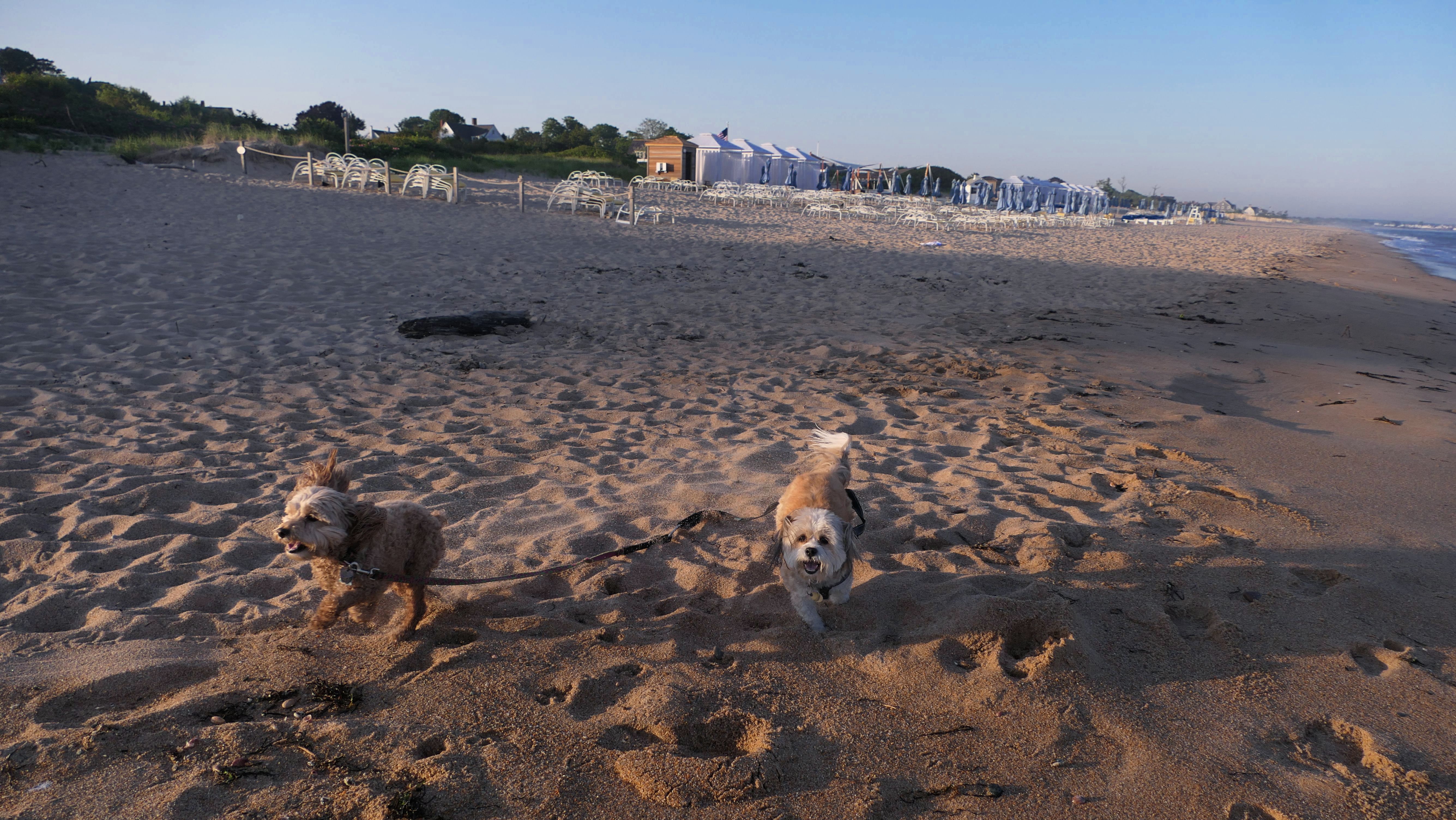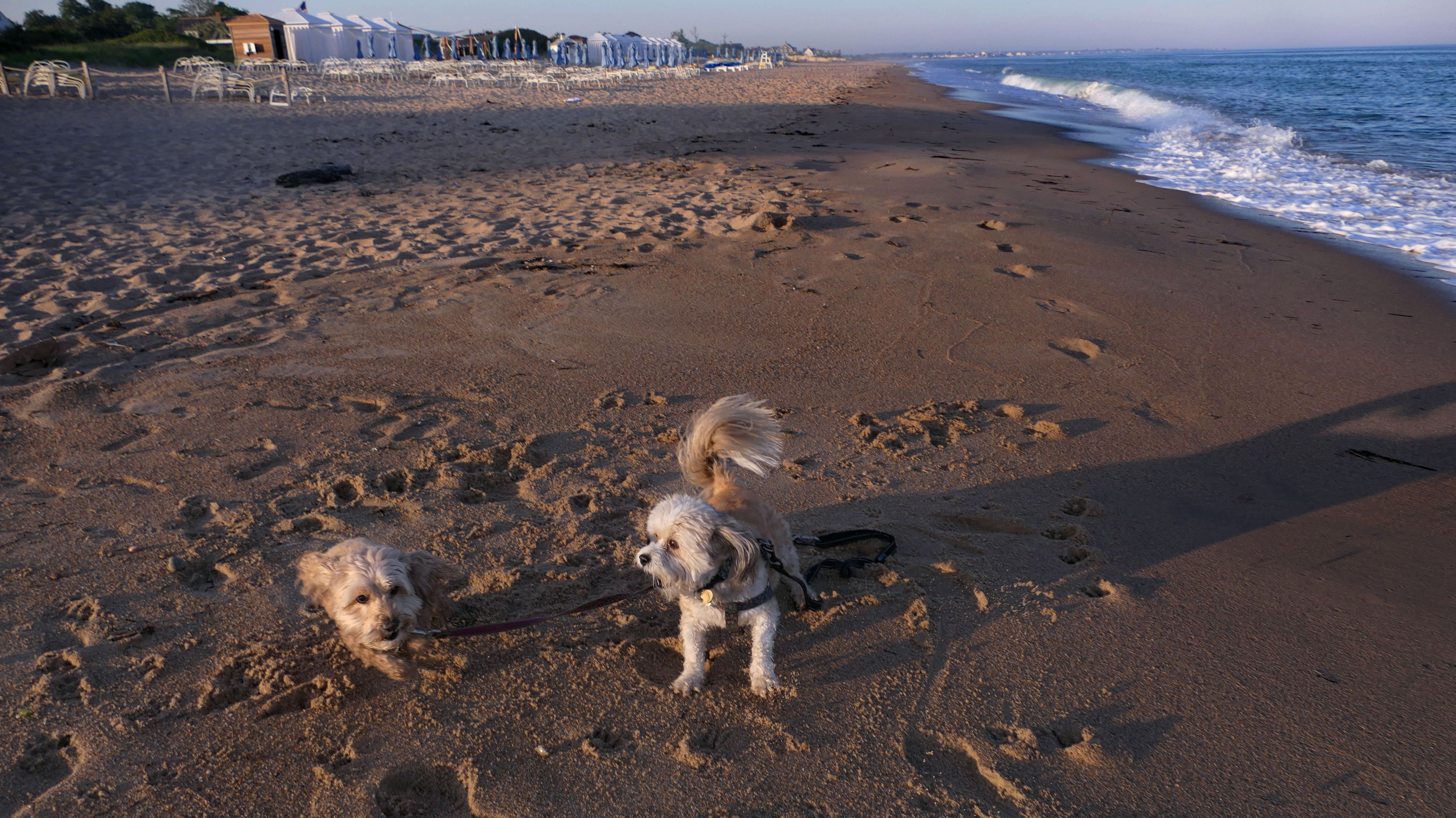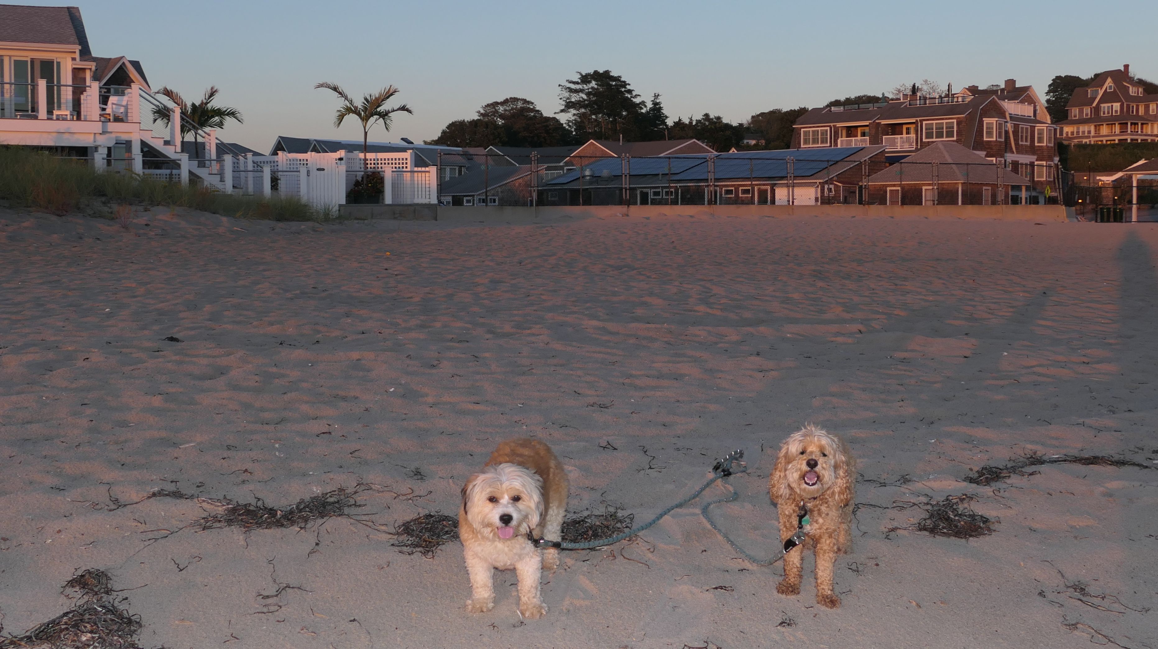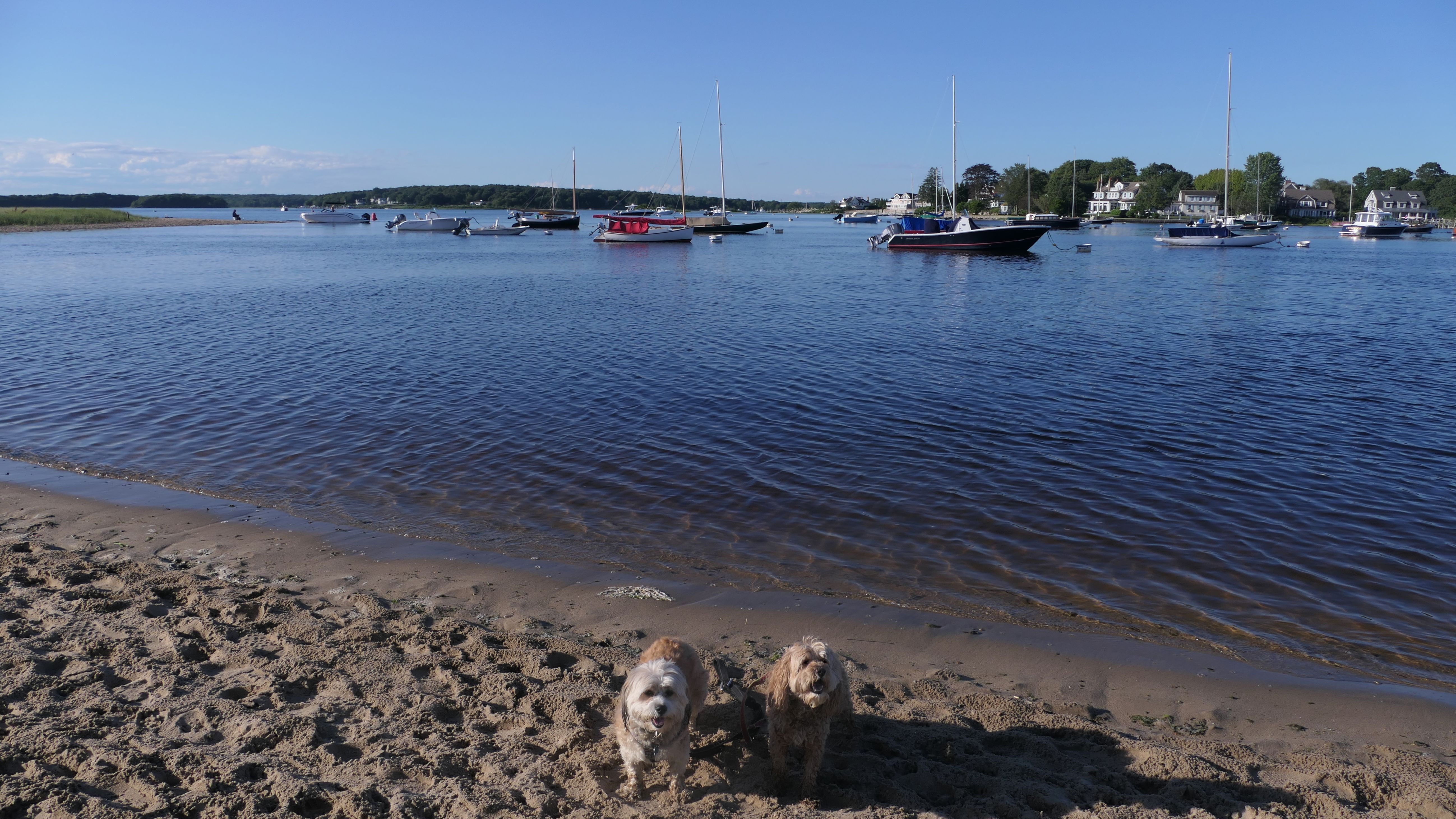 It was the hottest day of the year, and this was our final stop. We waded through the edge of the waves, walking about a half mile up the beach before turing around and heading back to Watch Hill. We've been here a bunch of times before. It's one of our favorite places, and dogs are allowed after 6PM during the summer months. This was a nice way to wrap up a very busy day that started in Narragansett and ended here.