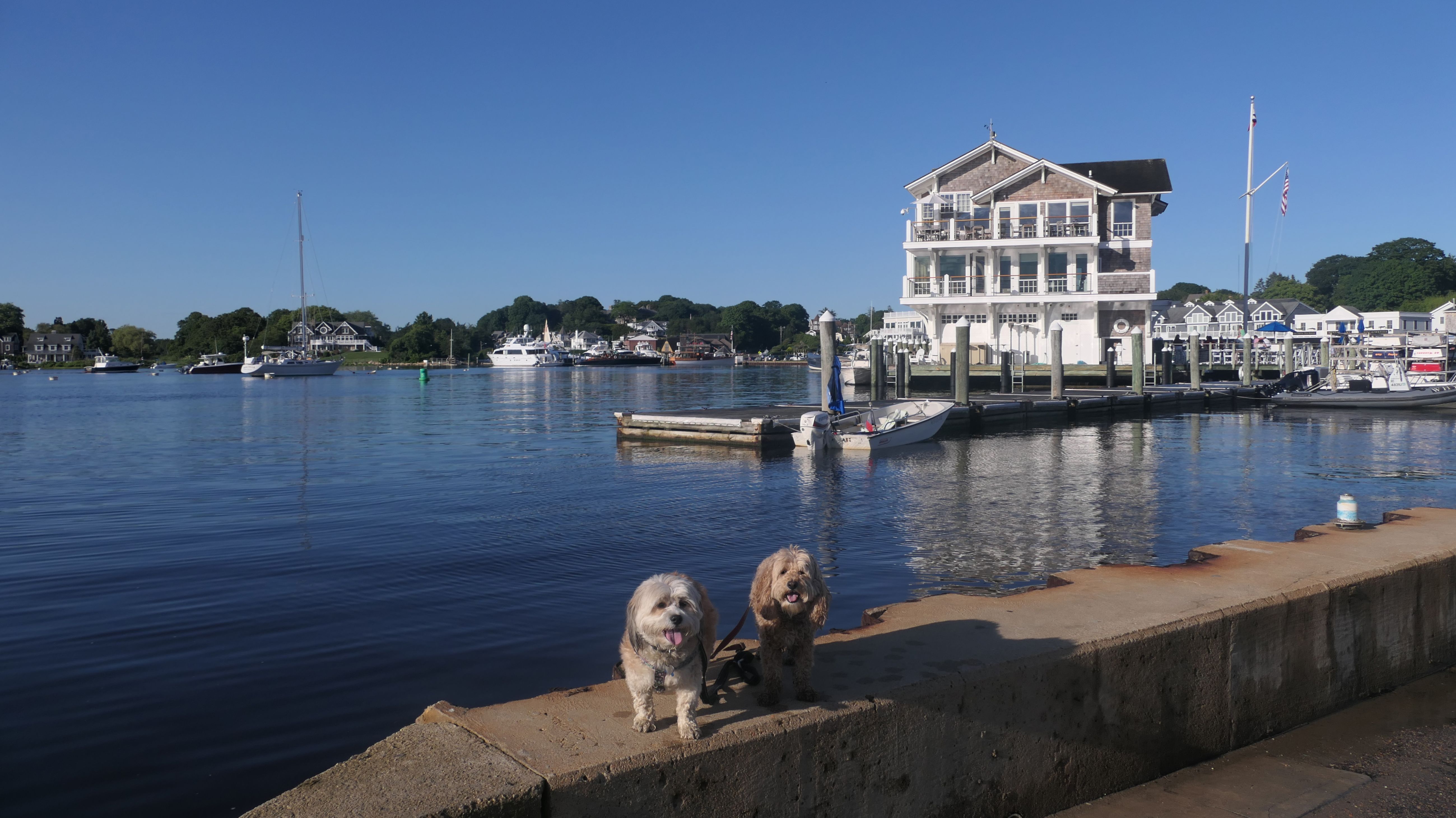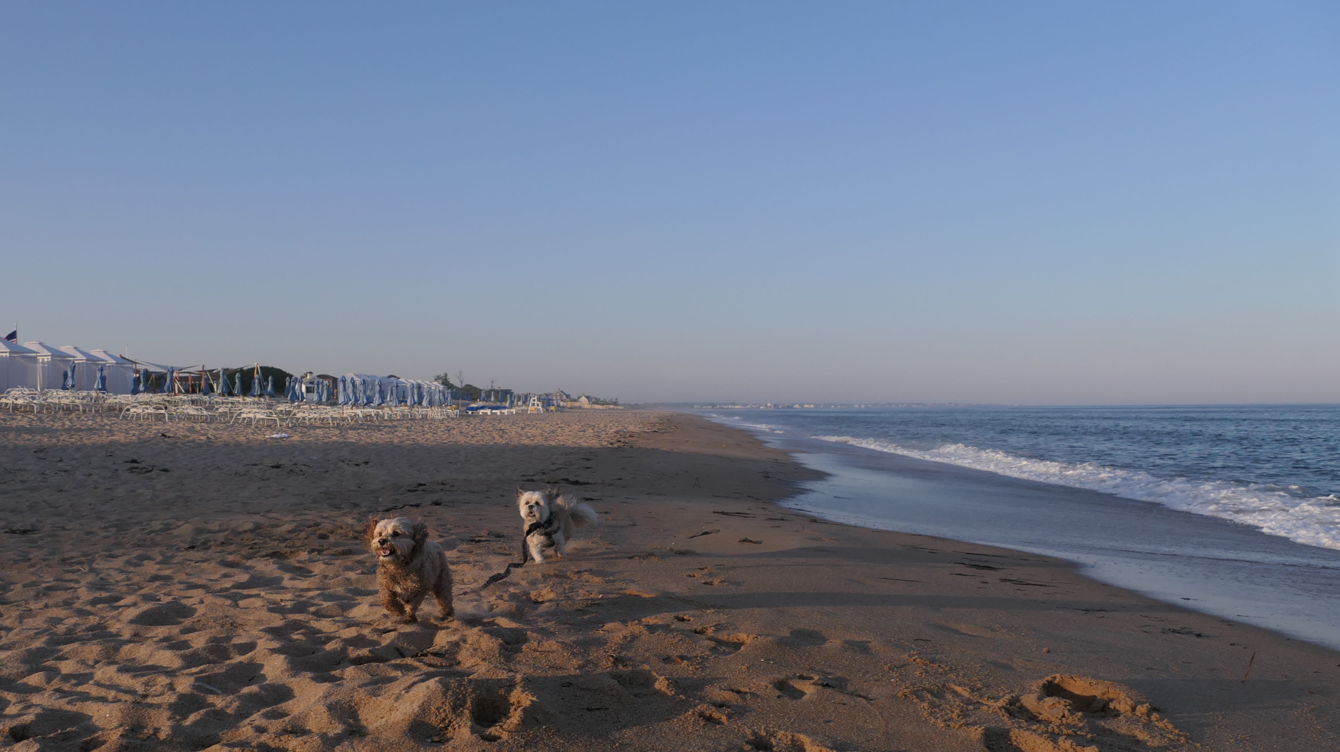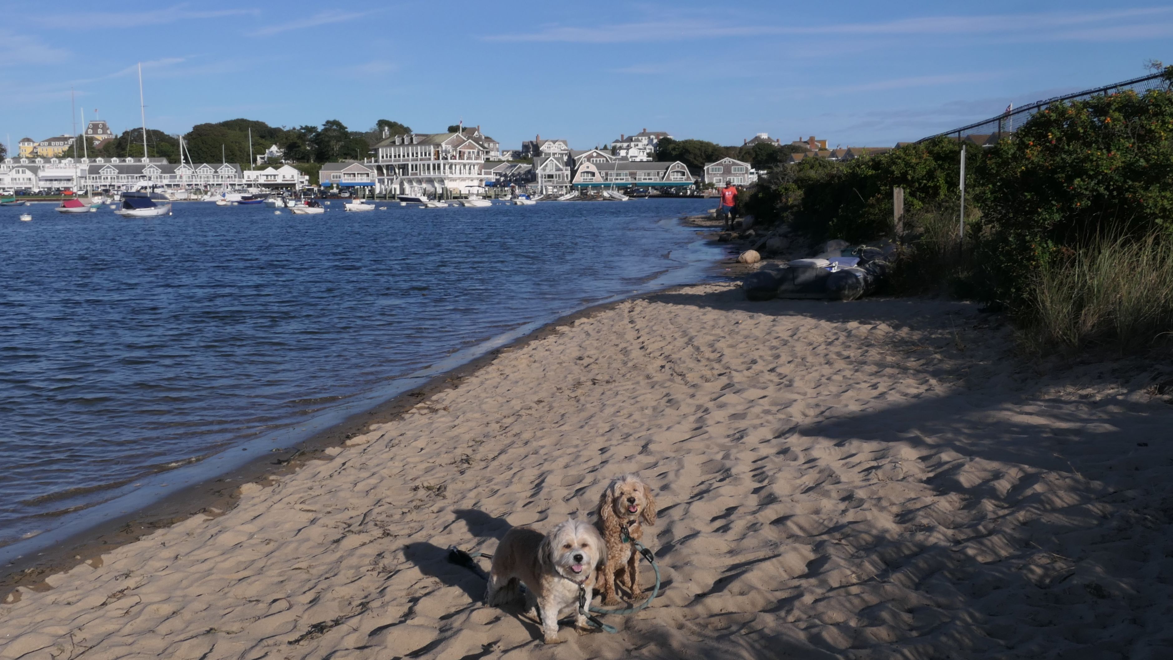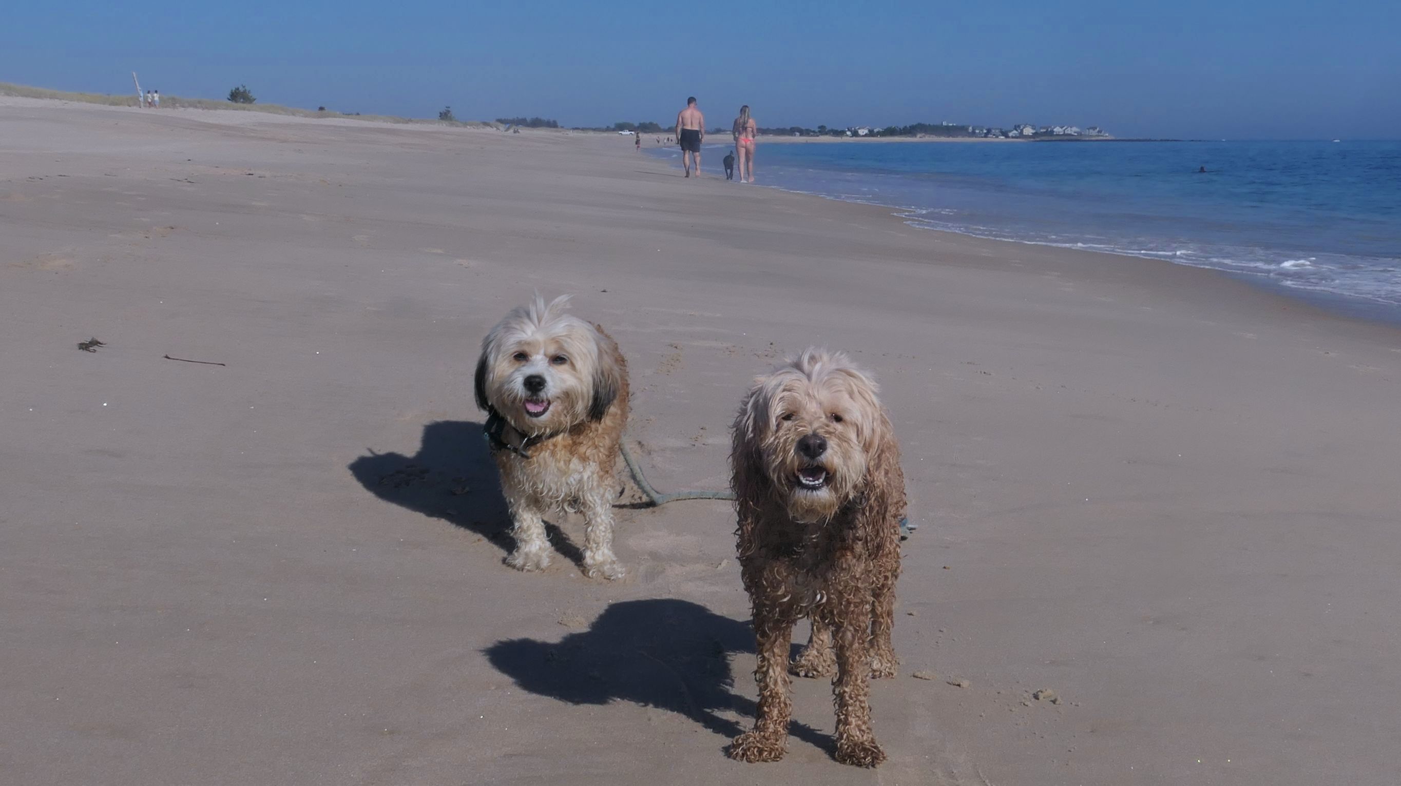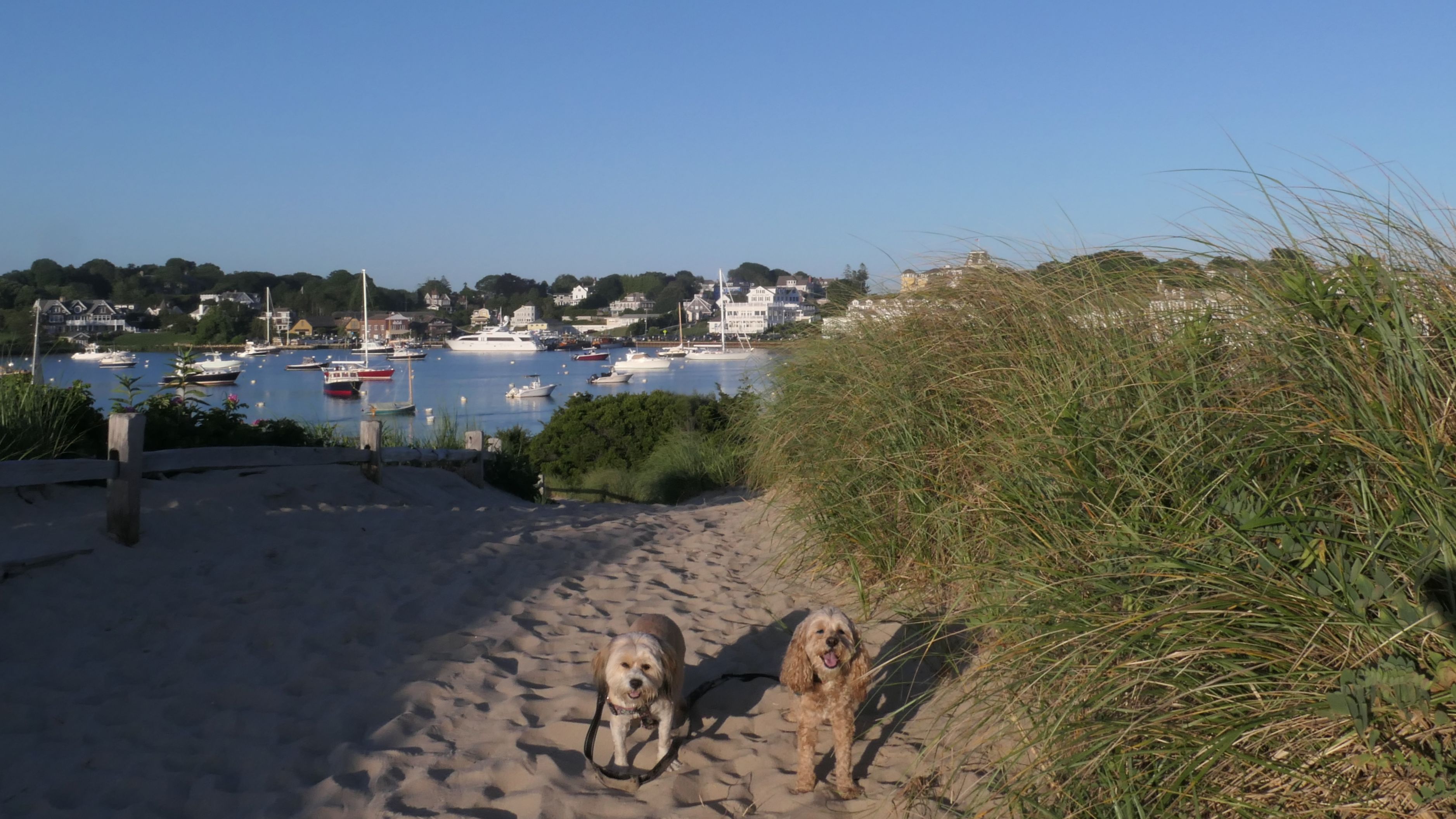 It was the hottest day of the year, and this was our final stop. We waded through the edge of the waves, walking about a half mile up the beach before turing around and heading back to Watch Hill. We've been here a bunch of times before. It's one of our favorite places, and dogs are allowed after 6PM during the summer months. This was a nice way to wrap up a very busy day that started in Narragansett and ended here.