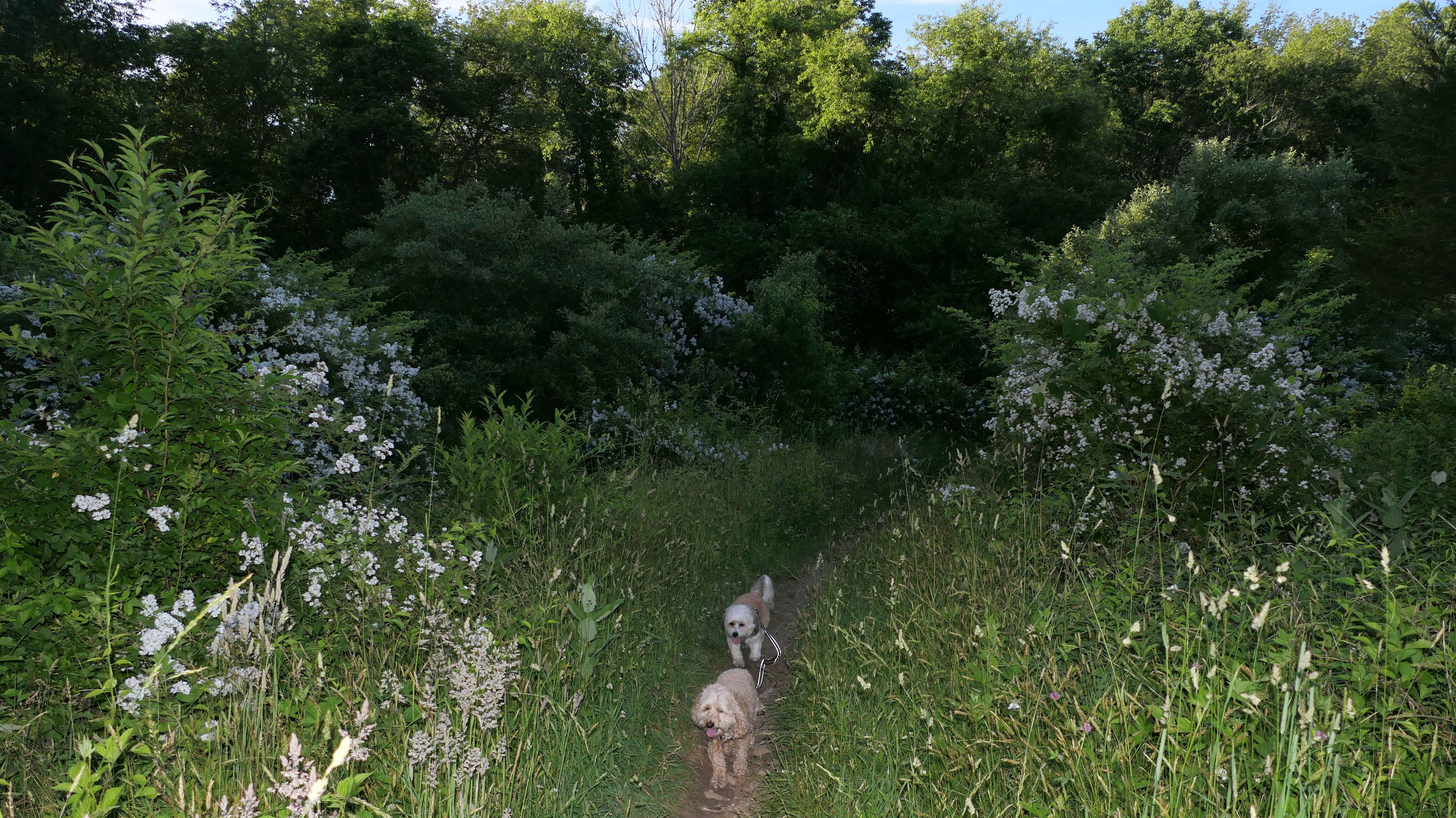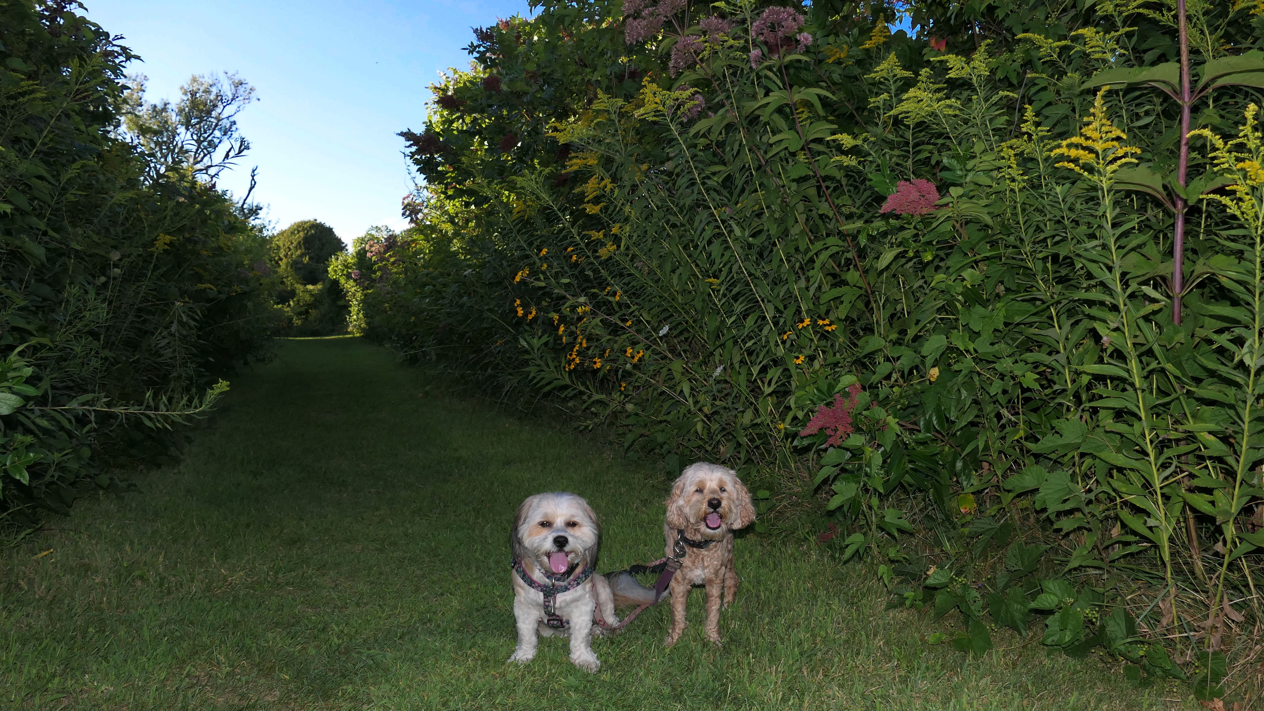 This is a great trail through mostly open fields surrounded by wildflowers. Most of the trail is unshaded, but we were here late in the day and the sun was low in the sky. It's the end of August and the sun is starting to set much earlier. We walked a loop that was just over a mile. We saw a fox and a bunny. I'm guessing that the fox was hunting the bunny. There are also farm animals toward the start of the trail.