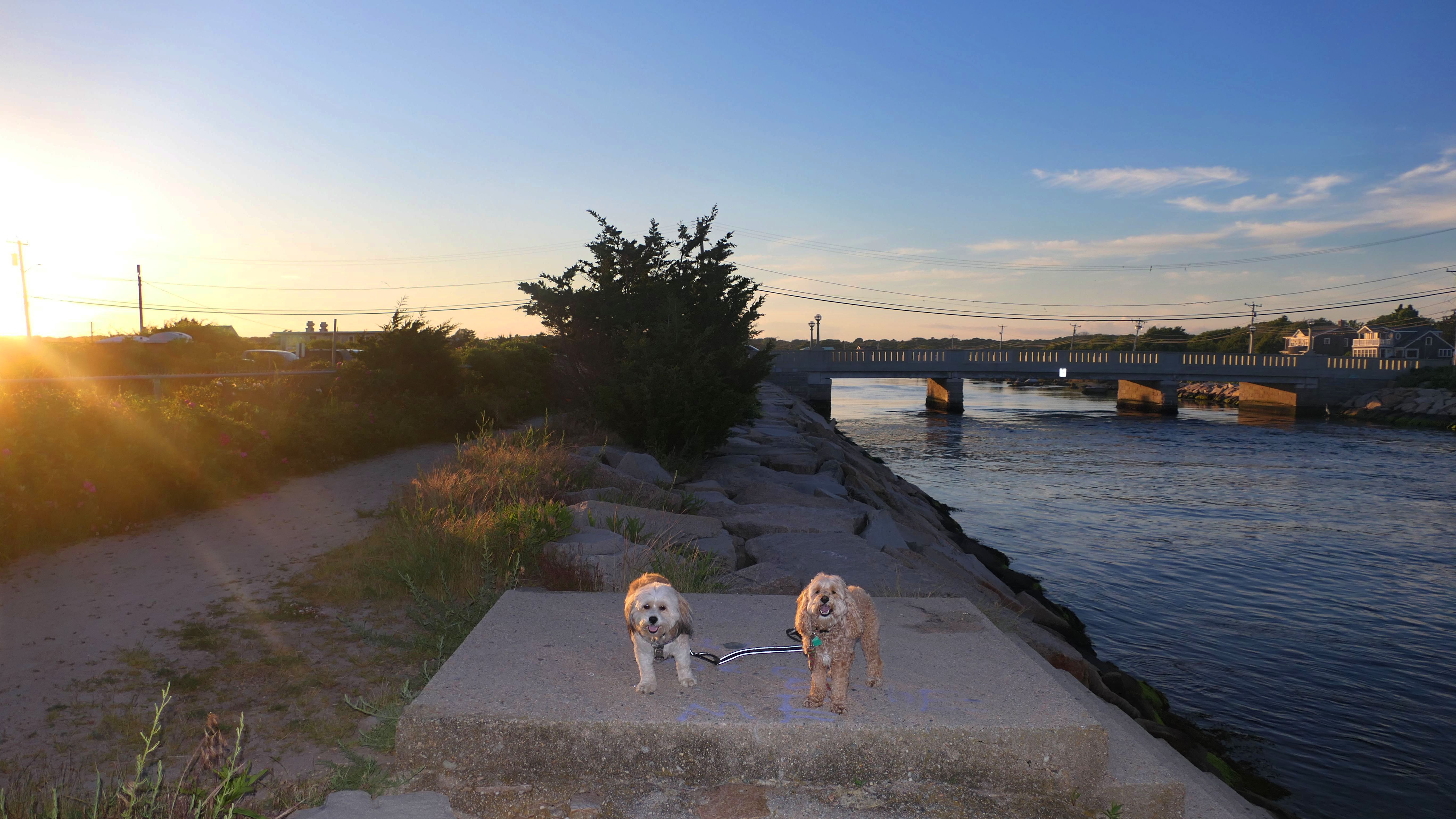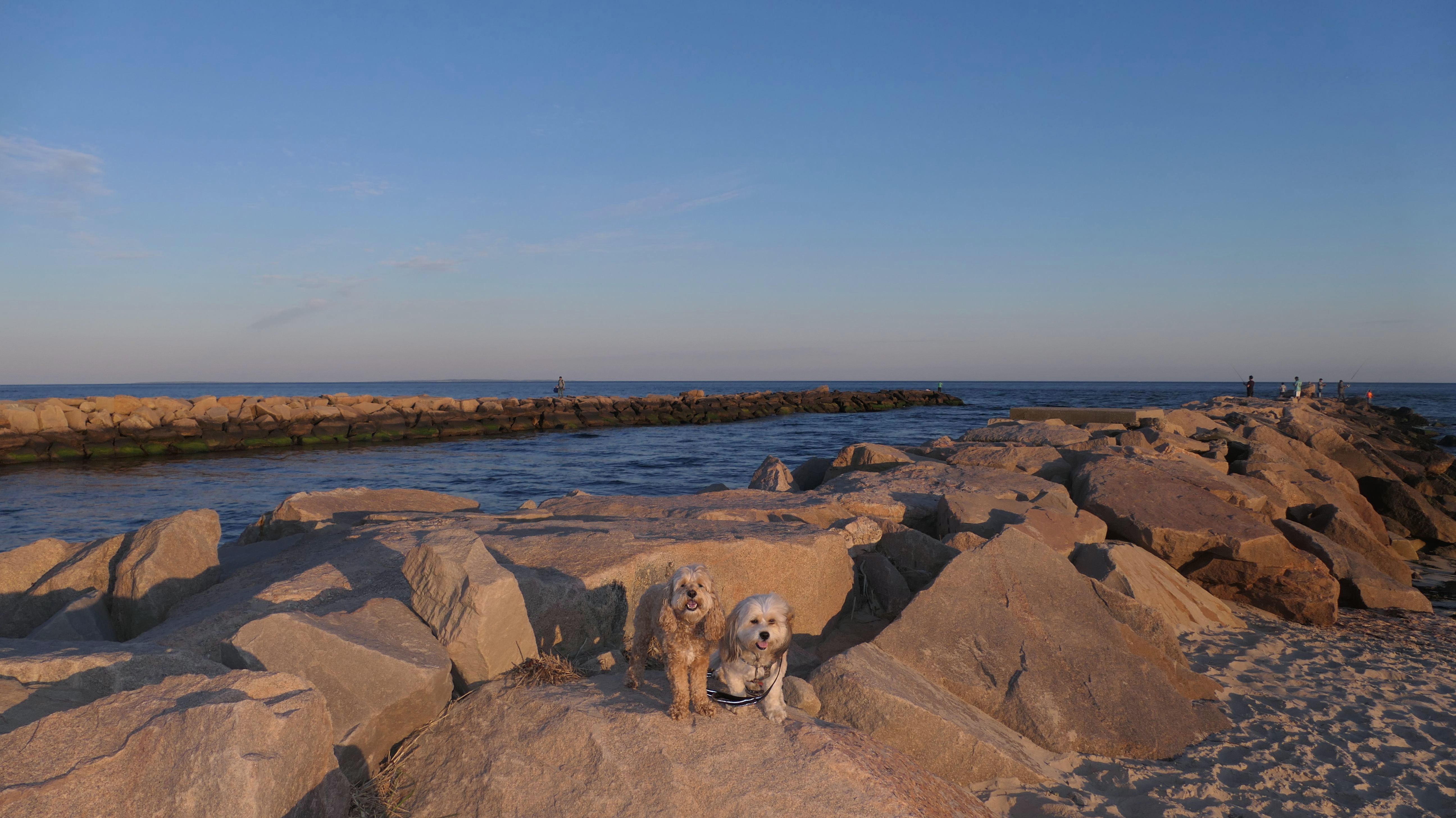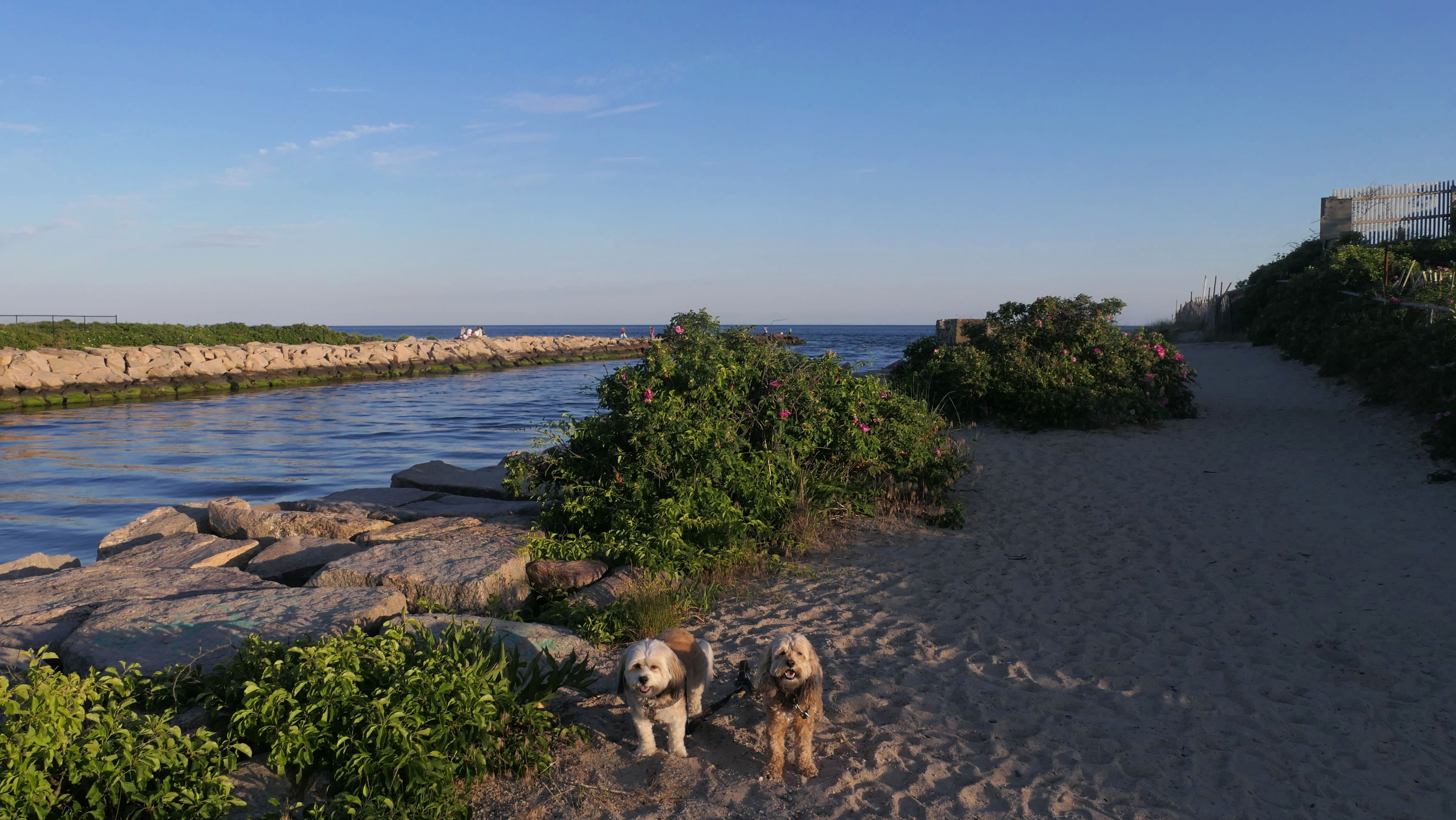 We came here after our Bradford Preserve adventure. It's hard for me to visit Westerly and not at least make a short trip to a beach! We've actually been here before. We passed through this beach on our Westerly Town Beach Christmas Day Adventure. This time we went for a short walk, not venturing much past the Dunes Park section of beach. There's a state run fishing area with a small parking area on either side of the breachway. We parked at the one on the west side of the breachway, and accessed the beach via a short trail that runs along side the breachway. Dogs are allowed on Westerly Town Beaches in the summer time after 6PM, but it was nearly 7:30 when we arrived. We were only here for a little less than a half hour, but it's always nice to take a stroll on a beach!