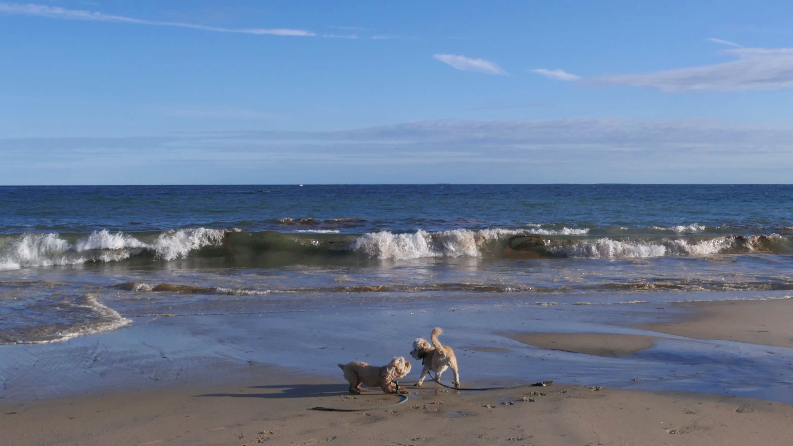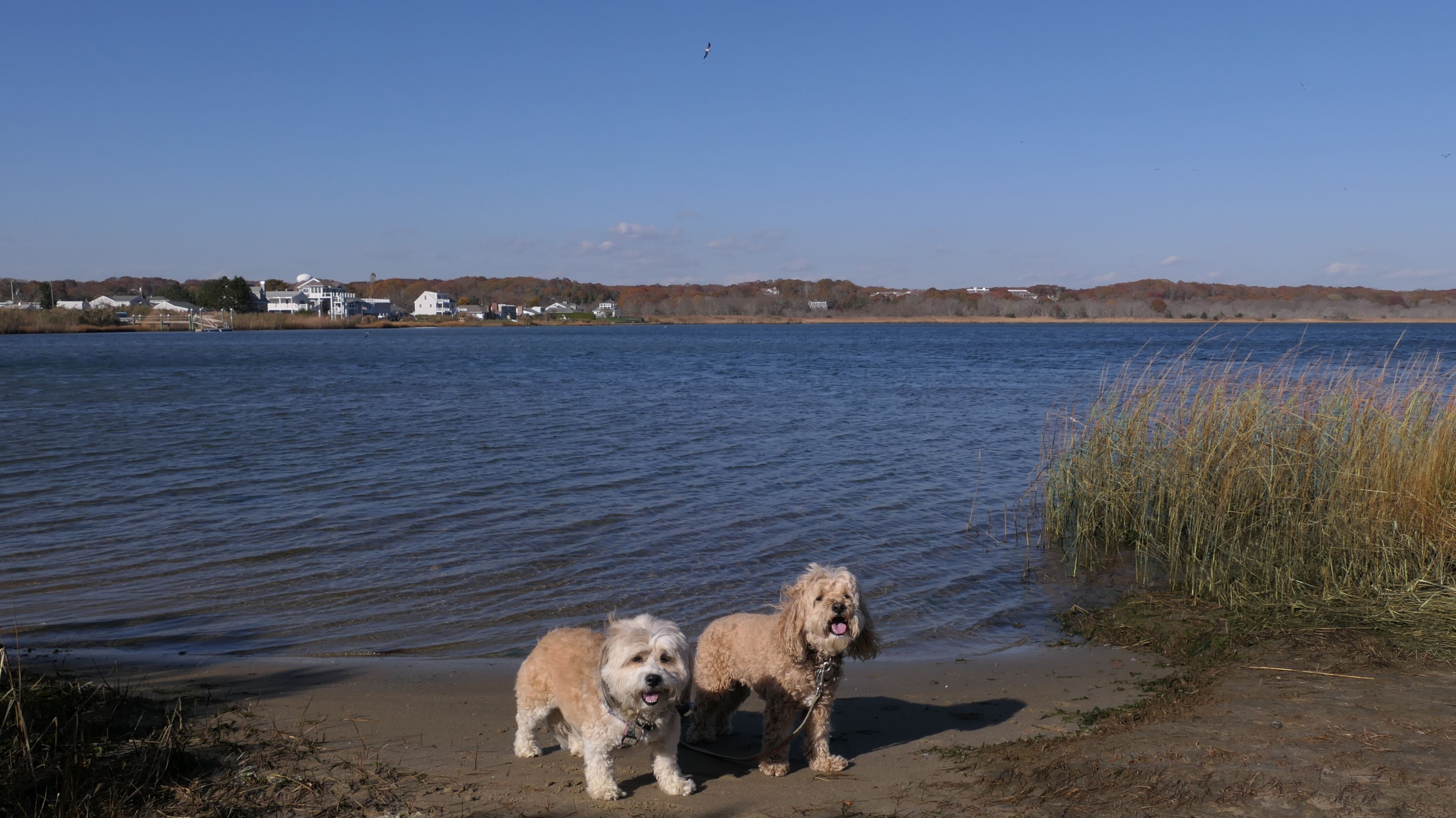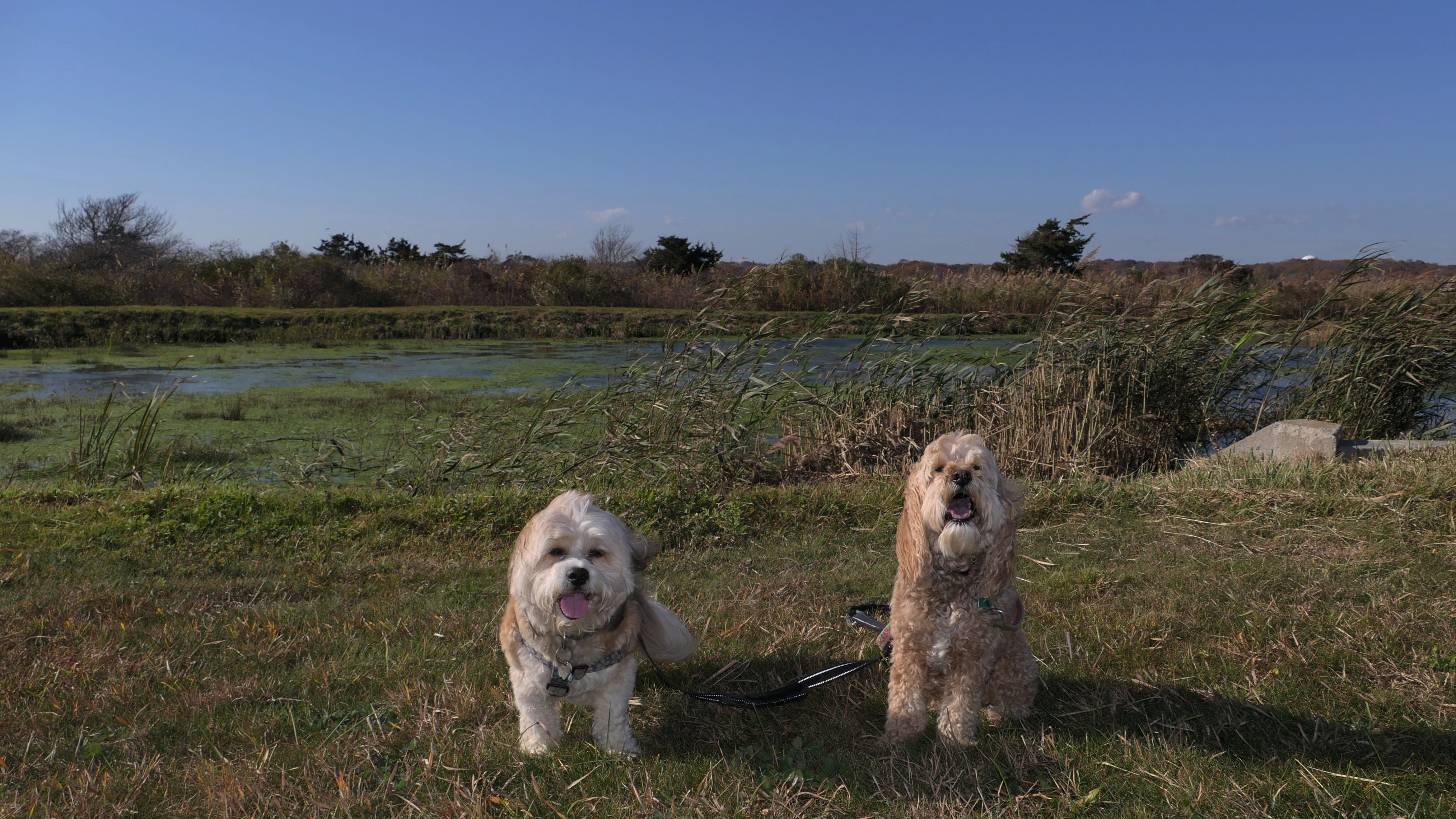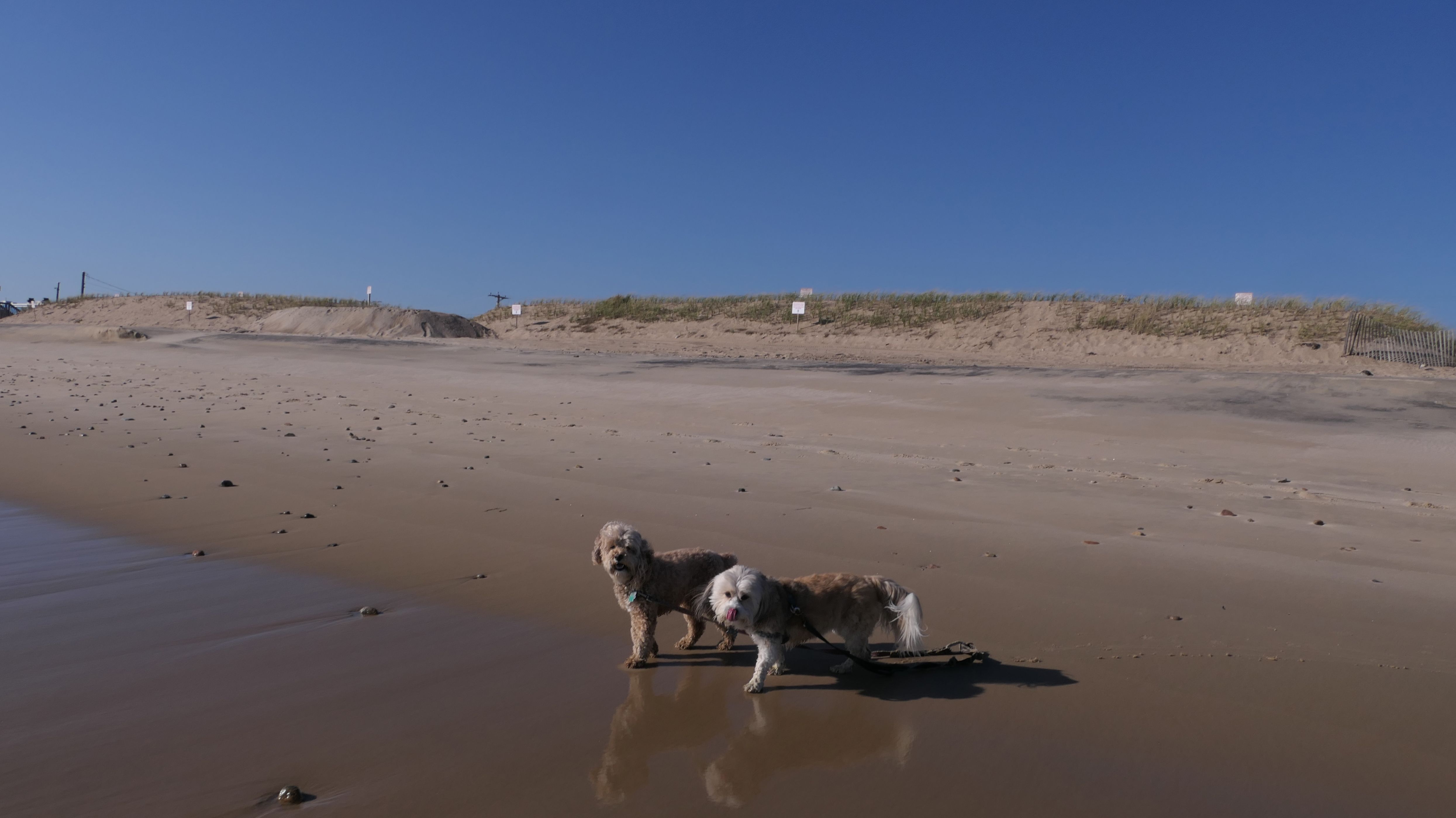 We arrived here right at high tide. Even though Hurricane Erin was still far away, it was already starting to causing higher than normal tides in Southern New England. We actually had to walk through water just to get to the beach. Even on the bay side where the entrance to the conservation area is, water had overtaken most of the sand. Not only that, the parking lot was flooding as well. Of course, that didn't stop Mandy & Lexi from playing on the beach! The tides are only supposed to get worse the next few days, but at least the dogs got to run around and play on this day.
