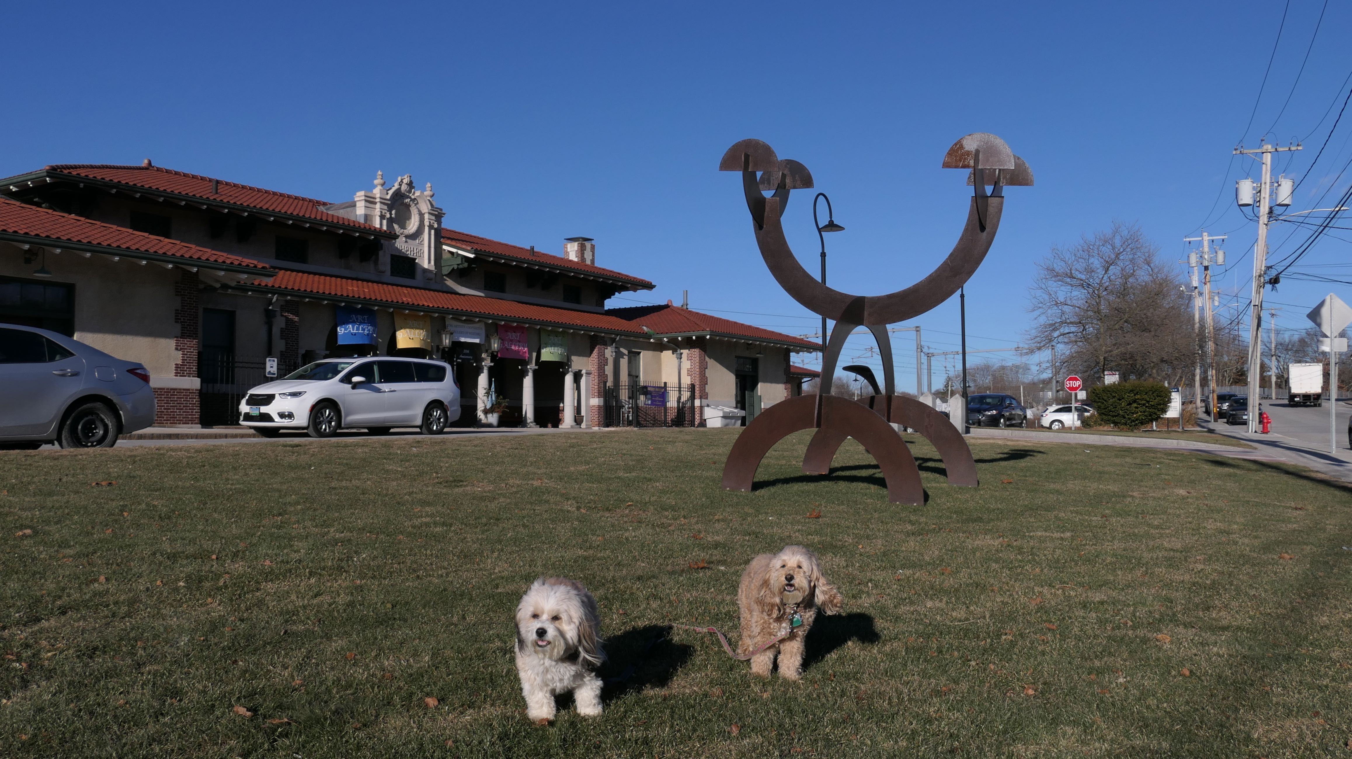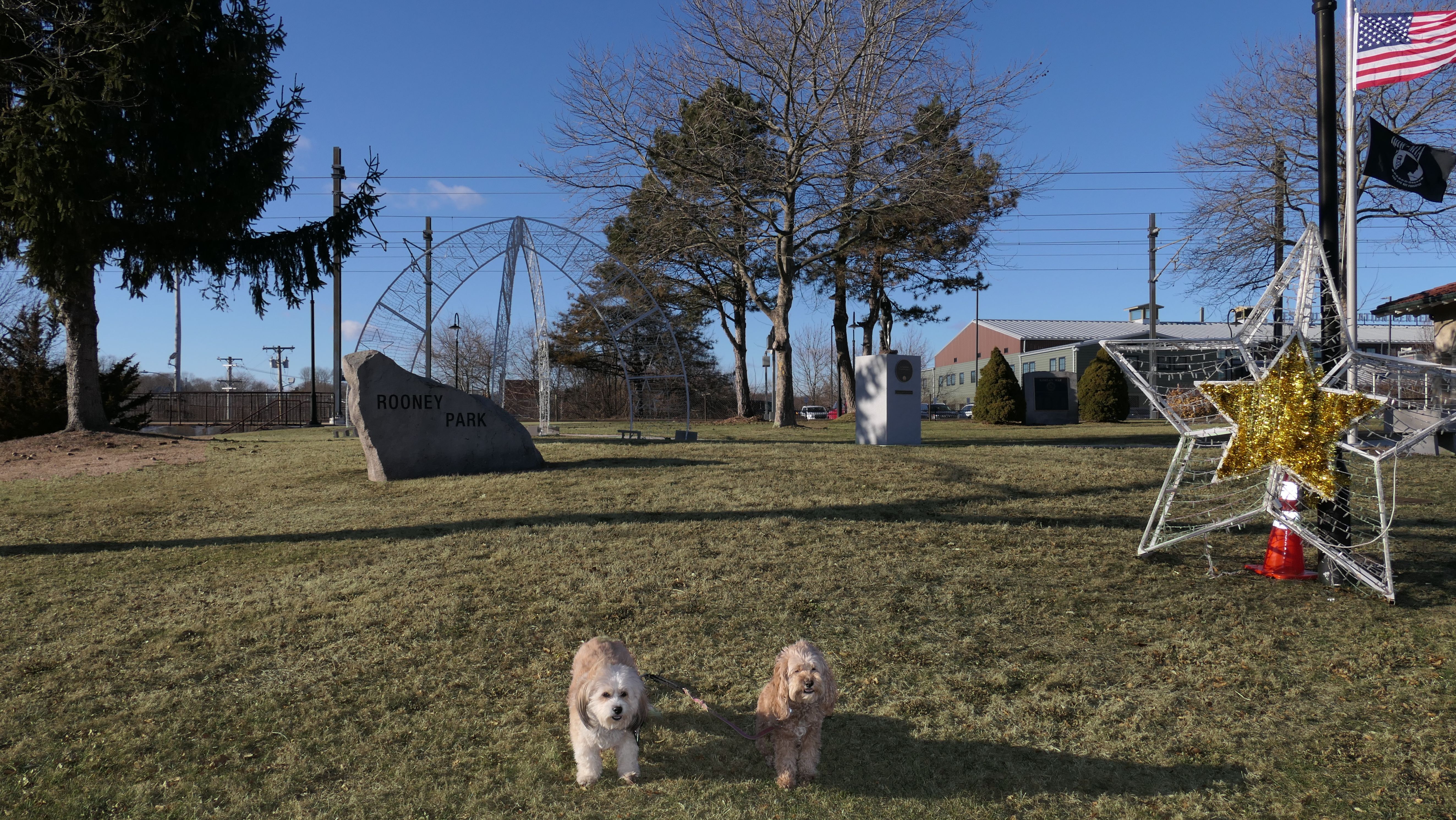 This adventure covered Rooney Park and the surrounding area. The actual park is basically just a small patch of grass next to the train station turned art gallery. We also walked a loop around the surrounding streets, covering a little over a mile. Our walk also included looping through Wilcox Park, but there's no new entry for that park, since we've covered that park thoroughly on previous trips. We did take pictures around the downtown area, and in front of the Westerly Armory, but kept the walk short because it was a very cold and windy day.