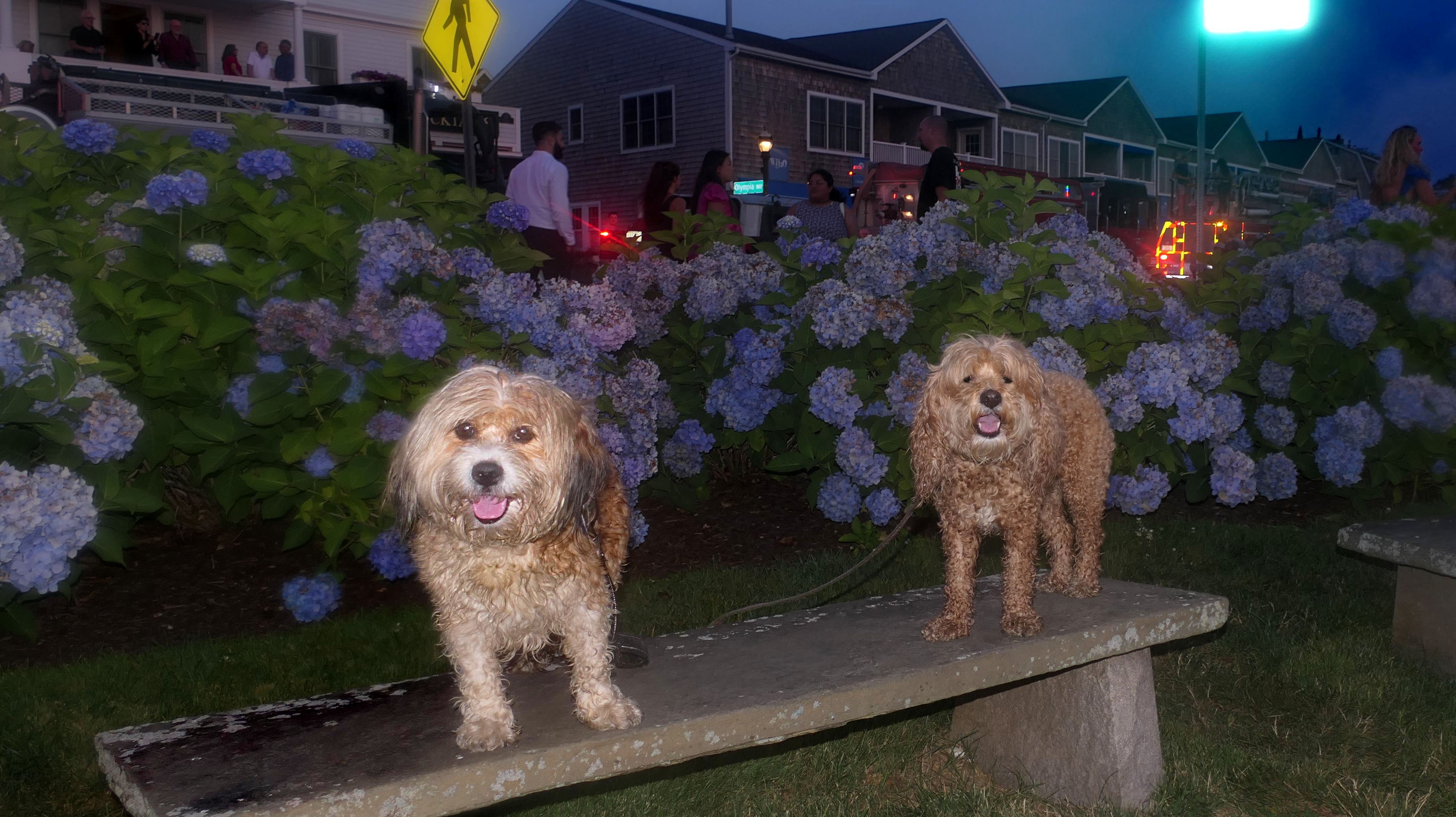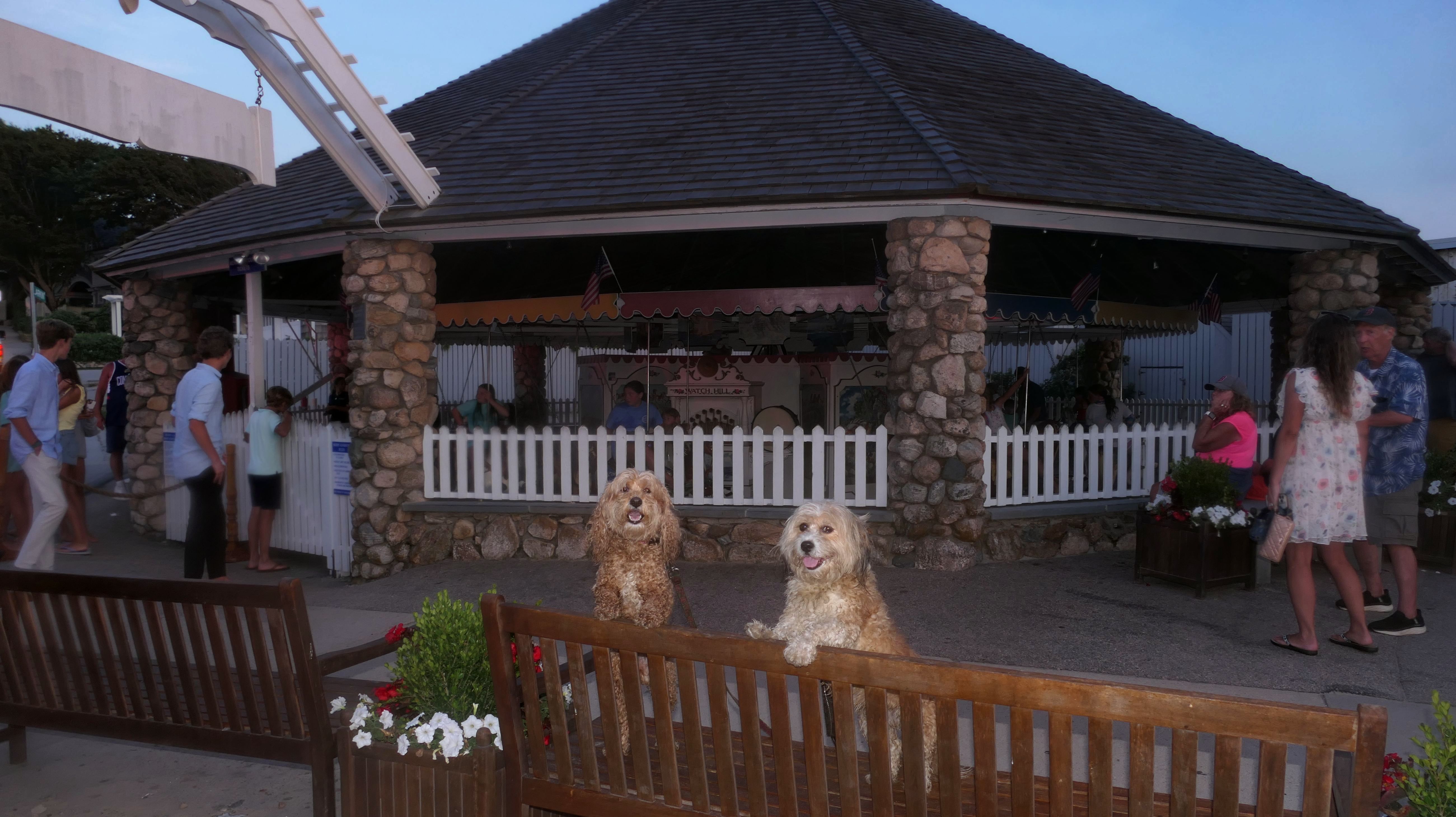 We walked through here on our way to and from East Beach. We've passed through this area many times over the past few years. This was the first opportunity I've head to get good photos of the Watch Hill Carousel. It's usually not open when we visit. The area seemed busier than usual. I was lucky to find a place to park. What I did not realize was that this was the night of the annual Karl E. Kenyon Smokey Bear Parade. A parade of fire trucks and first responder vehicles made it's way through, right as we were headed back to the car. Fire trucks from a number of different nearby communities participated. The sirens were loud, and I don't think Mandy and Lexi liked them all that much. This was the end of the parade route, and the trucks parked for a bit, so we weren't able to leave until they filed out. My photos didn't come out that great. Both the lenses on my camera and phone kept steaming up, so unfortunately the photos aren't the best.