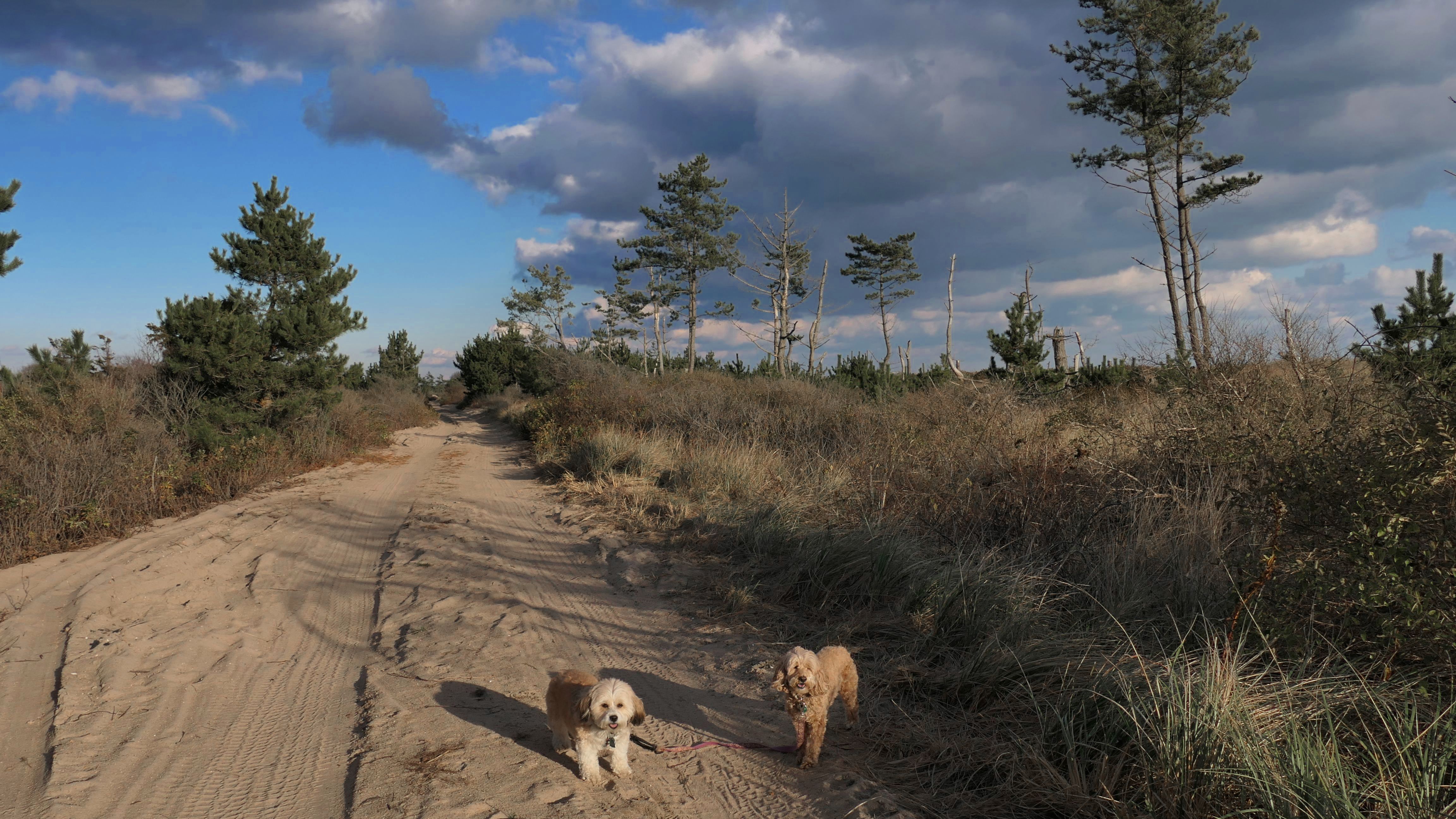 Our intention was to walk the Sand Trail. It was boring, so we only walked a little over half-way, and then turned around and walked back on the beach. We probably weren't supposed to be on the beach here, it's for Weekapaug Fire District Residents only, but nobody else was using it and the dogs wanted to play. While it was sunny all day, storm clouds developed while we were here, so it was probably a good thing we didn't finish the trail, since by the time we got back to car it had started to sleet.