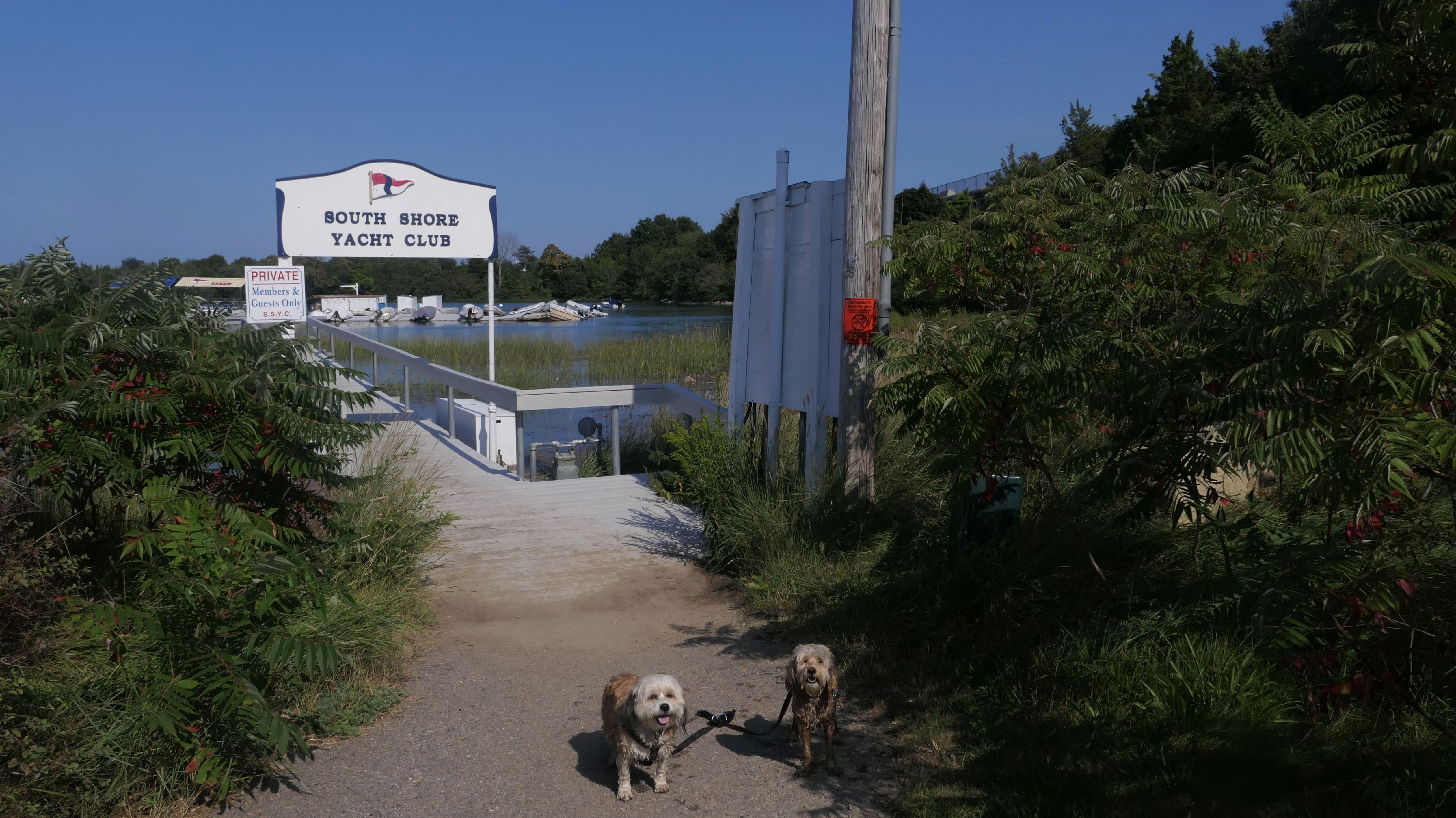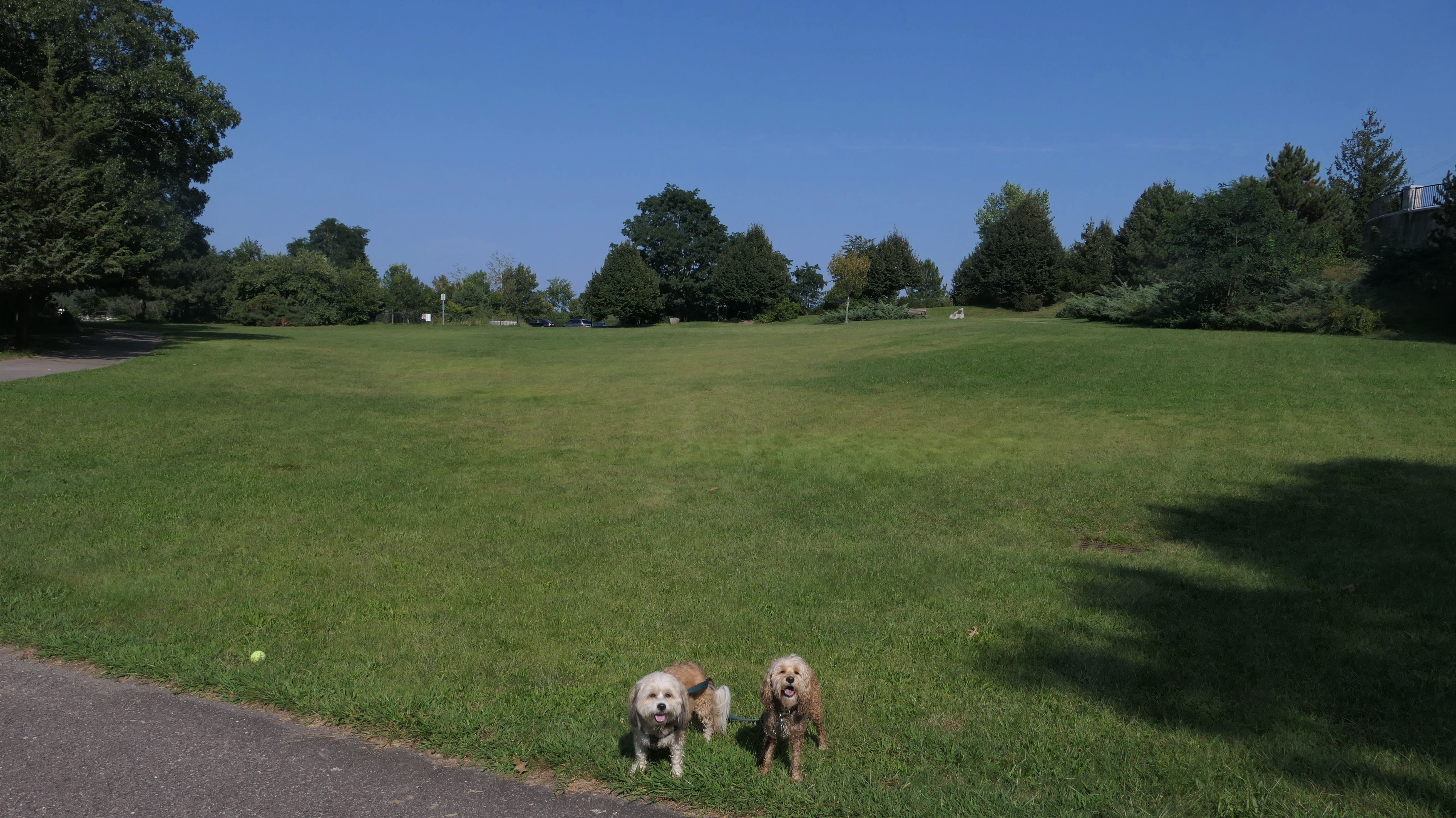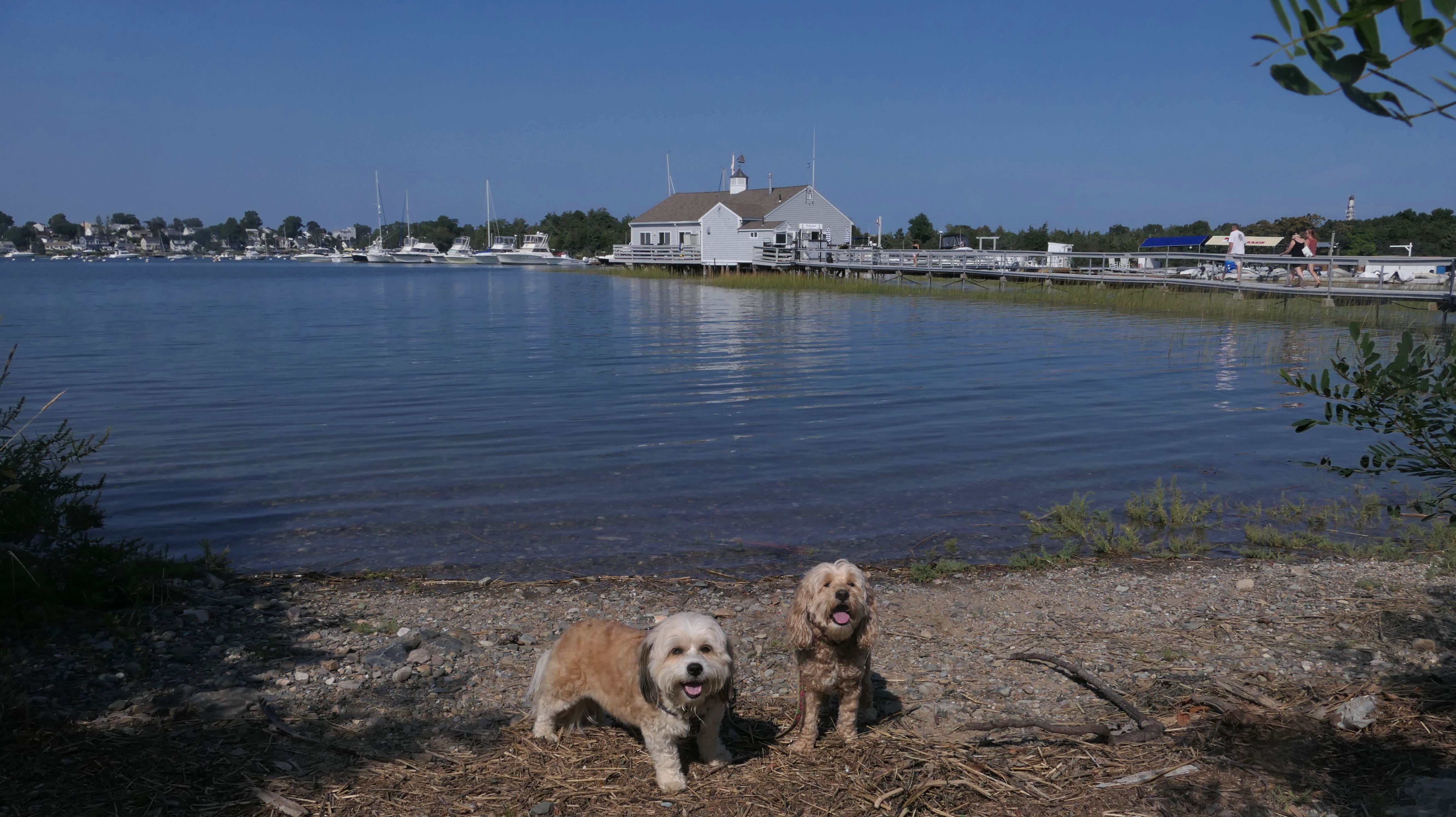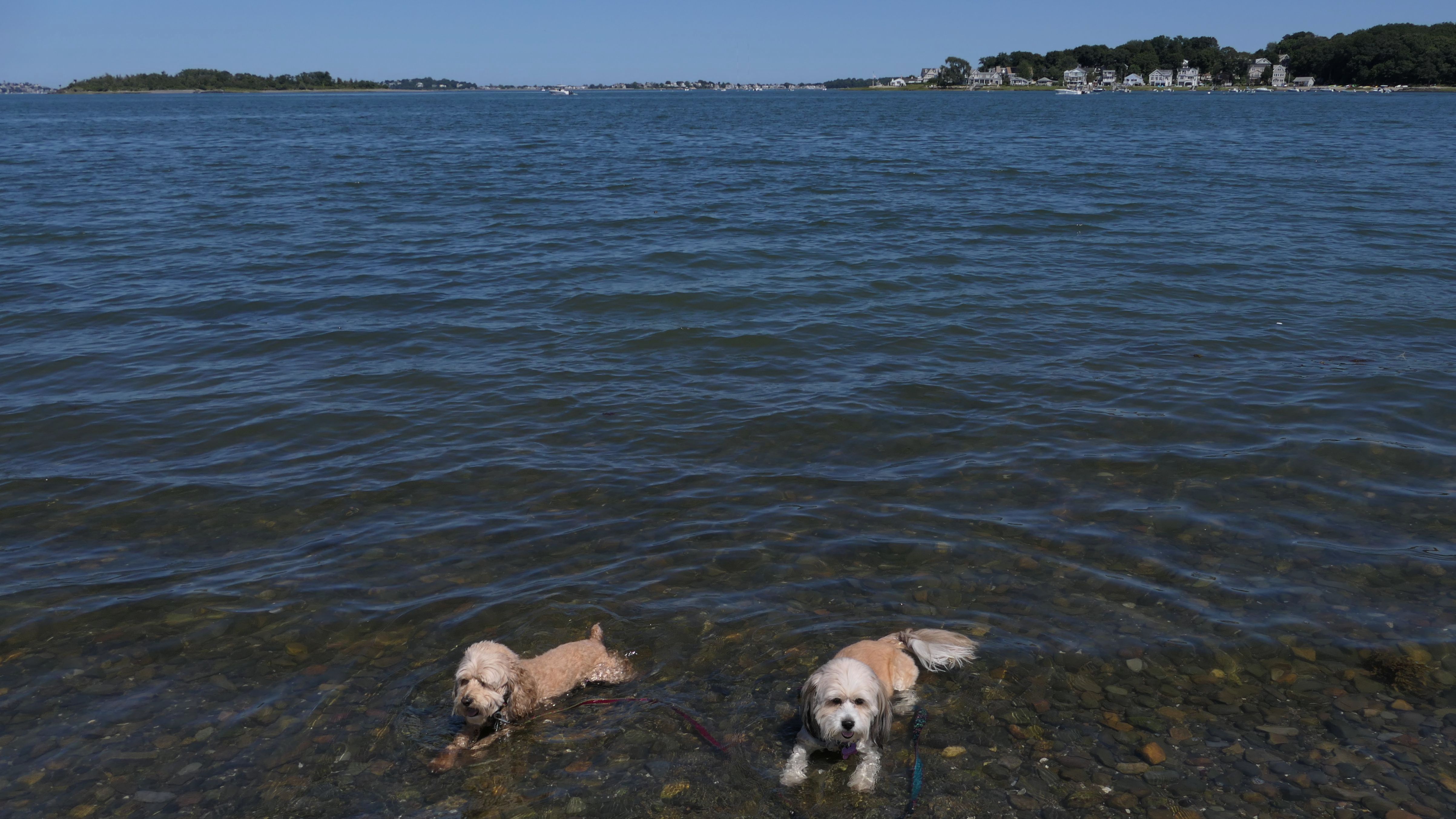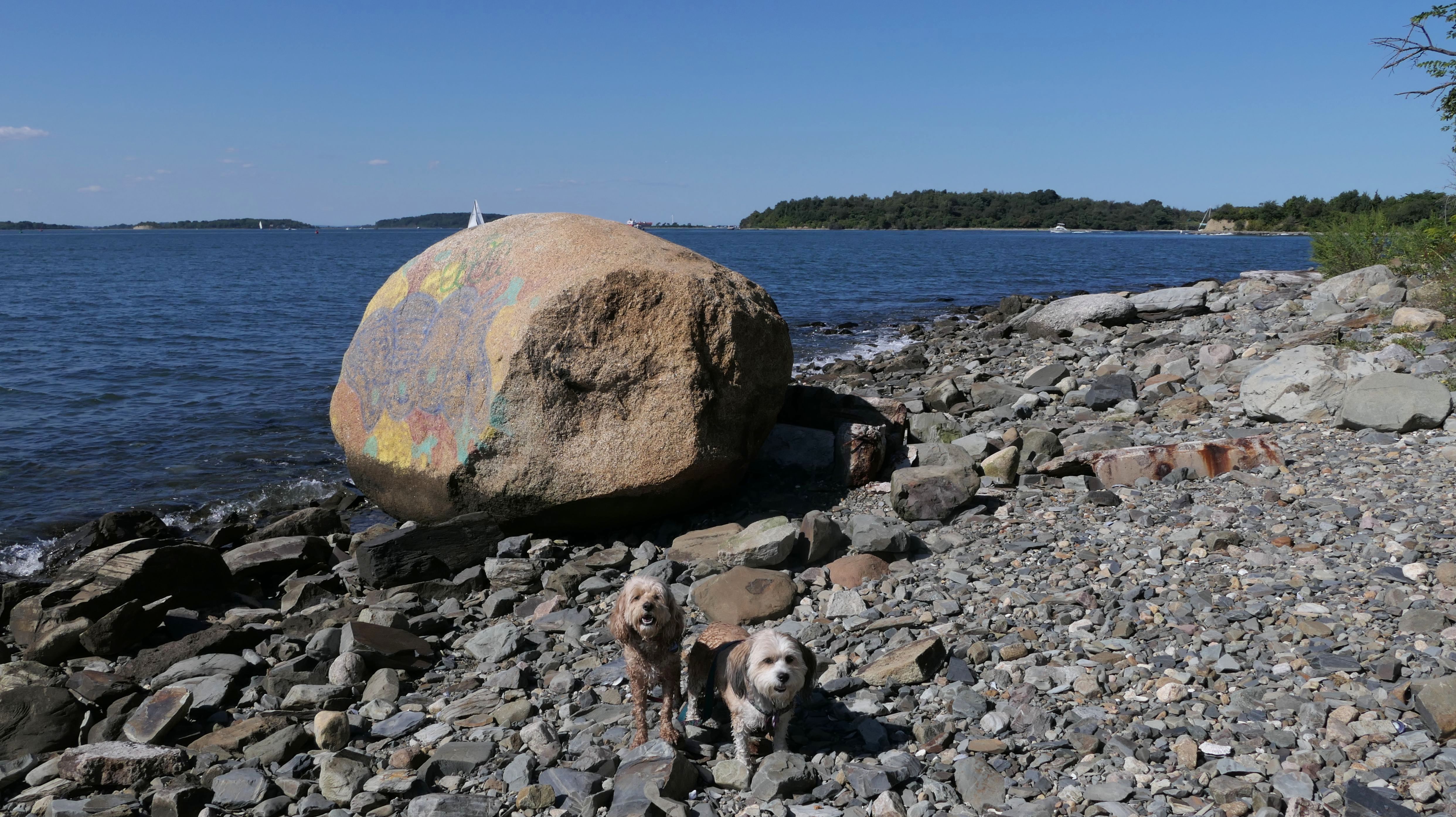 This is one of the best places we've visited in Massachusetts. The state park is on a peninsula that extends into Hingham Bay, and is located on a former Nike missle site. There's an easy stone dust loop trail that runs for about two miles, as well as a mowed meadow area, and rocky beaches along the perimiter of the peninsula. In addition to the trail, we explored the entire rocky beach. One side of the peninsula offers views of the Boston skyline. There are also views of many boats, yachts, and ships that use the bay. There are plenty places for the dogs to cool off in the water. There's a picnic area, as well as other picnic tables throughout the park. It's a great place to bring dogs for a walk. The weather was perfect, so this was a really fun trip!