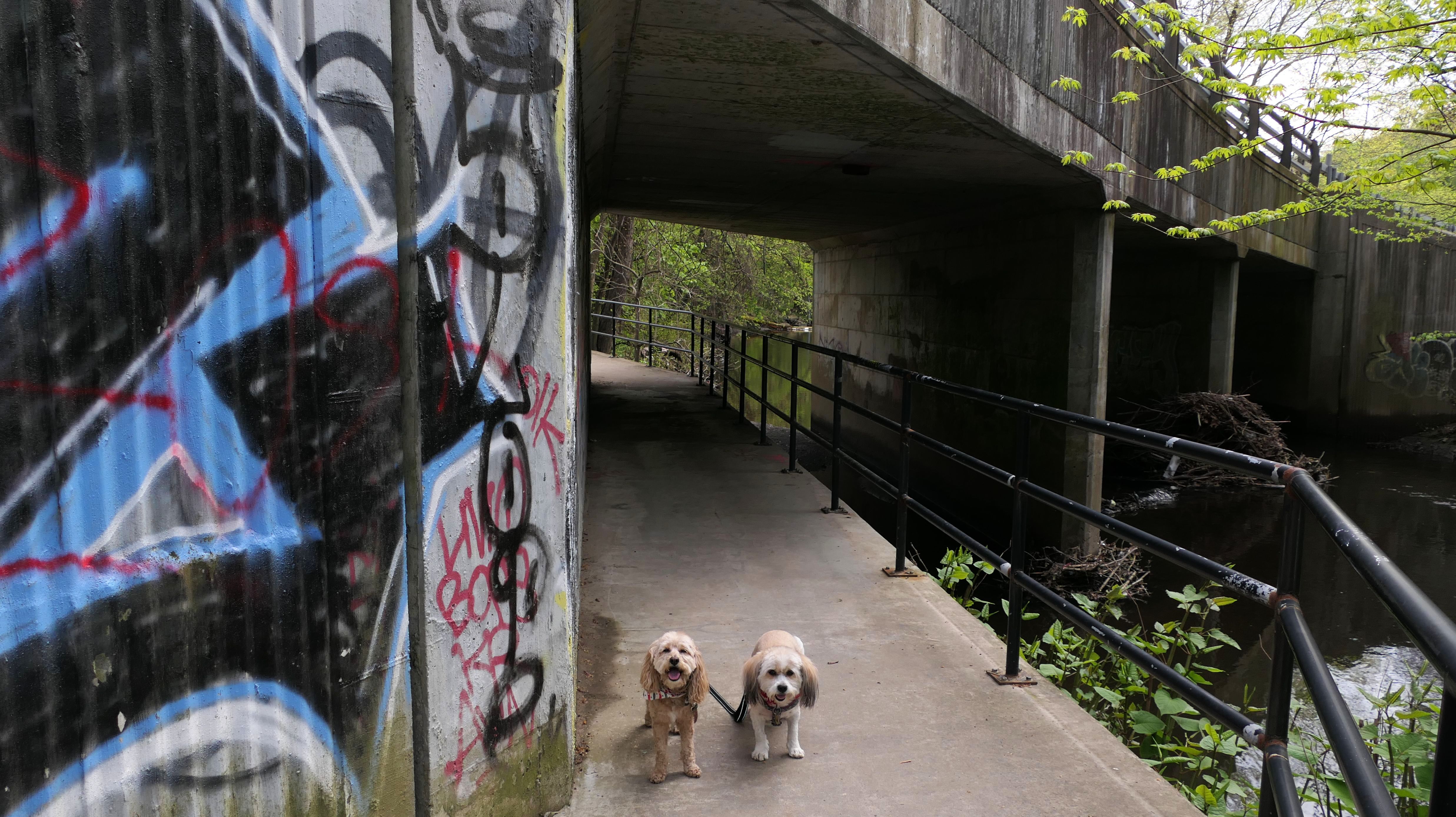 This is the section of trail between the Scarsdale section and Westchester County Center. This stretch passes under a number of different graffiti tagged bridges, and the walkway gets vary narrow in places. It must be hard for the cyclists. There was a fair amount of trash on this section of trail, and some construction near the train station.