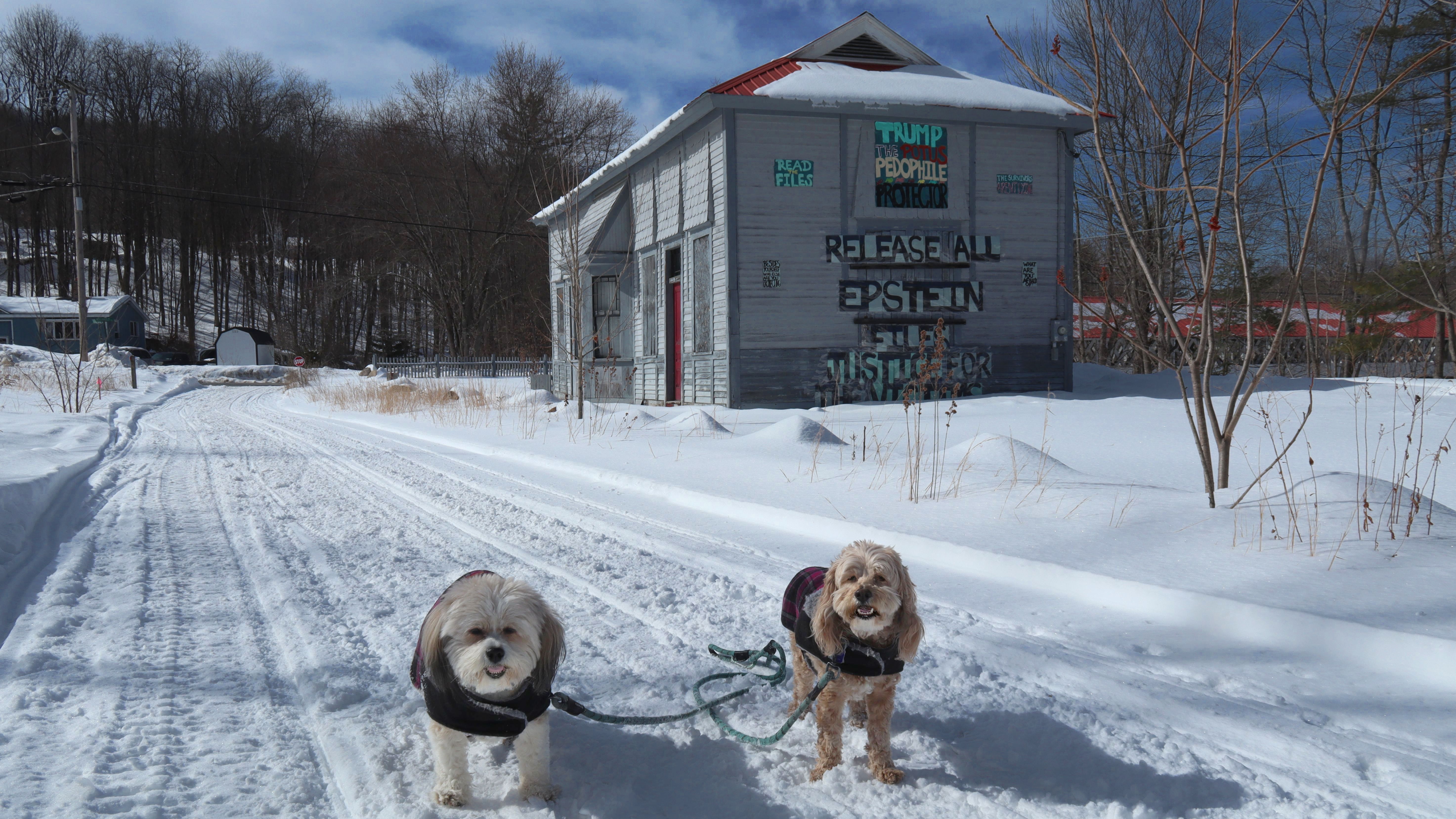 Mandy and Lexi had been a little off-the-wall of late. With the 'Blizzard of '26' dumping feet of snow around the area earlier in the week, it's been difficult finding places to visit. There was actually less snow to the north, and a sunnier forecast, so we headed up to southern New Hampshire. The plan was to take a few photos near this bridge, then head to the Downtown Historic District for the majority of our walk. This is a very cool covered bridge. It features pedestrian sidewalks on either side, but one side was closed. It's also very near the Ashuelot Rail Trail, which to my surprise, was passable so we actually headed there next.