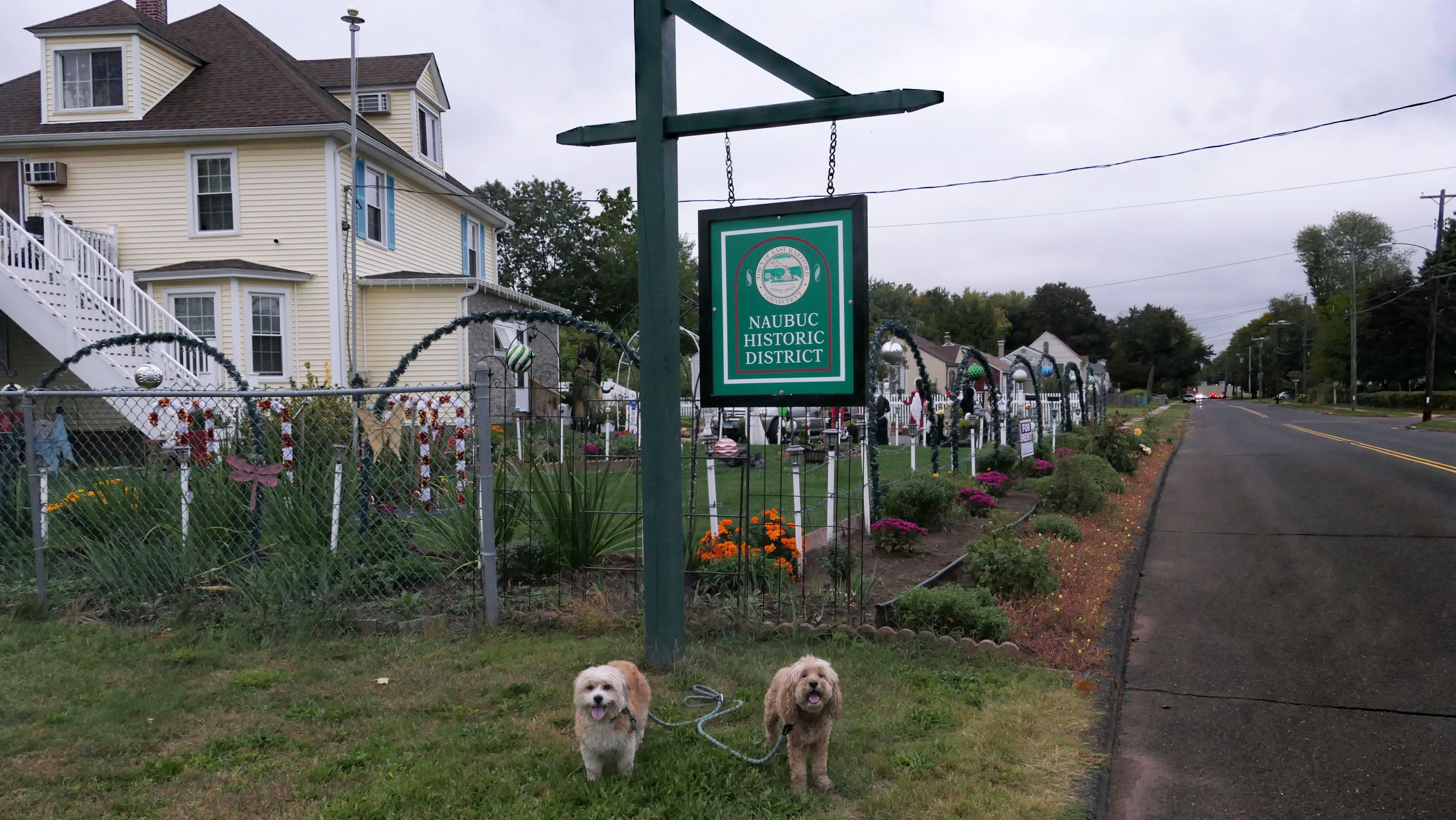 After walking through nearby Hockanum Park, we walked through part of the Naubuc Historic District. The area is known for it's colonial, mid 19th century architecture, including the Selden Brewer House, built in 1827. One house, near the Naubuc Historic District sign, had an impressive Halloween and Christmas display.