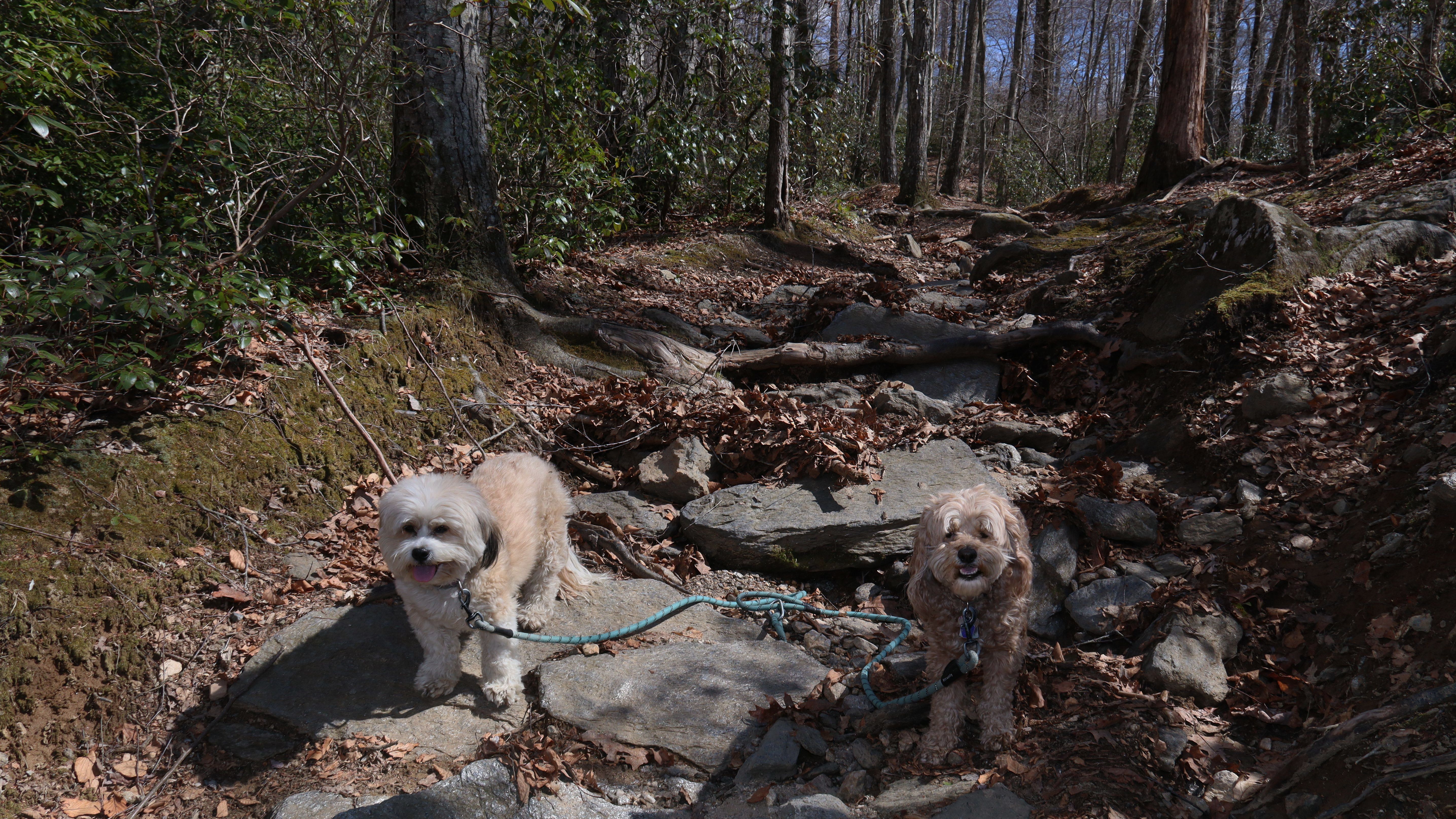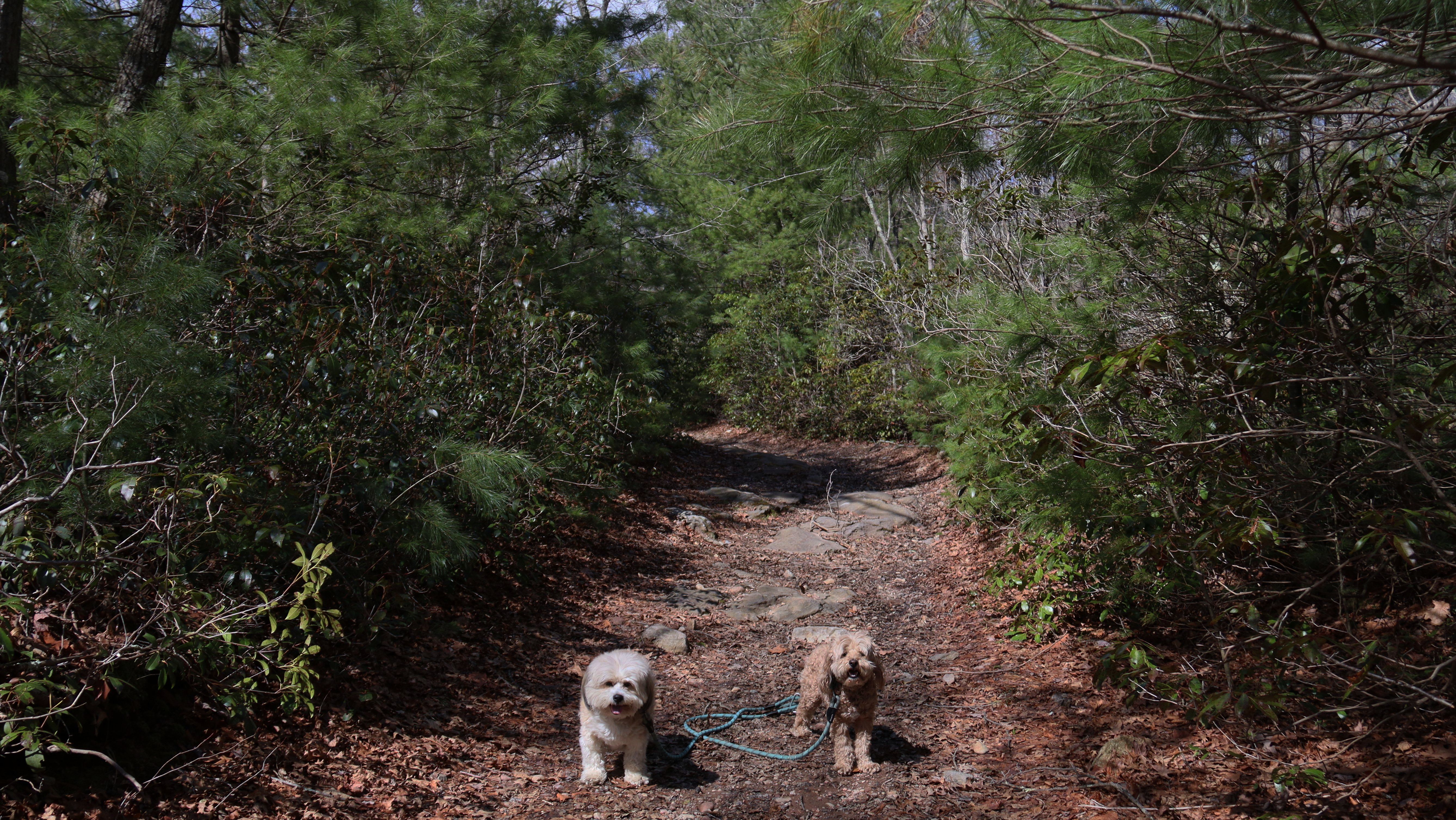 There are many great hiking areas in this area of the state, but it's hard to believe we had not visited this one already. This hiking area is also on an active farm, with signs to remind hikers to stay on the path and not to pick the crops! There's a lot of un-shaded open space here, so this wouldn't be ideal for the doggos on a hot summer day. Fortunately, when we visited it was in the upper 60's and breezy. It was just a beautiful day all around. There are some additional trails that go deeper into the woods that we will have to come back and explore at some point.