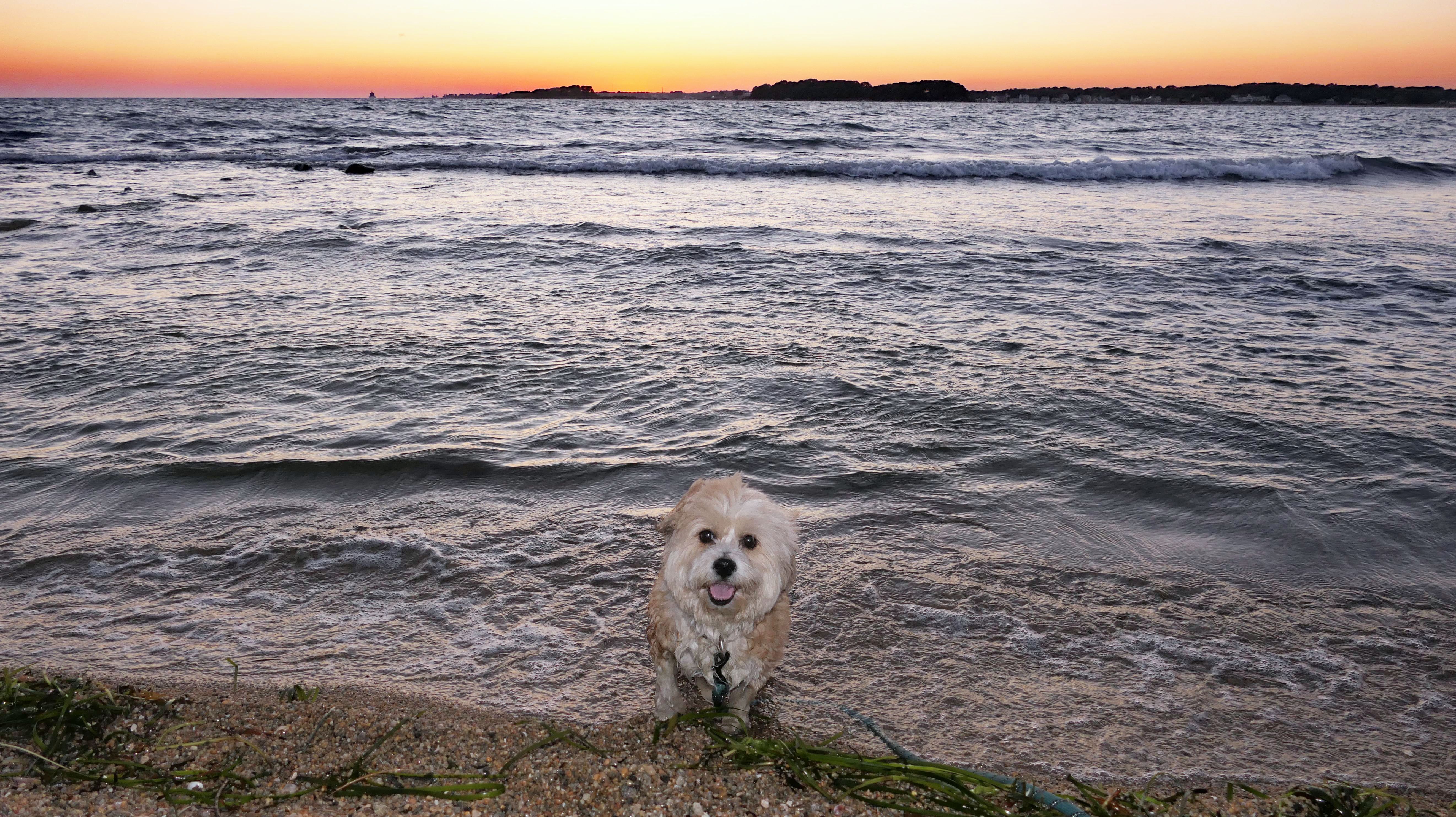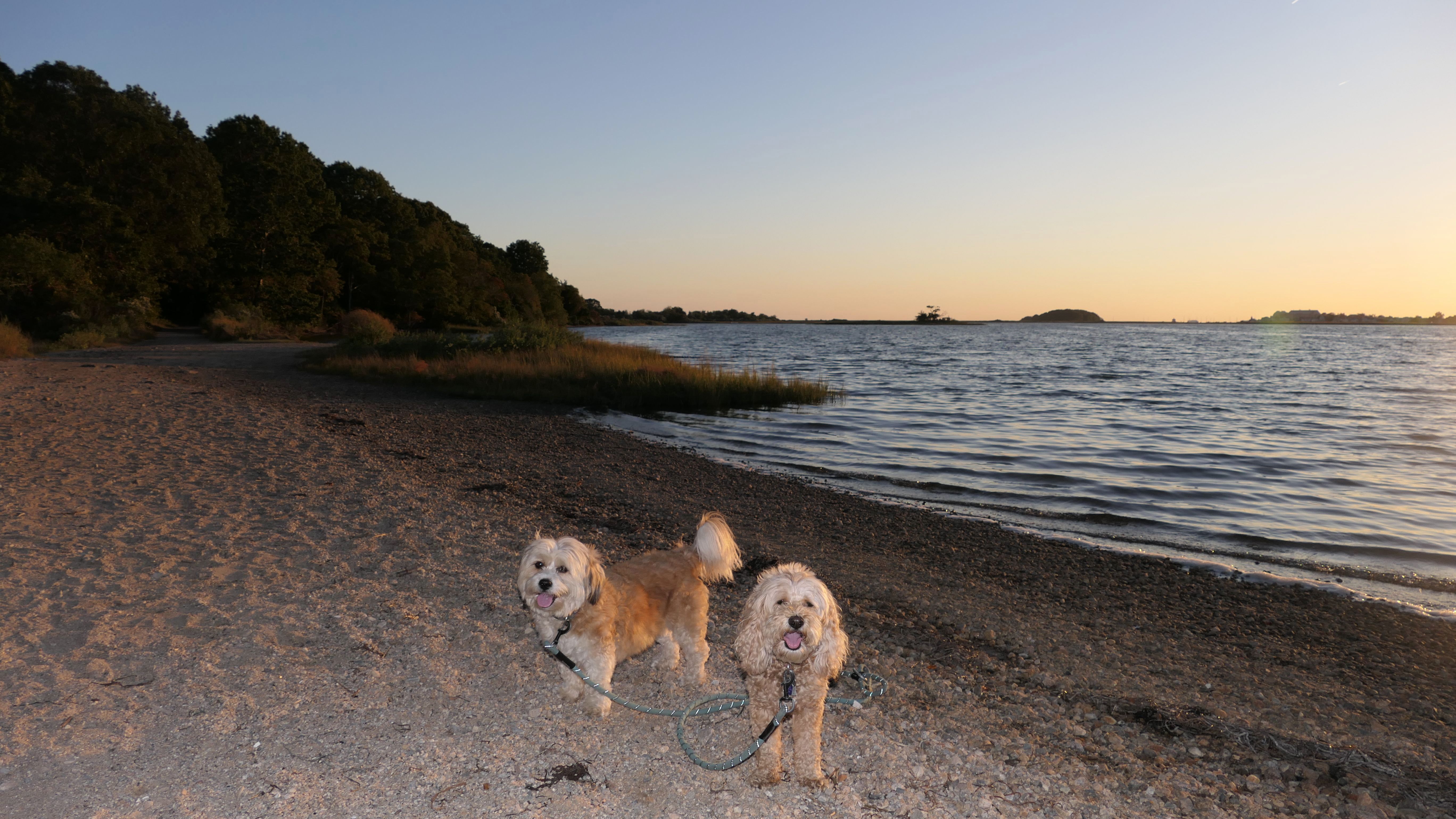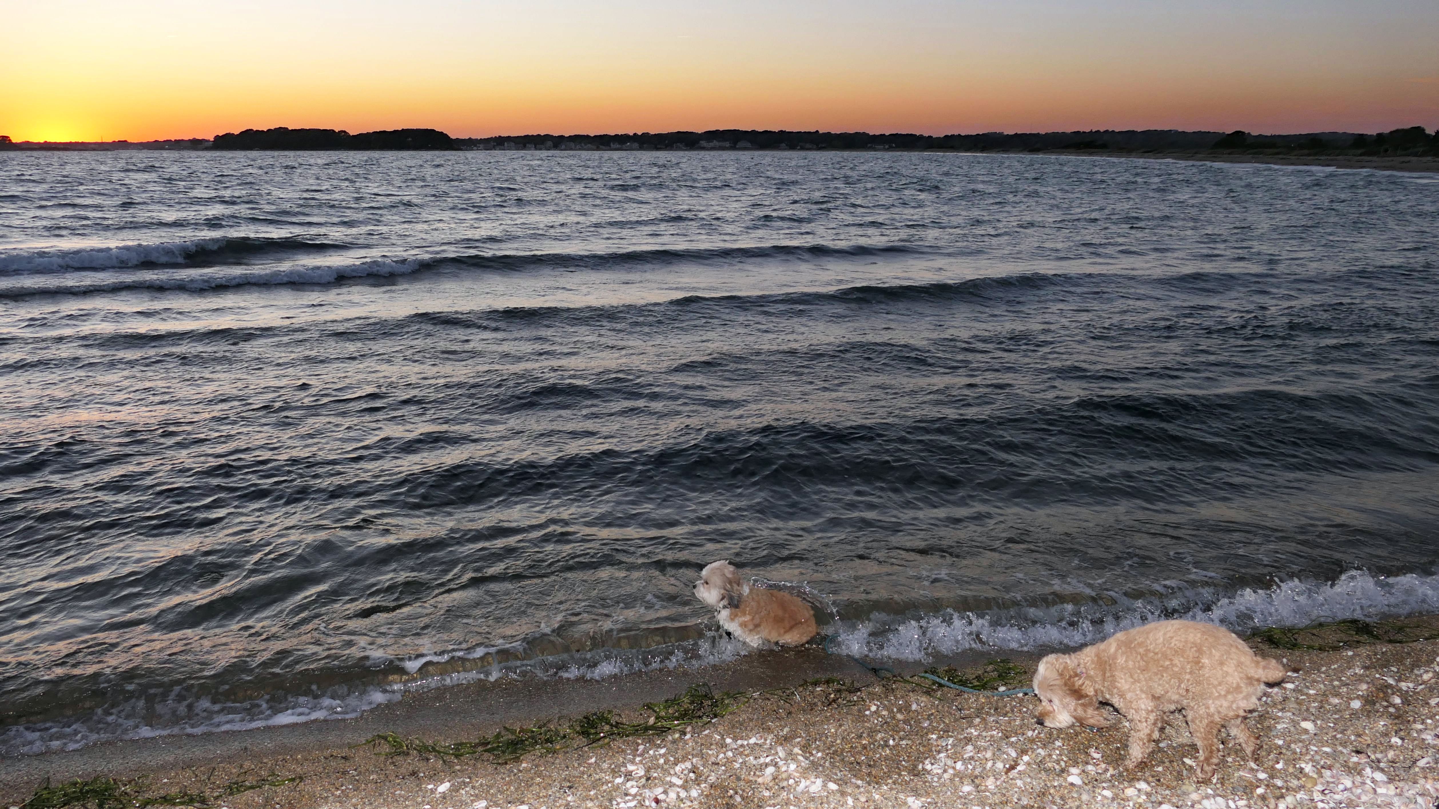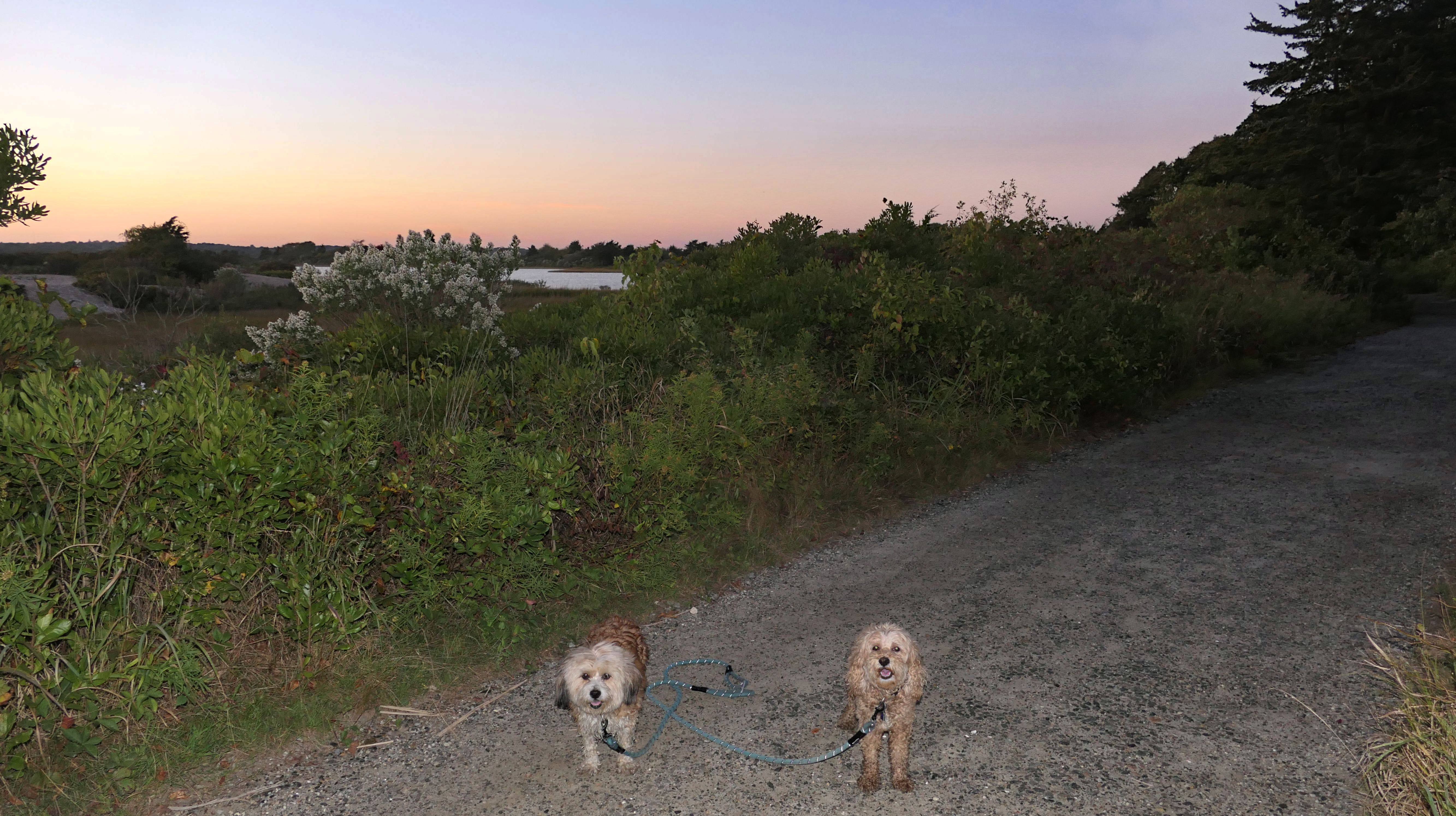 This is one of the nicer shoreline spots in Connecticut, and since we hadn't been here in over four years, we decided to head back after work. We got there about half an hour before sunset, but I totally forgot it's a mile and a quarter walk just to get to the beach. The trail runs along the Poquonnock River, so we stopped for a couple quick photos, then ended up jogging part of the way so we wouldn't miss the sunset. We made it just in time, and I managed to get one good shot of the dogs. There were even some waves for a change, probably from a storm way offshore. Mandy went right in the water after the sun went down, while Lexi only dipped her paws. After that, we made the mile-and-a-quarter walk back in the twilight.