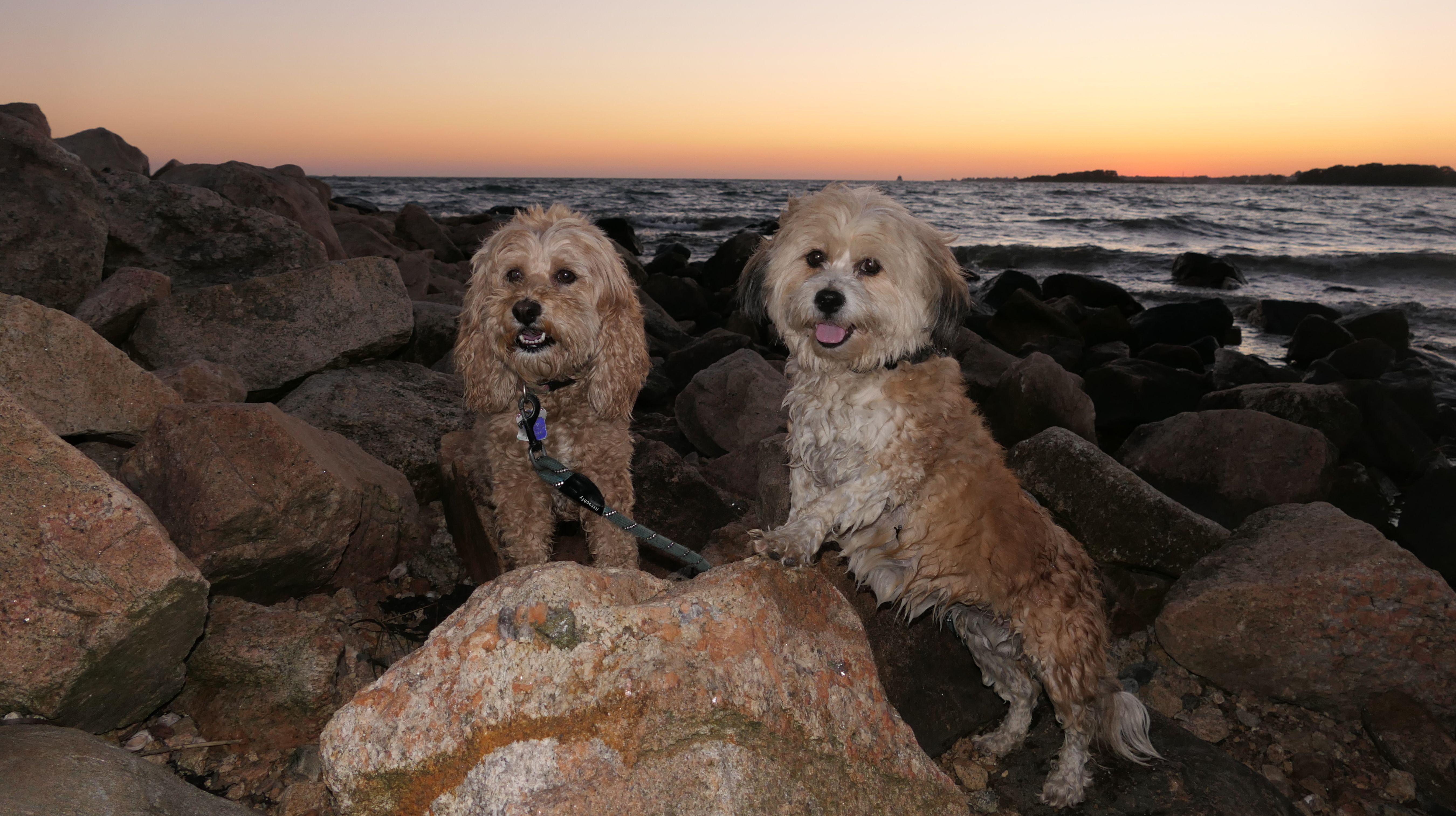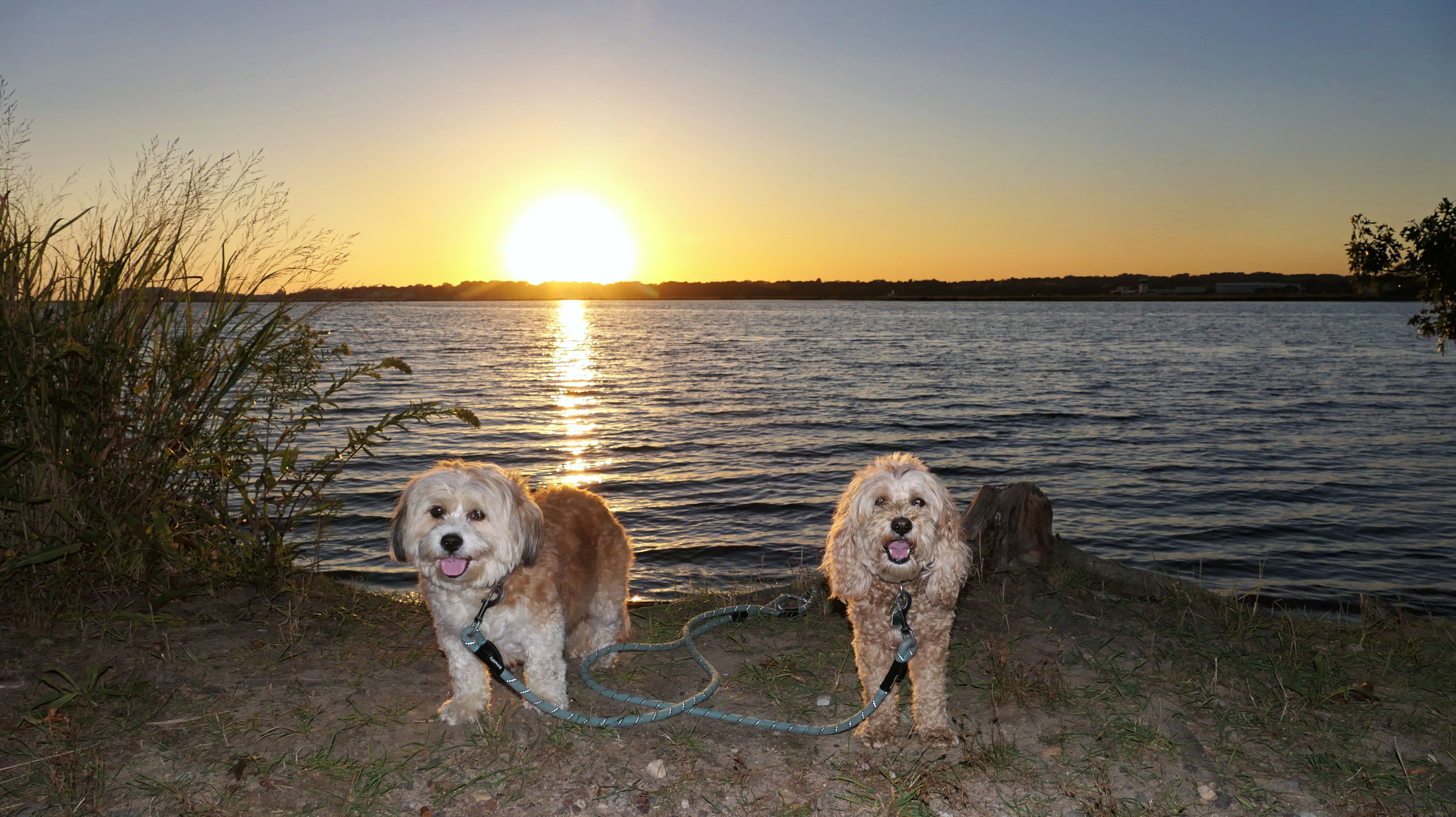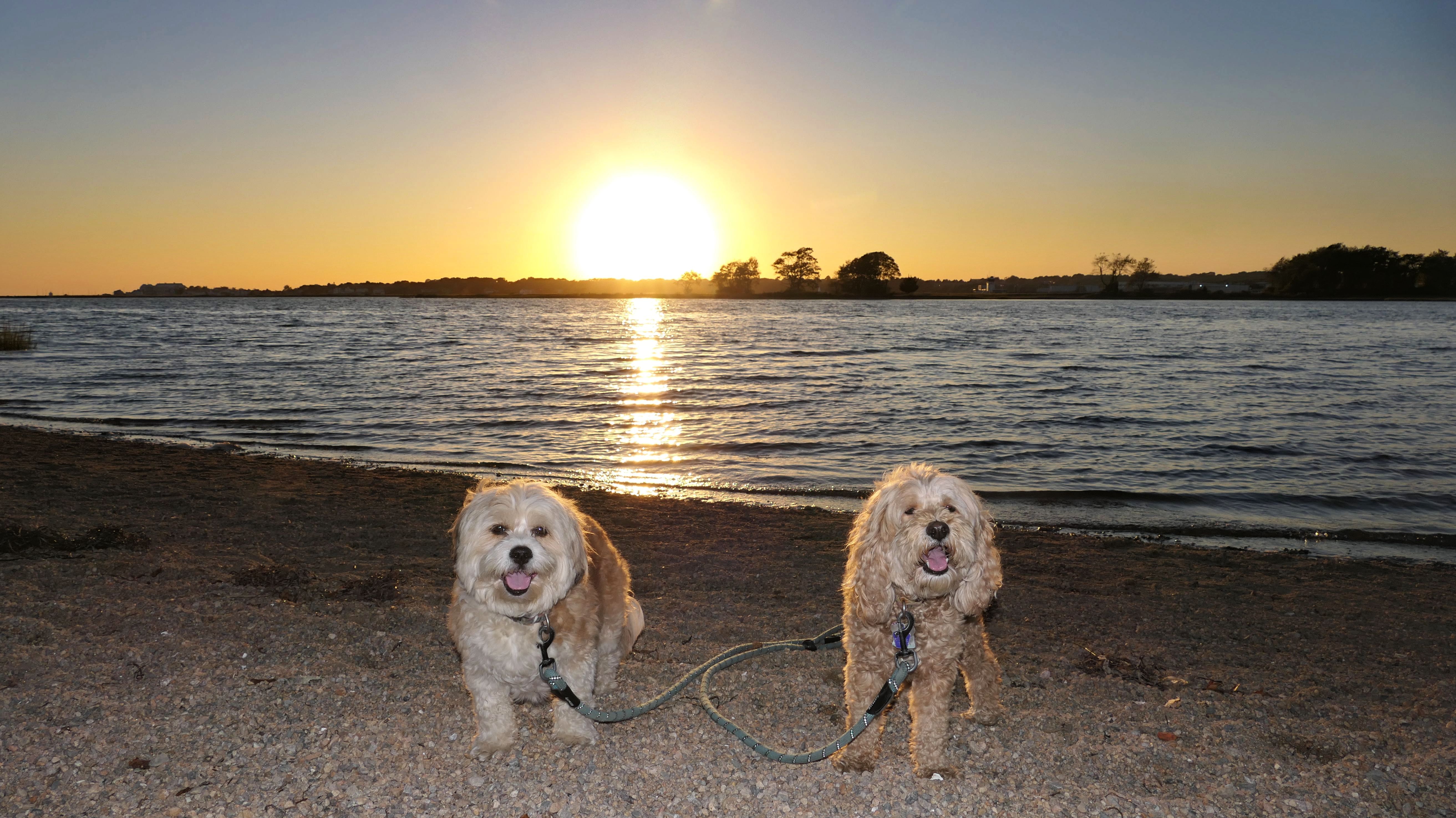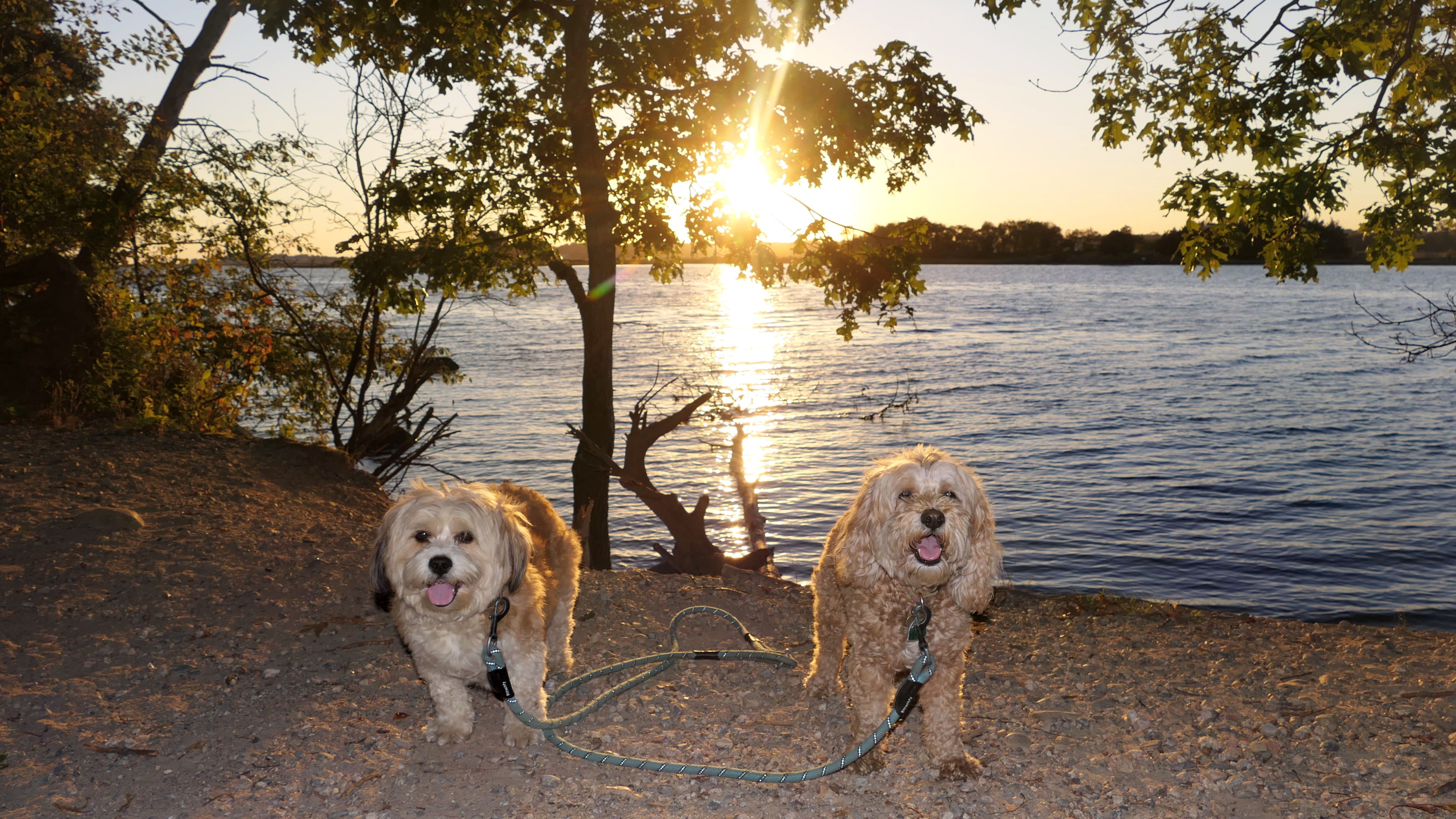 This is one of the nicer shoreline spots in Connecticut, and since we hadn't been here in over four years, we decided to head back after work. We got there about half an hour before sunset, but I totally forgot it's a mile and a quarter walk just to get to the beach. The trail runs along the Poquonnock River, so we stopped for a couple quick photos, then ended up jogging part of the way so we wouldn't miss the sunset. We made it just in time, and I managed to get one good shot of the dogs. There were even some waves for a change, probably from a storm way offshore. Mandy went right in the water after the sun went down, while Lexi only dipped her paws. After that, we made the mile-and-a-quarter walk back in the twilight.