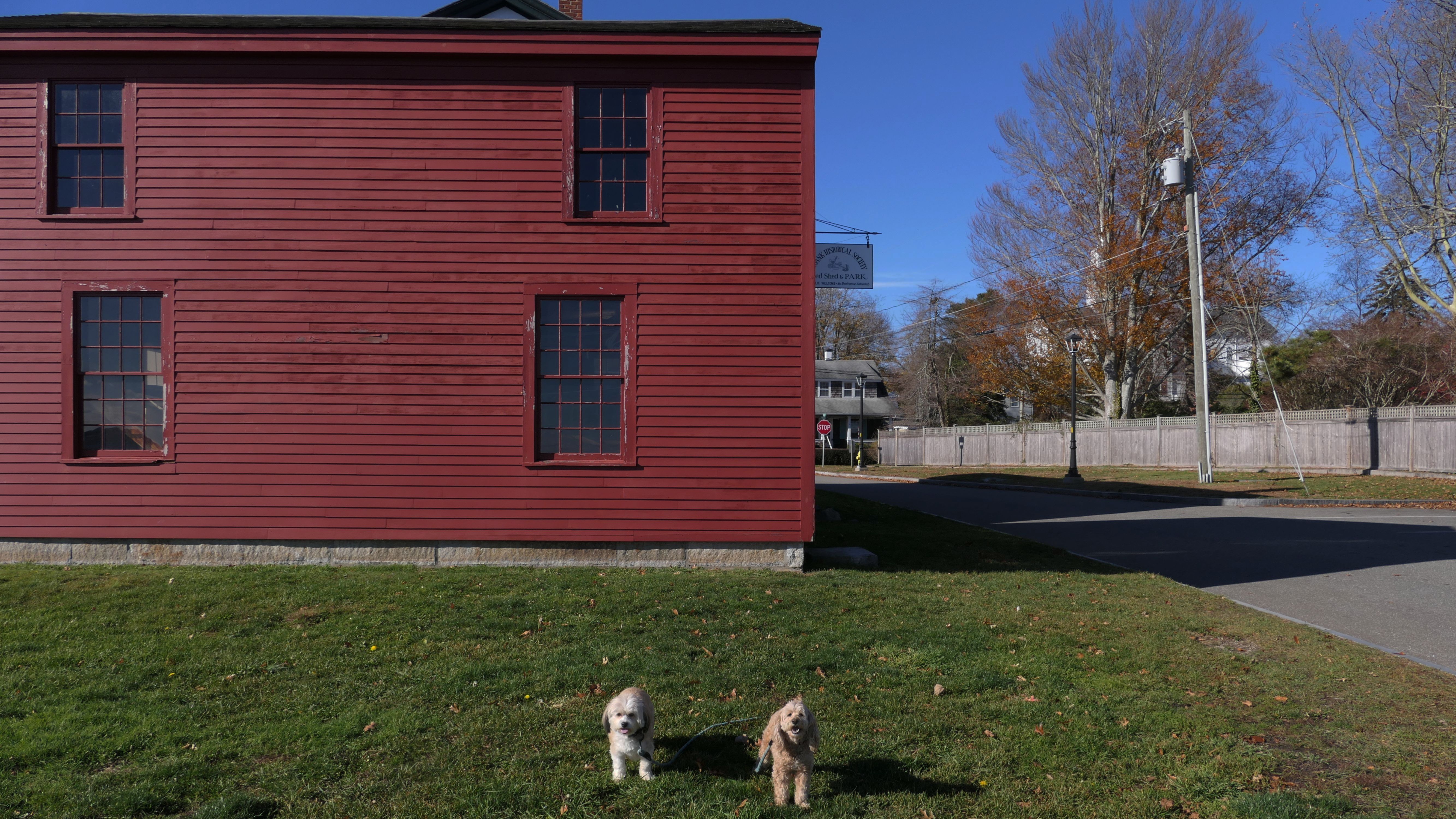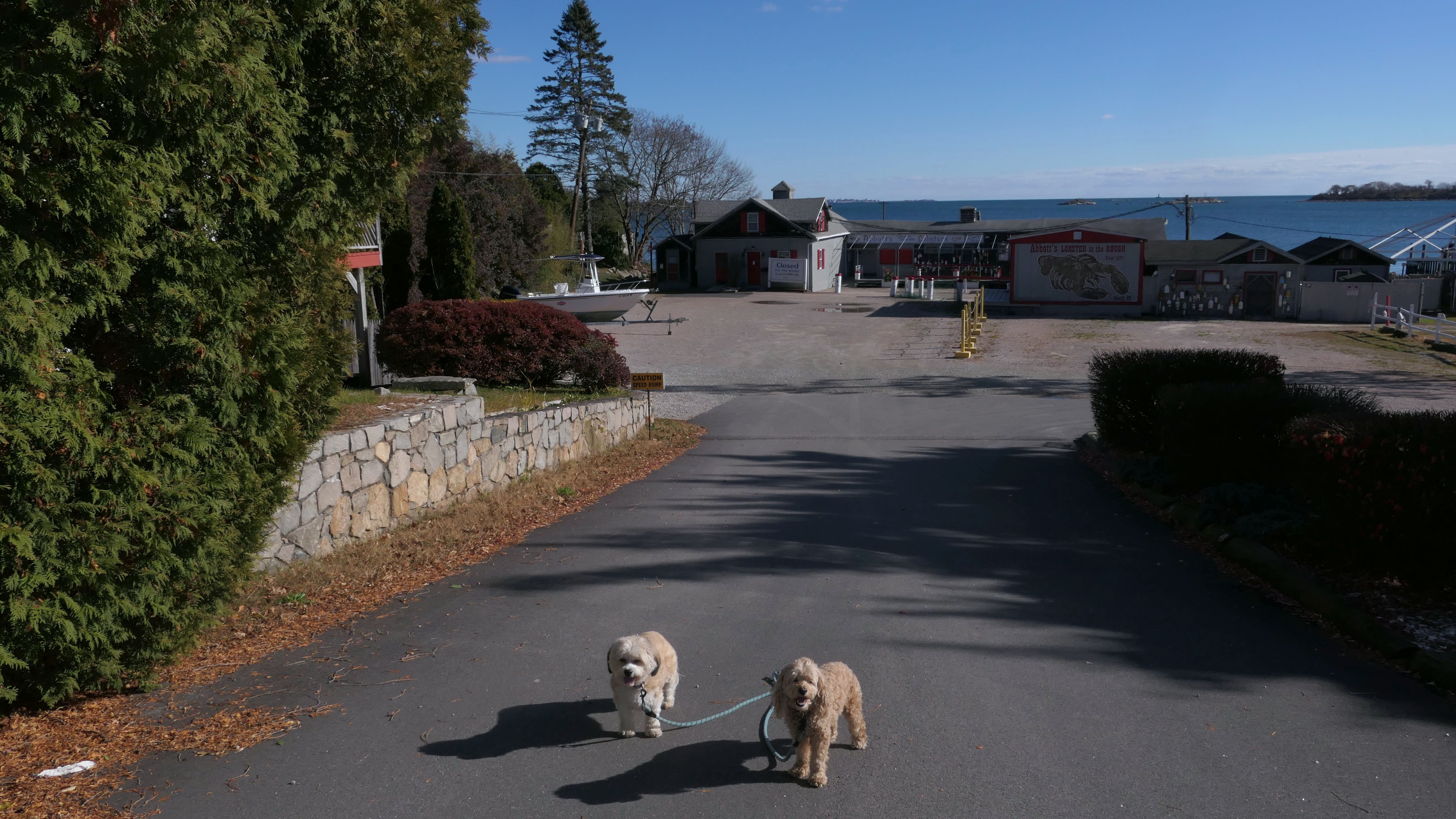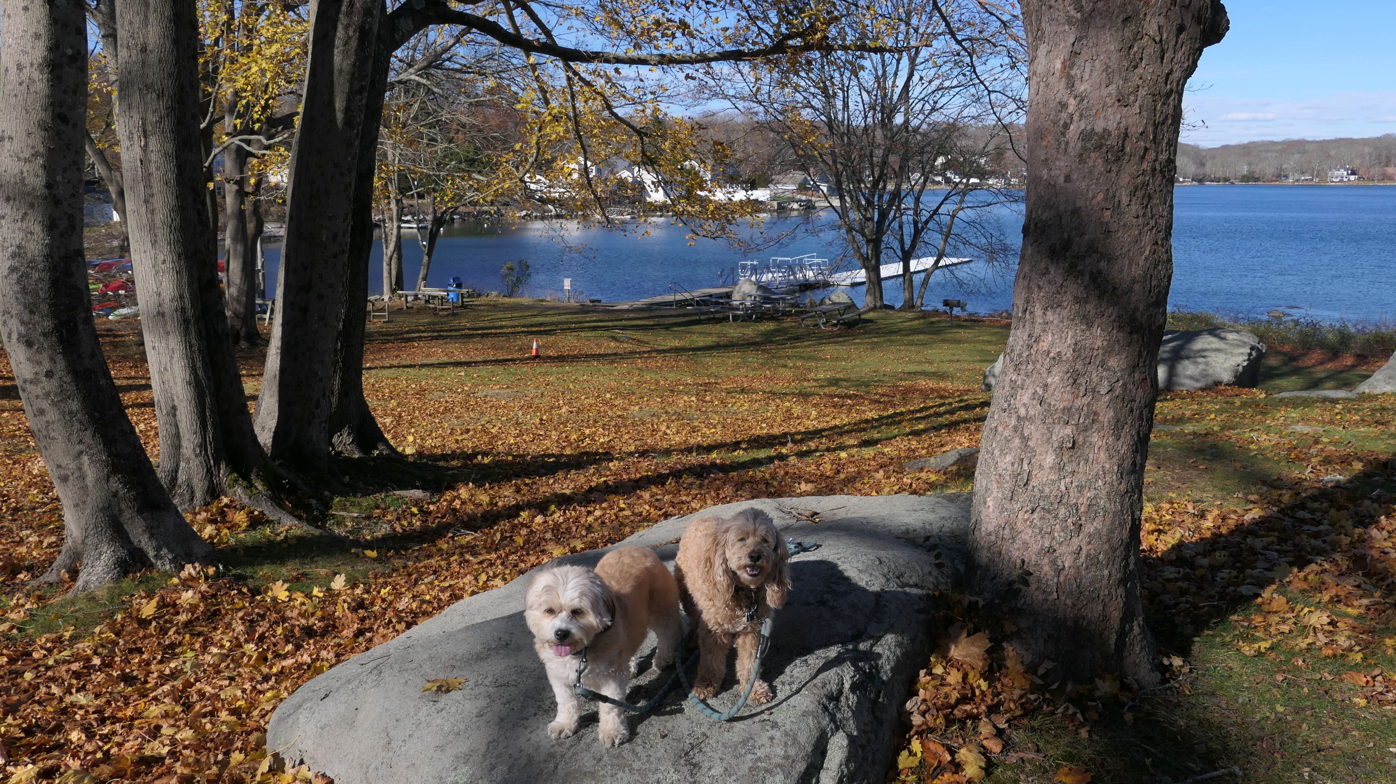 Our Thanksgiving morning adventure was a walk through the Noank section of Groton. We started at the Town Dock, and walked about four miles through a mostly residential neighborhood. There were a number of small parks and costal access points along the way. The access point at the corner of Riverview Avenue and Palmer Court features a wooden staircase that goes down to a small sandy beach area. I didn't see any "No Dogs" signs at any of the access points, so some of these spots could be good places for dogs to cool off in the summer. Unfortunately, there is very limited parking in the area. Toward the end of our walk we also visited Spicer Park. This was a very pleasant walk on a nice and sunny Thanksgiving morning.
