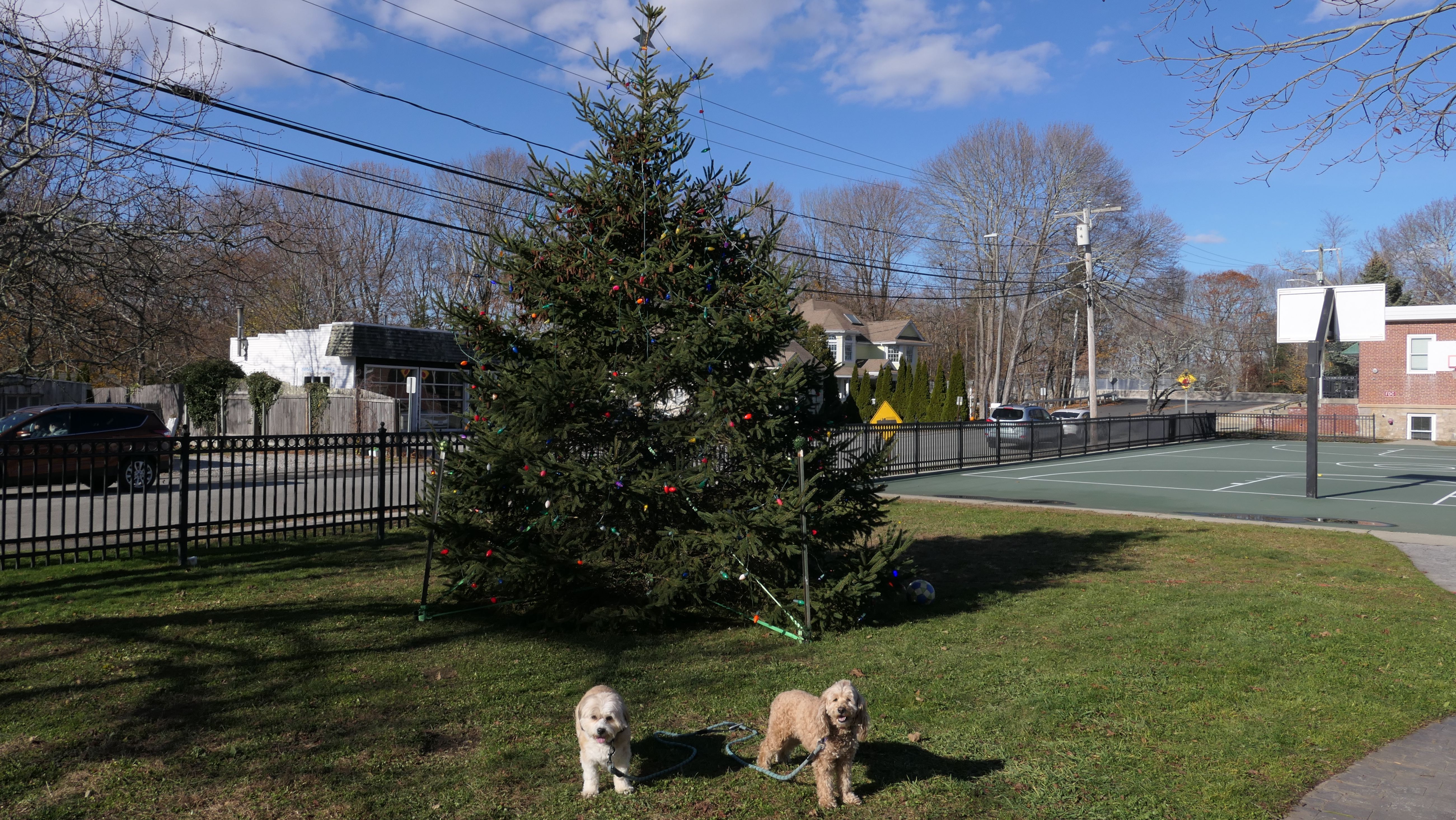 We visited this park as part of our walk through Noank Village on Thanksgiving morning. There is a walkway from Mosher Avenue that leads to a partially fenced in grassy area. The park continues across Spicer Avenue with a picnic area and boat dock, as well as the town parks and recreation building.