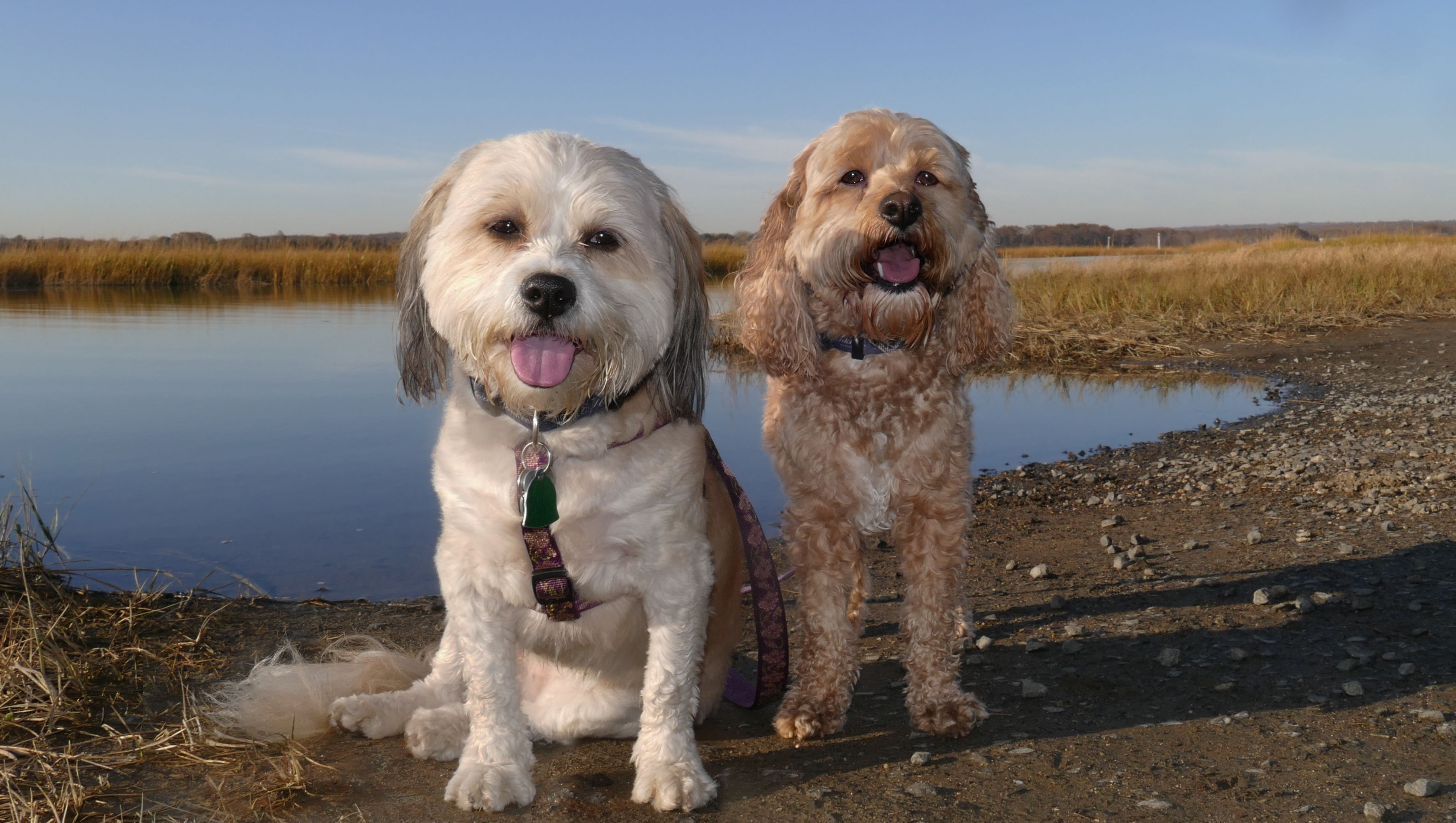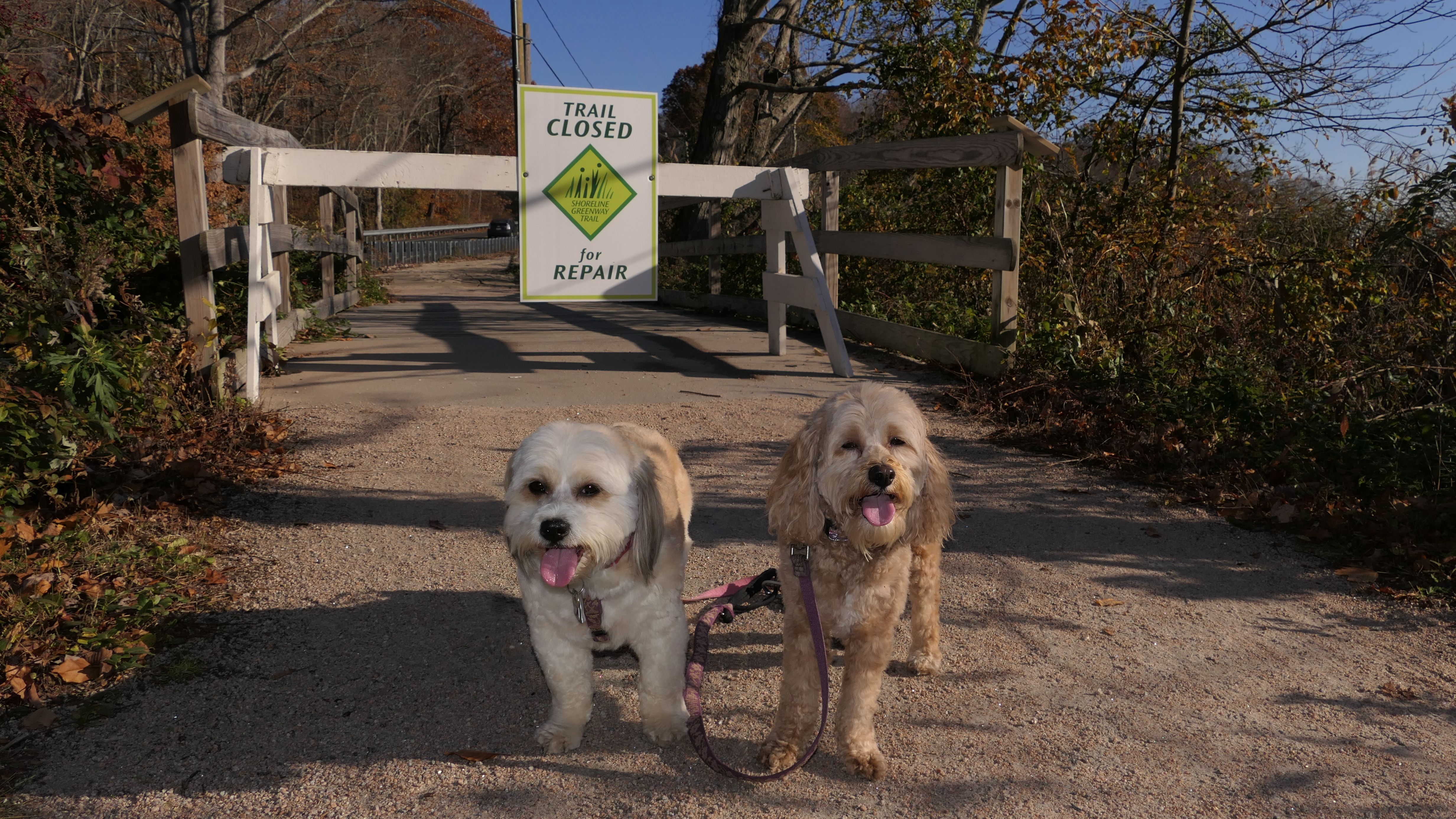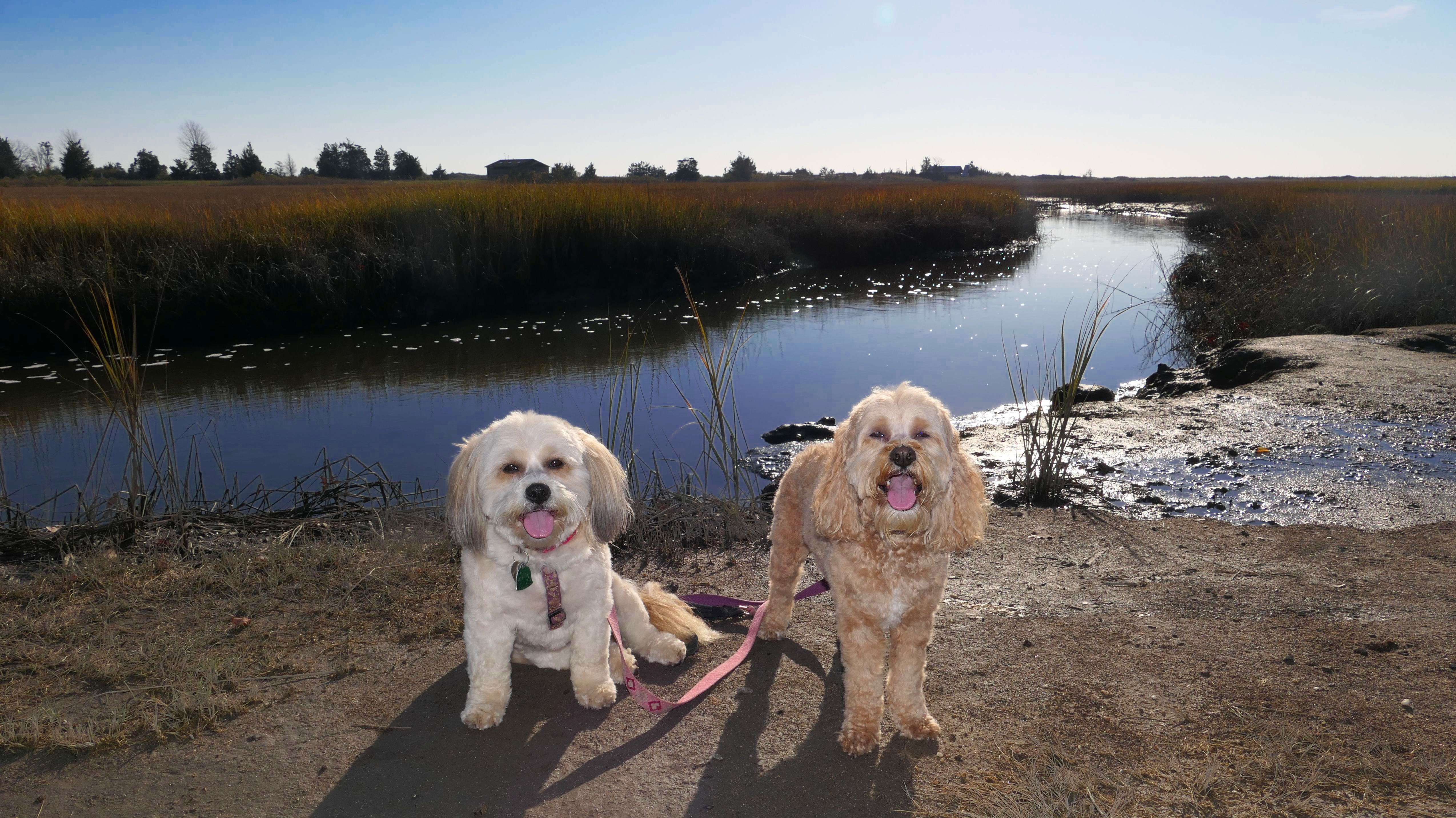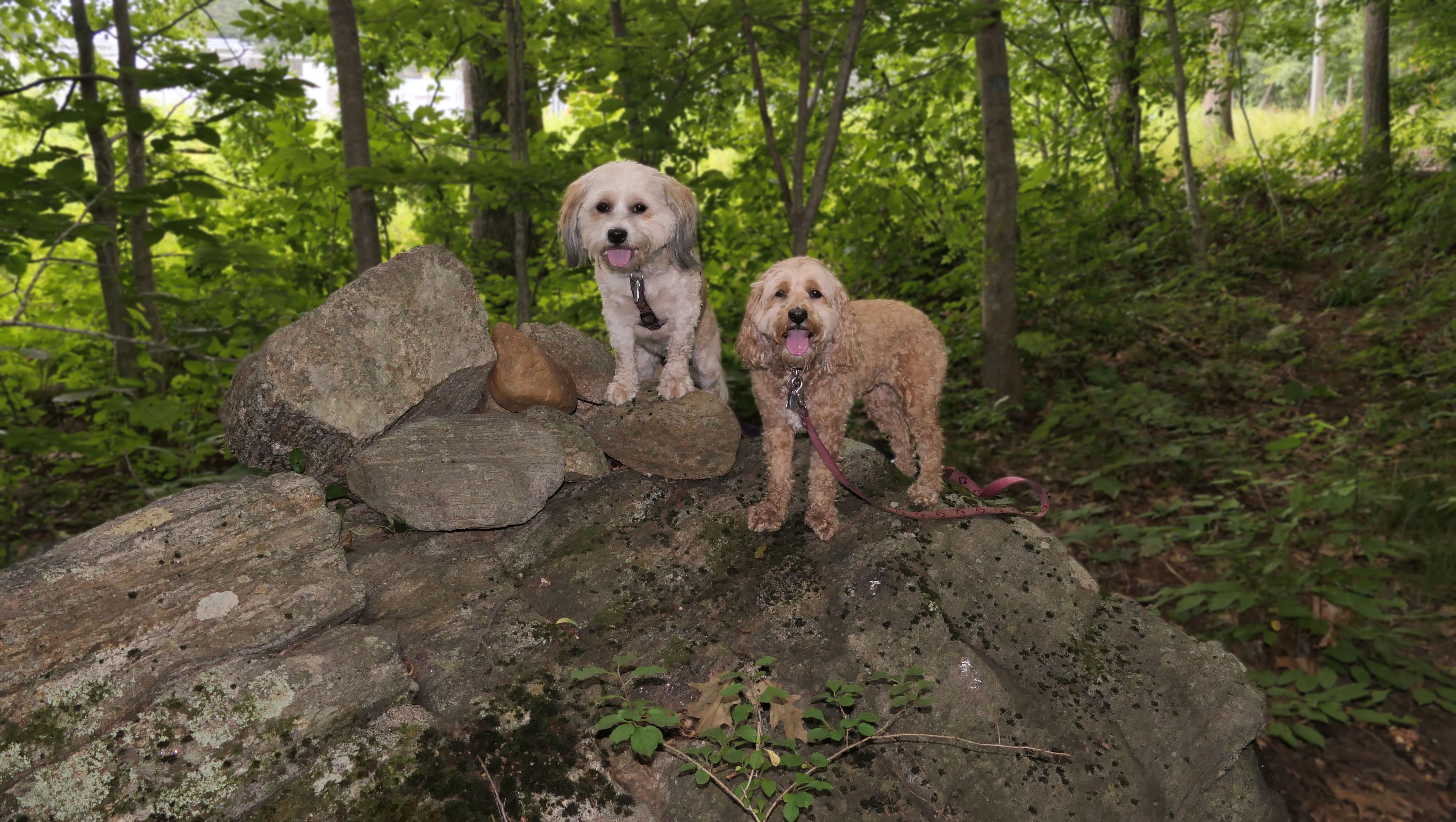 The Paper Mill Trail resides on Madison Land Trust property that once was the site of an old paper mill (hence the name). The ruins of the paper mill are at the beginning of the trail. There are remnants of a stone dam and a concrete dam that "breached." The dams were on the Hammonasset River, which also serves as the border between Madison and Killingworth. It's possible the dogs are in Killingsworth in some of the pictures below, at least the ones where they are in the middle of the river. The trail follows the river for about a mile, and then veers off from the river and loops around very near to some backyards. This part of the trail is rather ordinary.