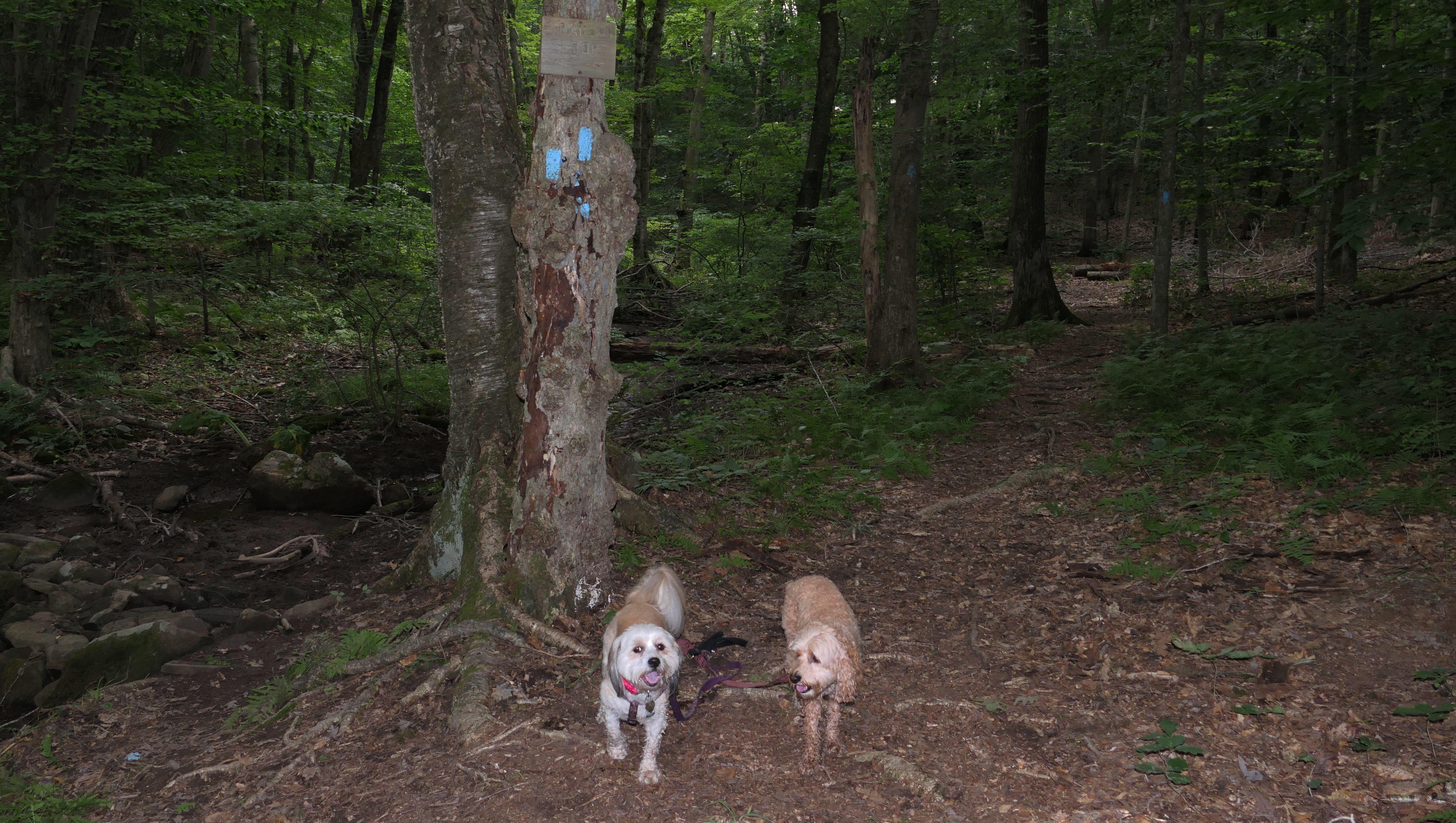 This is another Madison Land Conservation Trust property. This one was pretty much just a mile and a half loop in the woods. There are sections of the trail that were washed out, as well as a few water crossings that had to be done on rocks. Balancing on the rocks is fine for me, but it can be a challenge for the dogs. Lexi seemed to do okay, but Mandy preferred plowing through the streams. That's why Mandy got a bath when we got home and Lexi didn't!