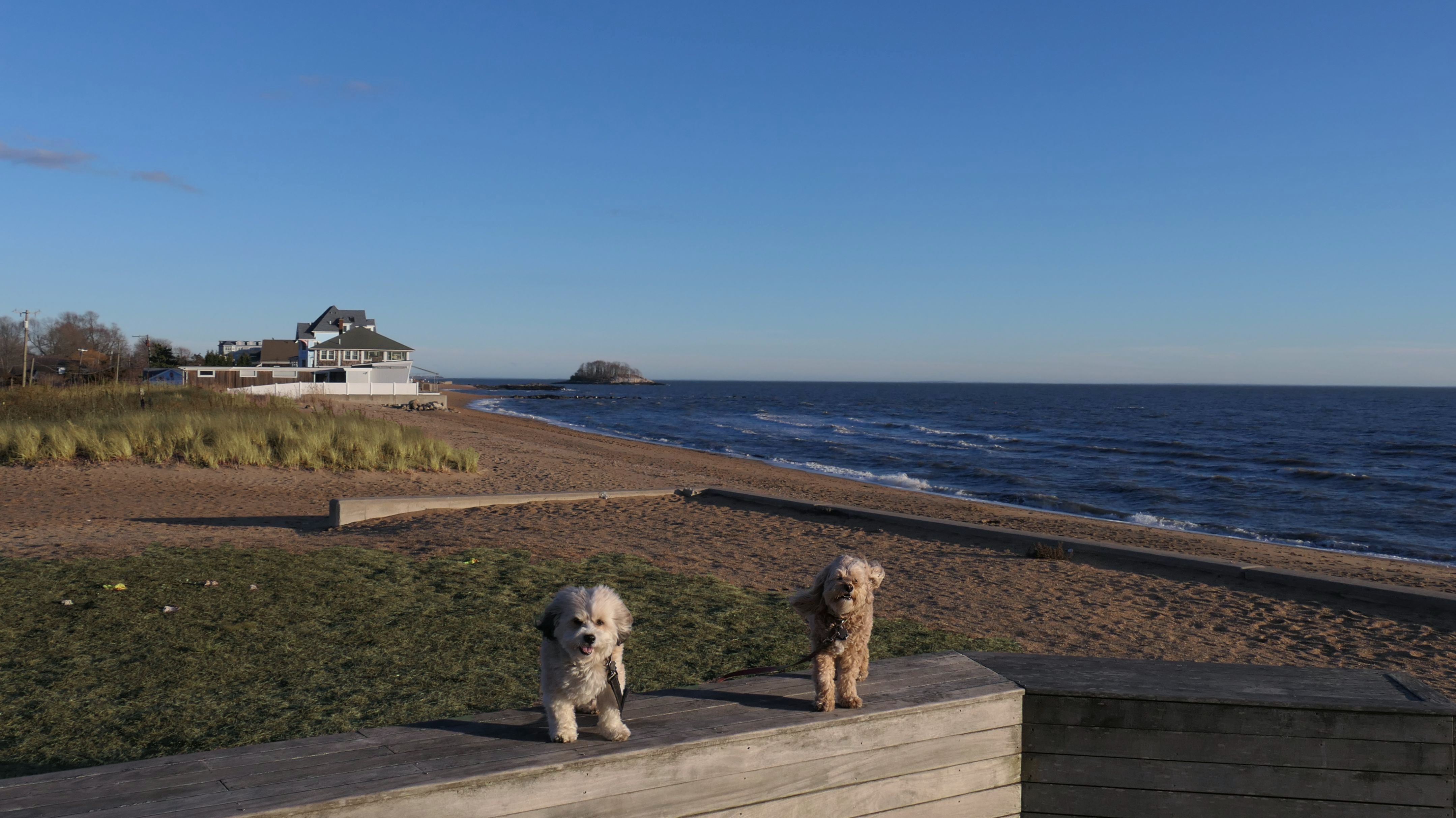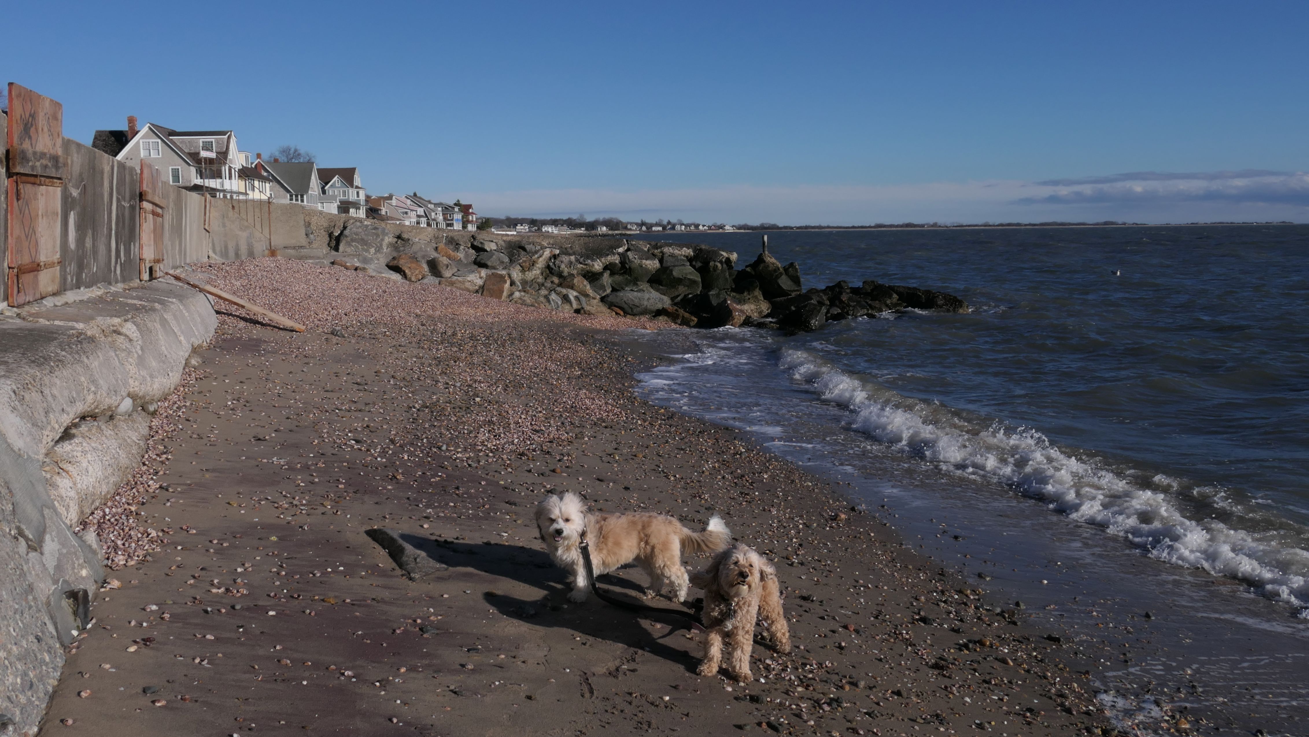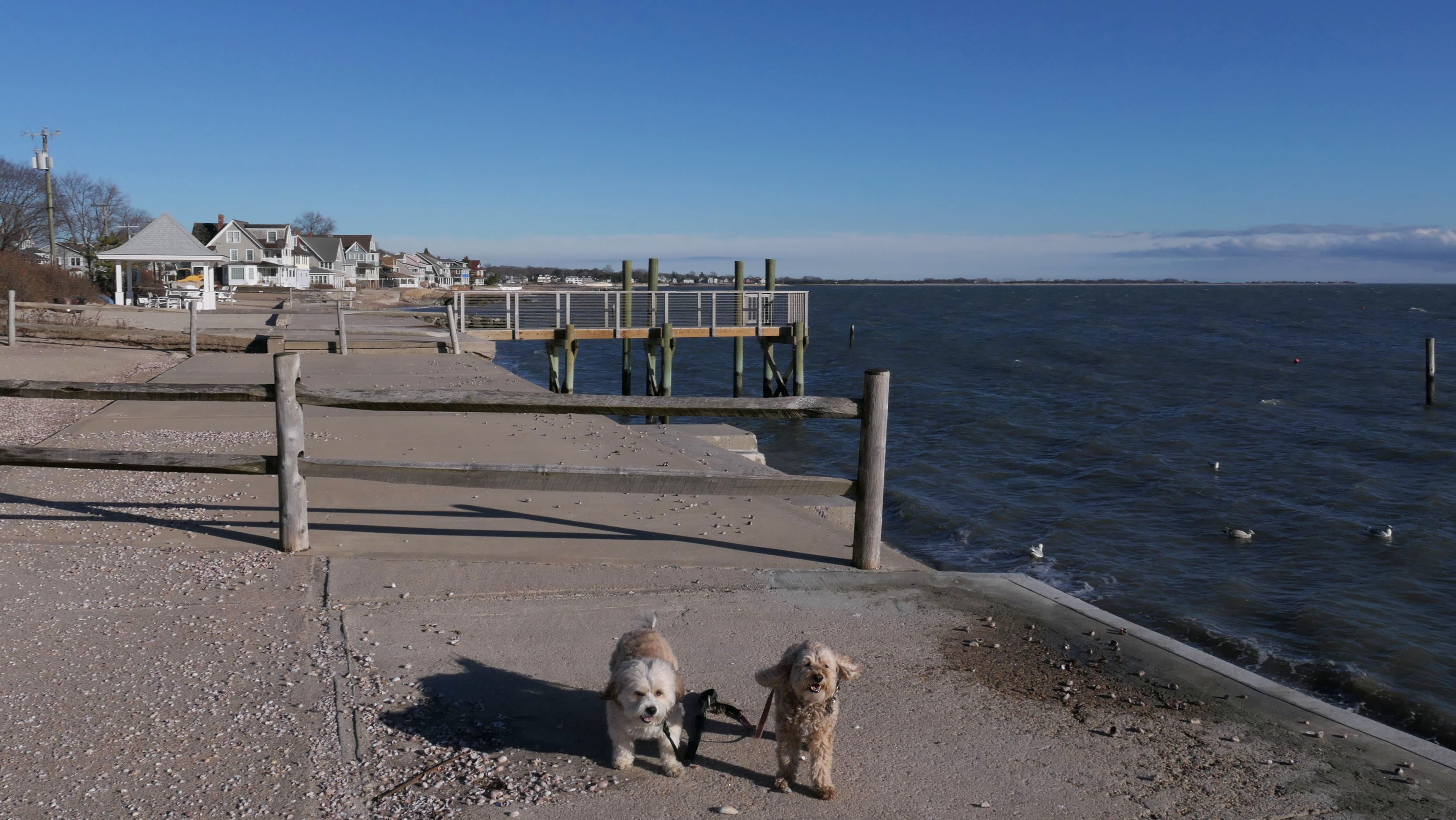 This was an unplanned adventure. We were actually heading to a beach in Rhode Island, but when we were about half way to our destination, I noticed the weather forecast changed, so we re-routed here where it was warmer and sunnier. There's a small parking area with space for about four cars near this rare Connecticut Shoreline Access Point. The actual access area is very small. There's a sidewalk along a seawall that runs down Middle Beach Road for a bit. After that, we walked about a mile down the road and back, passing East Wharf Beach along the way. Dogs are not allowed on town beaches in Madison, so we mostly stayed off the sand. Of course, I don't know why anyone would care since it's the end of December. We passed a lot of private beaches. Unlike Rhode Island, most of Connecticut's shoreline is off-limits to the public. It's a shame there isn't more public access.