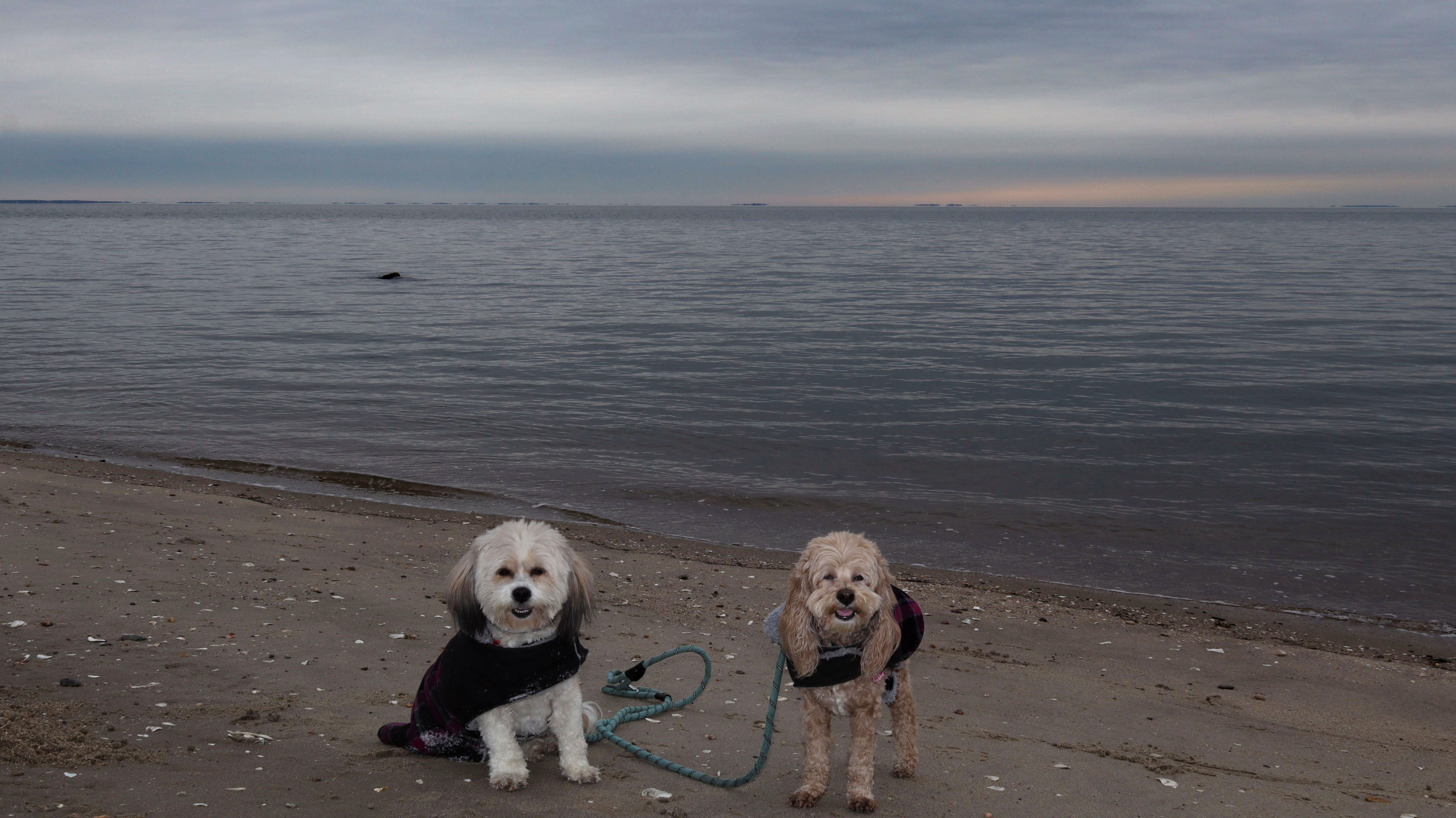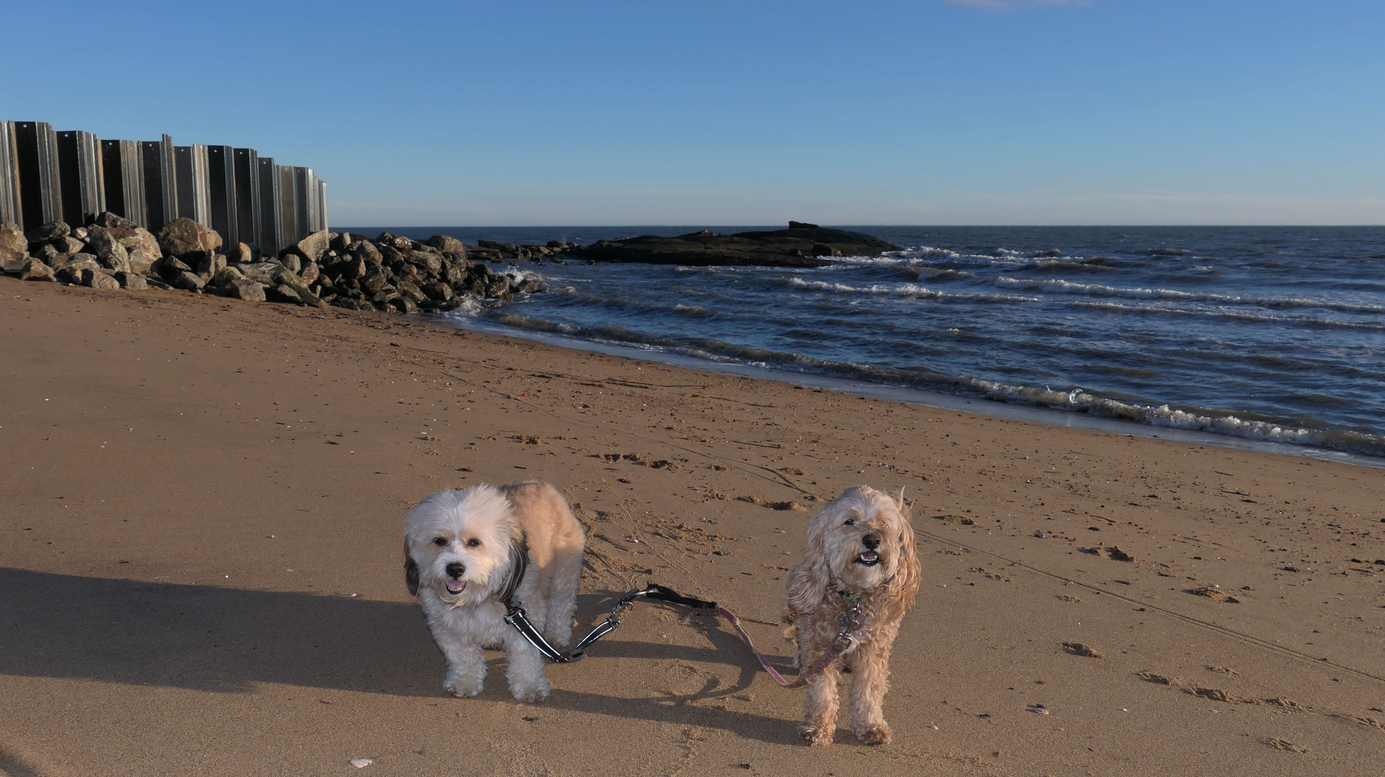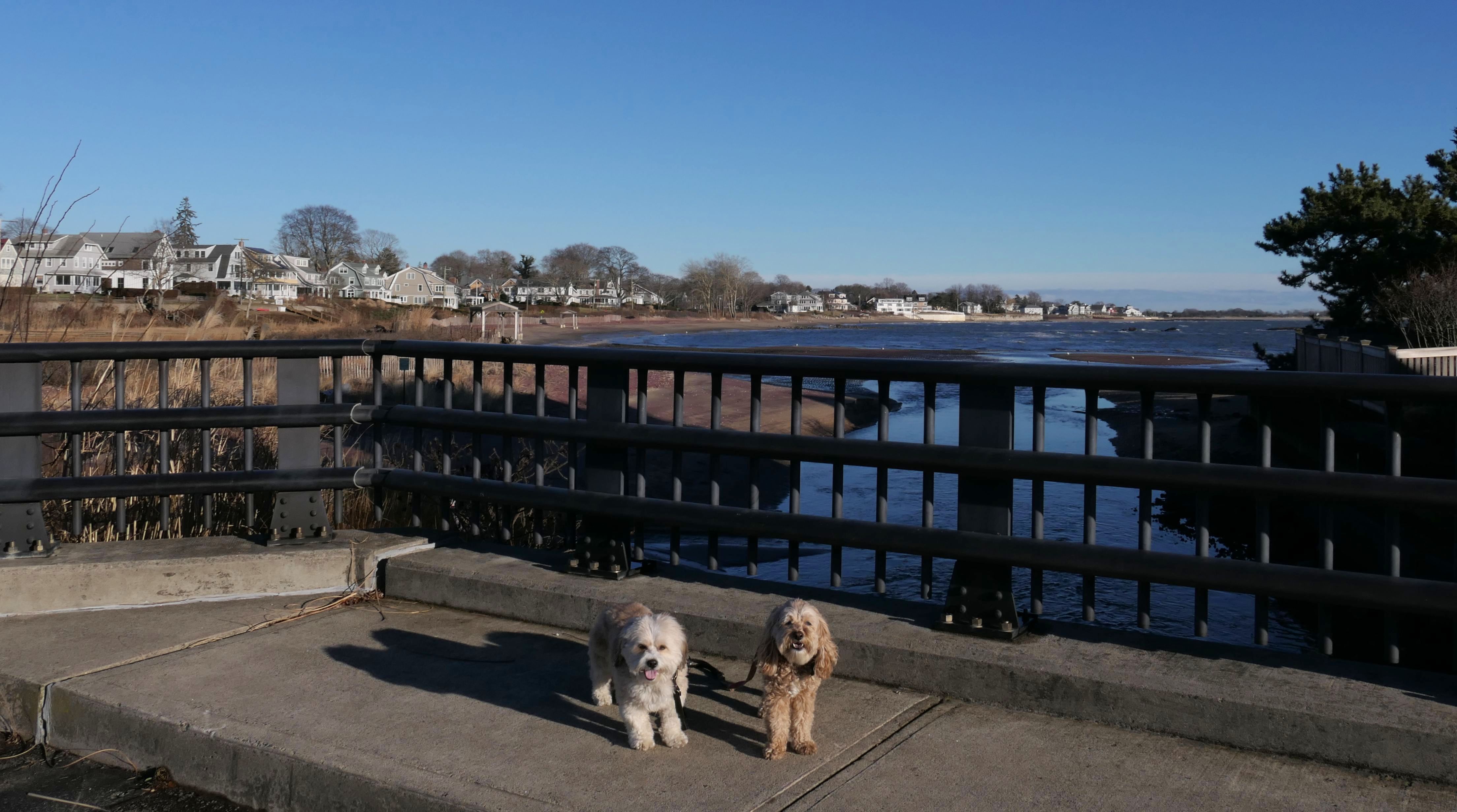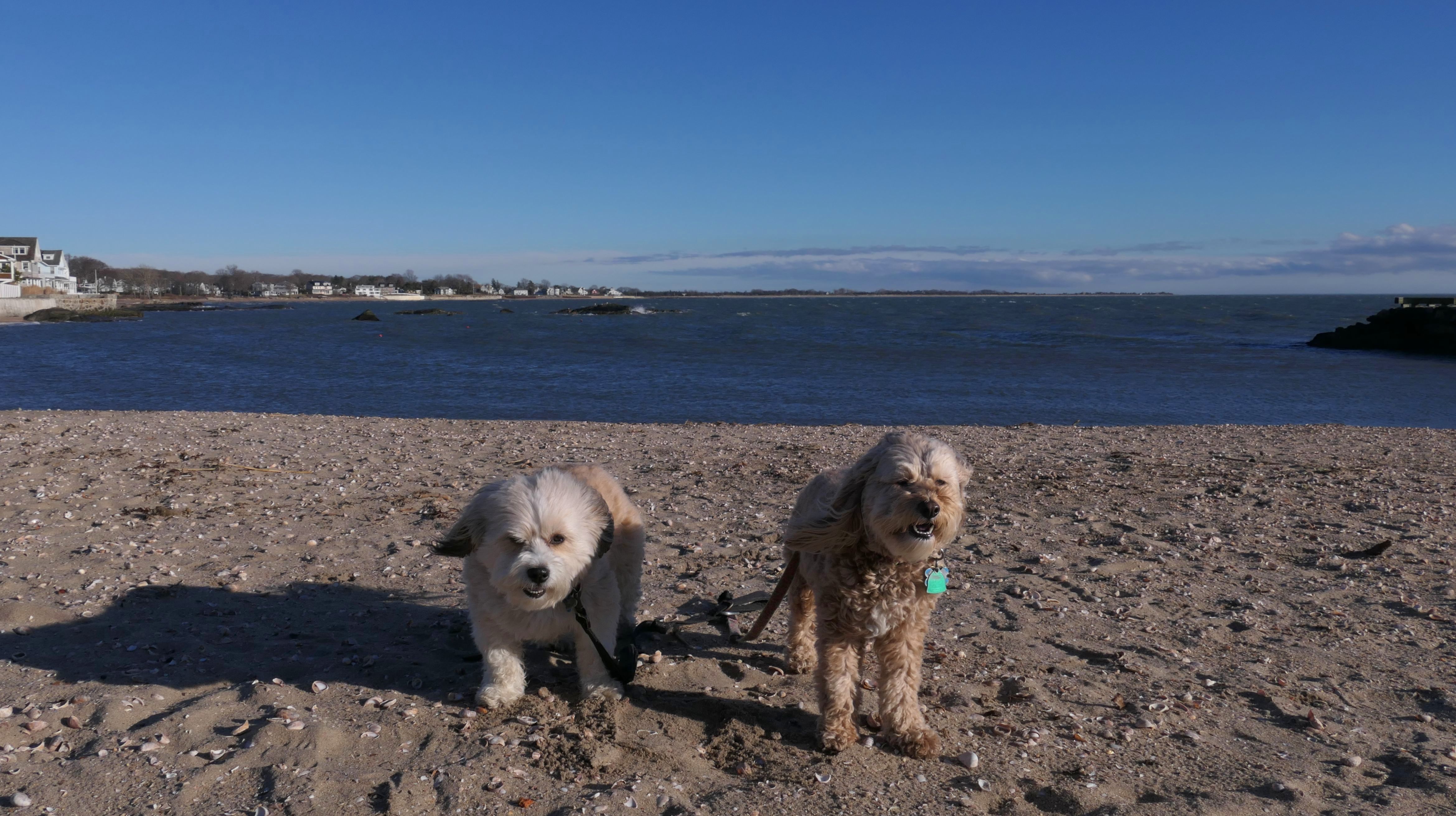 This was an unplanned adventure. We were actually heading to a beach in Rhode Island, but when we were about half way to our destination, I noticed the weather forecast changed, so we re-routed here where it was warmer and sunnier. There's a small parking area with space for about four cars near this rare Connecticut Shoreline Access Point. The actual access area is very small. There's a sidewalk along a seawall that runs down Middle Beach Road for a bit. After that, we walked about a mile down the road and back, passing East Wharf Beach along the way. Dogs are not allowed on town beaches in Madison, so we mostly stayed off the sand. Of course, I don't know why anyone would care since it's the end of December. We passed a lot of private beaches. Unlike Rhode Island, most of Connecticut's shoreline is off-limits to the public. It's a shame there isn't more public access.