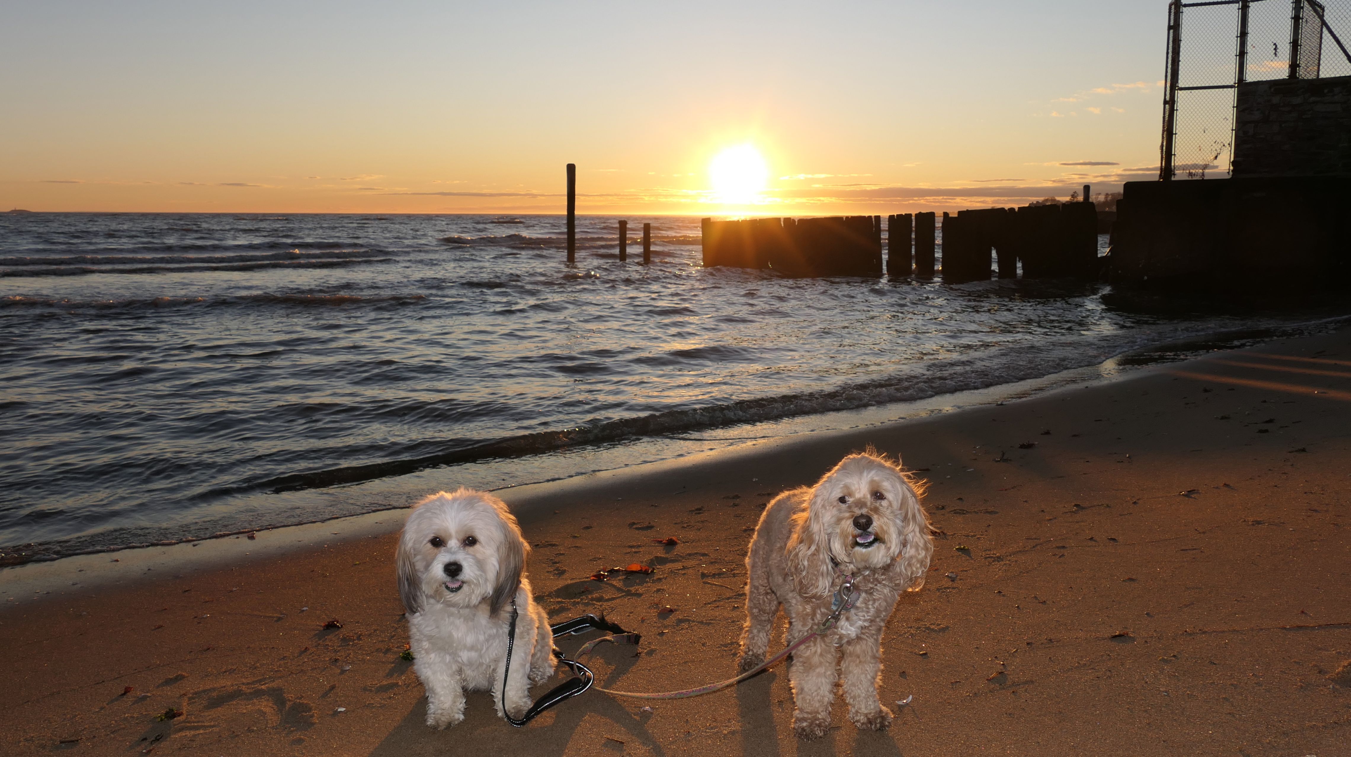 There is actually an off-leash dog beach here, called "Bark Swim Beach". It is located at the far end of Surf Club Park. Human swimming is off-limits, but boats can be launched from here. It's a small beach, but it looked like it had better sand than the regular beach. Be aware, there are some rules. The sign says that dogs must be registered with Madison Beach & Recreation, and proof of license and shots must be shown in order to receive a "Bark Swim Pass". It says "September to May dates only as shown on your pass". It's the off-season, and it was unclear if dogs are allowed without a pass in the off-season, or if they aren't allowed at all. At any rate, we checked out the beach. It was a good spot to take a couple photos as the sun began to set, but too chilly for a swim anyway.