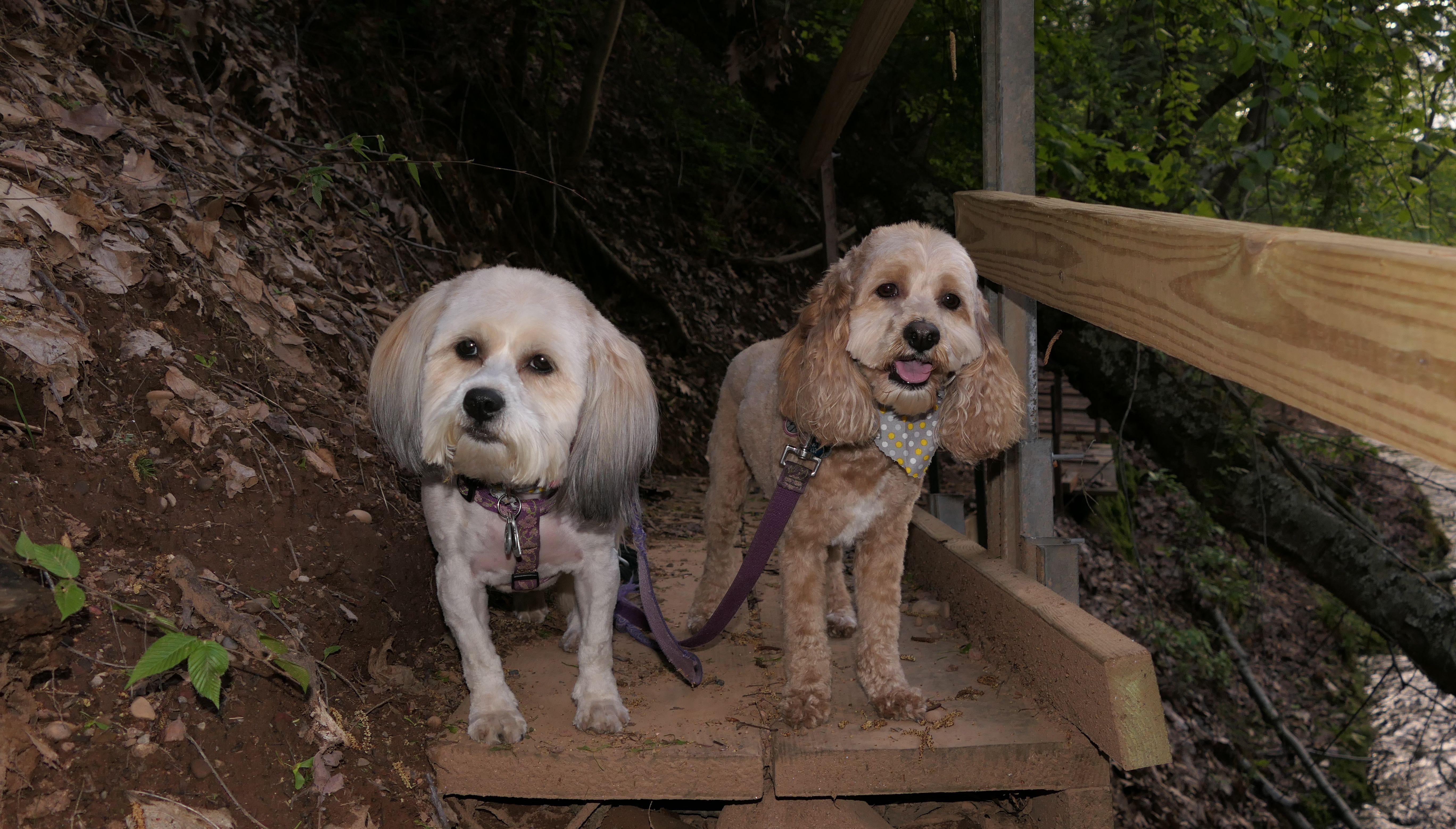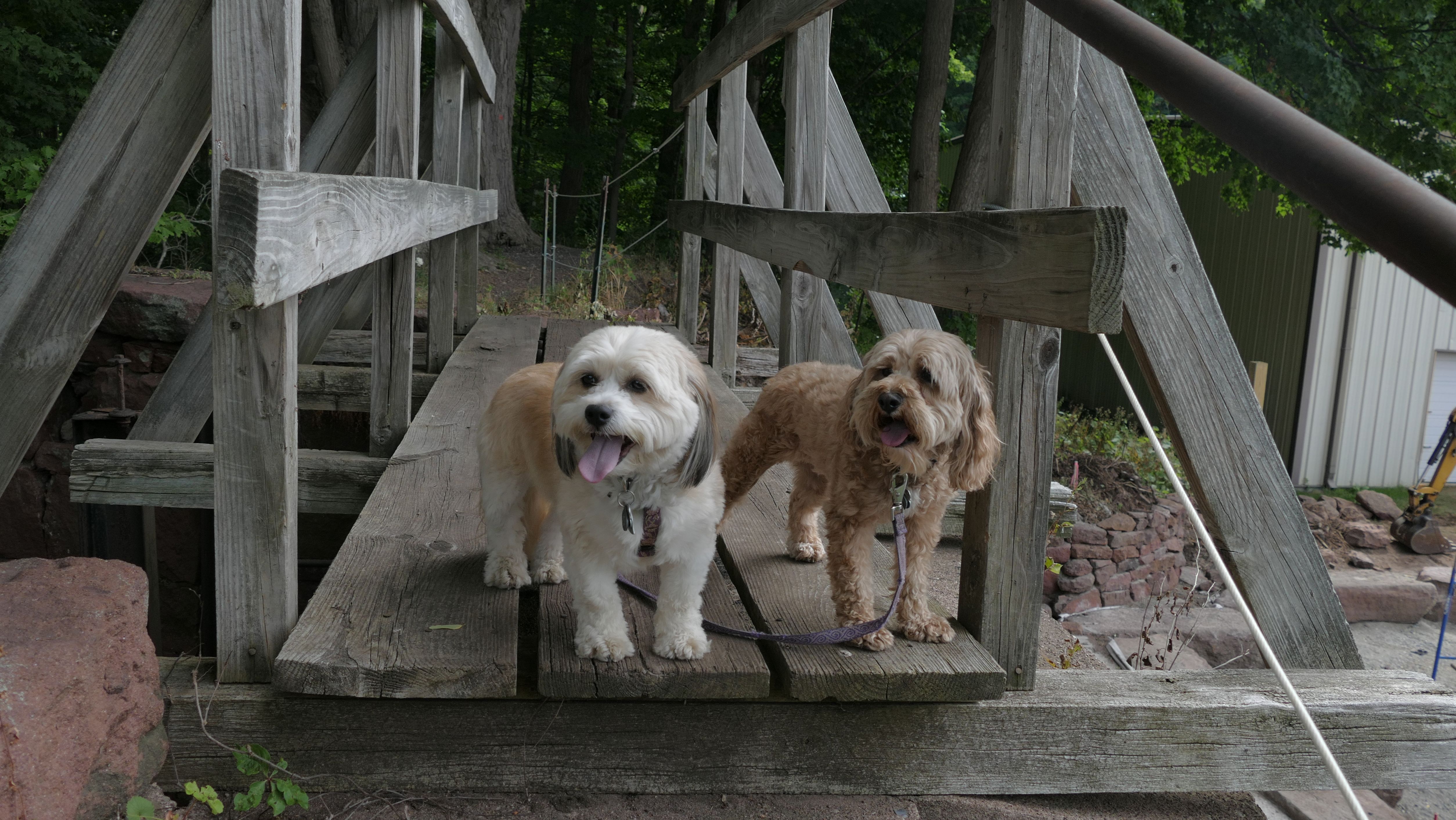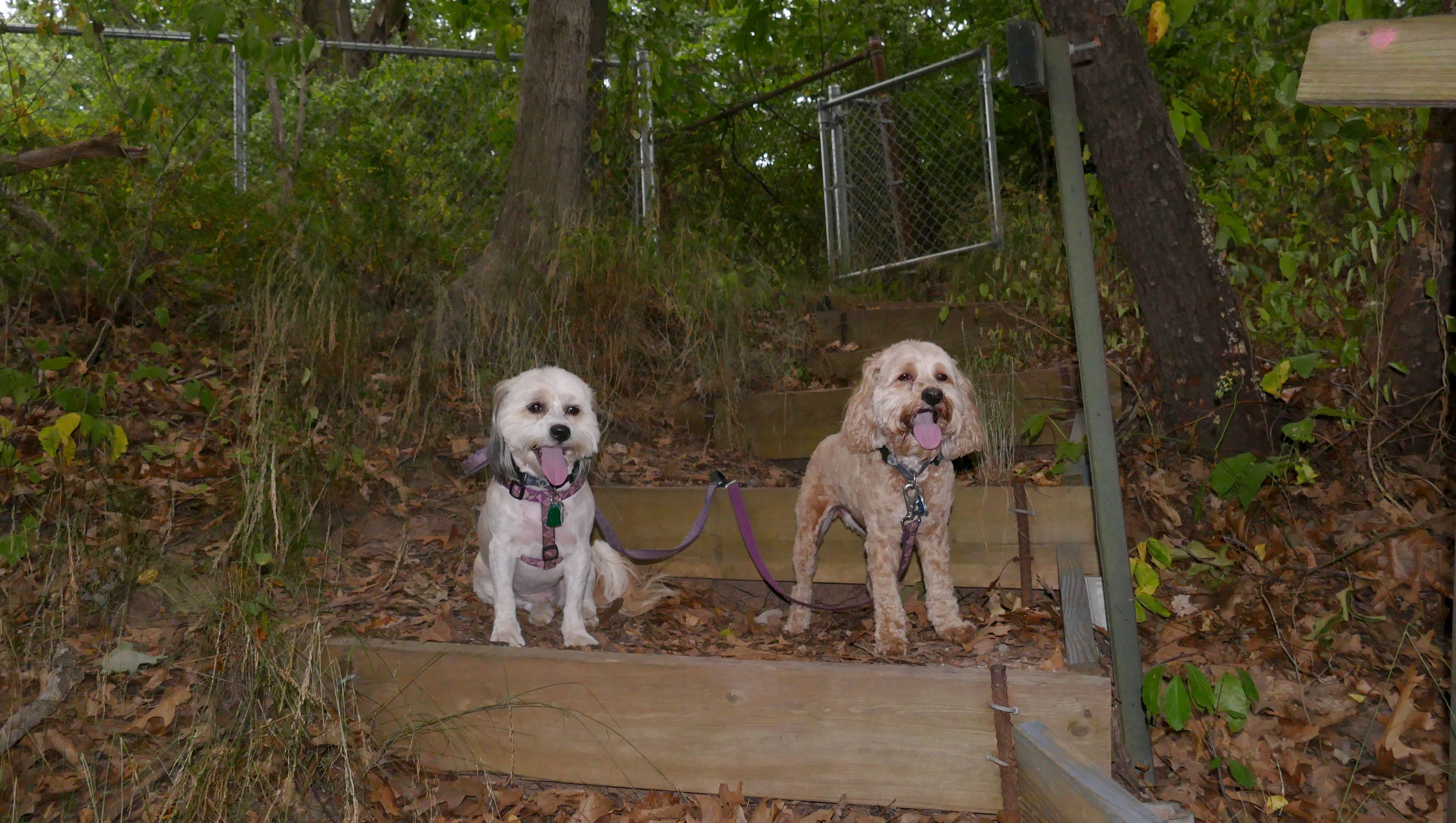 The Adam's Mill Restaurant was a staple in the town of Manchester for years. The restaruant has folded, and it is now Elicit Brewery. The trail starts behind the restaurant. You can walk a loop here, but you will come out down the road a bit next to the car dealership and have to walk the last segment on the sidewalk. The river crossing is actually over an old railroad bridge, and is technically closed to pedestrians. There really is no legitimate way to walk the loop unless you are a rule breaker! The bridge is a steel grate bridge. Mandy absolutely hates those, so we didn't actually cross the first time we visited. The second time we visited, I carried her over the bridge! Once on the other side of the bridge, there didn't seem to be an easy way back down the hill to the trail. We had to climb down a real steep hill. That was a real adventure with the dogs. Somehow we managed to get down in one piece! There's a side trail behind the restaurant, along a levee that leads to ruins of an old mill that were interesting to explore. Like the New State Road Trail, there is also a section on the side of a cliff that is a little tough to navigate.