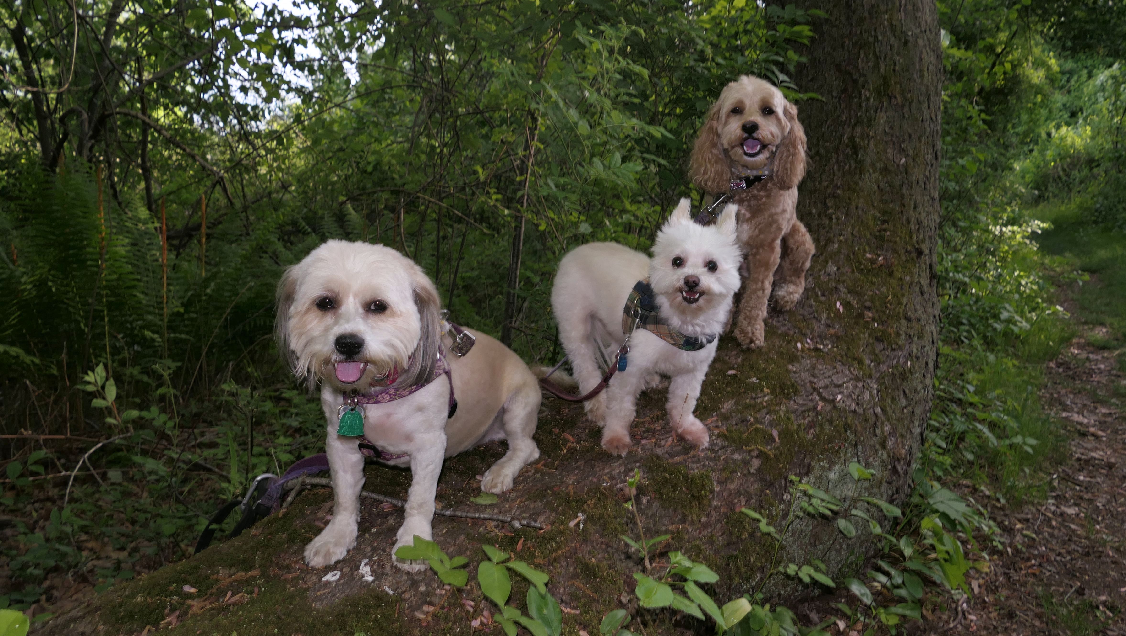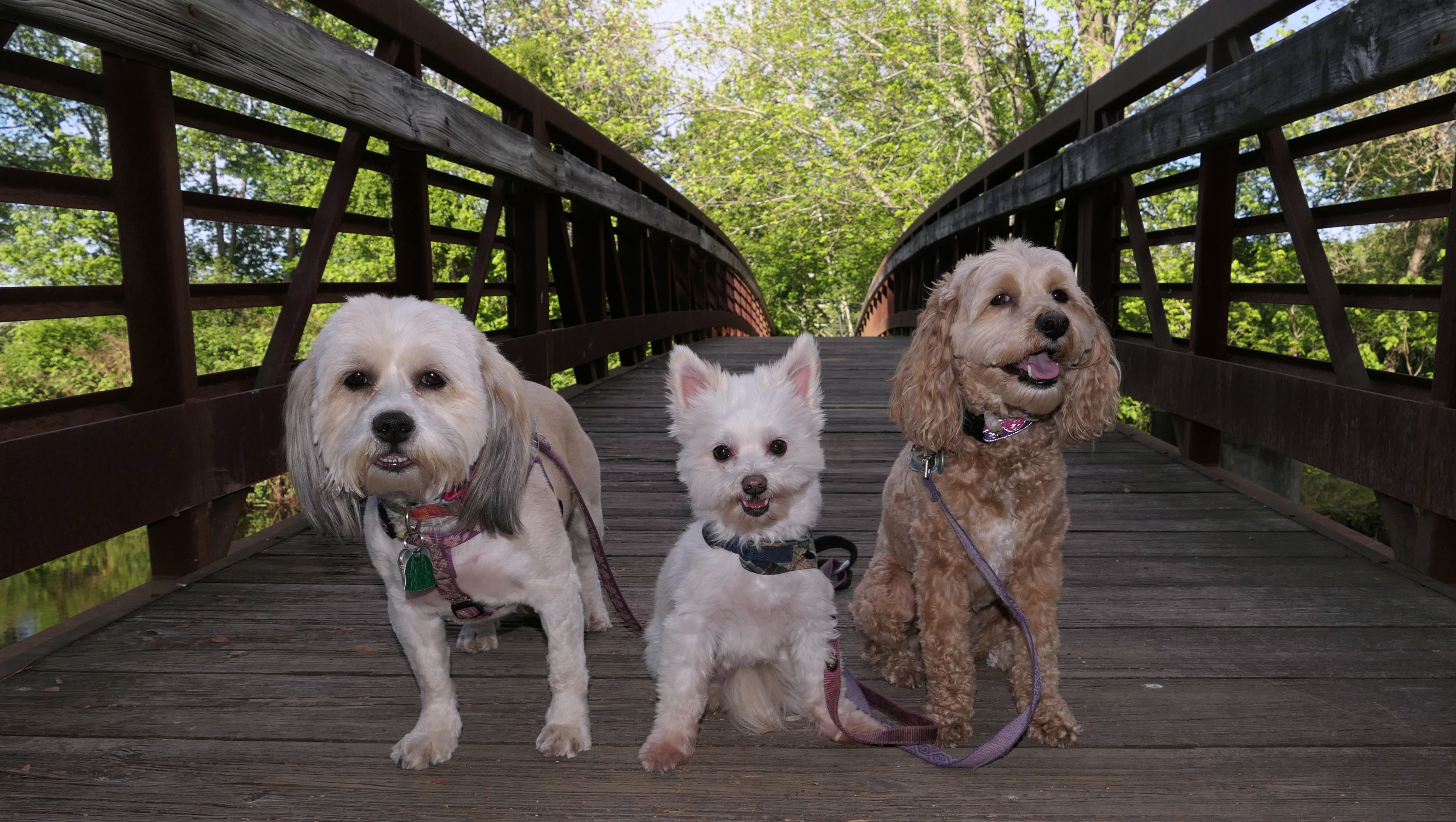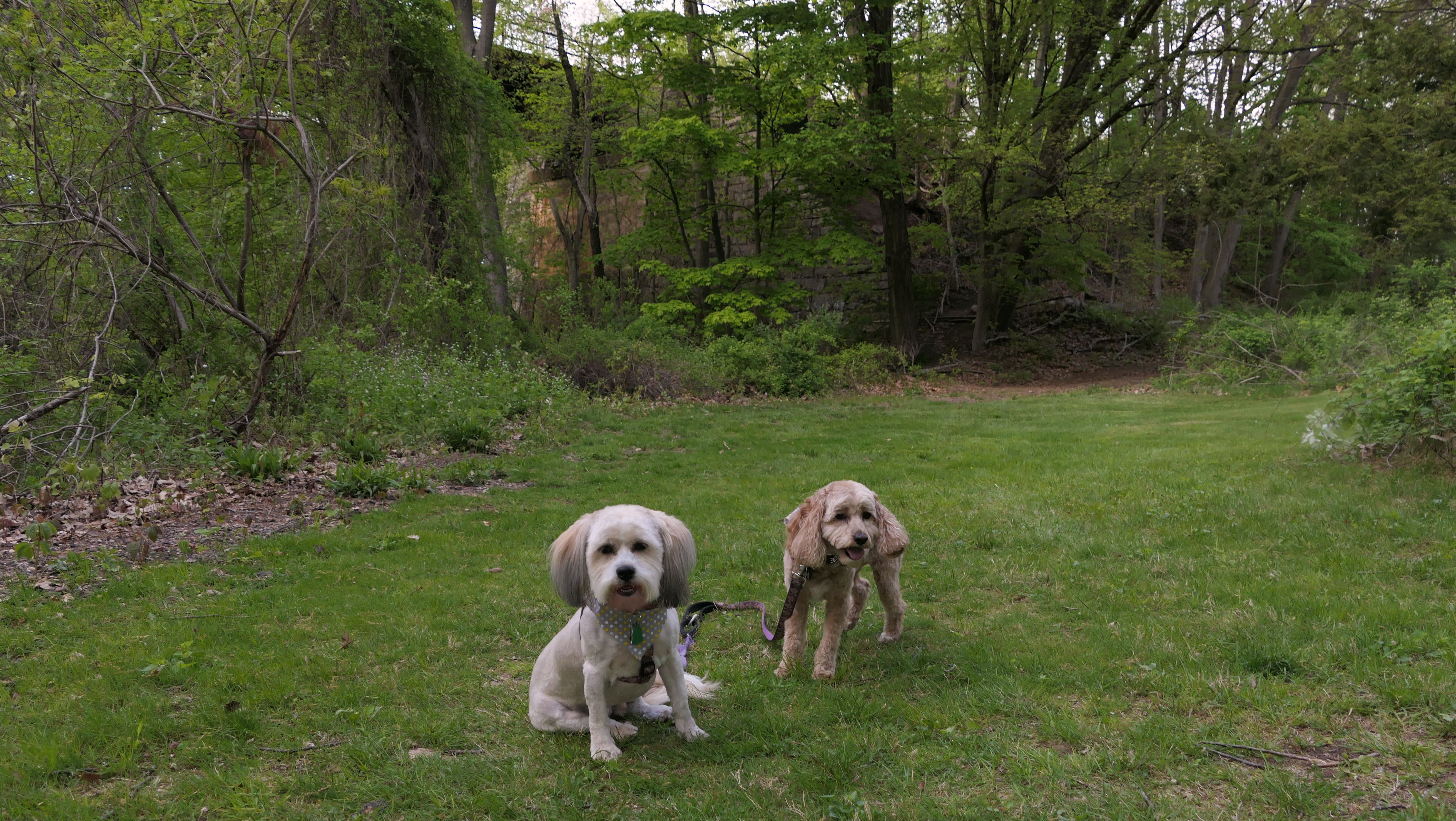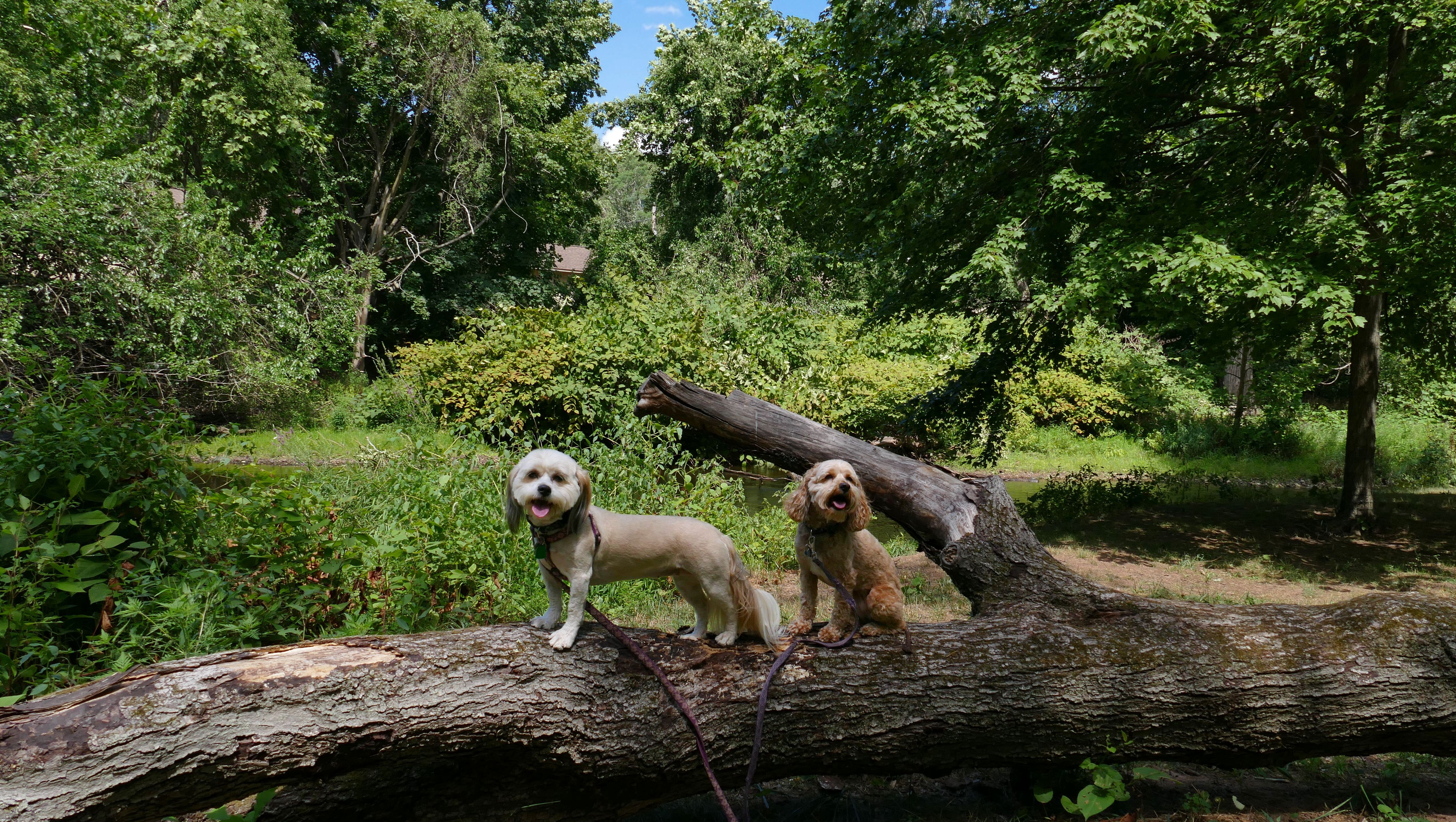 The Adam's Mill Restaurant was a staple in the town of Manchester for years. The restaruant has folded, and it is now Elicit Brewery. The trail starts behind the restaurant. You can walk a loop here, but you will come out down the road a bit next to the car dealership and have to walk the last segment on the sidewalk. The river crossing is actually over an old railroad bridge, and is technically closed to pedestrians. There really is no legitimate way to walk the loop unless you are a rule breaker! The bridge is a steel grate bridge. Mandy absolutely hates those, so we didn't actually cross the first time we visited. The second time we visited, I carried her over the bridge! Once on the other side of the bridge, there didn't seem to be an easy way back down the hill to the trail. We had to climb down a real steep hill. That was a real adventure with the dogs. Somehow we managed to get down in one piece! There's a side trail behind the restaurant, along a levee that leads to ruins of an old mill that were interesting to explore. Like the New State Road Trail, there is also a section on the side of a cliff that is a little tough to navigate.