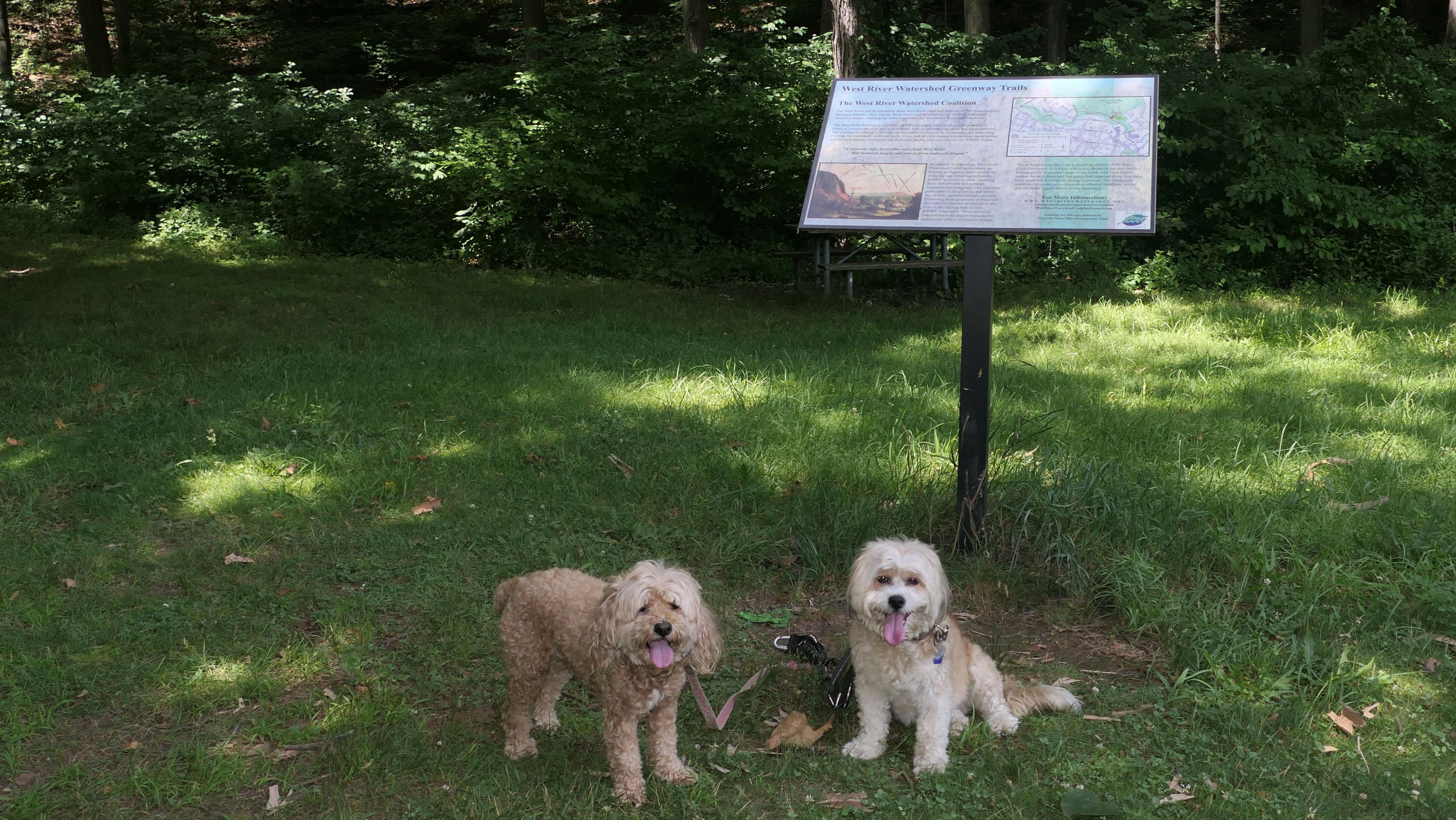 We're in our sixth year of going on these adventures, and it's hard to believe I just found this trail now. This is a city trail that runs from Edgewood Park to Pond Lily Preserve, paralleling the West River. The trail starts as an elevated cement sidewalk from Whalley Avenue to Blake Street. It becomes a stone dust surface through West Rock Park. It's a standard dirt trail the rest of the way, but was probably wood chips at one point. The trail is pretty well maintained, considering it's a city trail. There wasn't as much trash as I expected, but we had to be careful of broken glass in a couple spots. We found a nice spot where Mandy & Lexi were able to figure out how to get to the river to cool off a bit. On our way back, we took a short cut and followed the sidewalk along Valley Street so we could check out the botanical garden on our way back. Our walk was about four miles total.