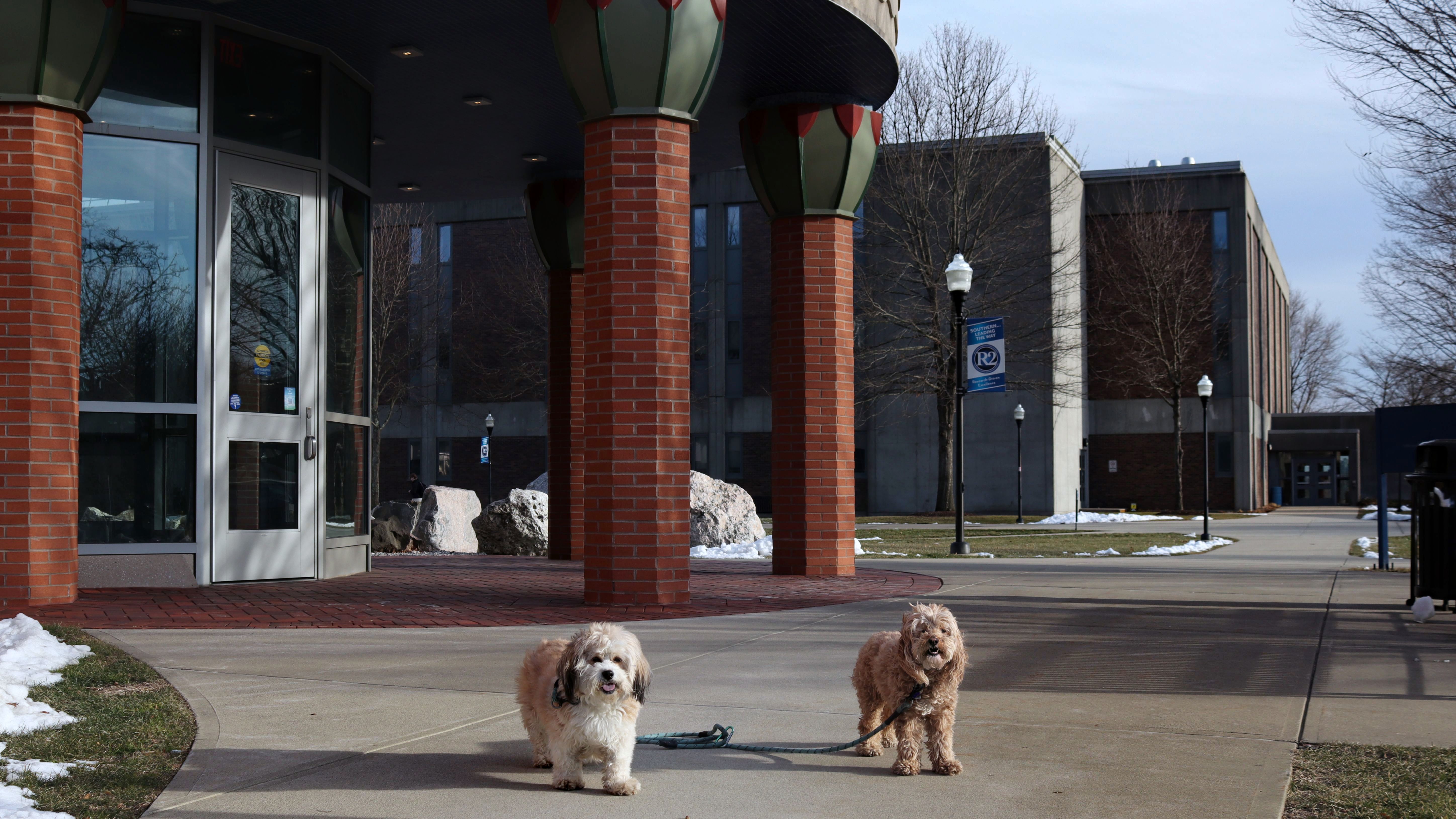 The idea for this trip was to see the cherry blossoms at Wooster Square Park, but we were too early. The cold weather has delayed their bloom. So we parked near the park and took a walk through the downtown area, and wound up walking through Yale instead. This is a completely different section of Yale than our previous visits. In addition to walking around the public streets, we also walked through the campus and the various courtyards. It's a beautiful campus, and even though there weren't any cherry blossoms at Wooster Square Park, there were plenty of spring blooms here. We also walked through "The Shops at Yale at Broadway", a public shopping area in the midst of the campus. It was during the middle of the week, so we encountered many students who were mildly amused at the dogs posing for photos. Mandy and Lexi are always super friendly with people we encounter, and one student who asked to pet them said that it made her day!