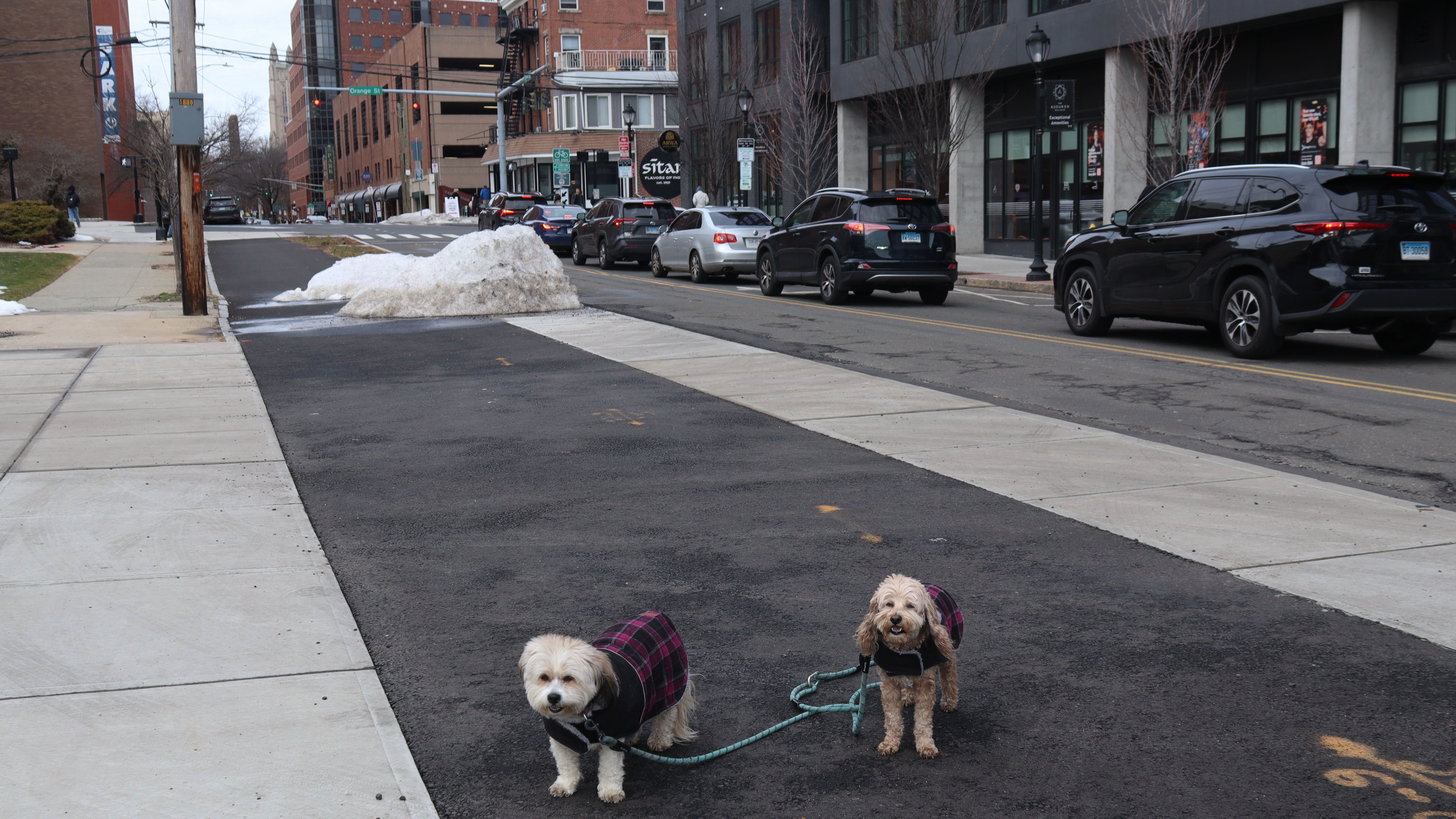 It wasn't the nicest day for an adventure, but with another round of snowmageddon on the way, I wanted to get out while we could. The last time we were here, the new tunnel section was still closed, so this was our first chance to check it out. The tunnel includes a separated pedestrian walkway and illuminated signage that explains the corridor's evolution—from canal, to railway, to today's multi-use trail. I had always wondered how this stretch would eventually connect to the final segments, and now the routing is much clearer. From the tunnel, new pavement runs alongside Grove Street, with additional trail construction underway along State Street as it passes the train station. That alignment will ultimately link up with the existing segment at Water Street, which continues to the trail's end at Long Wharf. The only remaining question is just beyond the train station, where State Street splits—I'm still not sure which branch will be used to meet Water Street. Since we've already walked that final stretch before, we turned west on George Street and then up College Street to loop back to our starting point near the tunnel by Yale. We also made a stop at Temple Street Plaza, covering about three miles in total.