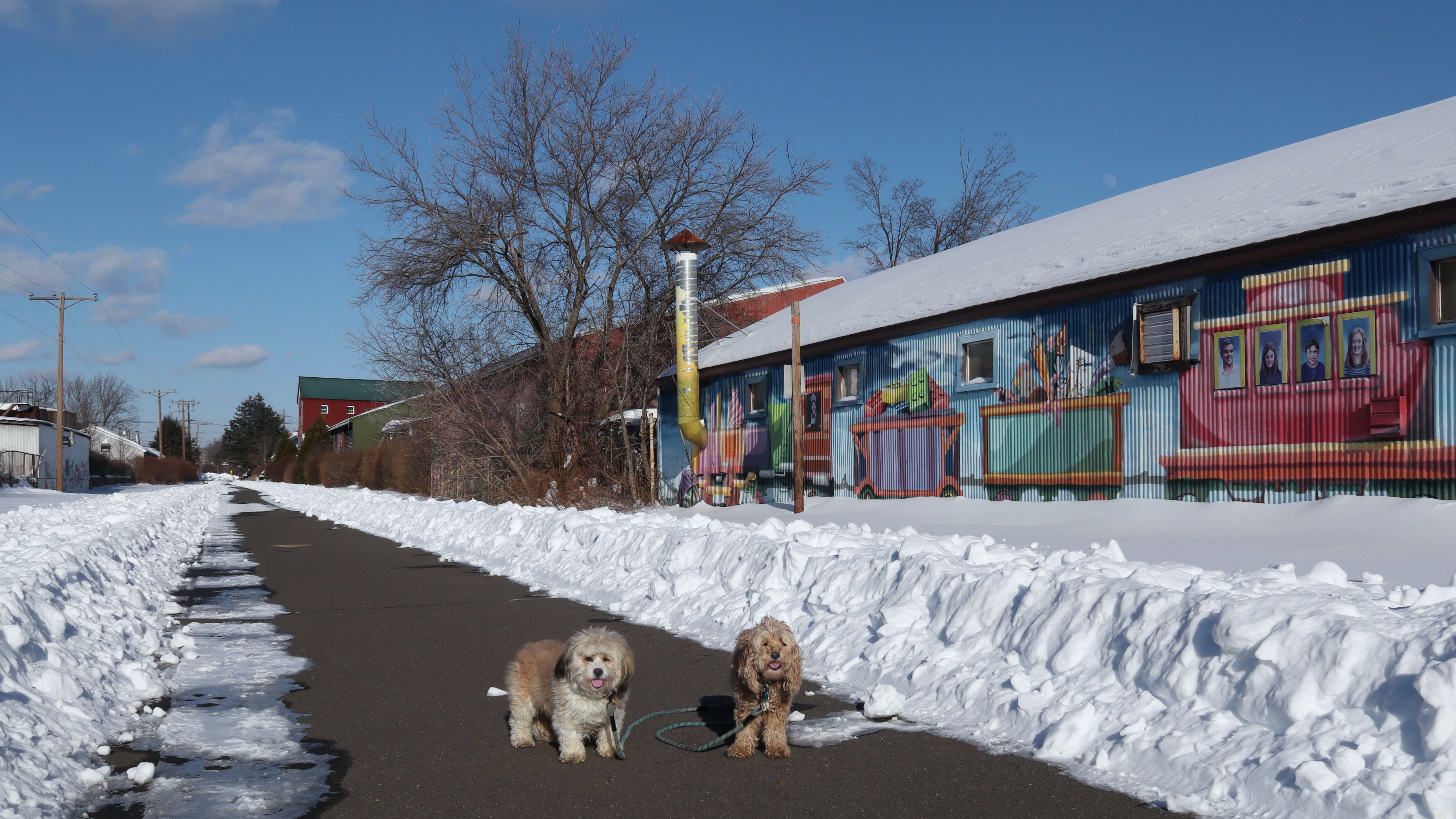 Snowmageddon lived up to the hype! Well over a foot of snow dropped throughout the region. It was the most snow we've had since we started these adventures almost six years ago. In addition to the snow, temperatures have been frigid, so we've been stuck inside for six days. I was running an errand nearby and noticed this trail was cleared off, and since temps made it up to the mid-20's, I came back later in the afternoon with Mandy and Lexi. Despite the cold weather, they were happy to get out. We started at the parking area off Mill Street and headed south until we reached Plantsville, where the trail wasn't cleared off anymore, and then turned around and headed back, walking about three miles total in the process. It wasn't too bad when the wind wasn't blowing. This is probably my favorite section of this trail, so even with the wintery conditions, this was a fun walk.