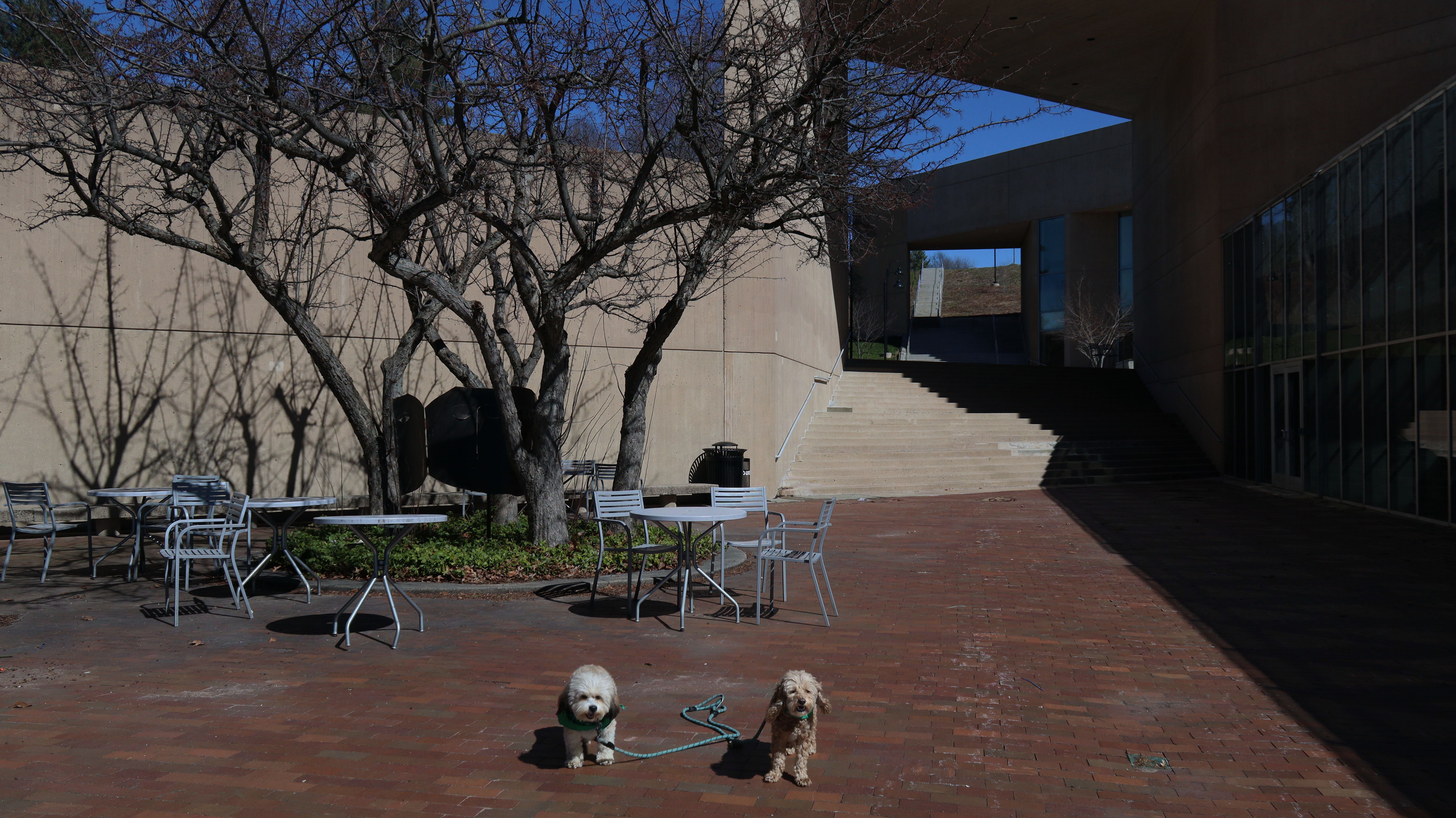 This is a college-prep boarding school with a beautiful campus. It must have been spring break, because there was no signs of students anywhere. It was deserted, other than a few other dog walkers. The campus is pretty large, combined with nearby Doolittle Park, we walked almost five miles on a sunny and brisk day. See if you can spot the photobomb in one of the pictures below.