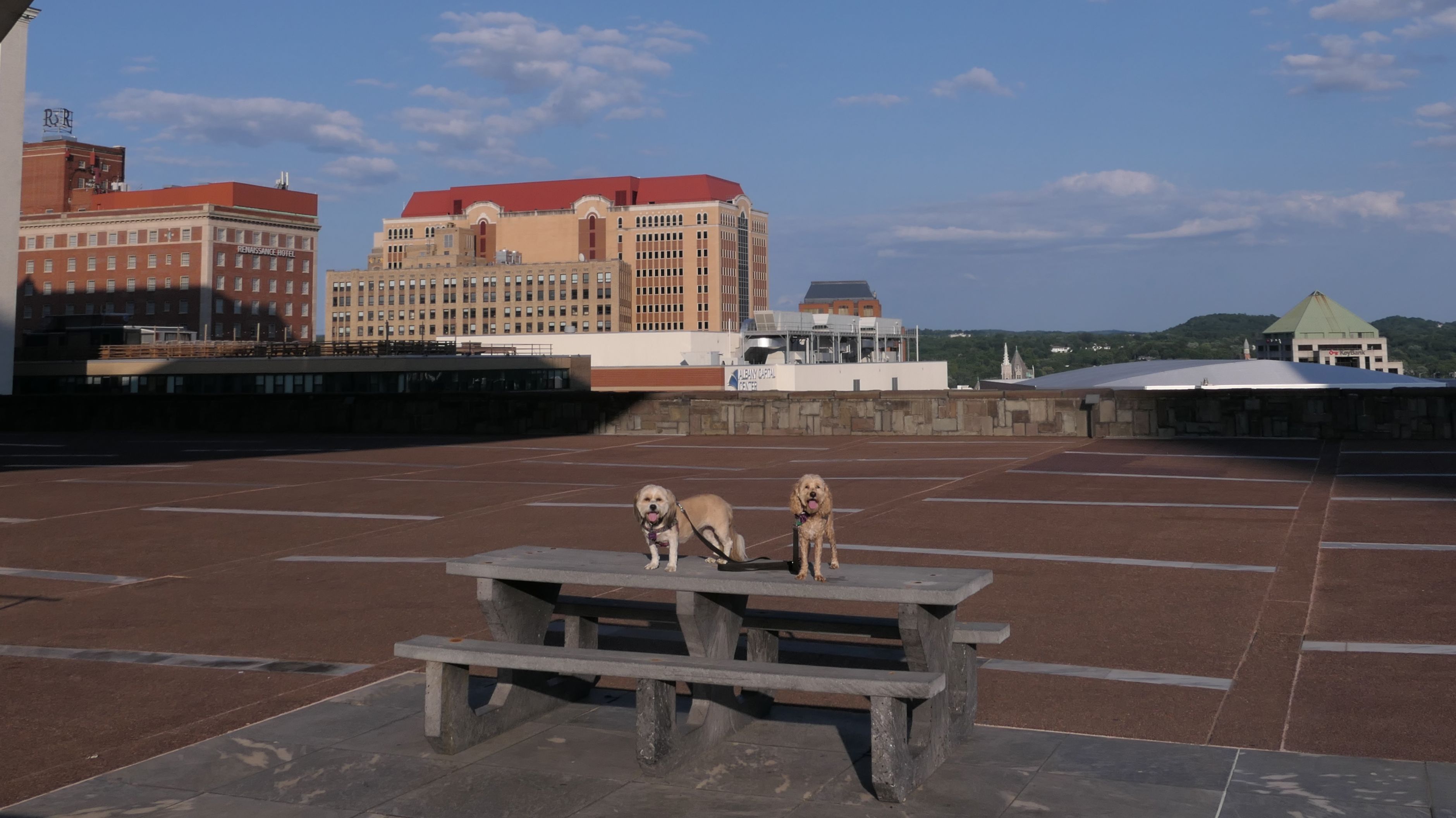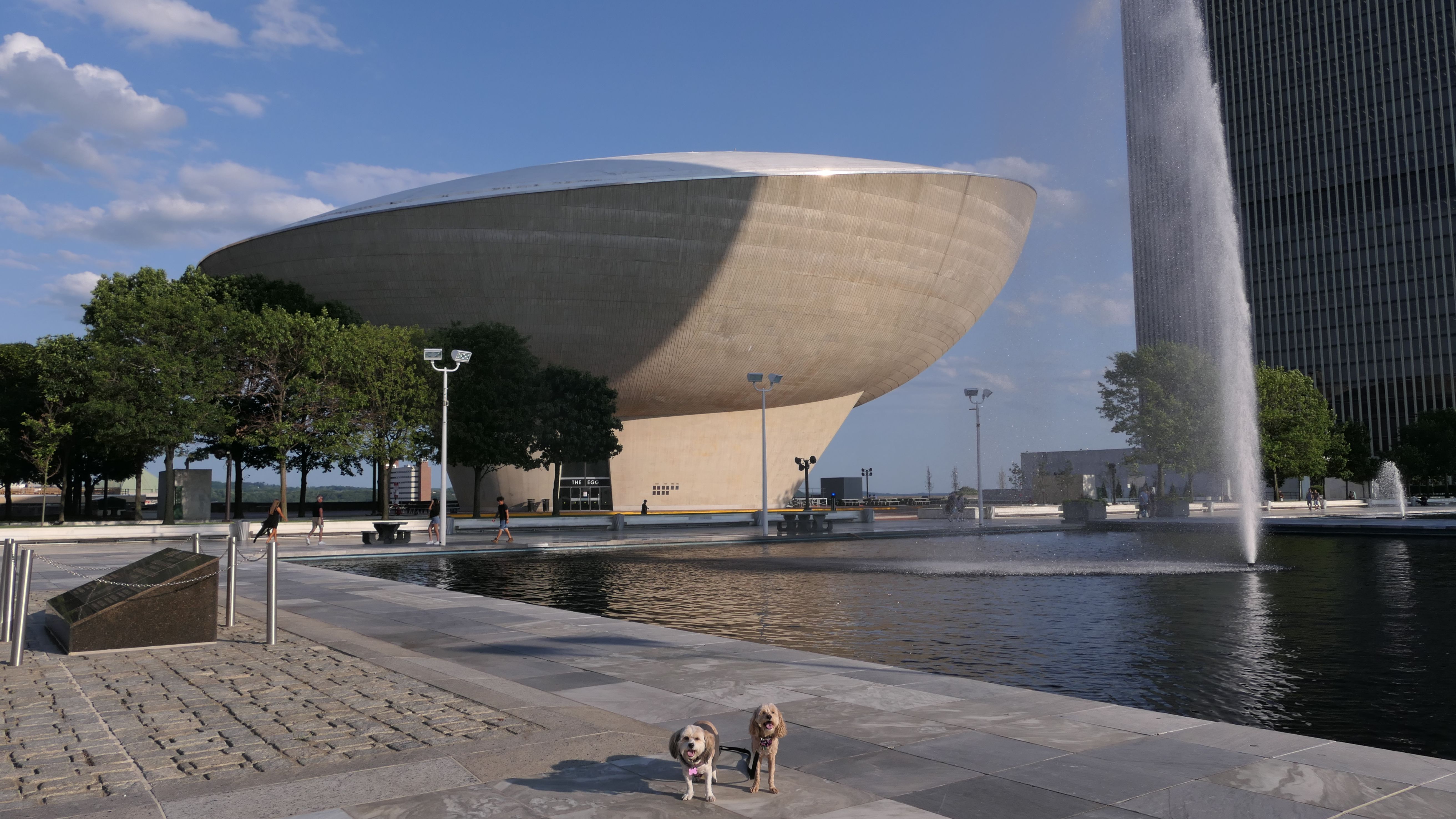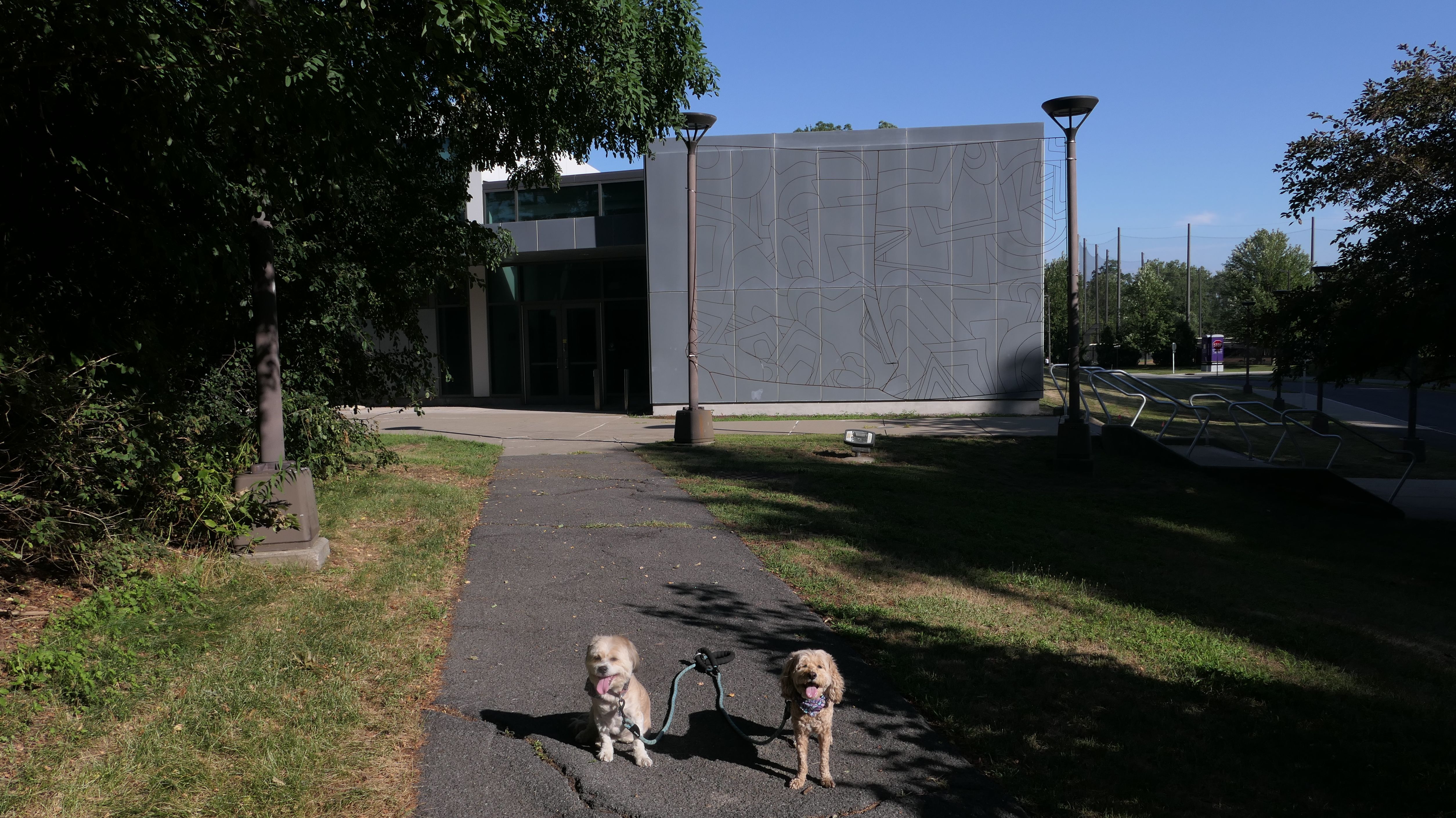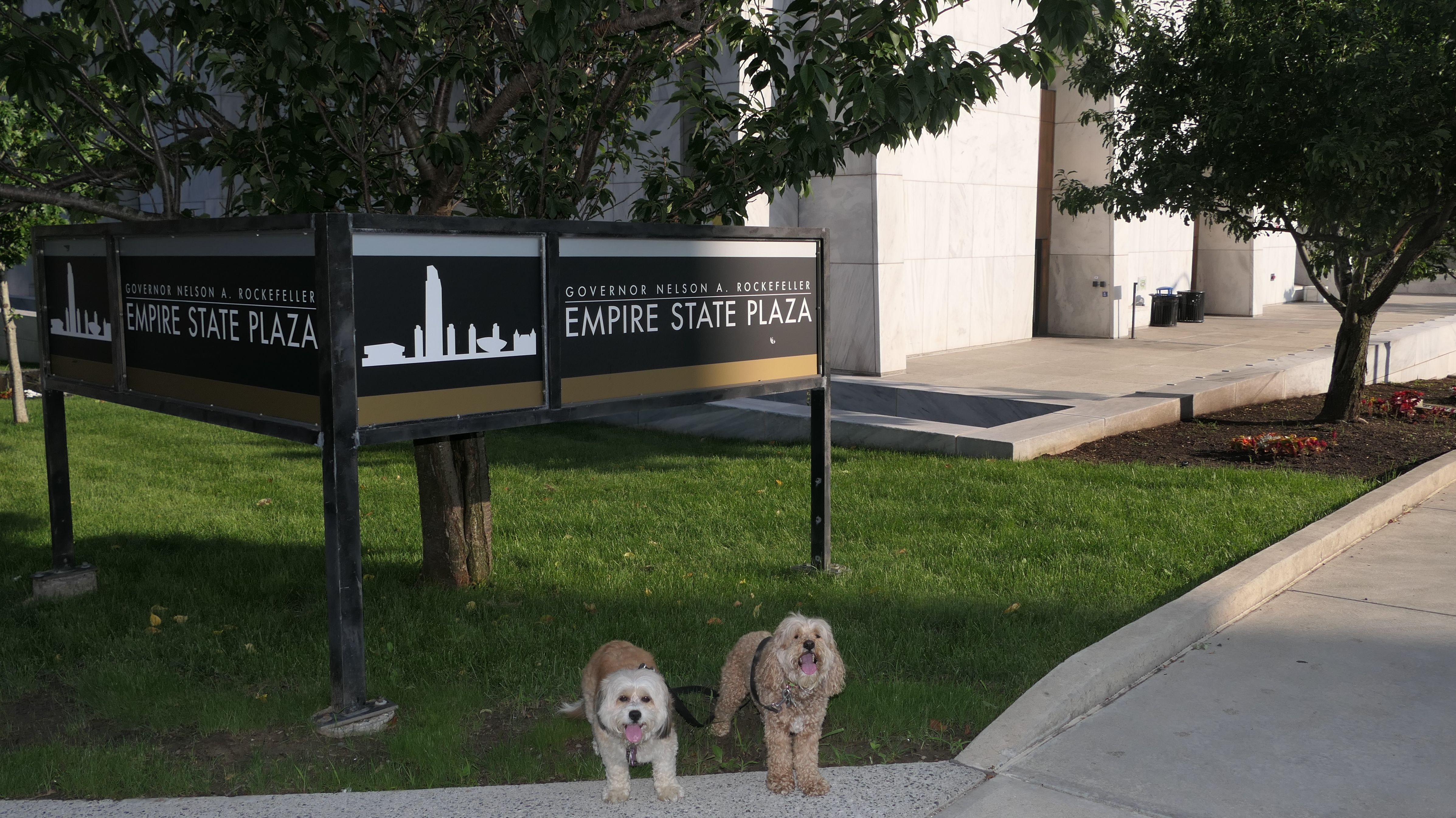 This was one of my favorite trips! I love The Egg! It is my favorite concert venue. I think I miss concerts the most during COVID. Not only is The Egg a great concert venue, Empire State Plaza is a great place. The buildings, the plaza and the sculptures all look so sleek. The dogs were super cooperative with the photos that day too. They seemed generally happy to be there.