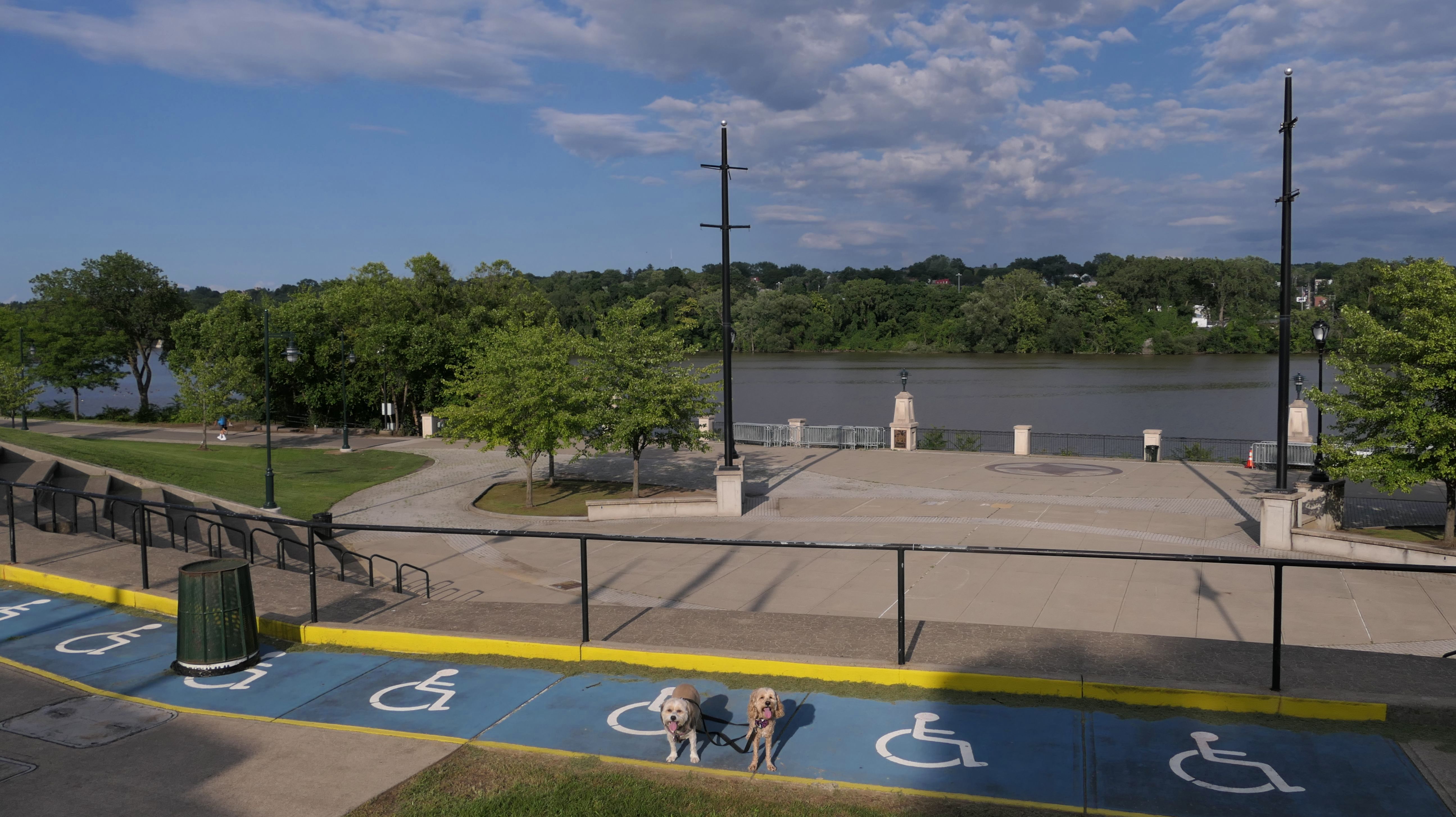 The purpose of this visit was to escape the humidity and the smoke, as the air quality was better here and the sun was out. It was nice to see a blue sky that wasn't hazy! This park lies between I-787 and the Hudson River. A section of the Mohawk Hudson Bike Hike Trail runs through the park, which itself is a part of the much larger Empire State Trail. The park offers some nice views of the Hudson. There is also a large pedestrian bridge that leads over the highway and into downtown. We used the bridge to walk up to Empire State Plaza.