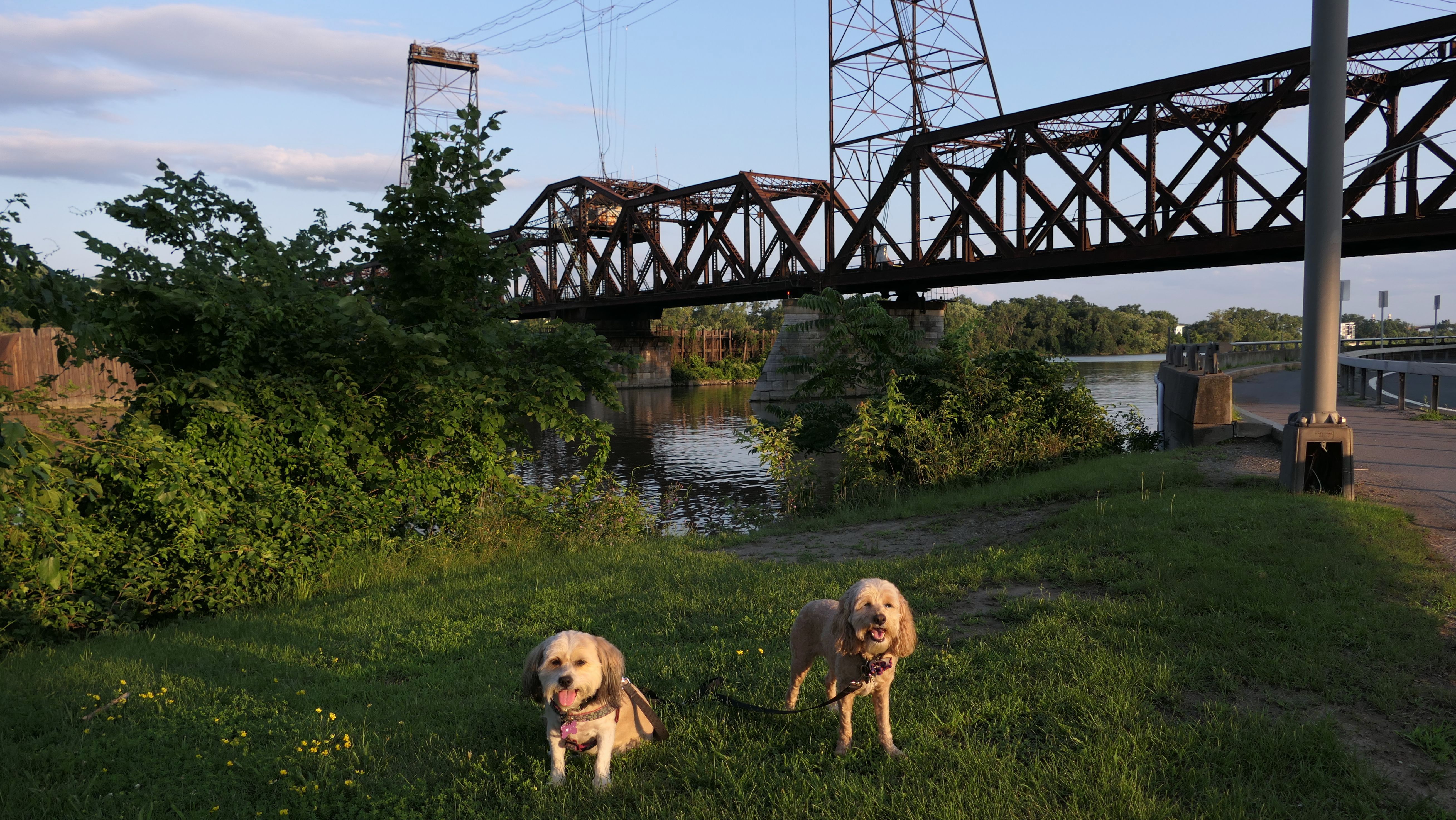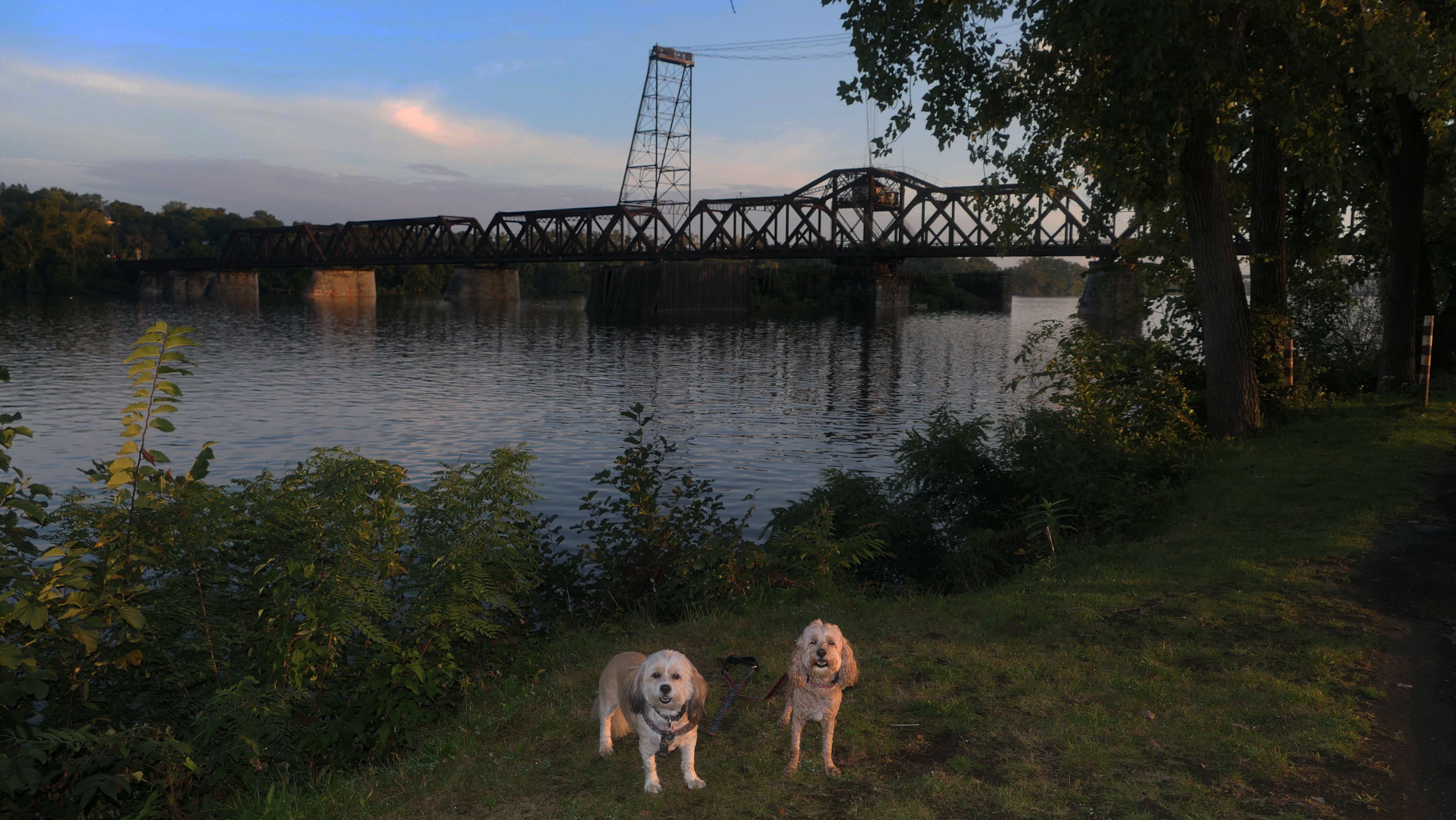 The northeast had been pummeled with rain the past few days, so I was looking for some place dry to take the dogs. The sun was out here as well, so that was a plus! We started just north of Corning Waterfront Park, and walked about 2 1/2 miles on the trail into the Menands section of Colonie. The perfectly flat, paved path runs between I-787 and the Hudson River. There are side trails that we did not explore because they were flooded. We basically stayed on the paved path, except for some grassy areas, but those were quite wet too. We walked a bit over five miles total out and back. The pictures below are from the Albany section of the trail. Check out the pictures from the Colonie section on the Colonie page.