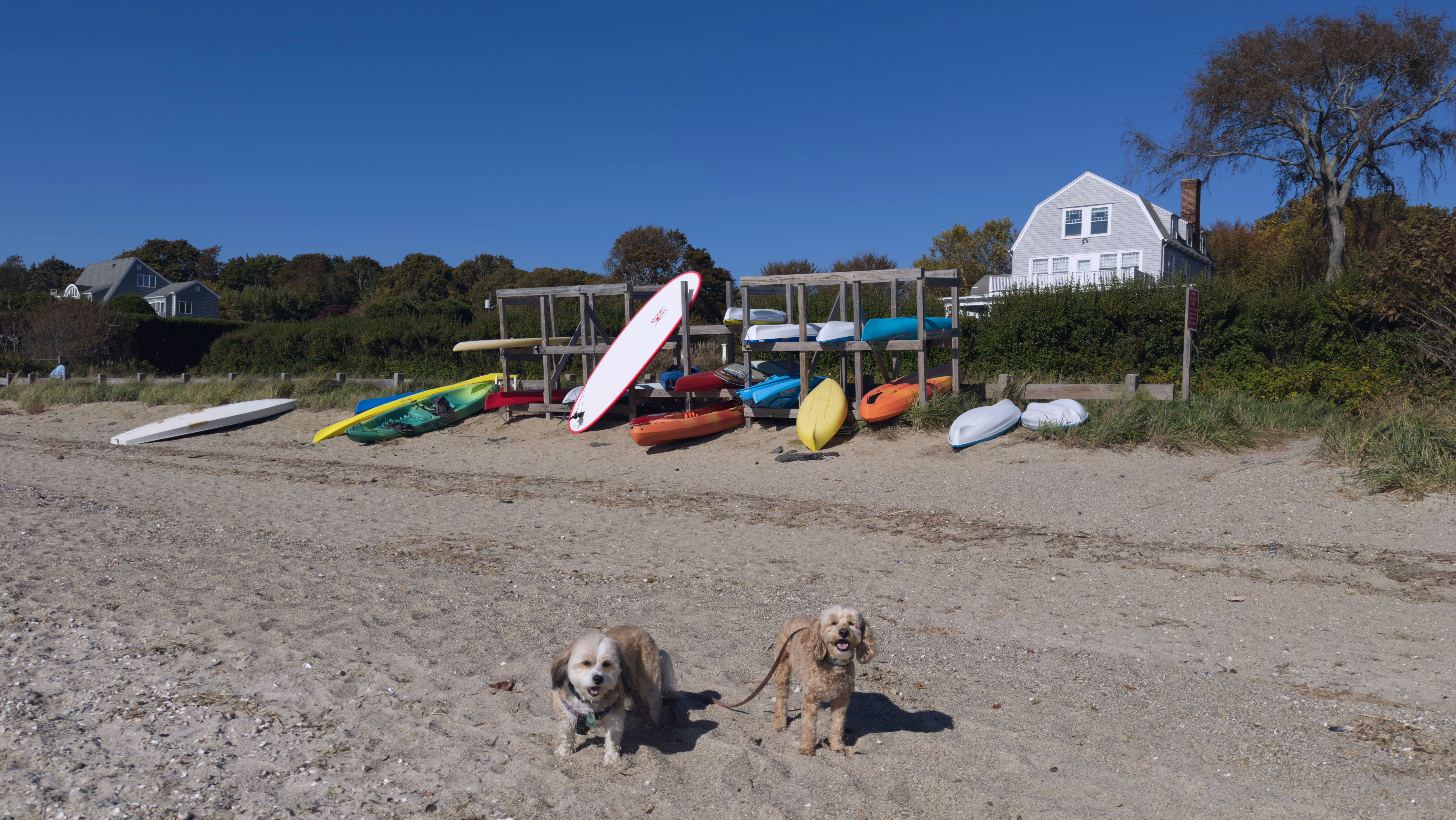 Days like these at the end of October are a blessing - bright sunshine, and nearly 70 degrees. October is prime beach weather...for dogs at least! While there are a fair number of beaches in Rhode Island that allow dogs year round, there are others like this one where dogs are only allowed in the off-season. This one actually allows them between the day after Labor Day and the day before Memorial Day. I scoured the town of Barrington's website to find this information out, so I was surprised when I arrived at the parking lot to a "No Dogs Allowed" sign. But I guess that's only for beach season as there was about 50+ other dogs here today. This beach is a long one, about two miles one direction, and we walked the whole thing out and back, so we got our steps in. The dogs would take breaks and wade through the water when they got hot. We explored a few side trails through the marsh as well. It was a fun walk on a fantastic day.
