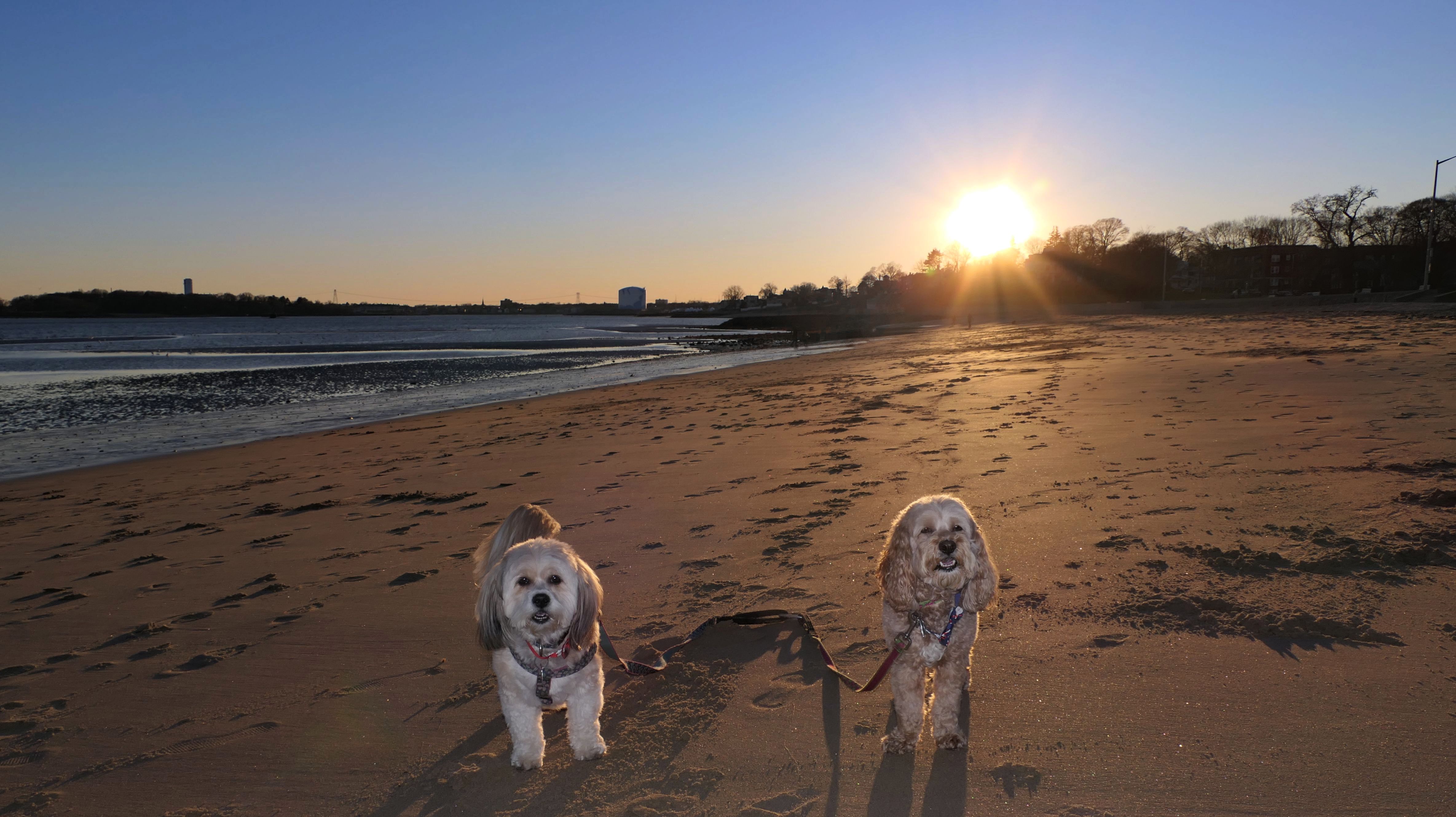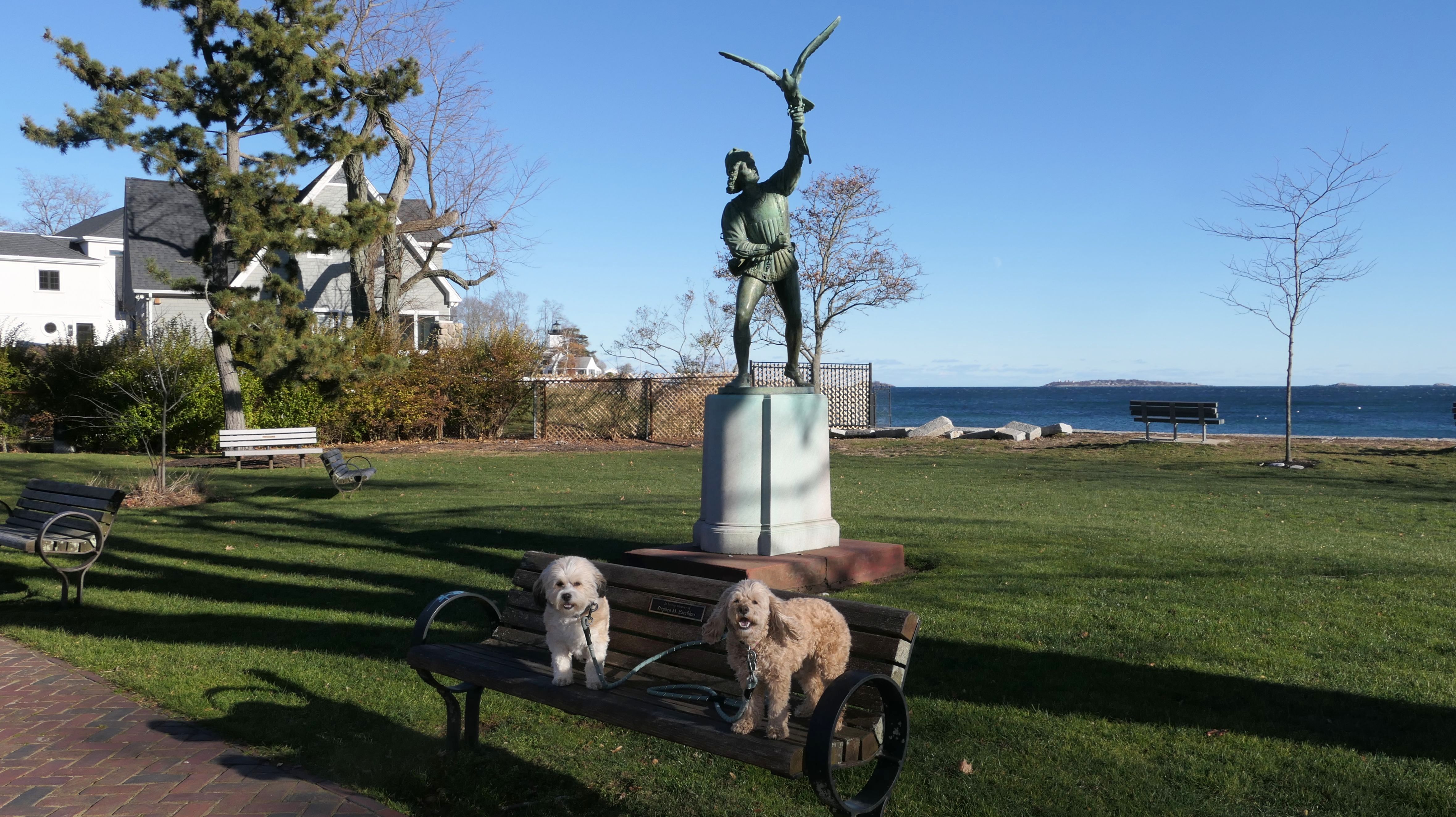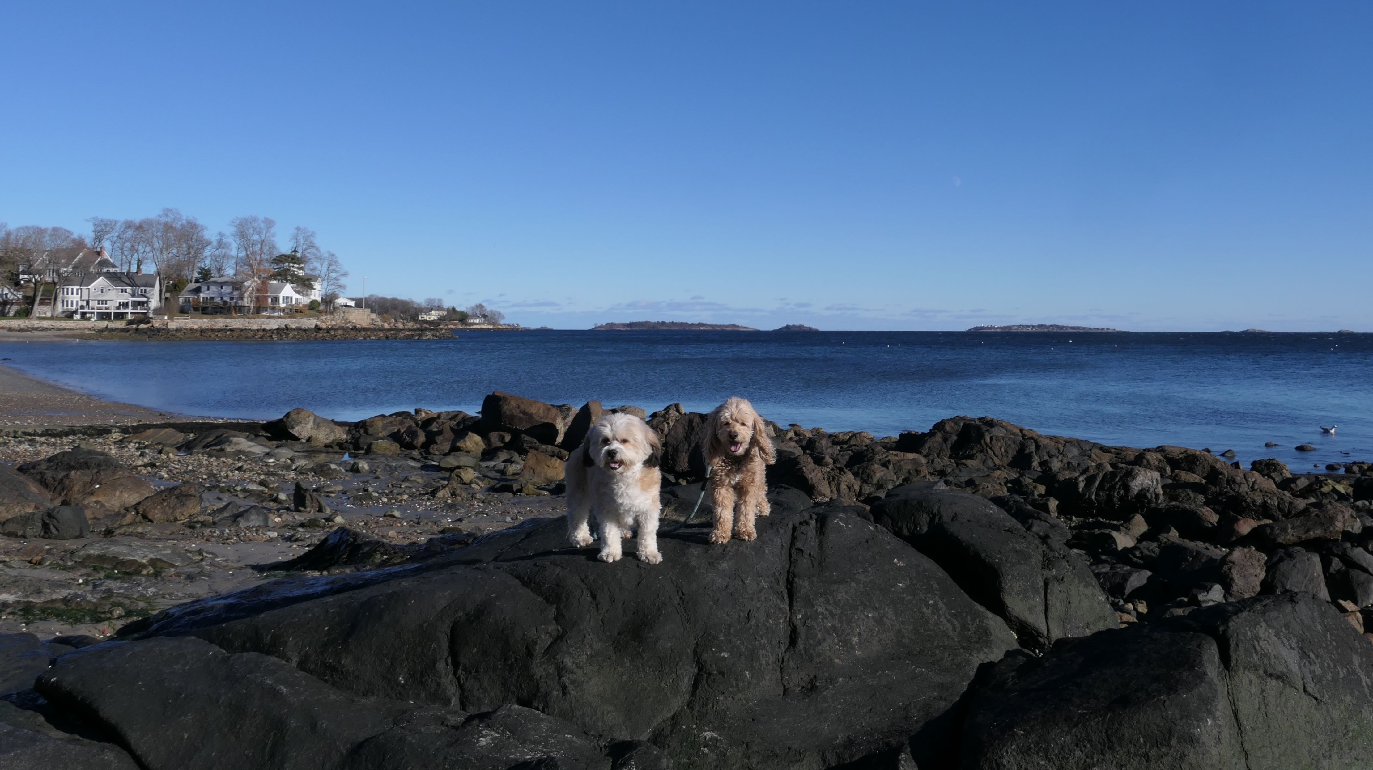 We walked here from Independence Park. There are a number of access points off Lothrop street, but not all of them go all the way down to the beach. Some end at a viewing level, with no access point to get down any further. Once we found an access point that went all the way down, we headed north along the beach until we reached the main beach area. We had to cross a rather large pile of rocks at one point. Once we reached the main beach, there were a few dogs running around off-leash, despite the sign indicating dogs must be leashed. This may be one of those "unofficial" off-leash dog areas. By the way, dogs are only allowed on the beach from the day after Labor Day to the day before Memorial (they are allowed during those times before 8AM and after 7:30PM). The beach opens out to a cove, so the waves are mild. You can look across the cove at Salem Willows Park, a place we visited earlier in the day.