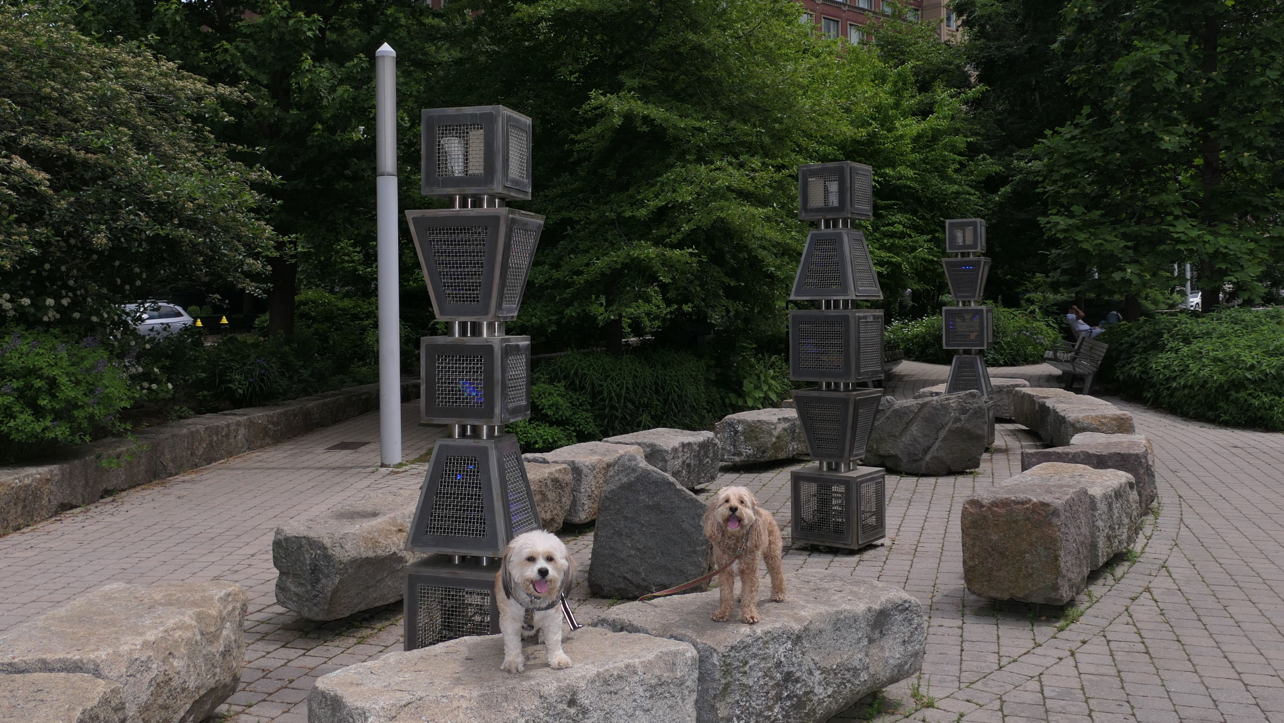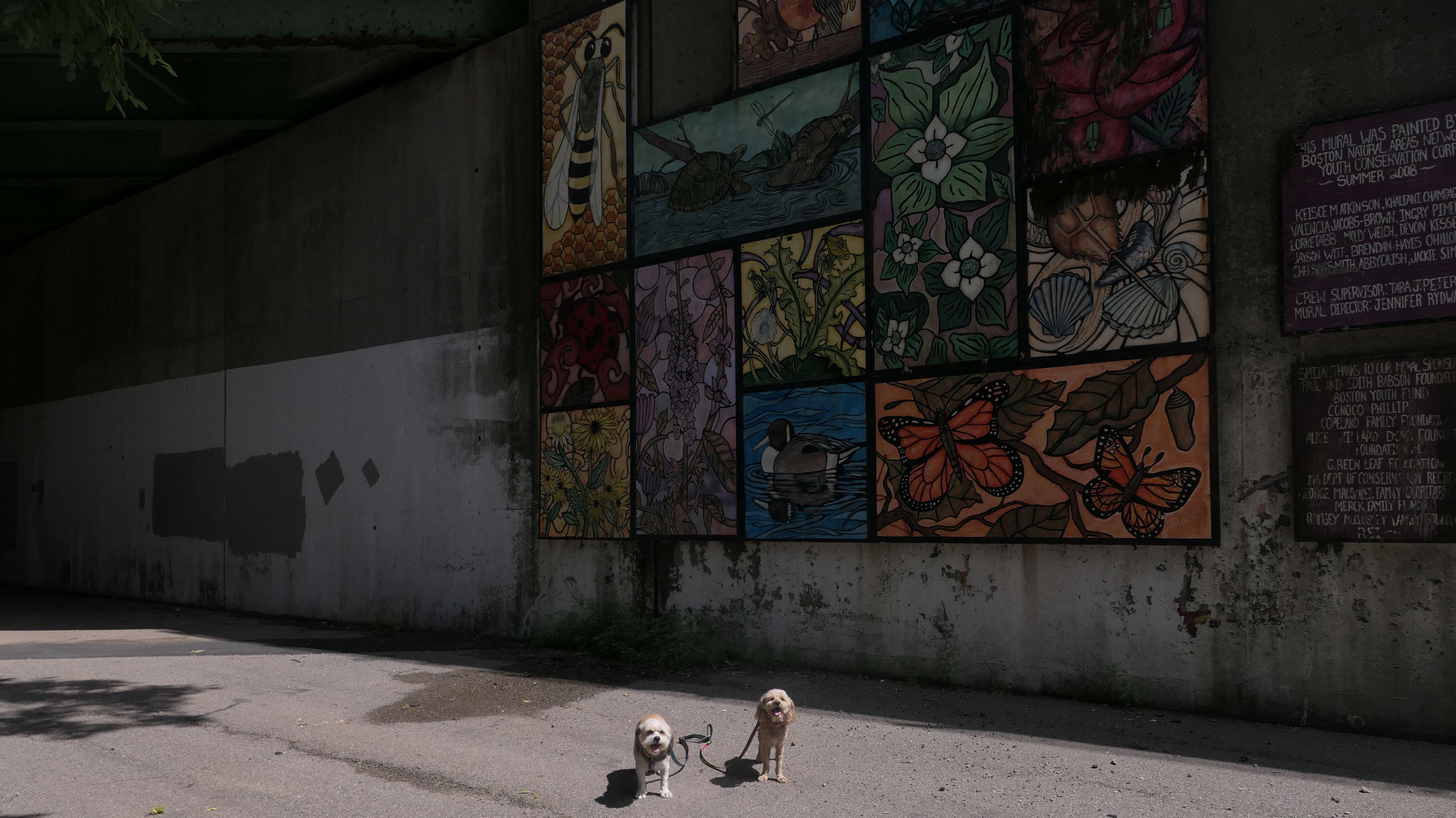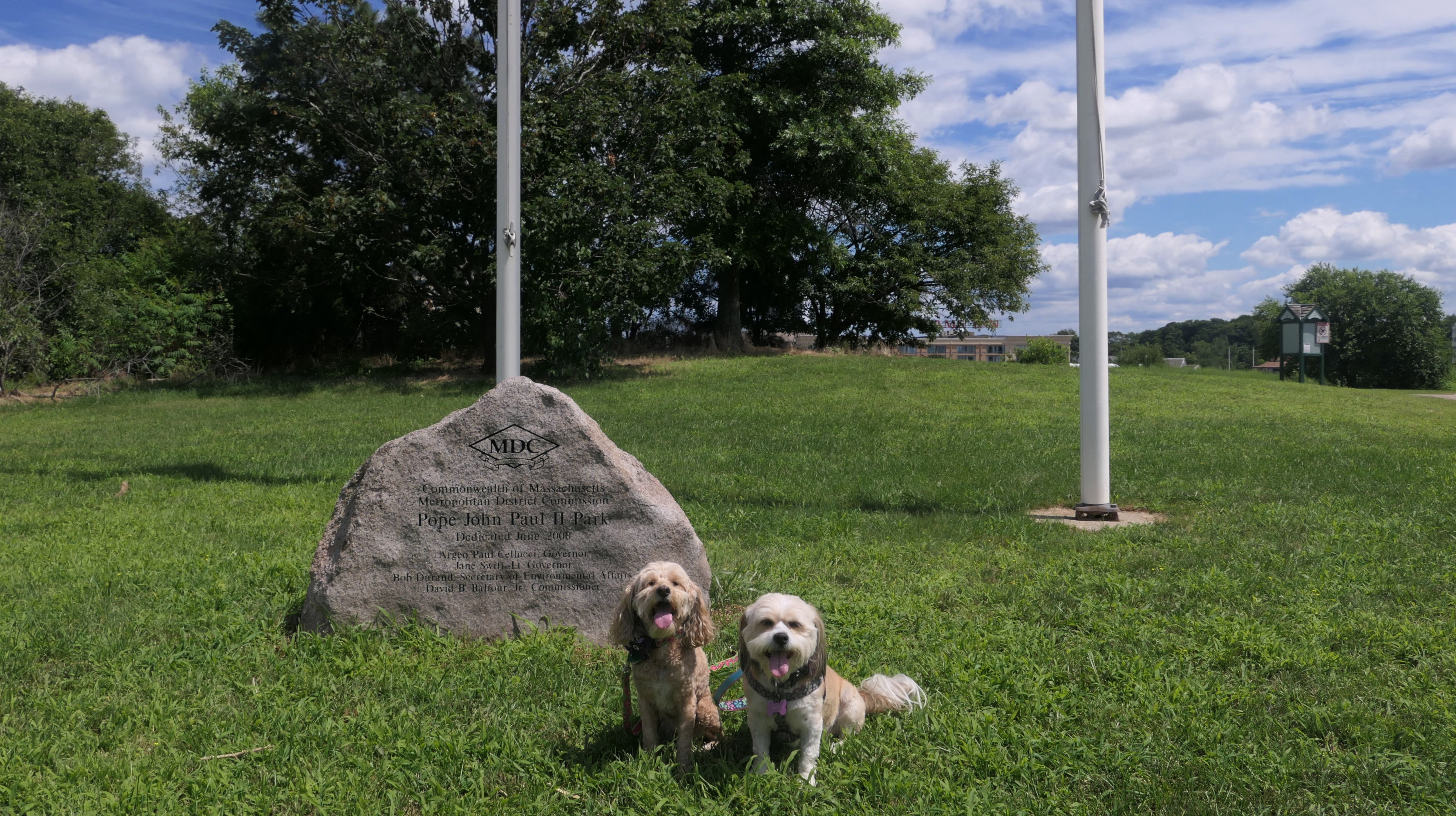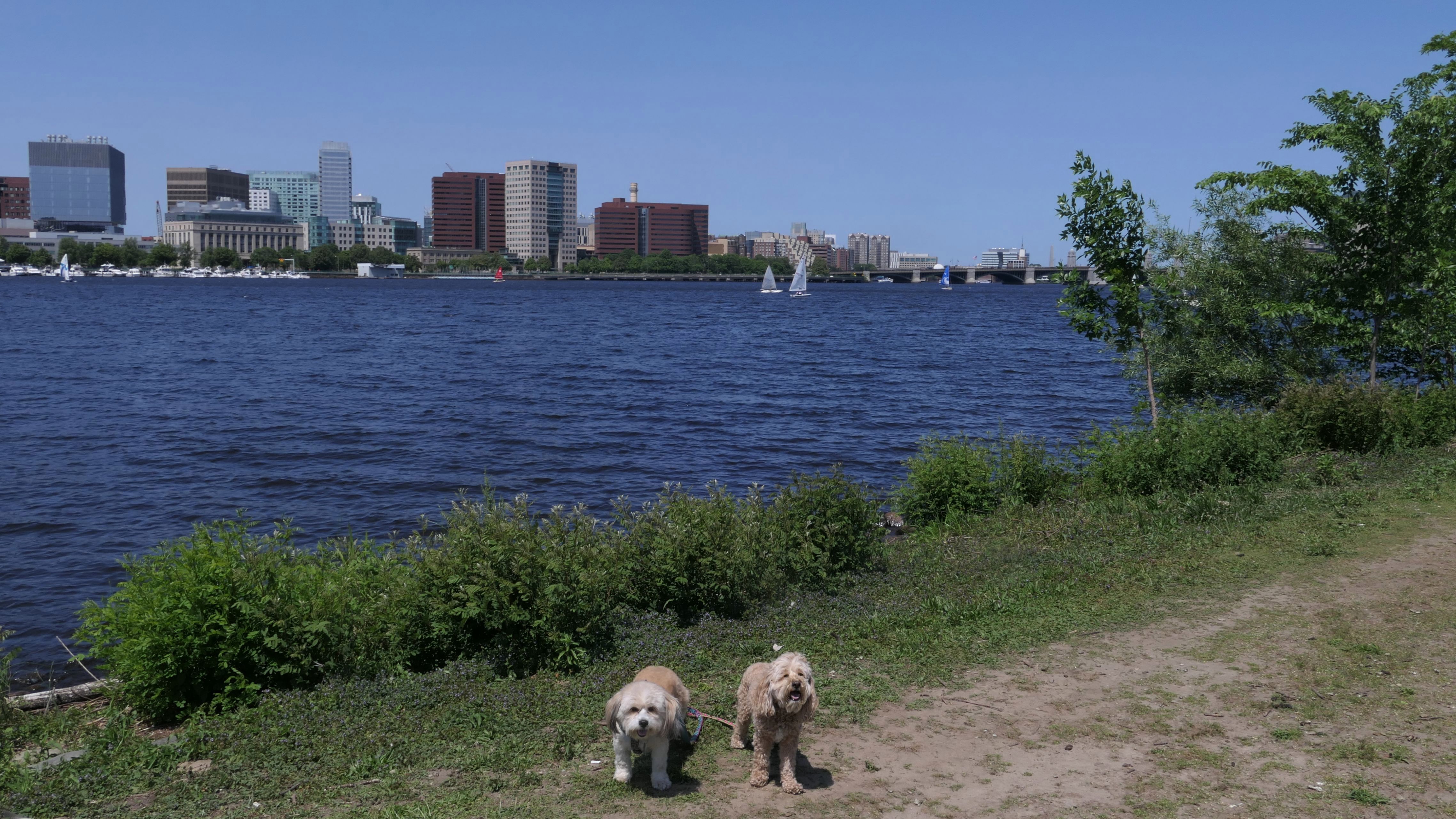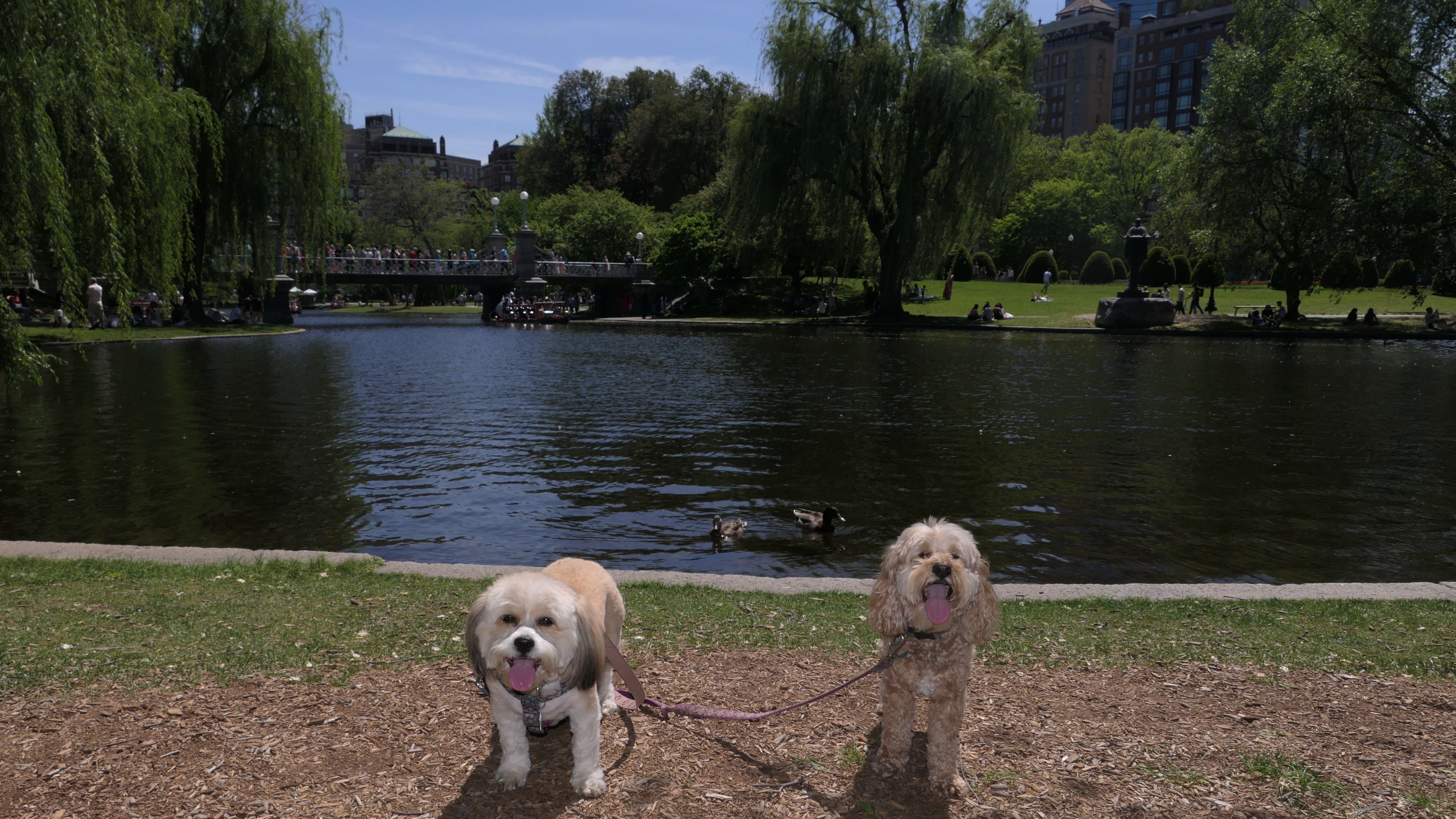 This park is a bit larger than the adjacent Boston Public Garden, and more open. There's also an off-leash dog area here, but Mandy and Lexi weren't really into it. There are many interesting statues and structures in this park. It also includes a carousel and the Tadpole Playground. We returned on Memorial Day, a couple weeks later. They had 37,000 flags on display in rememberance of the 37,000 people from Massachusetts that gave their lives for this country.