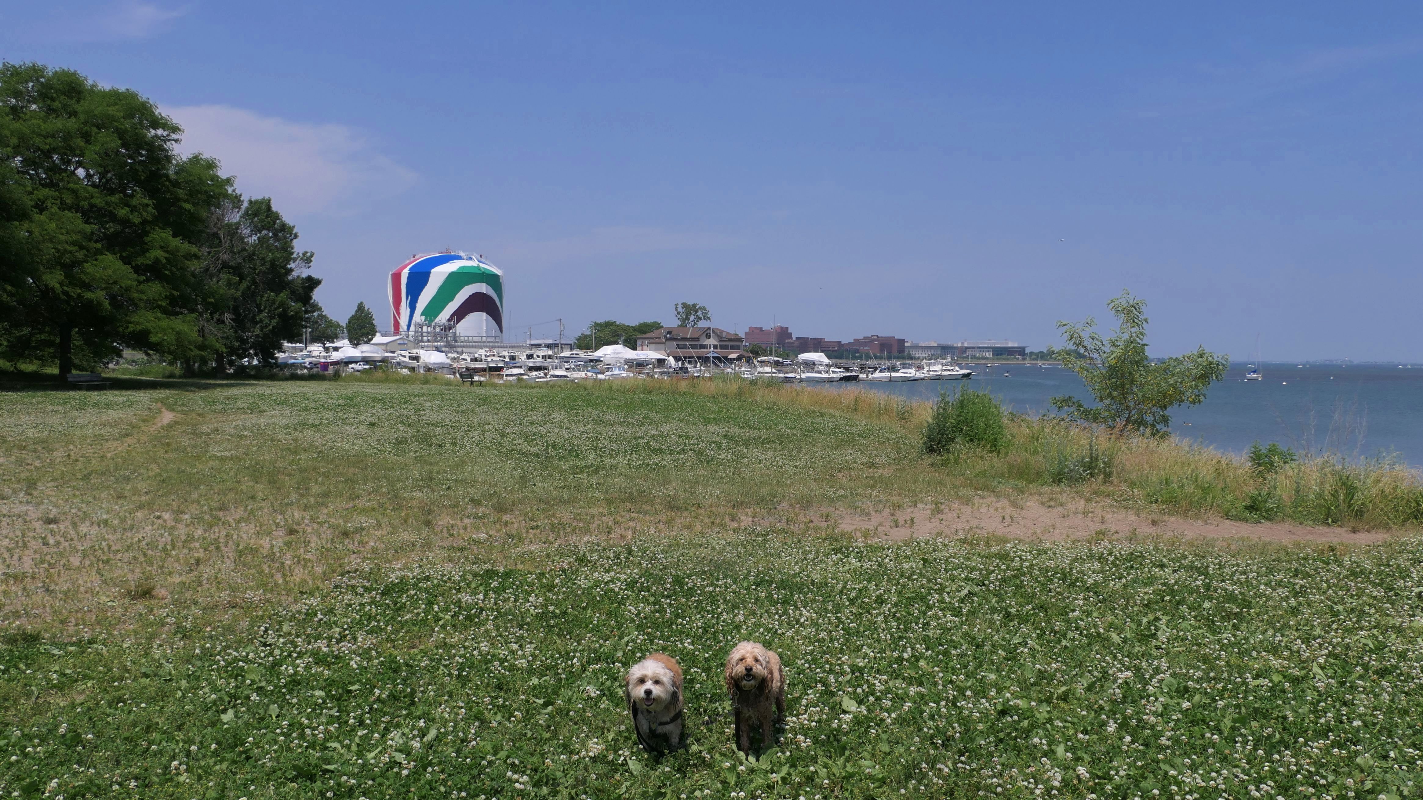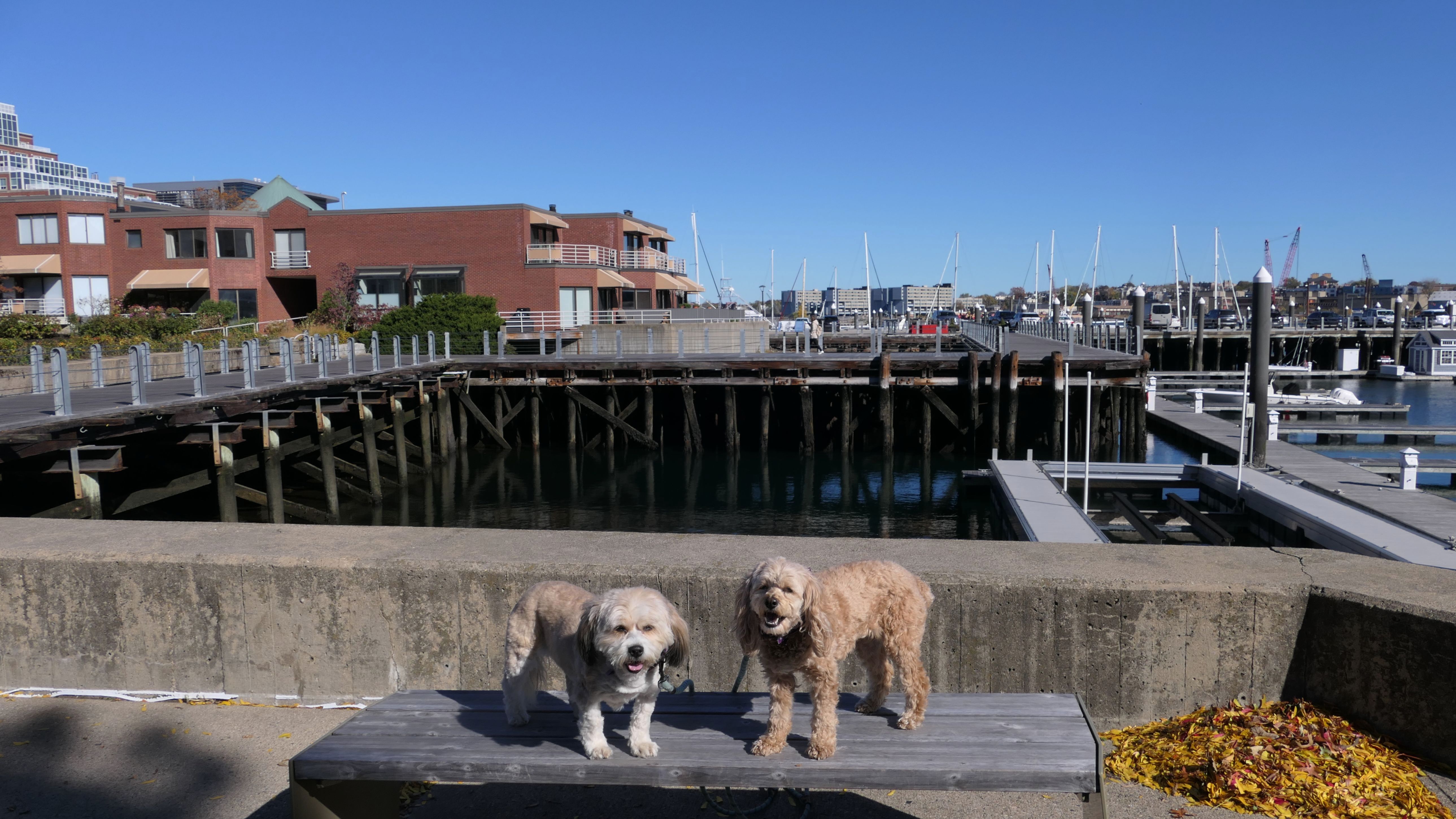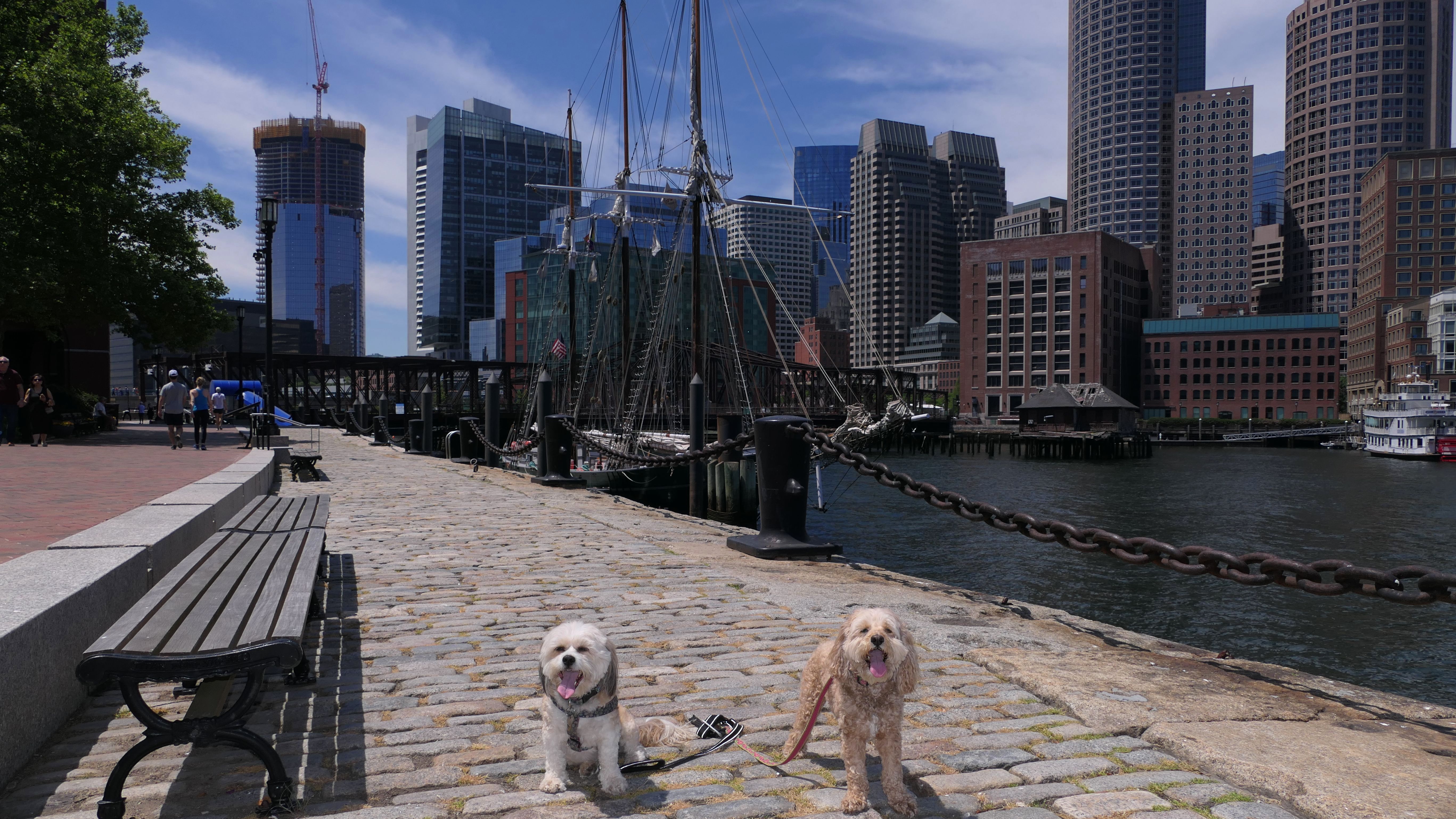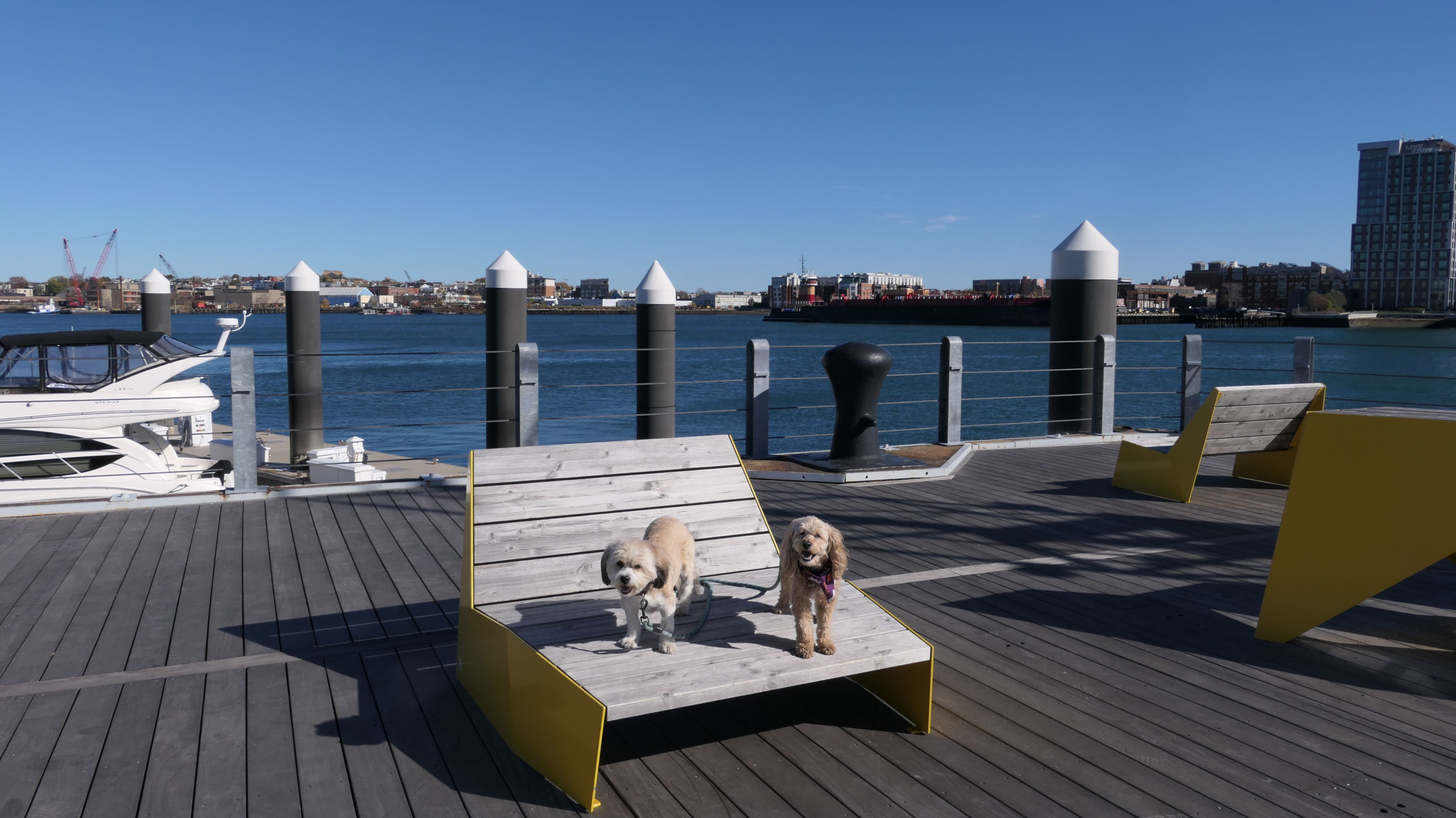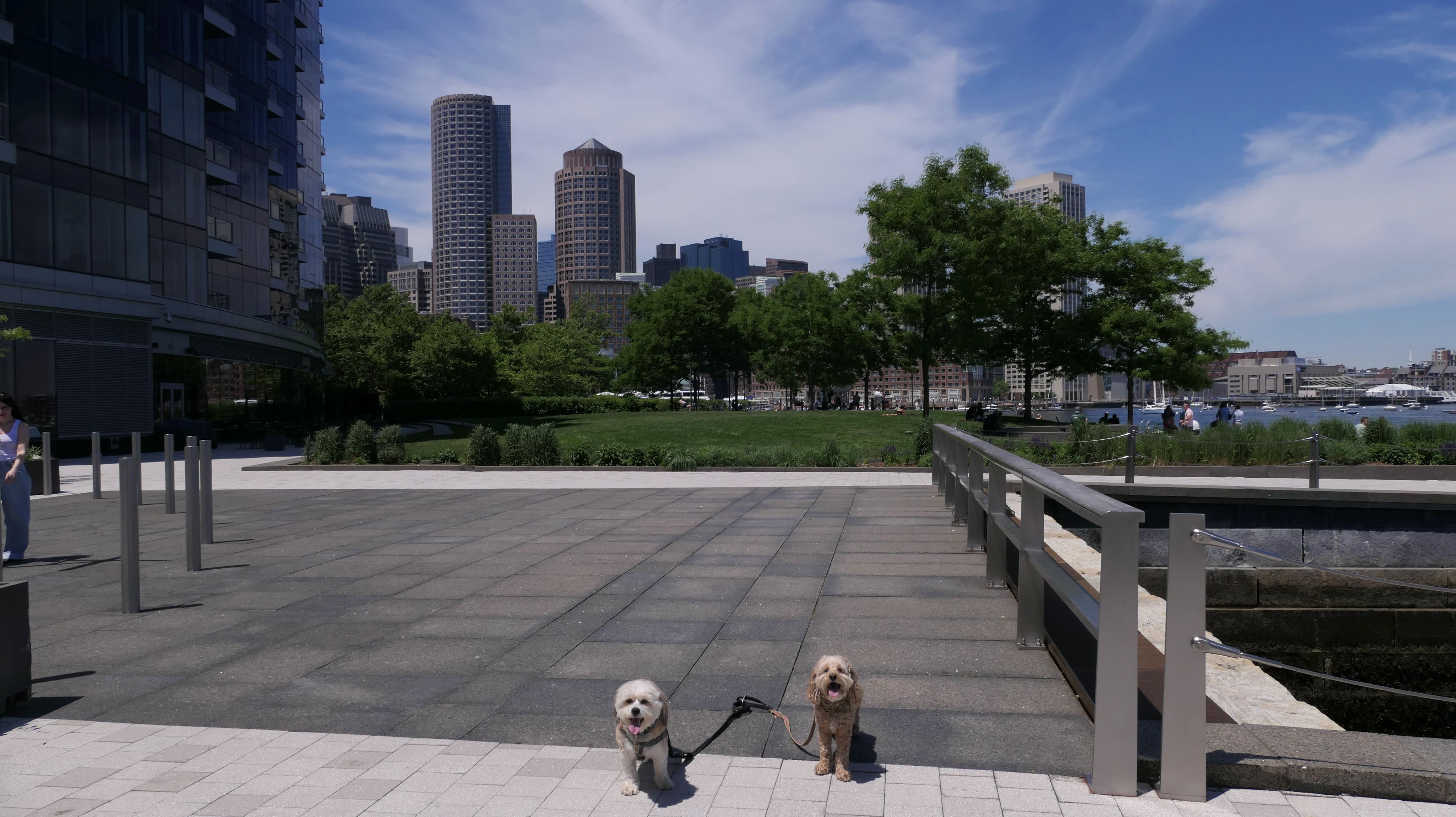 We started our Boston Harborwalk adventure at this park, with great views of the harbor. Be aware, there are oddly worded signs on the grassy areas that read "No Pets allowed on Fan Pier", or something to that effect. Bust since there were poop bag dispensers provided, I think the sign just meant that pets aren't allowed on the grassy areas.