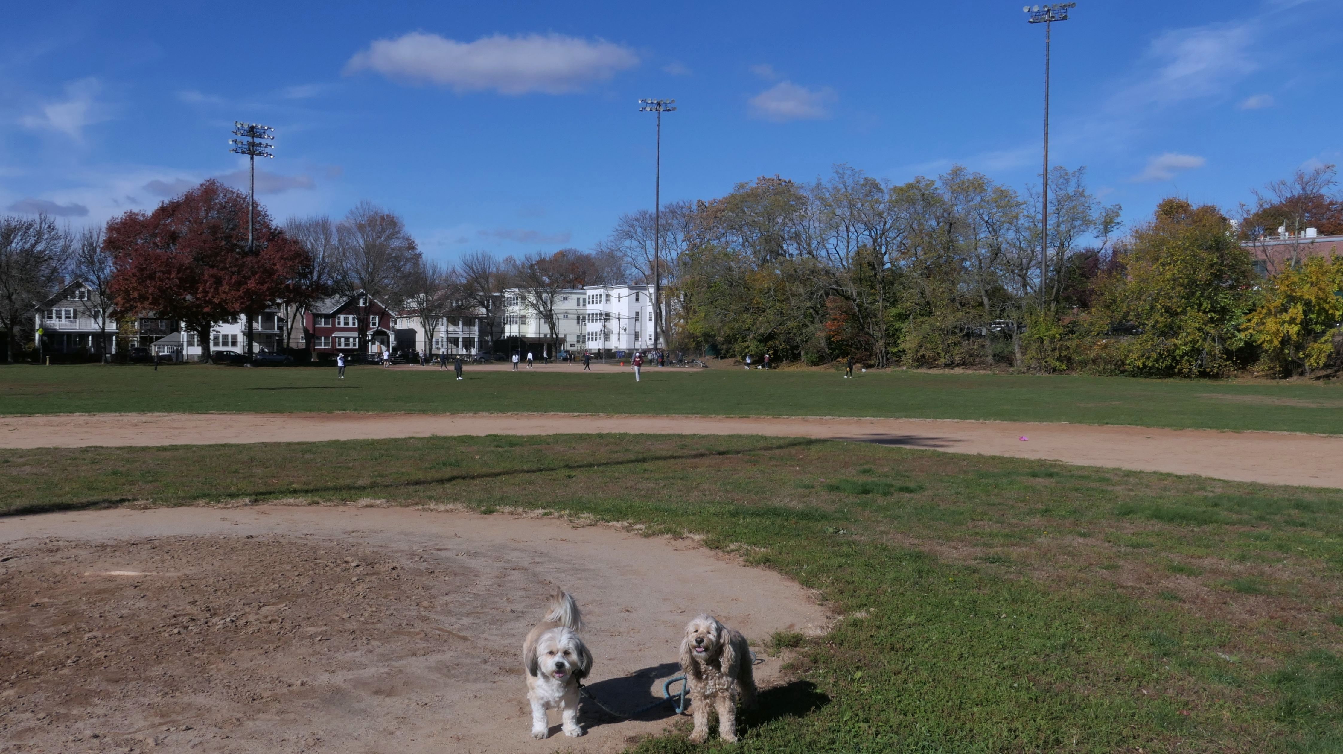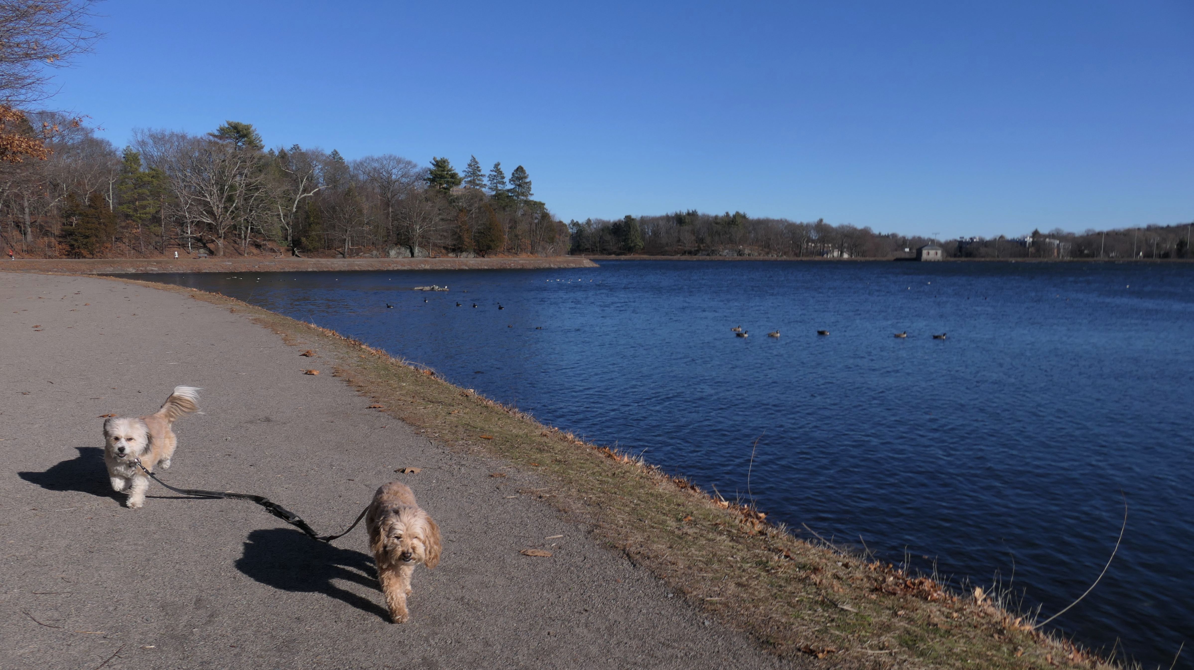 This is a park in the Jamaica Plains neighborhood. There is a walking trail around the pond, and a grassy area on the top of the hill. It connects to Olmsted Park in Boston and Brookline. We followed the All-Trails route, but modified it a bit. This was a good place to take the dogs for a walk. It was a nice day, with temps in the mid-50's. We walked about four miles total between the two parks.