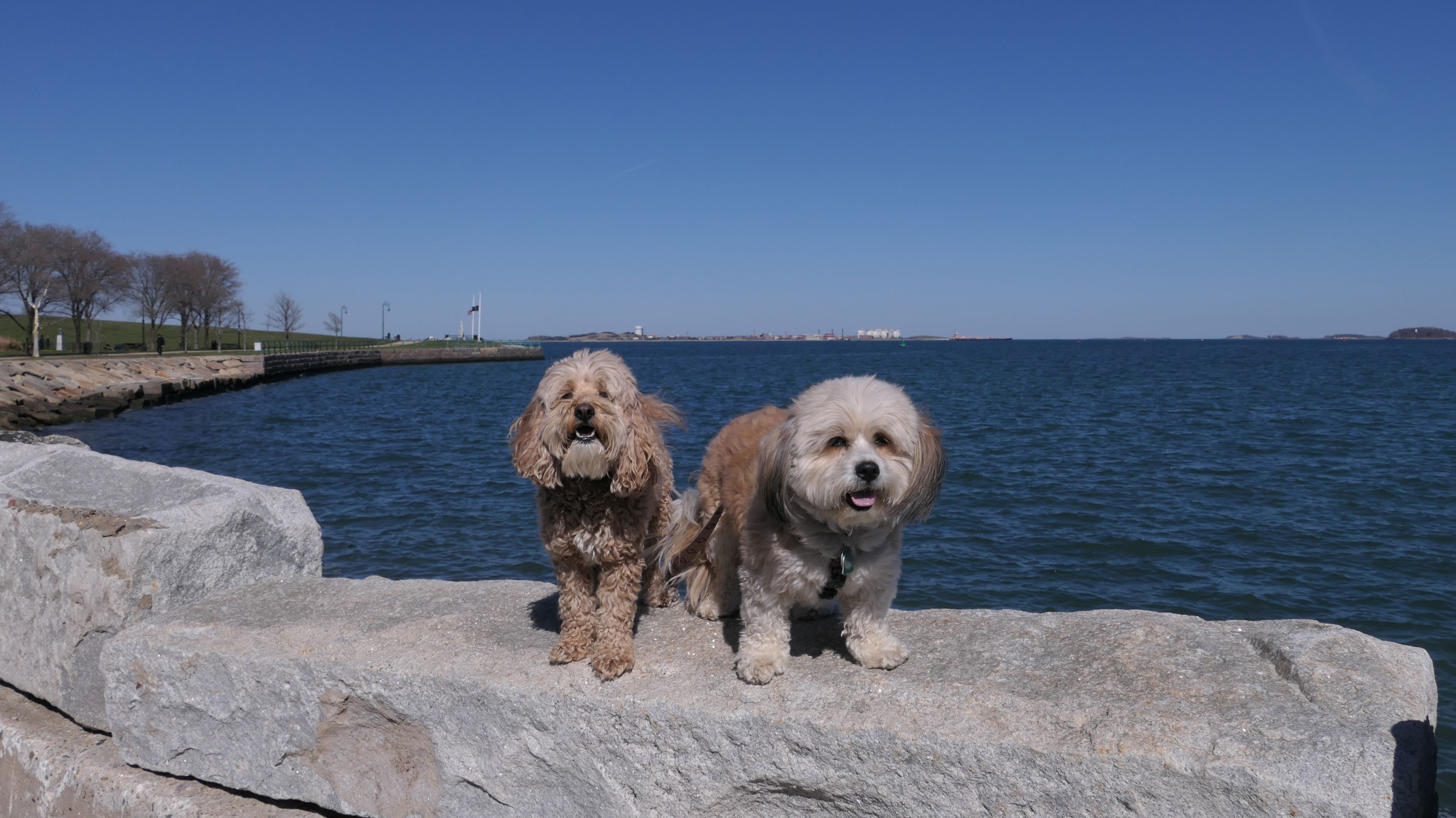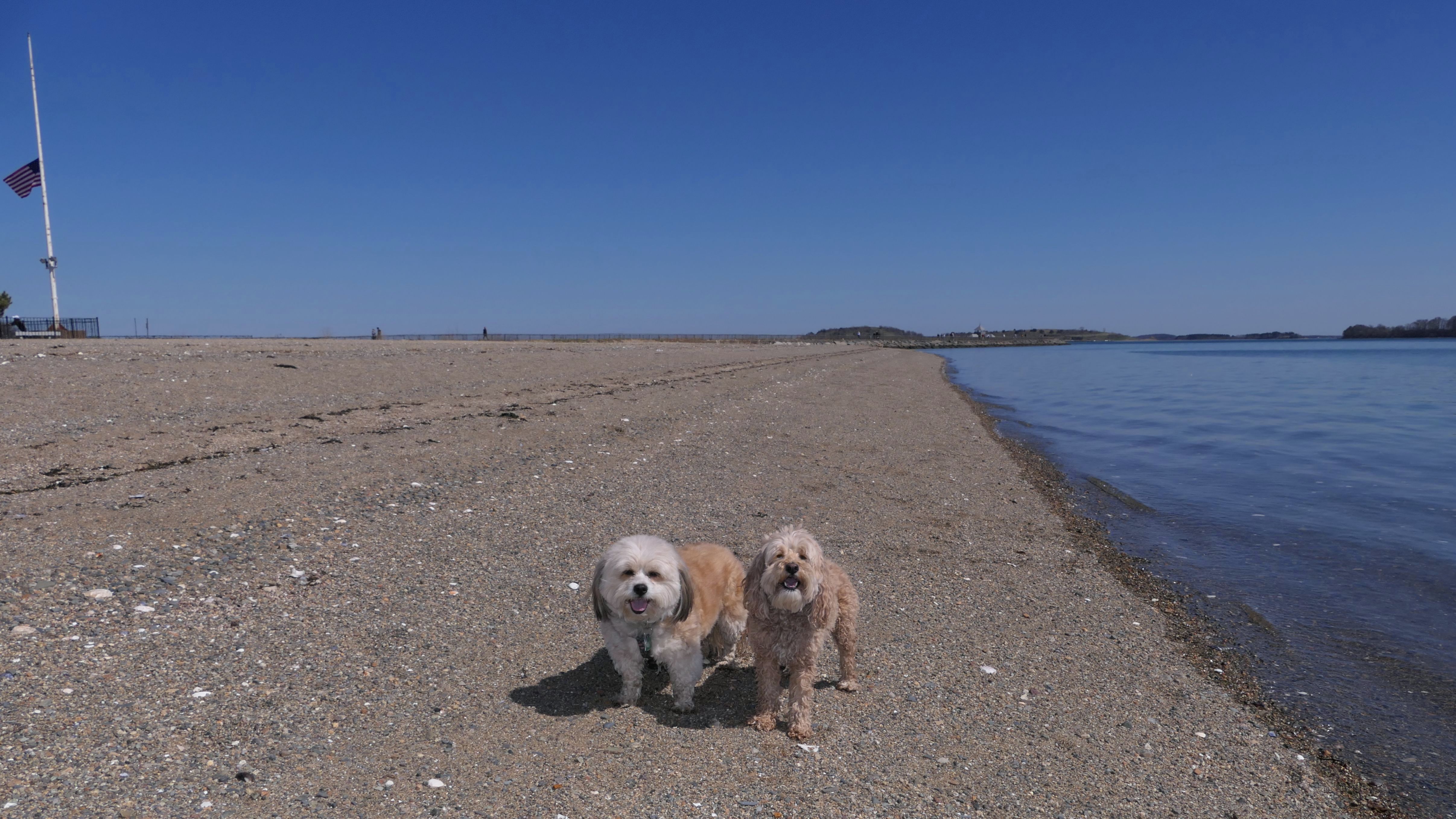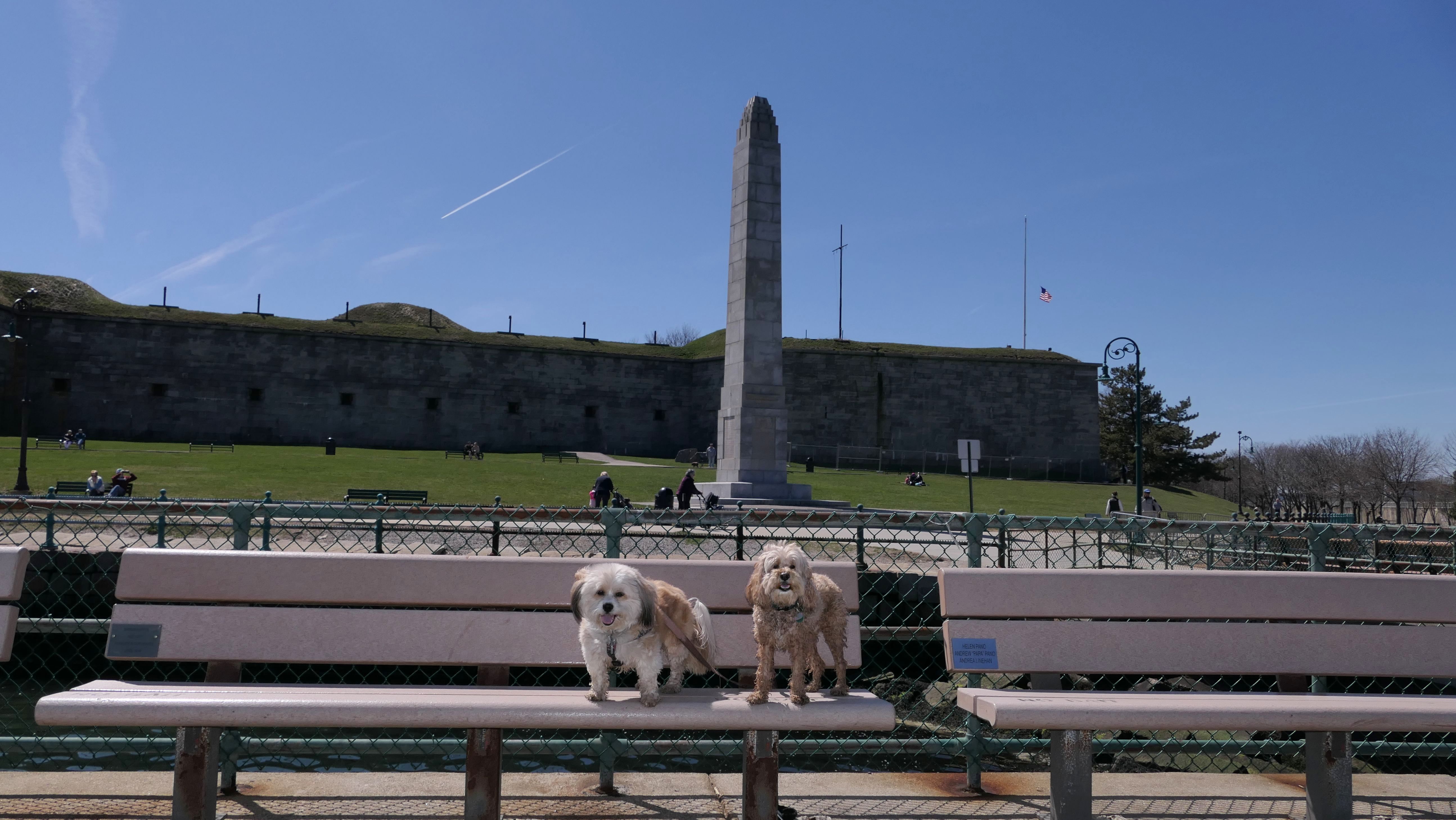 This is the area of South Boston that includes Castle Island, Fort Independence, Boston Harbor Walk, Marine Park, Pleasure Bay and a bunch of different beaches. There is a fantastic walking trail that loops around the fort, and then loops around the land ring that encircles the bay. There are various picnic areas, playgrounds and monuments along the way, as well as informational signs explaining the history of the area. From the far end of the land ring, there are views of the Boston skyline. This is very near Logan Airport, so low flying jet planes fly by on their landing approach every few minutes. The walkway extends along side William J Day Boulevard and beyond. We only went as far as M Street Beach, before heading back. It was a fantastic mid-April Day, sunny and mid 60's. The beaches in this area allow dogs until May 1st, so Mandy and Lexi were able to cool off as well. We walked almost seven miles here! This was a very fun trip, and worth the vacation day. Be sure the click on the "More Images" link below to see all that this area has to offer.