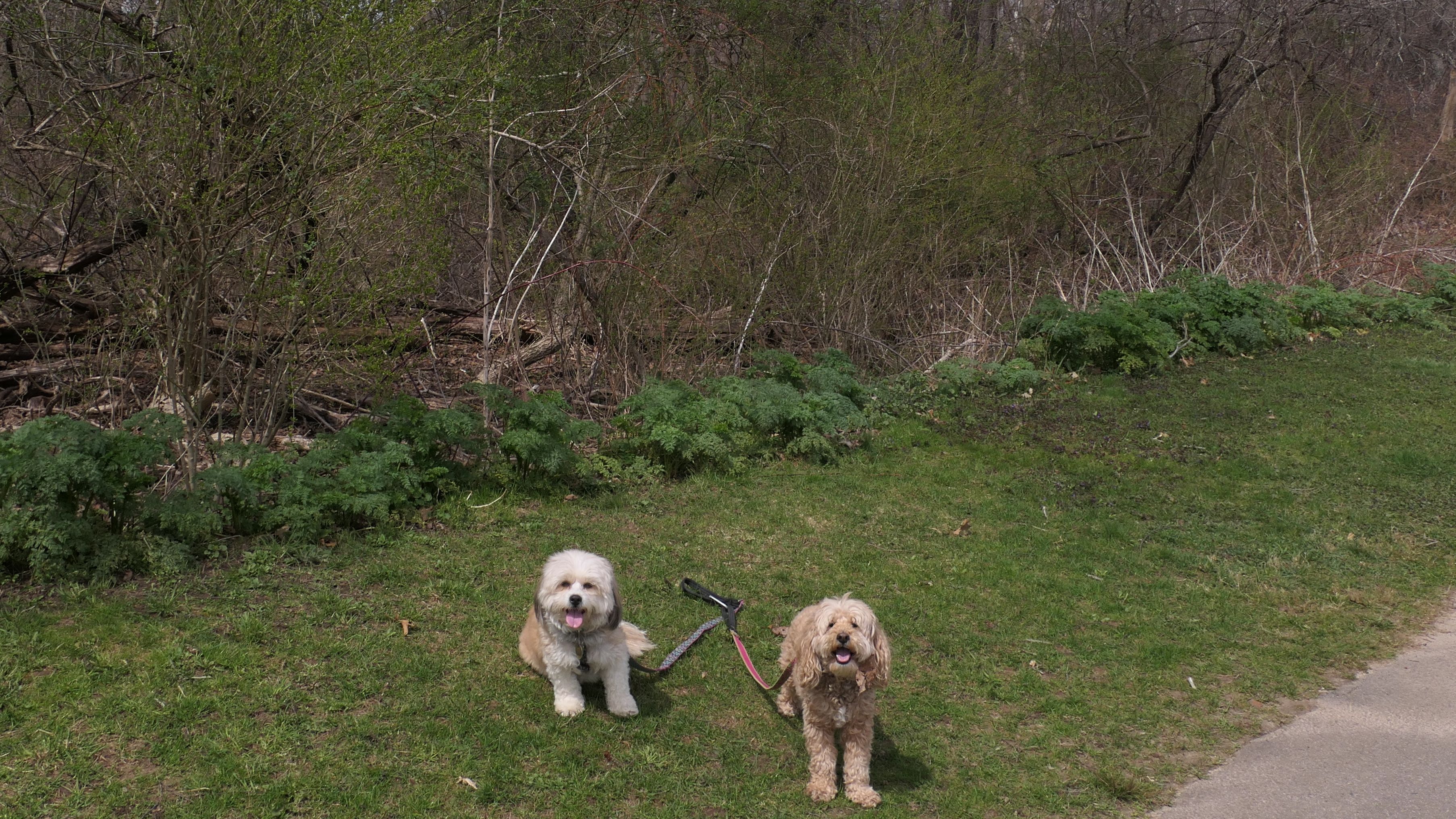 The main feature here is the paved two mile trail that loops the pond. There are two paved connecting trails, one from the main parking area, and another from a secondary parking area in nearby Weymouth. This paved trail is very popular with the dog walkers. We saw may different dogs on this day. The loop trail is unusual as it is "one-way", and has many small hills, especially at the beginning of the trail. There are standard, natural surface side trails that lead closer to the pond, or to the woods, but many of them were muddy or completely flooded, so we stayed on the main trail. We extended our walk an additional mile by walking out and back on the connector trail that leads to the Weymouth parking area. This was an early trip for us. We arrived before noon, as rain was forecasted later in the day. It started to pour about 10 minutes after we finished, so it was a good thing we went early!