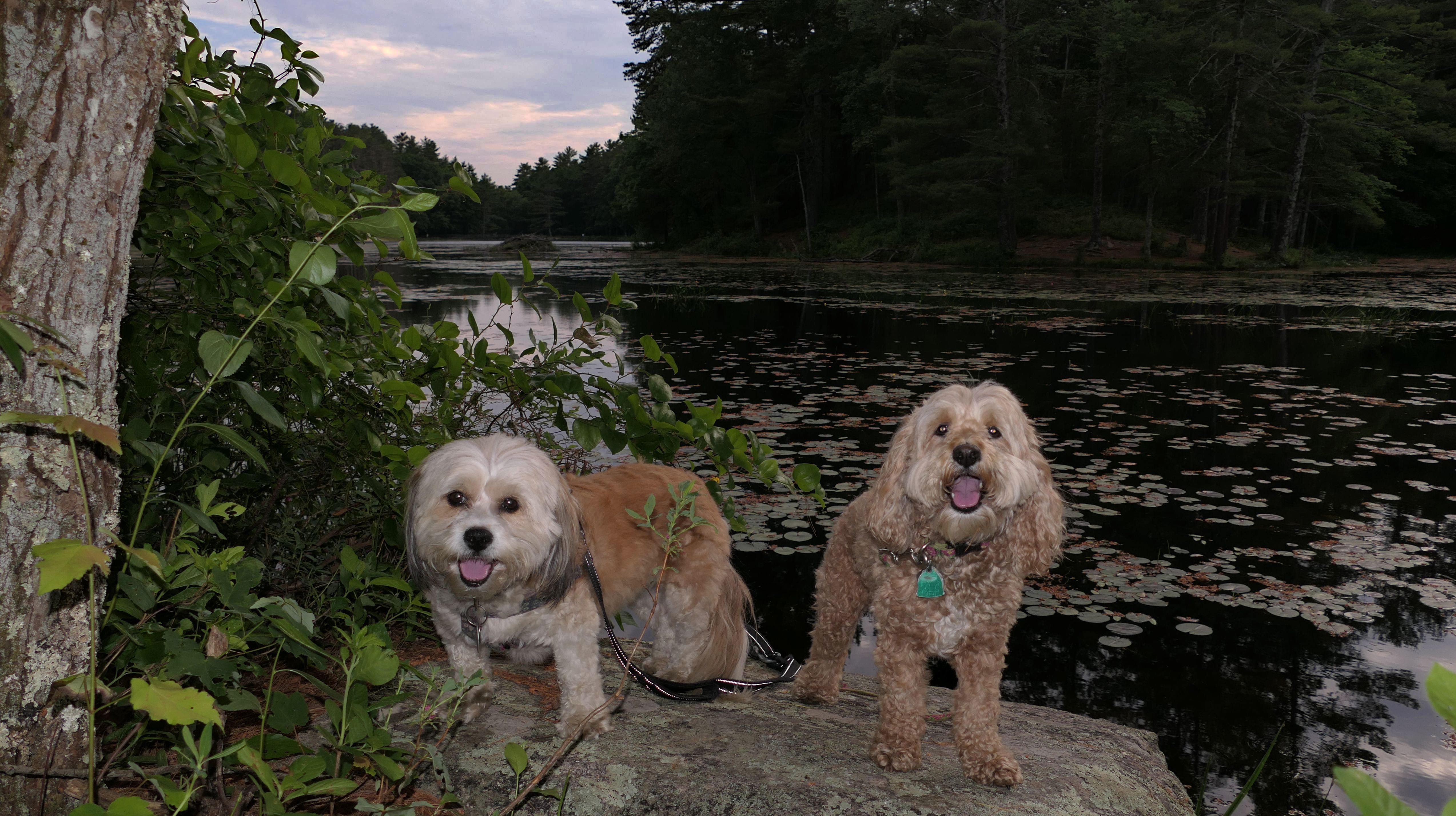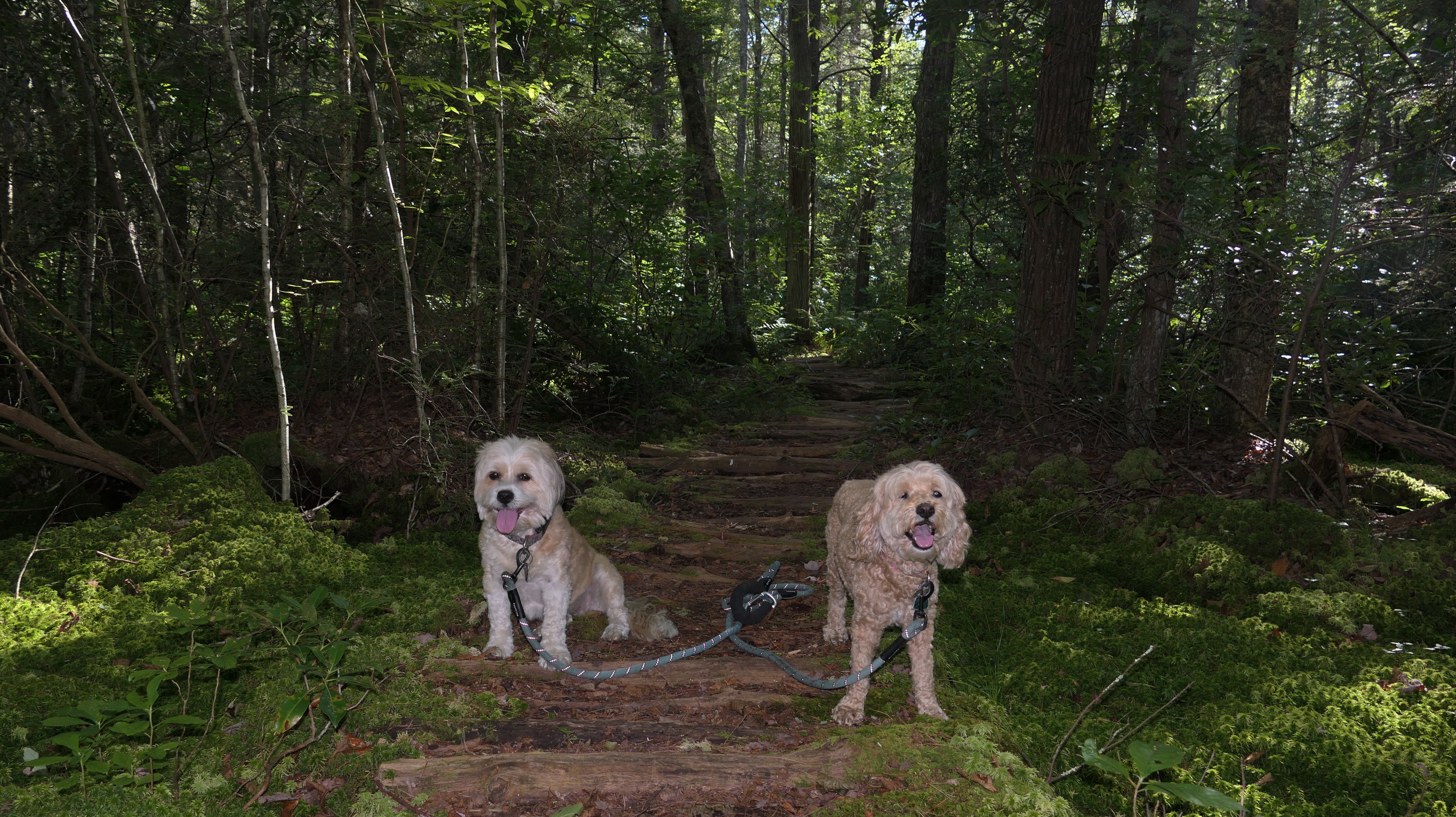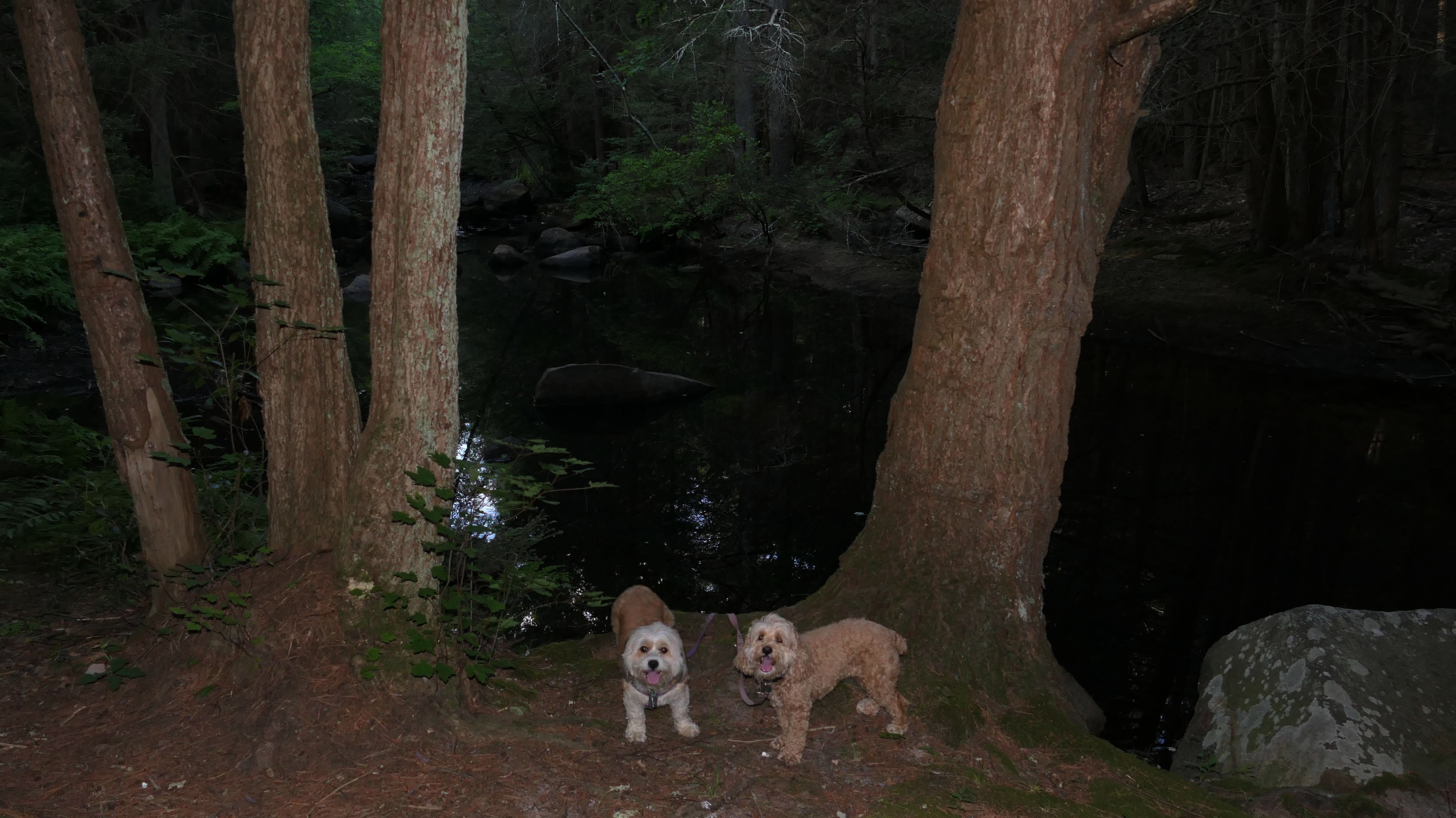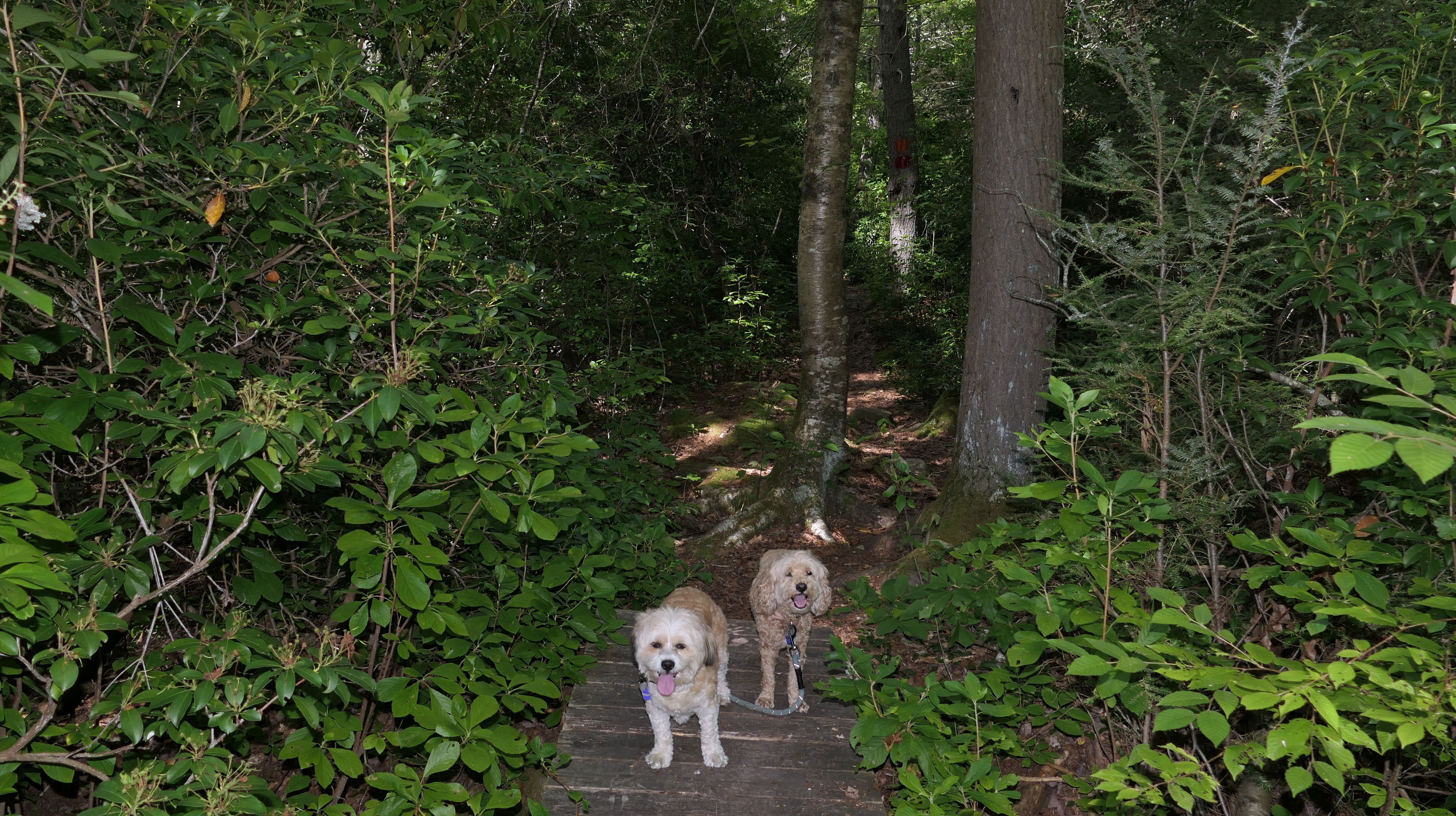 This is a cool hike to the corner of where three states intersect. We start from the Air-Line trail, and then hike up a pretty steep hill. We arrive at the peak and there is a marker to indicate the borders of Connecticut, Massachusetts and Rhode Island. I know it's really silly, but I kept posing the dogs so that one of them would be standing in one state, and the other one would be in another state, until I got every combination.