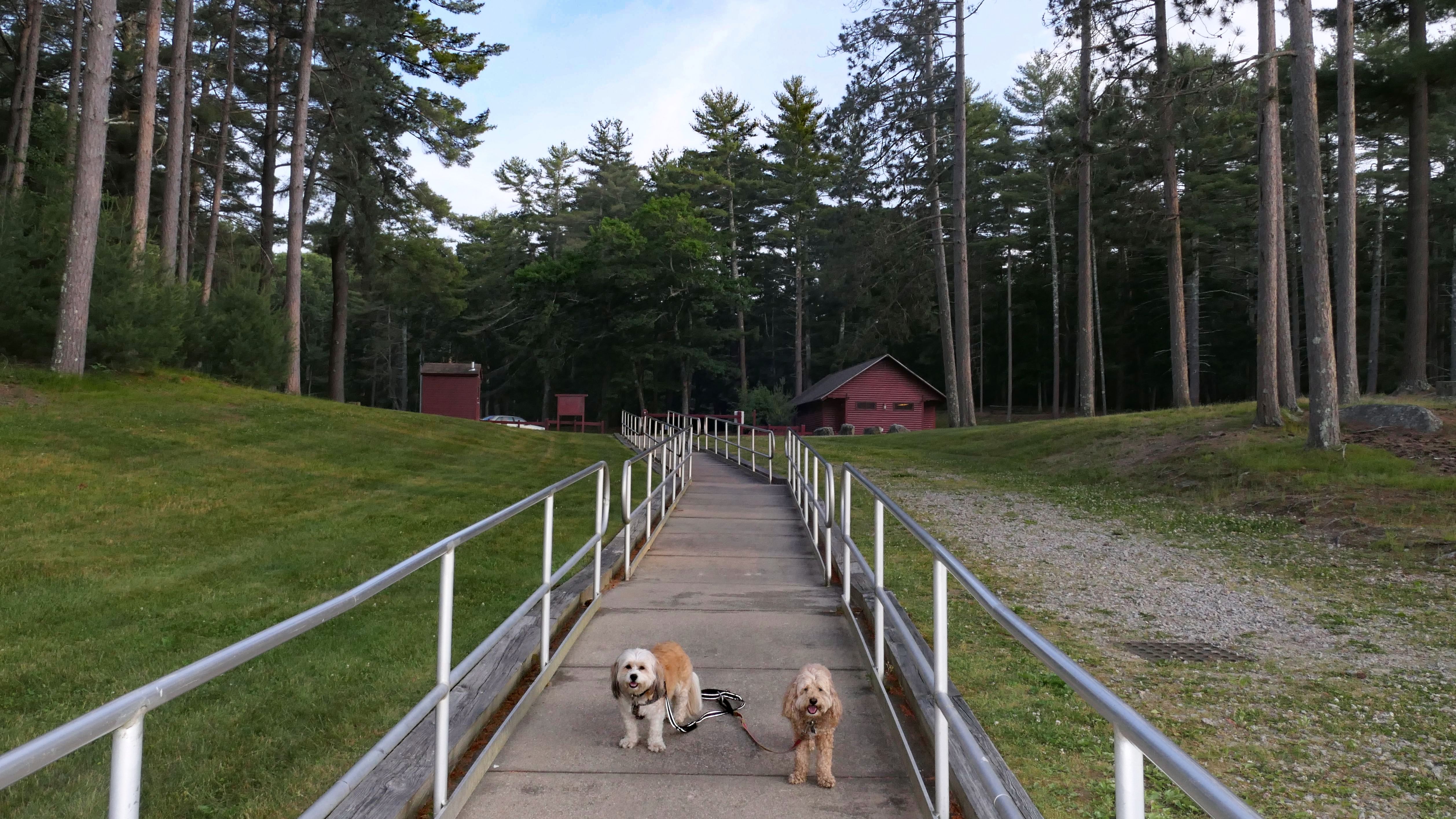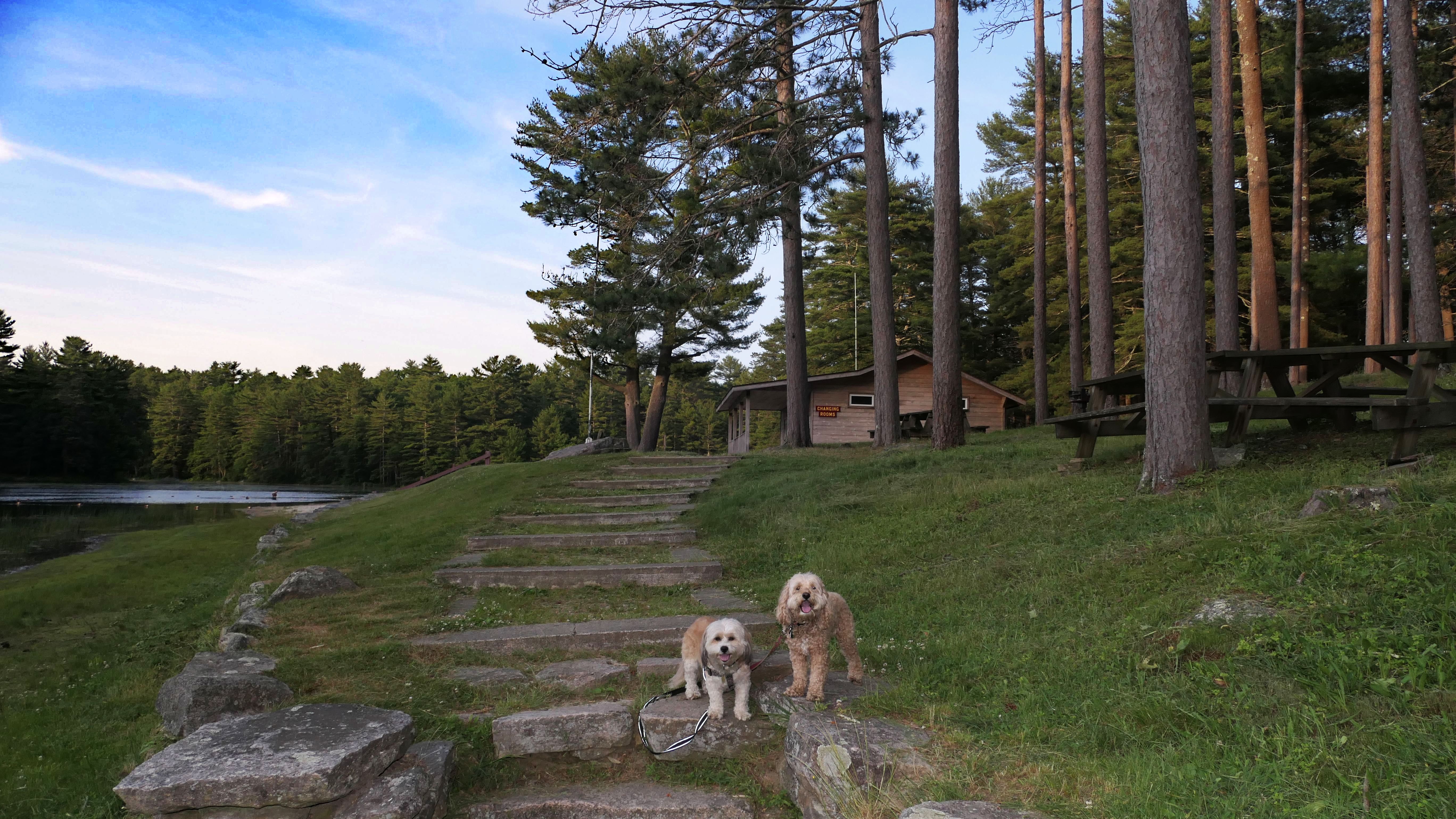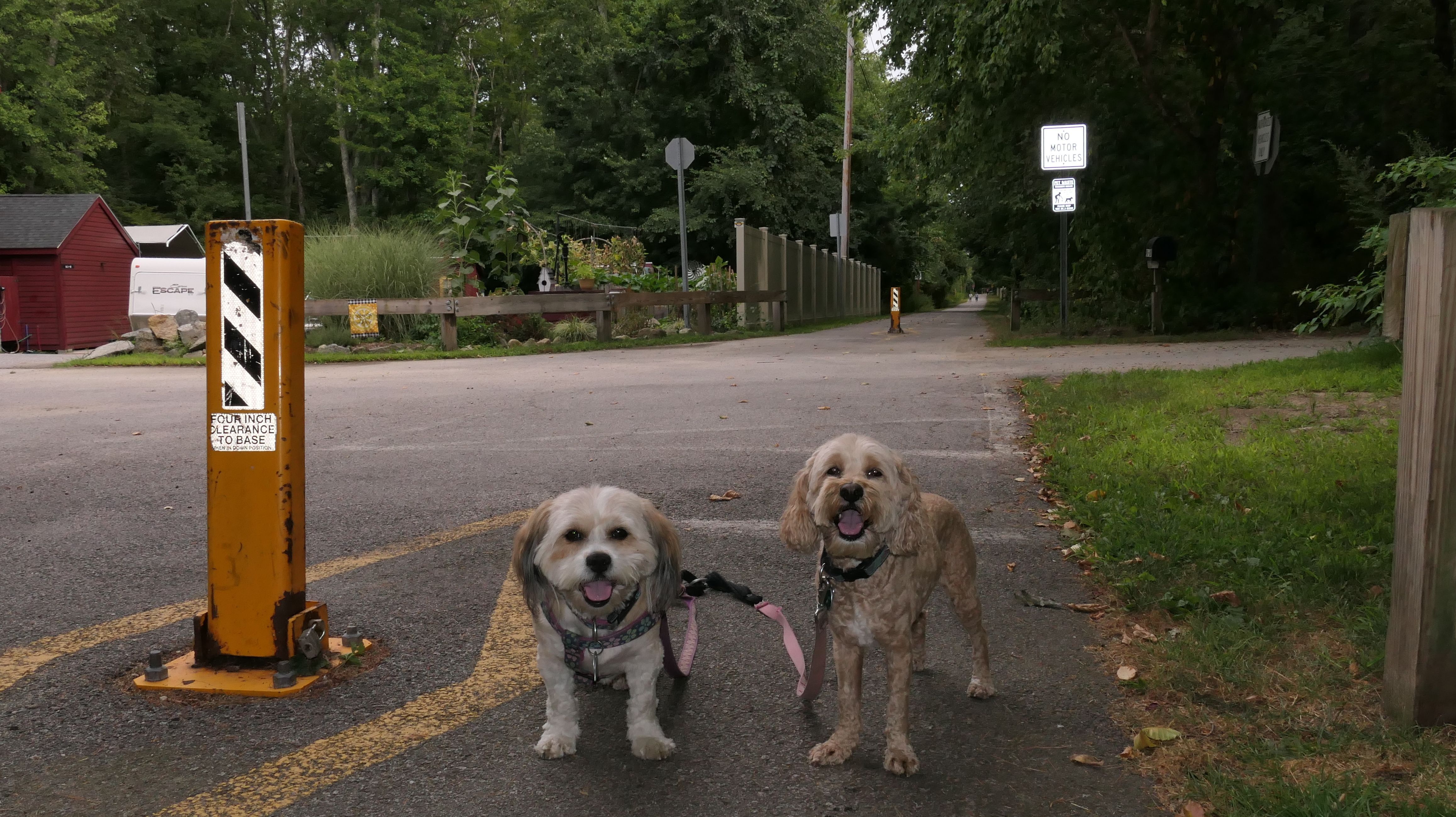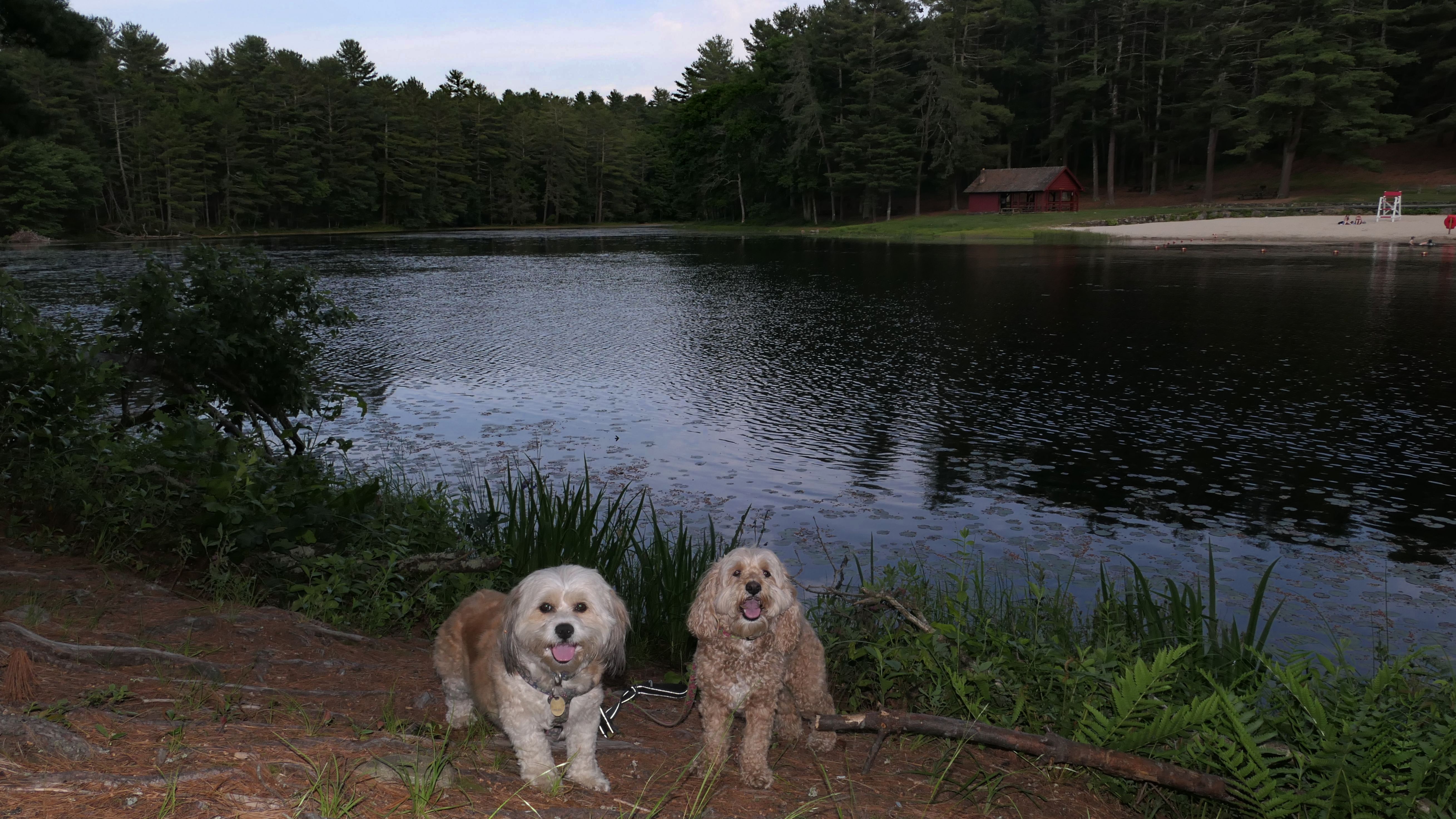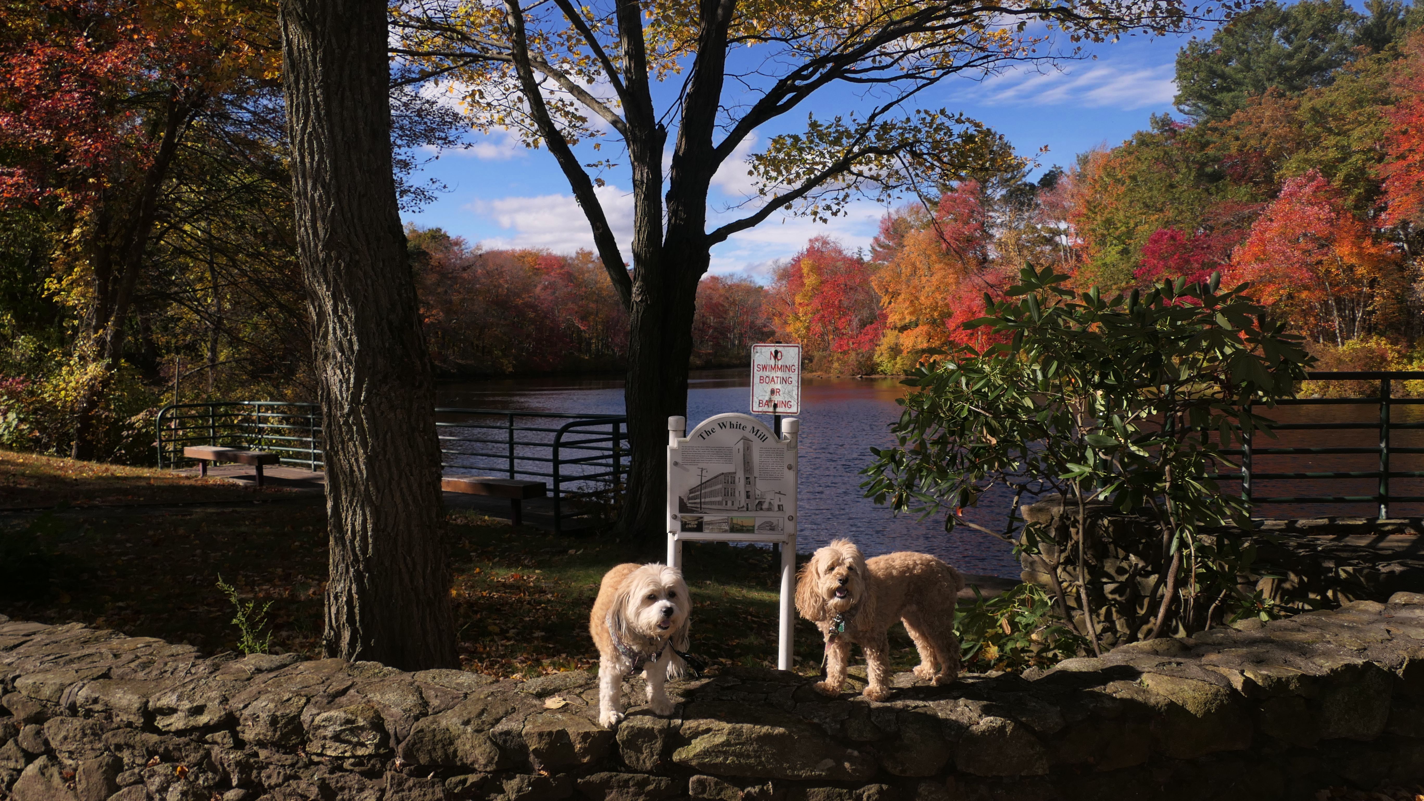 This is a cool hike to the corner of where three states intersect. We start from the Air-Line trail, and then hike up a pretty steep hill. We arrive at the peak and there is a marker to indicate the borders of Connecticut, Massachusetts and Rhode Island. I know it's really silly, but I kept posing the dogs so that one of them would be standing in one state, and the other one would be in another state, until I got every combination.