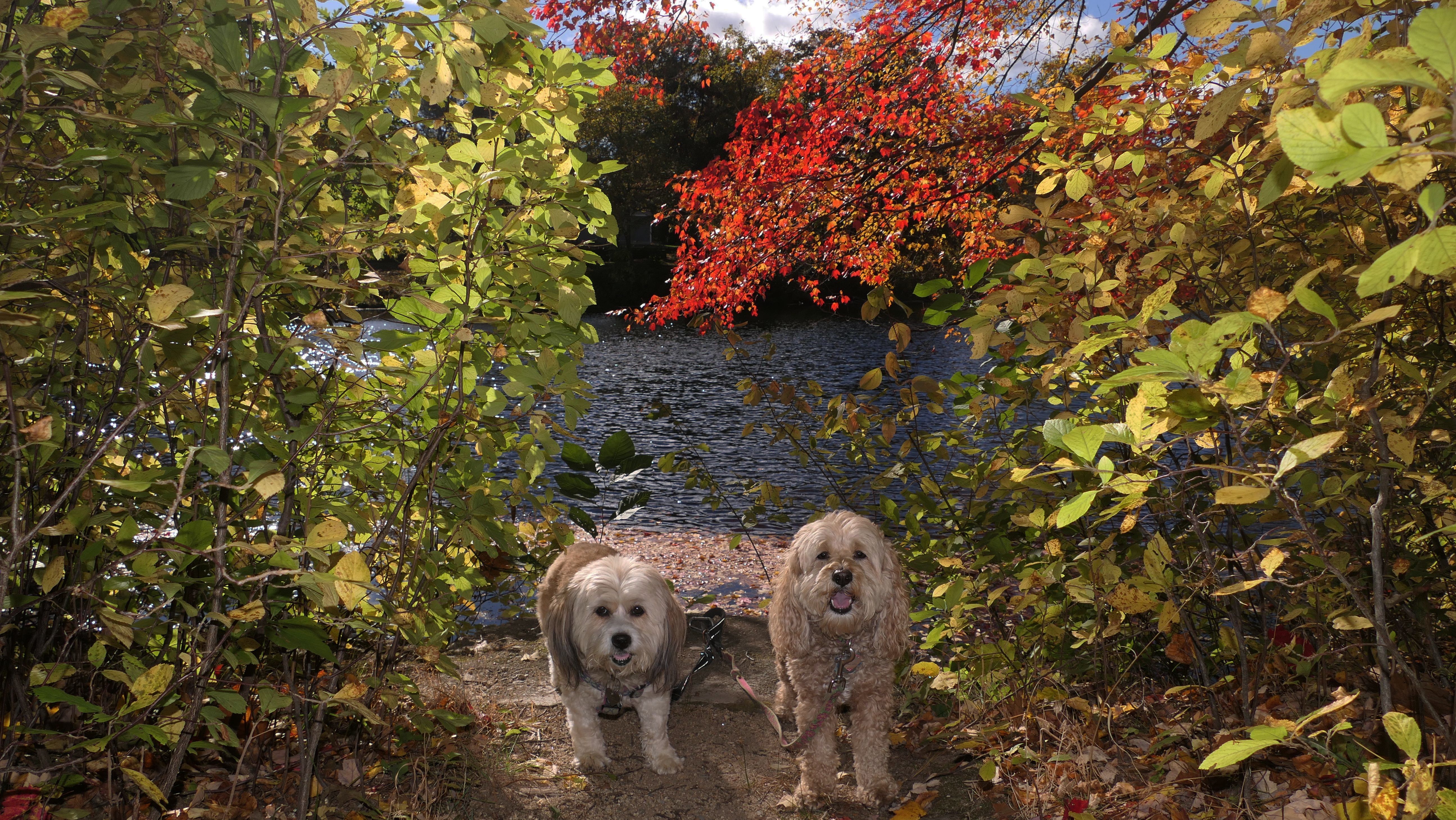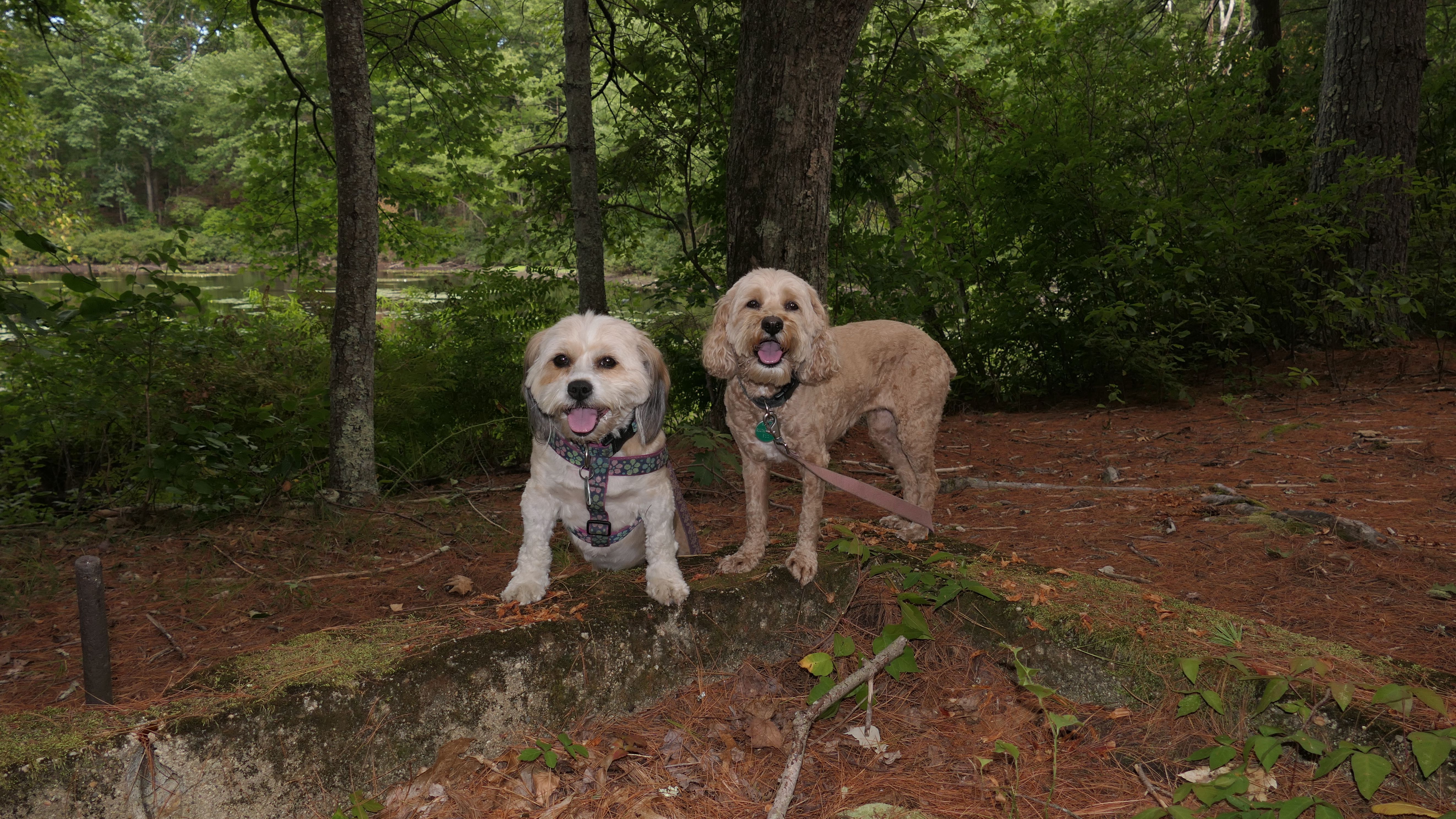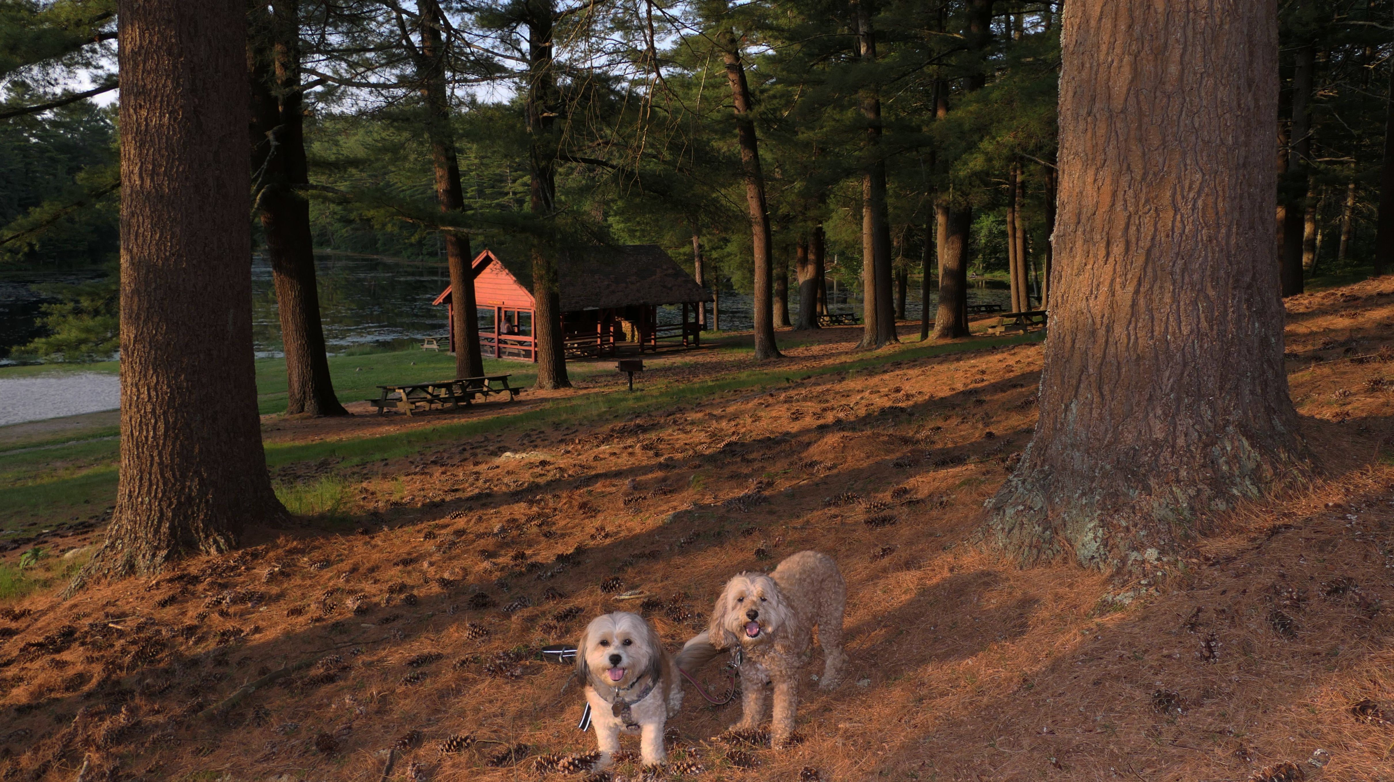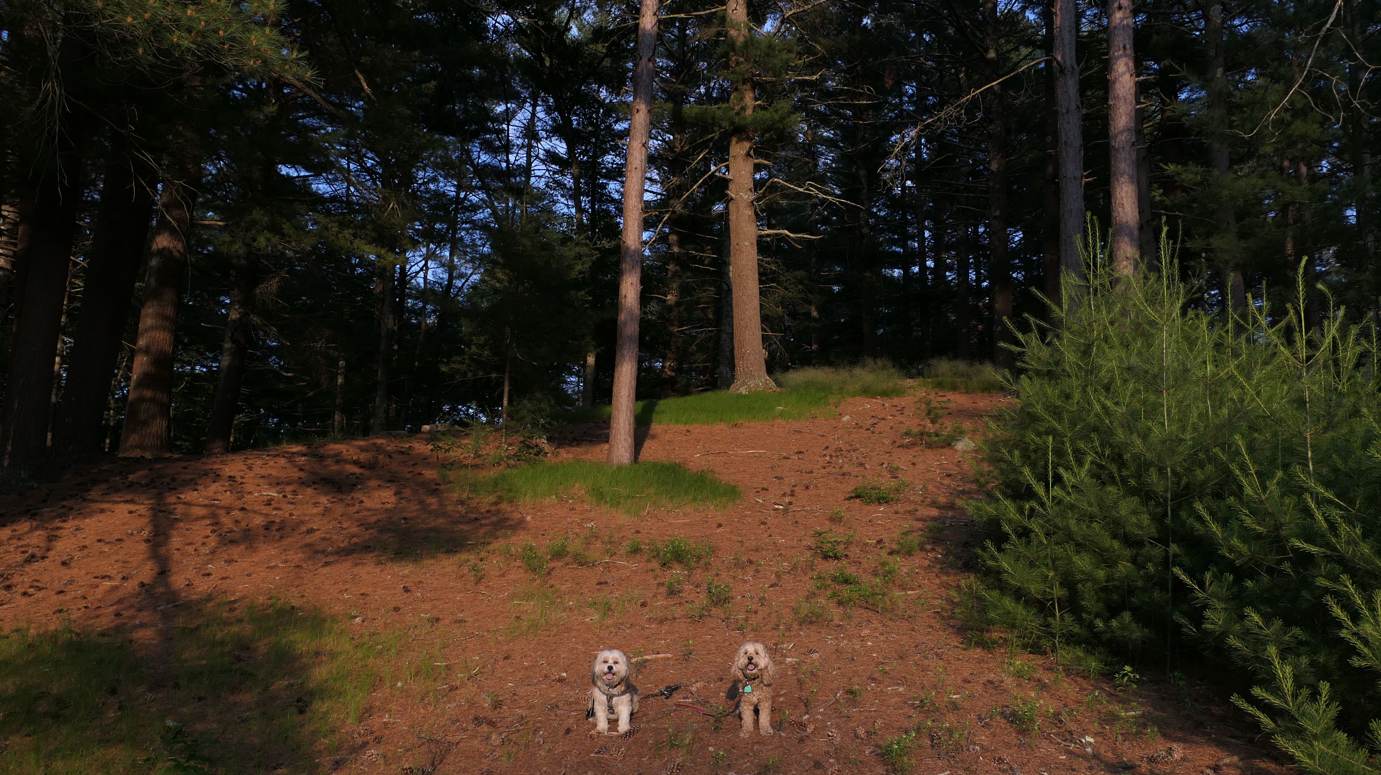 This is a cool hike to the corner of where three states intersect. We start from the Air-Line trail, and then hike up a pretty steep hill. We arrive at the peak and there is a marker to indicate the borders of Connecticut, Massachusetts and Rhode Island. I know it's really silly, but I kept posing the dogs so that one of them would be standing in one state, and the other one would be in another state, until I got every combination.
